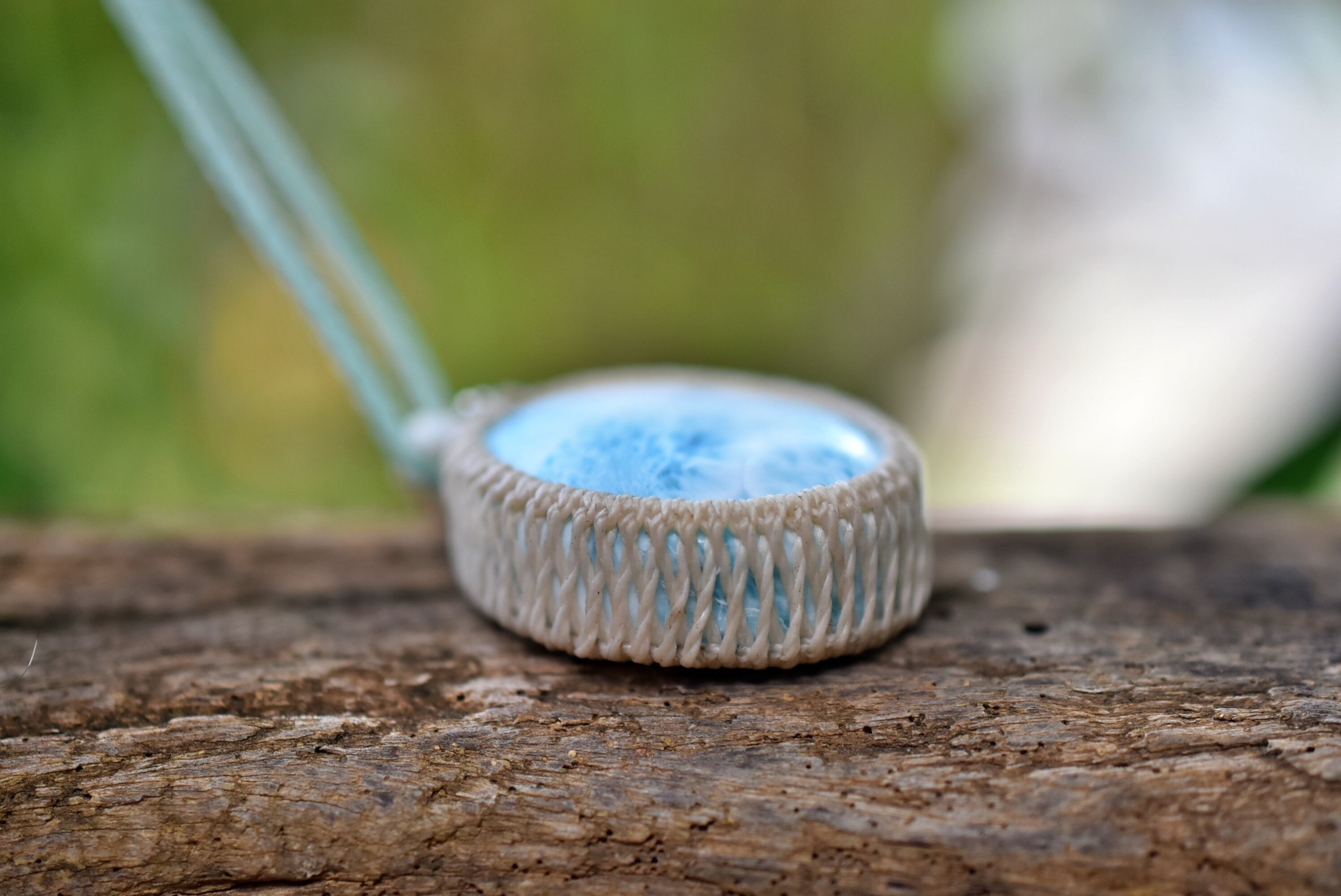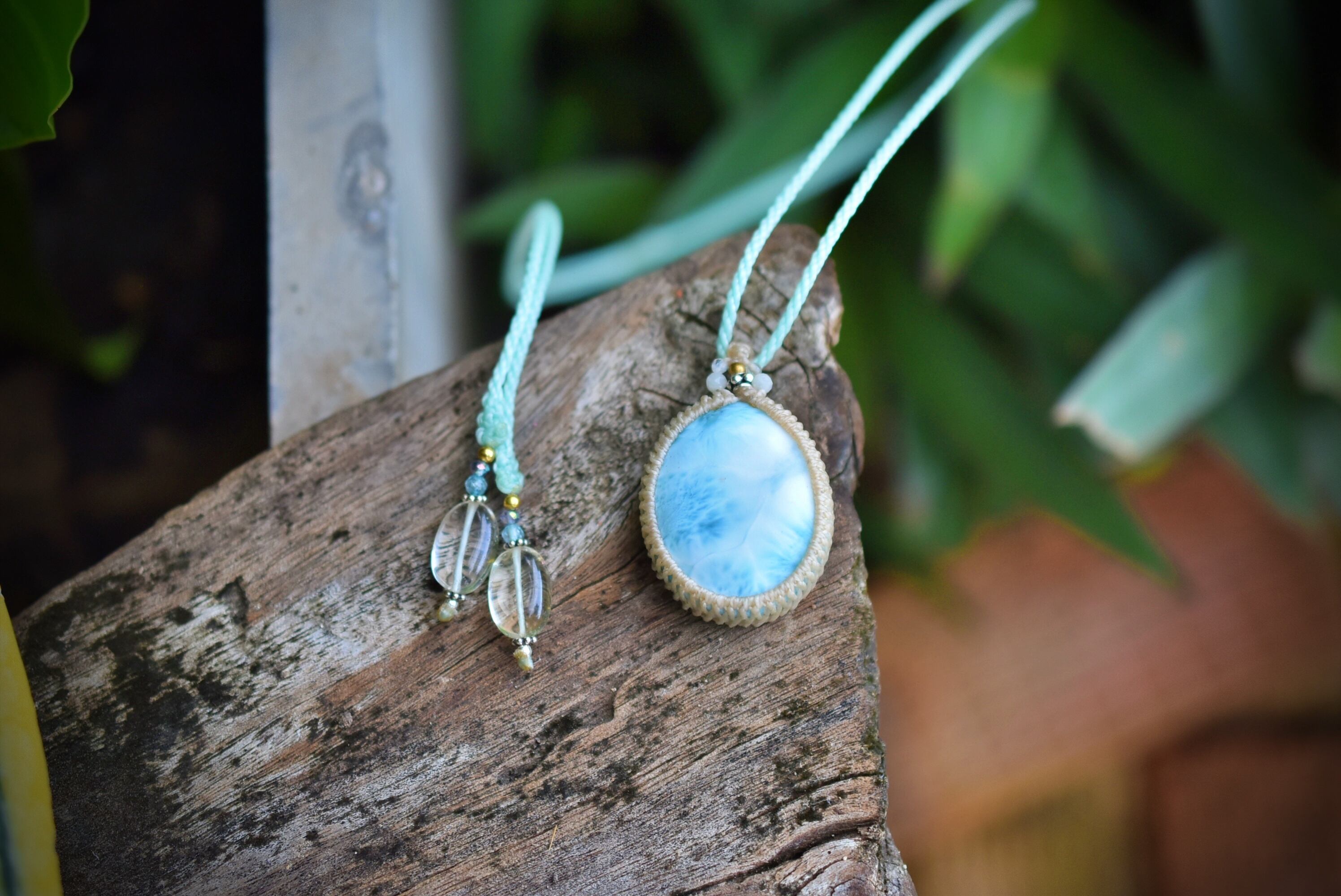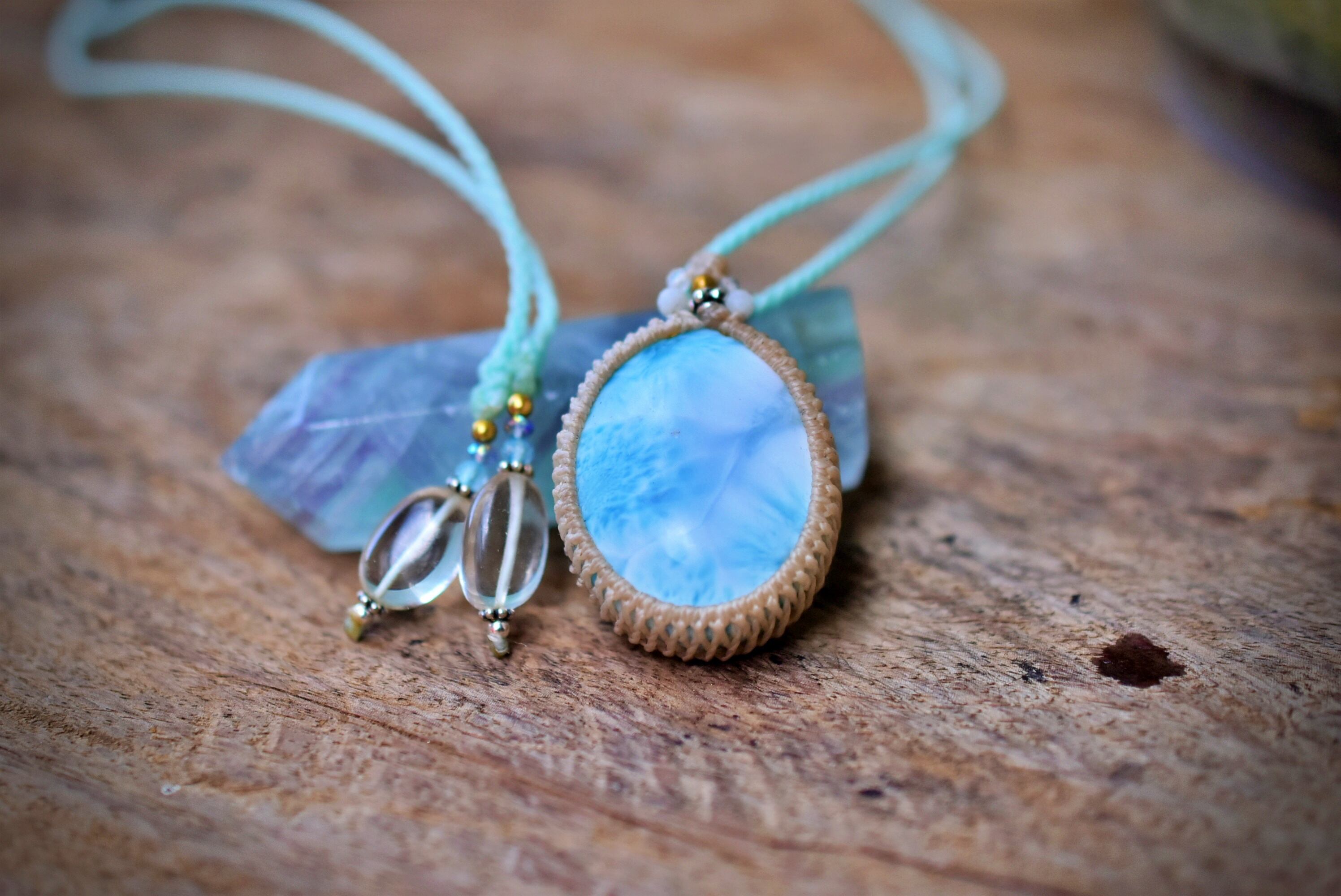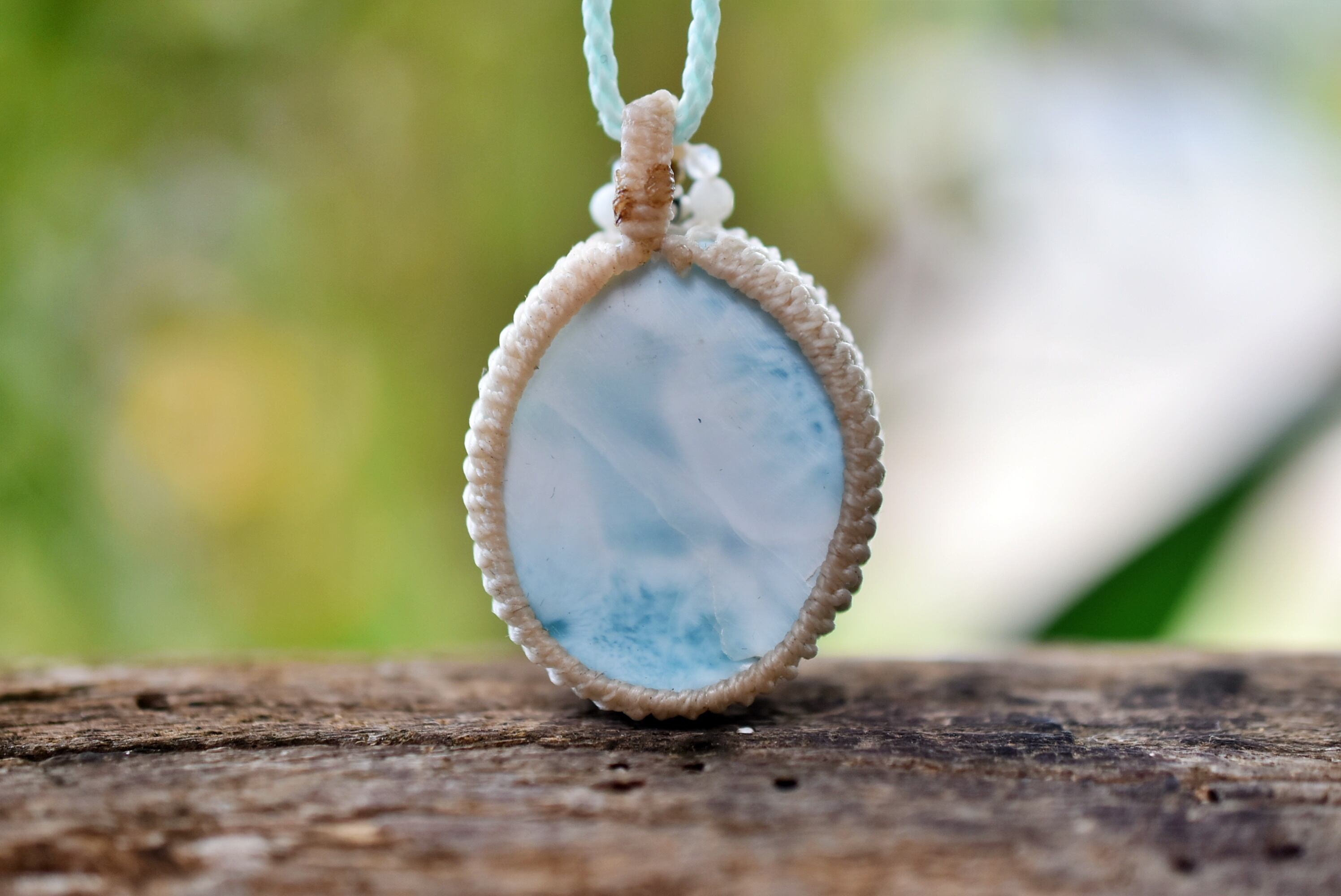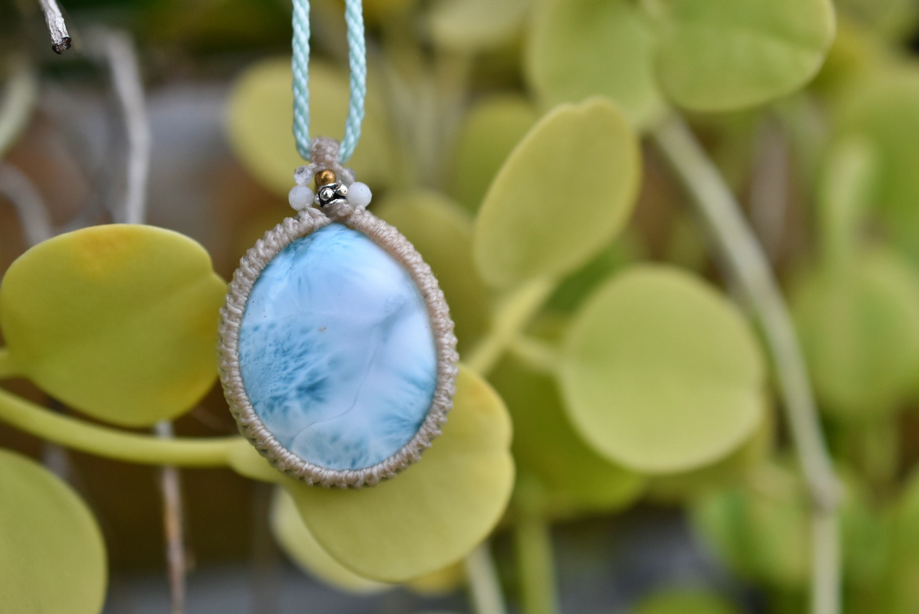 透けるホワイティ★ラリマー マクラメネックレス1208