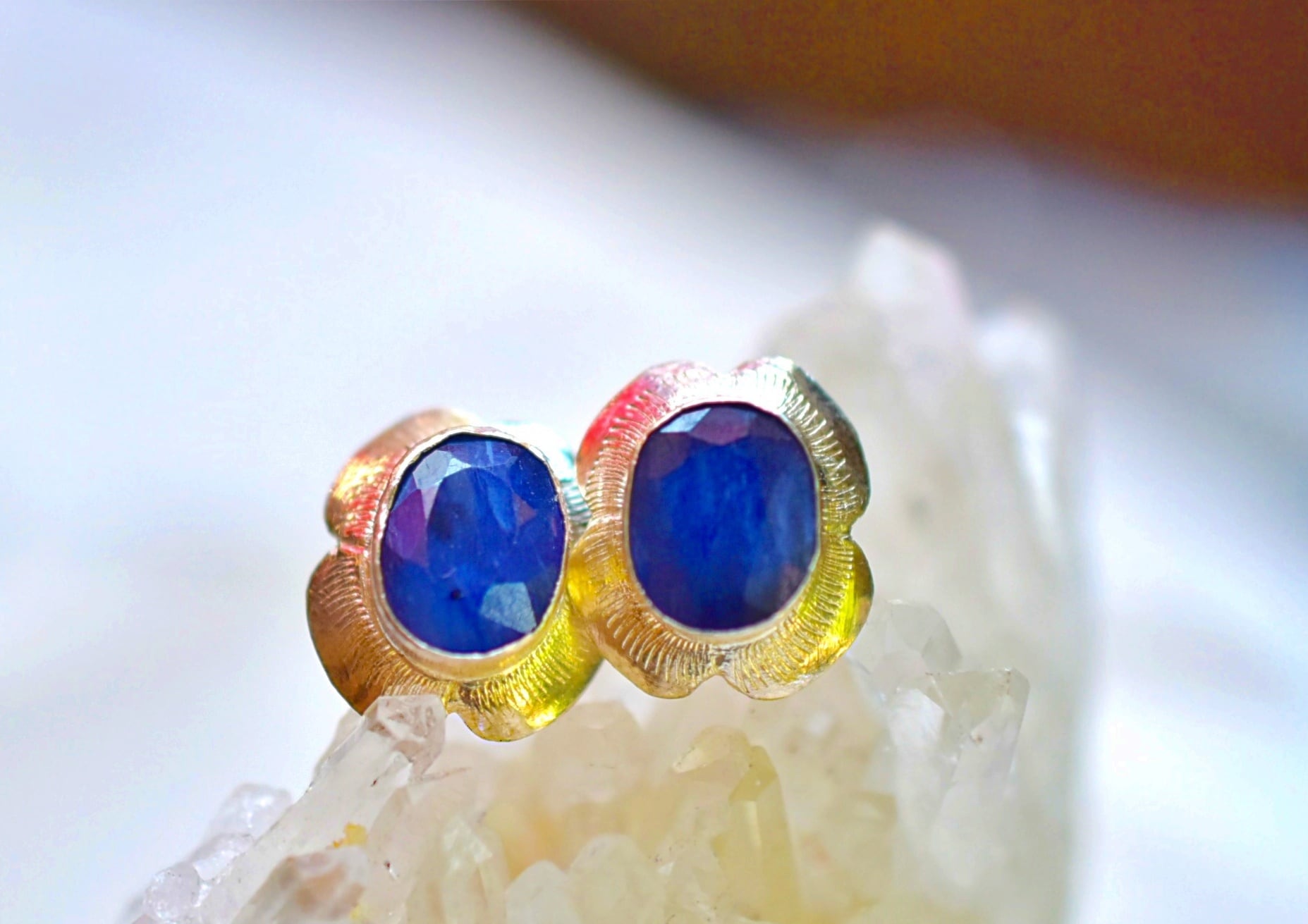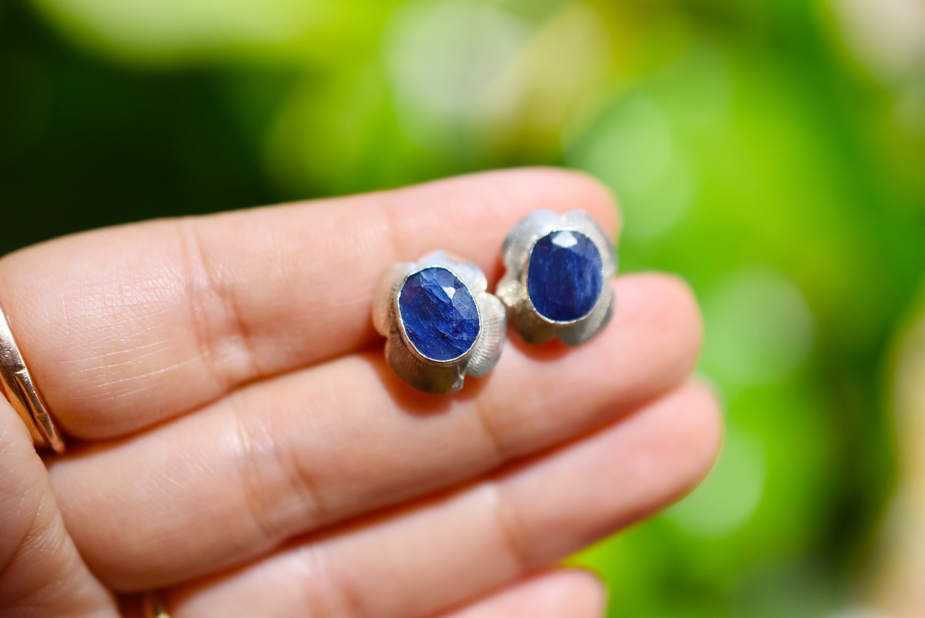 良質なミャンマー産サファイアをペアで使用したピアス