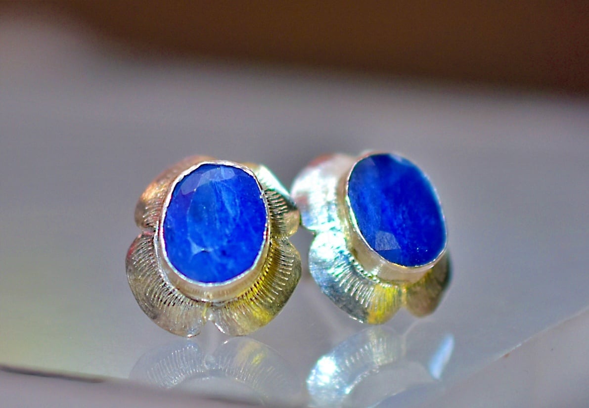 宝石カット★blue sappireシルバーピアス1191