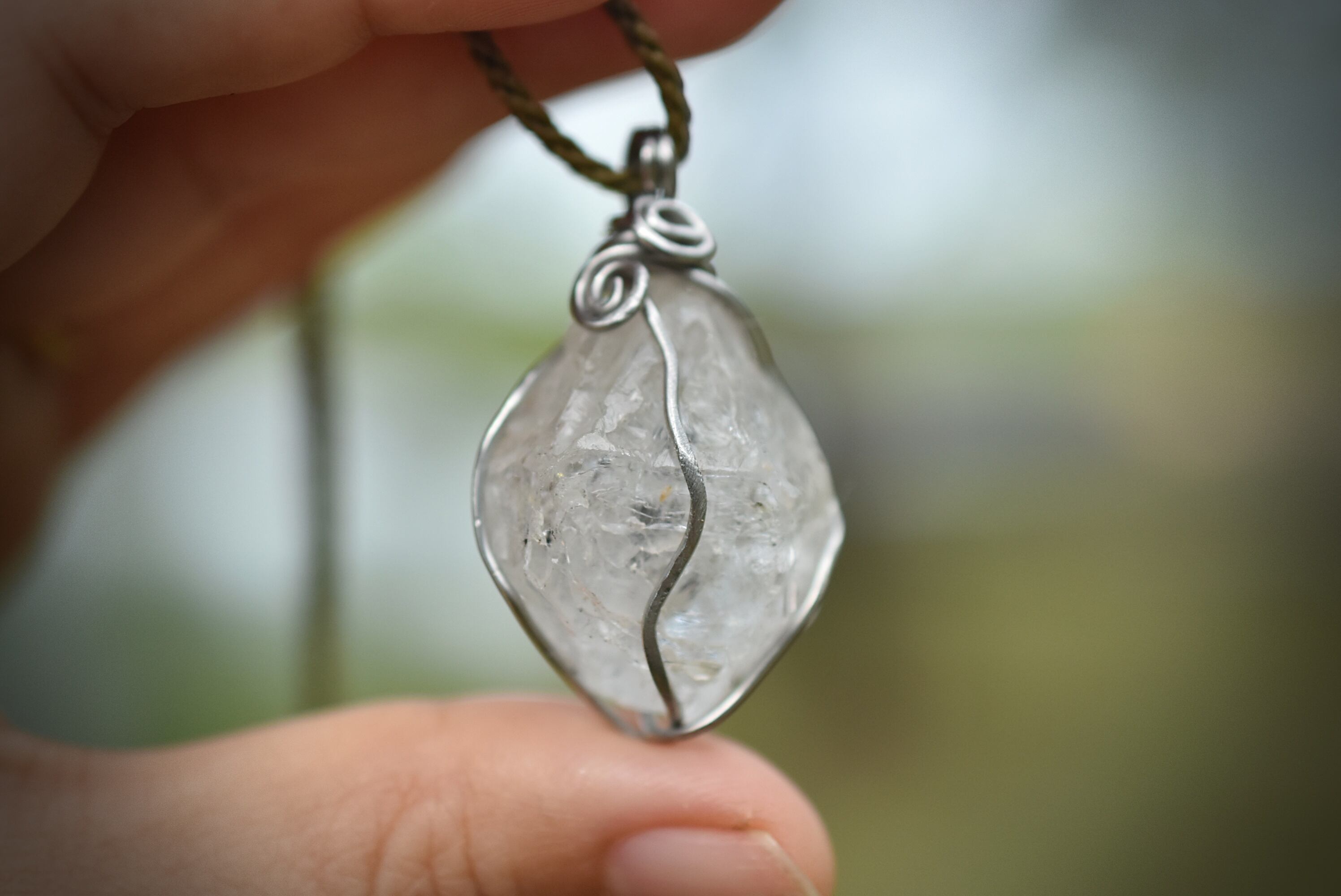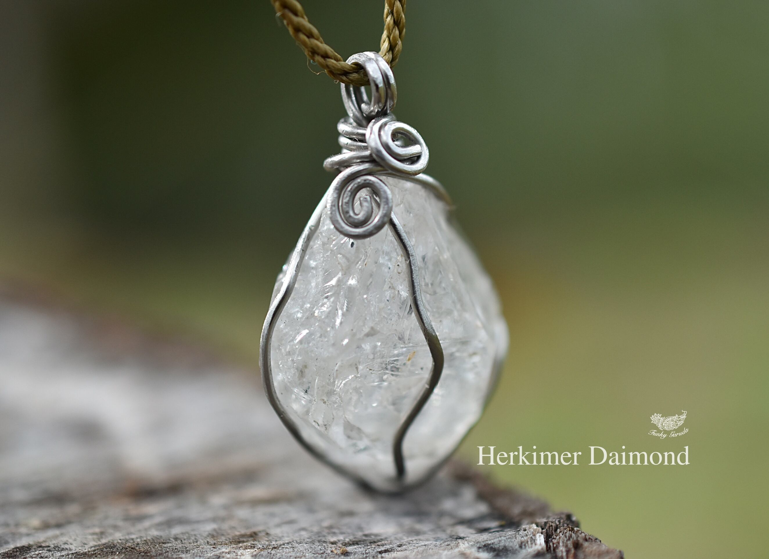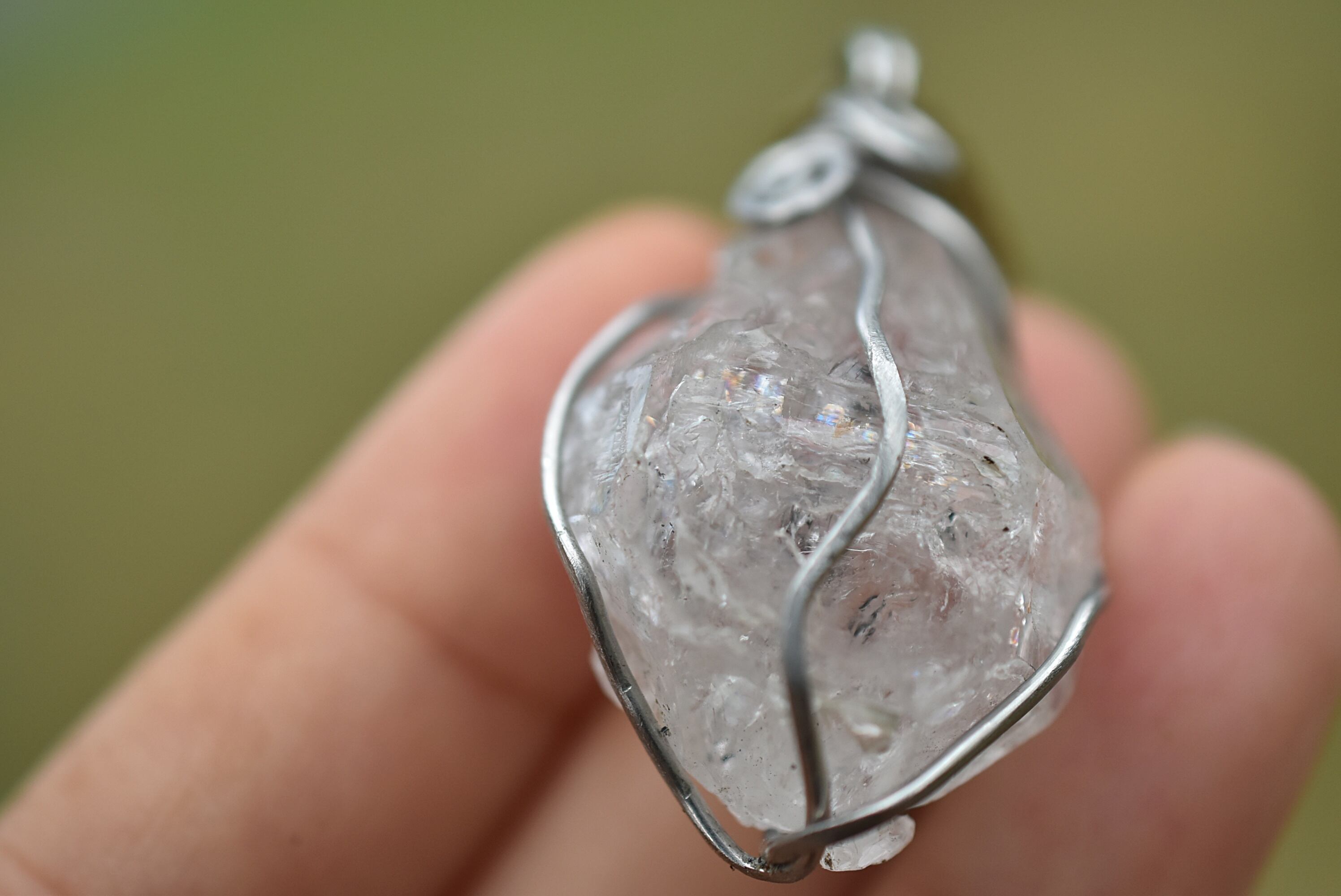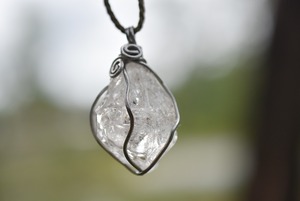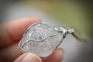 虹入り★ハーキマー水晶原石 ワイヤーワークネックレス1210