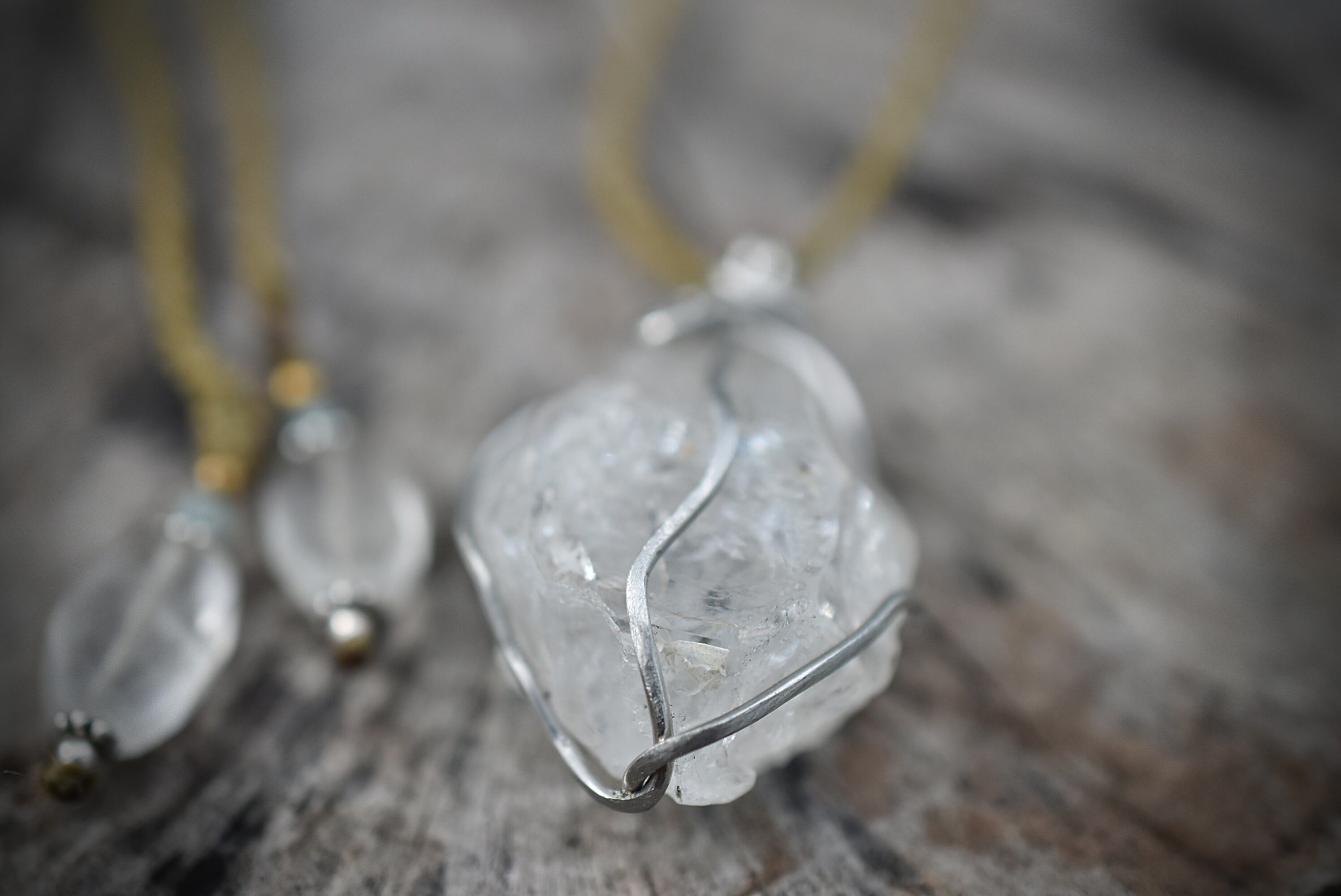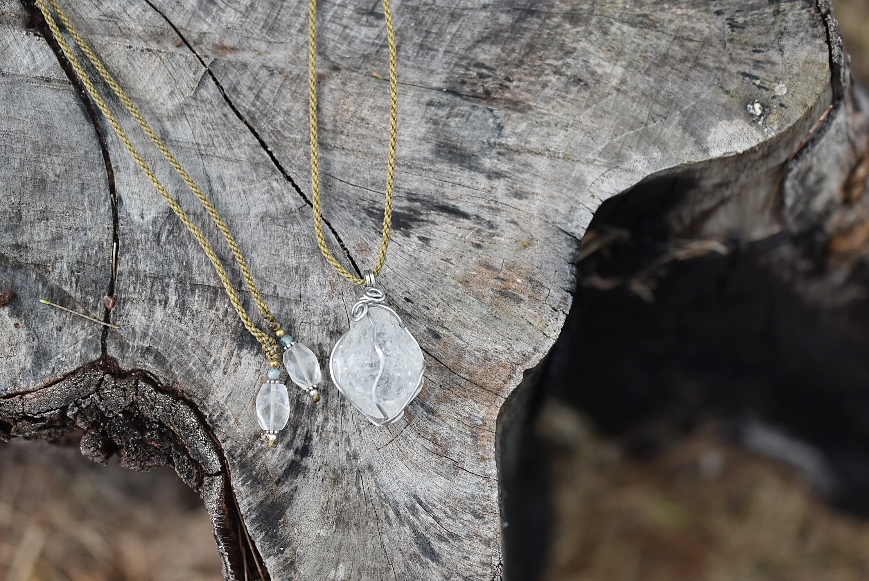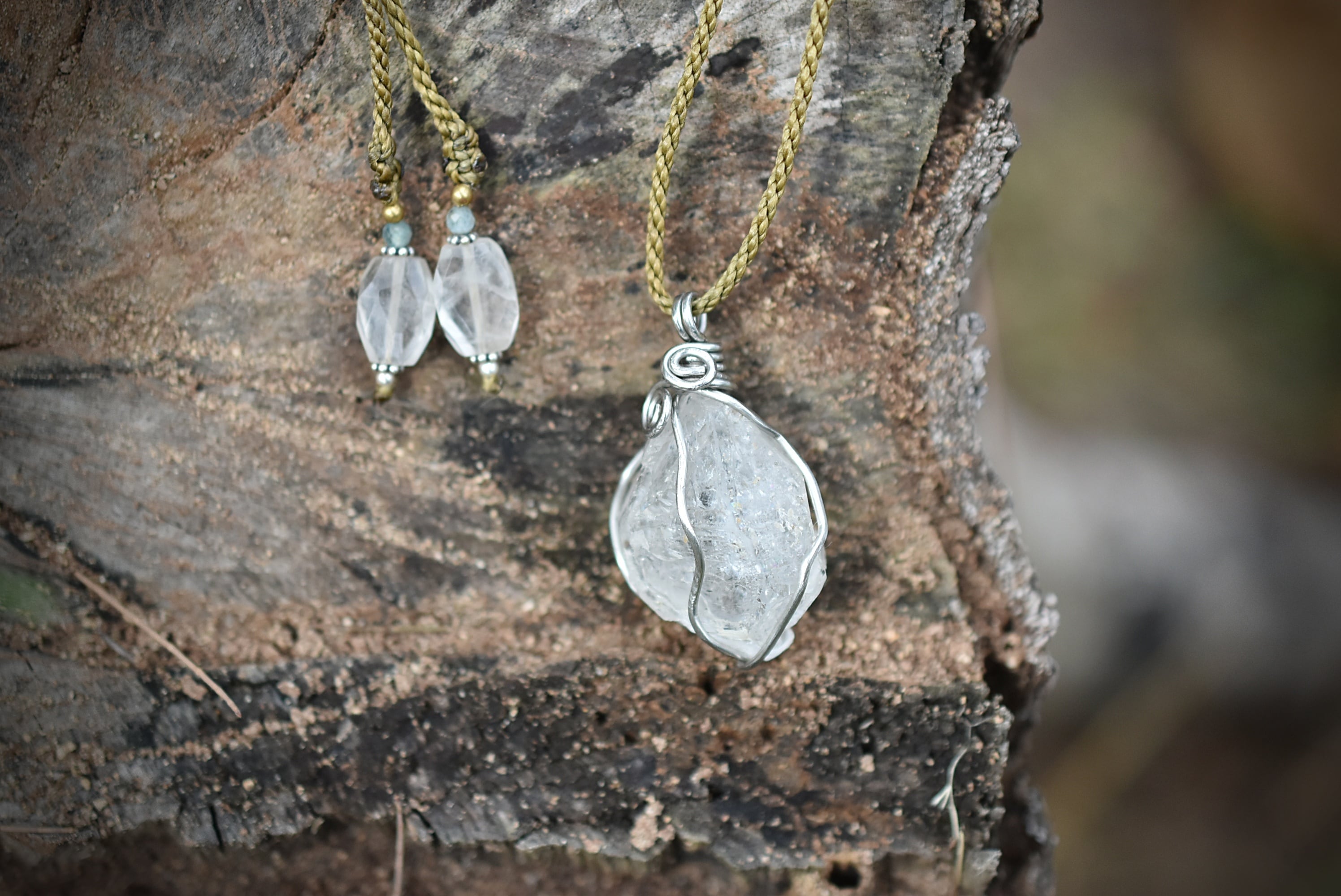 虹入り★ハーキマー水晶原石 ワイヤーワークネックレス1210