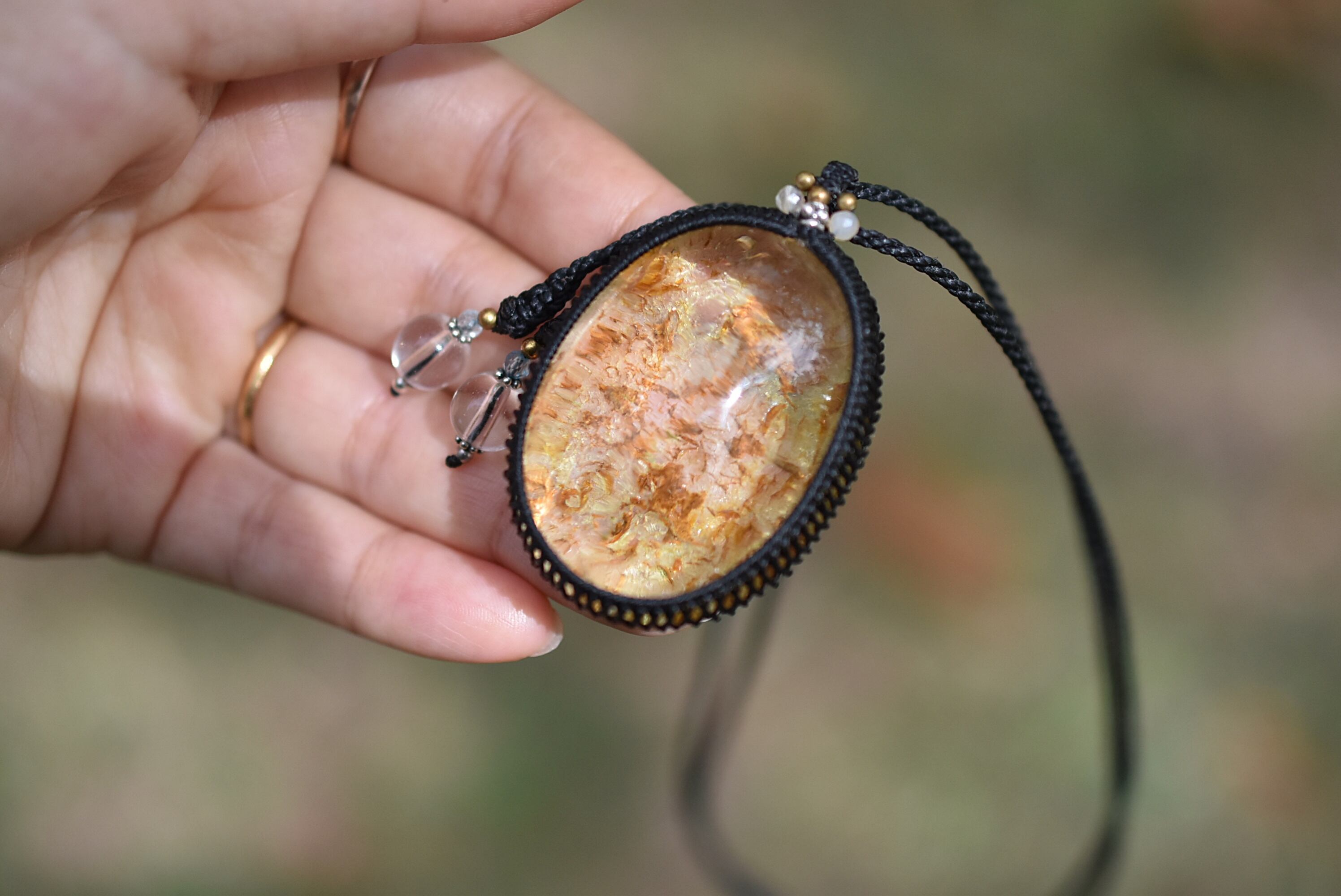 大粒黄金★ガーデンクォーツ マクラメネックレス1199