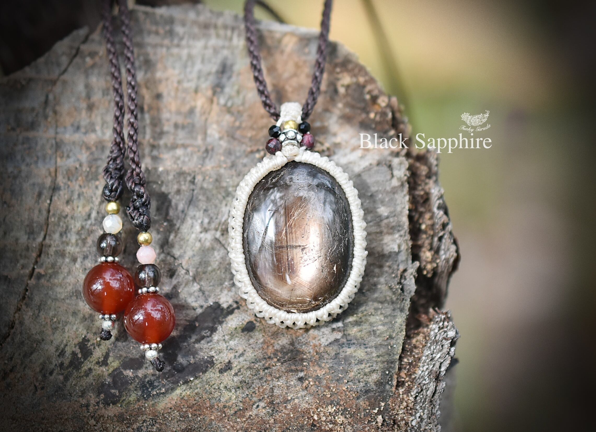 黄金スター★ブラックサファイア マクラメネックレス1202