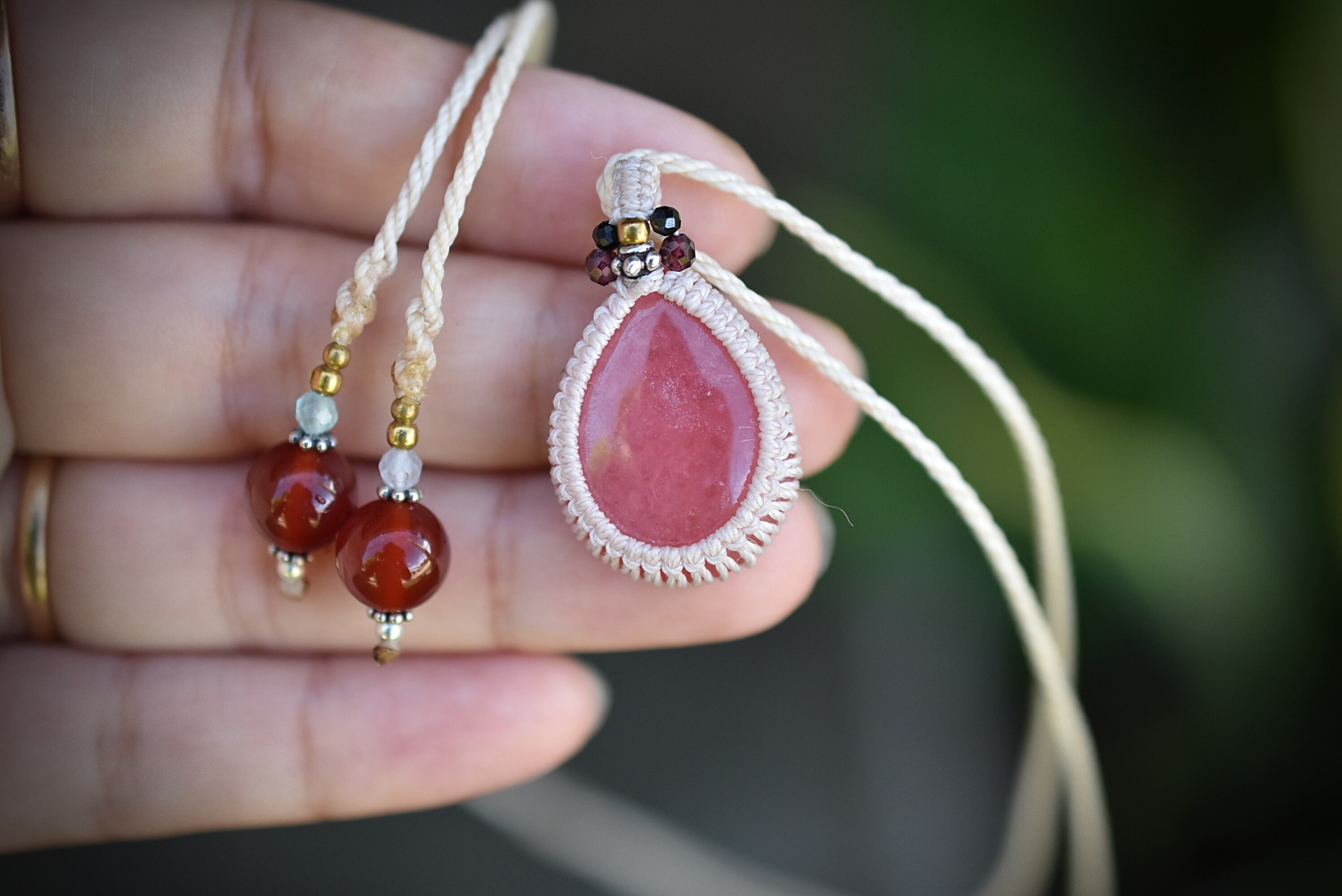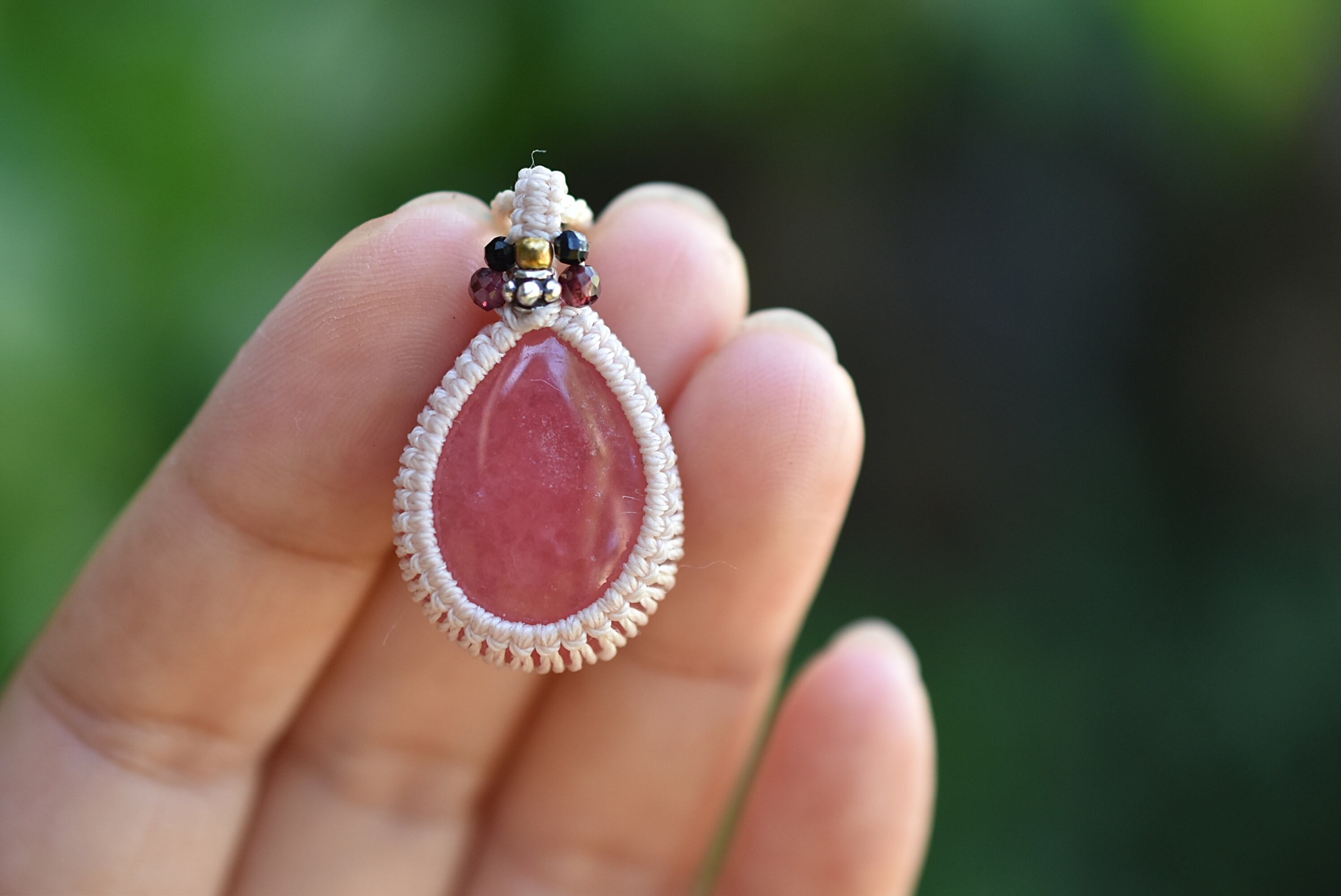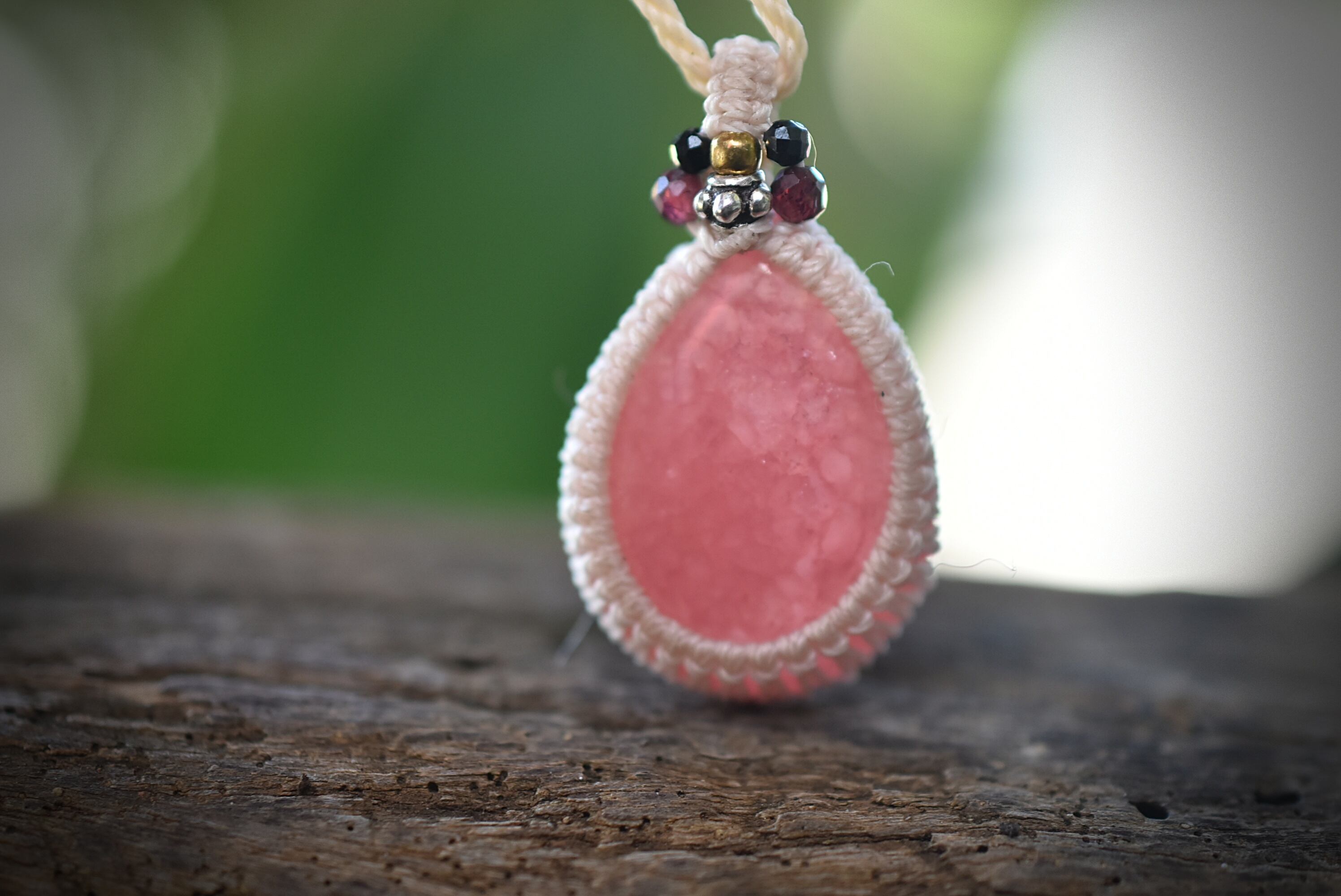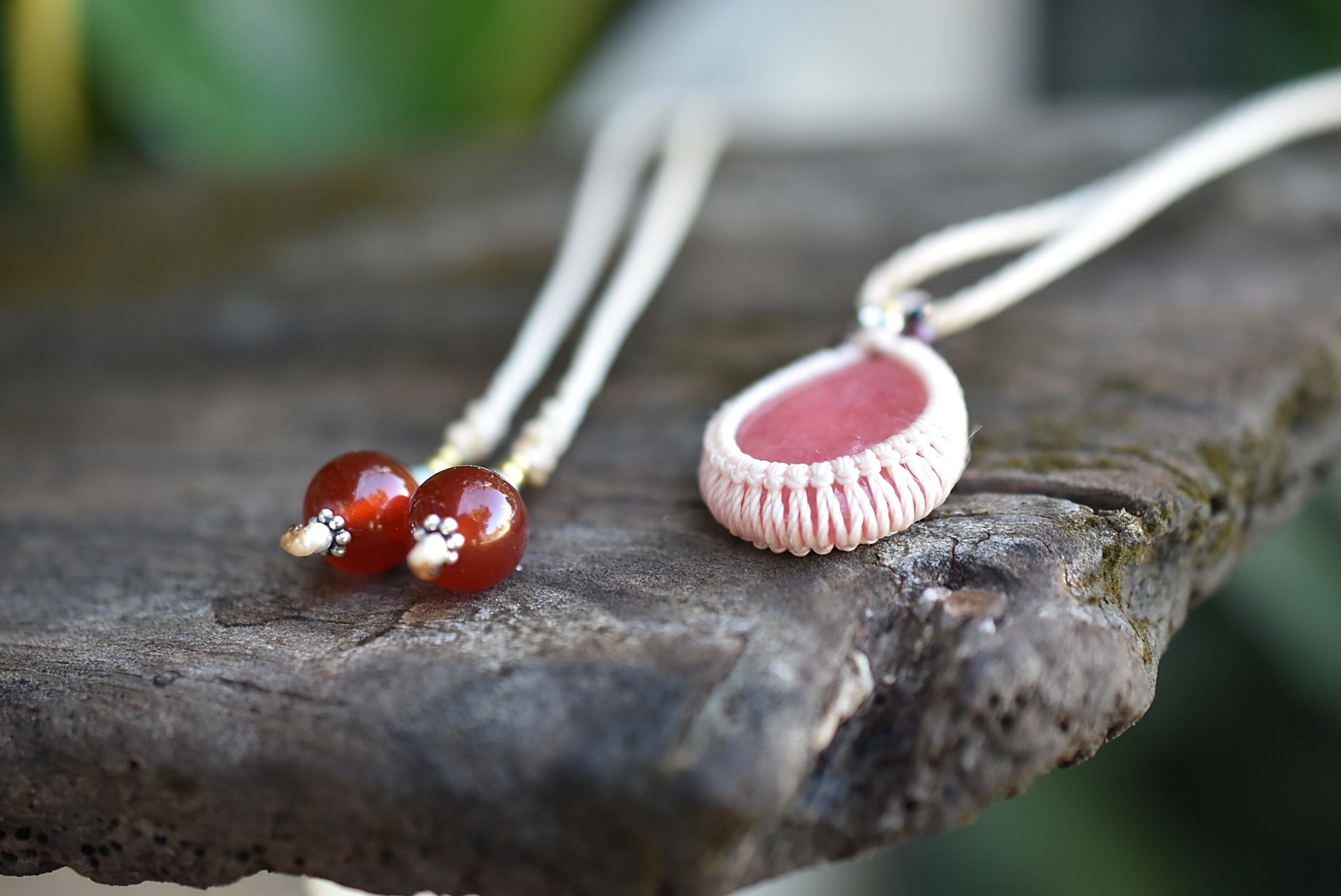◆このたびはナチュラルホワイト色の蝋引き糸を使用しマクラメ編み装飾を施しました。