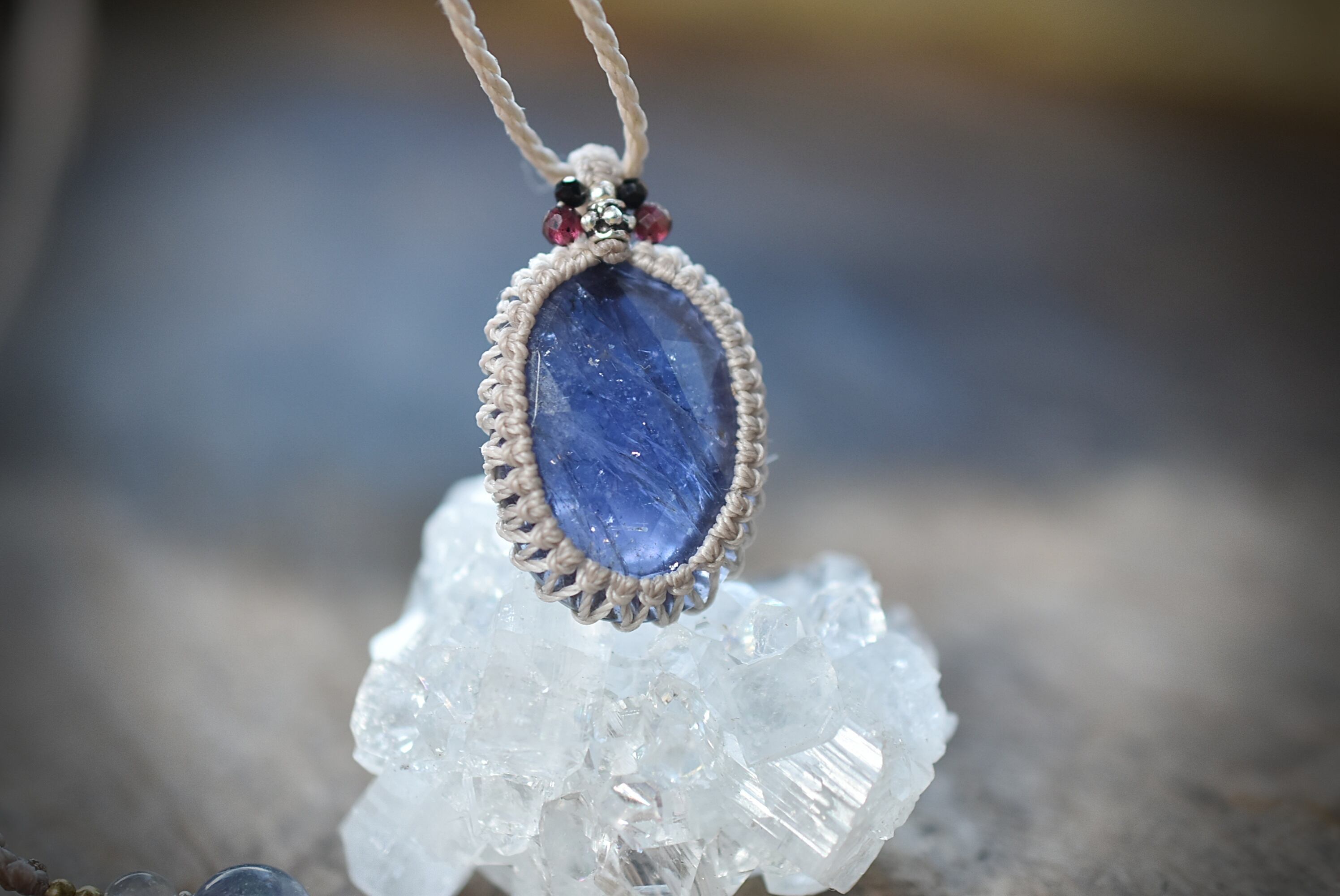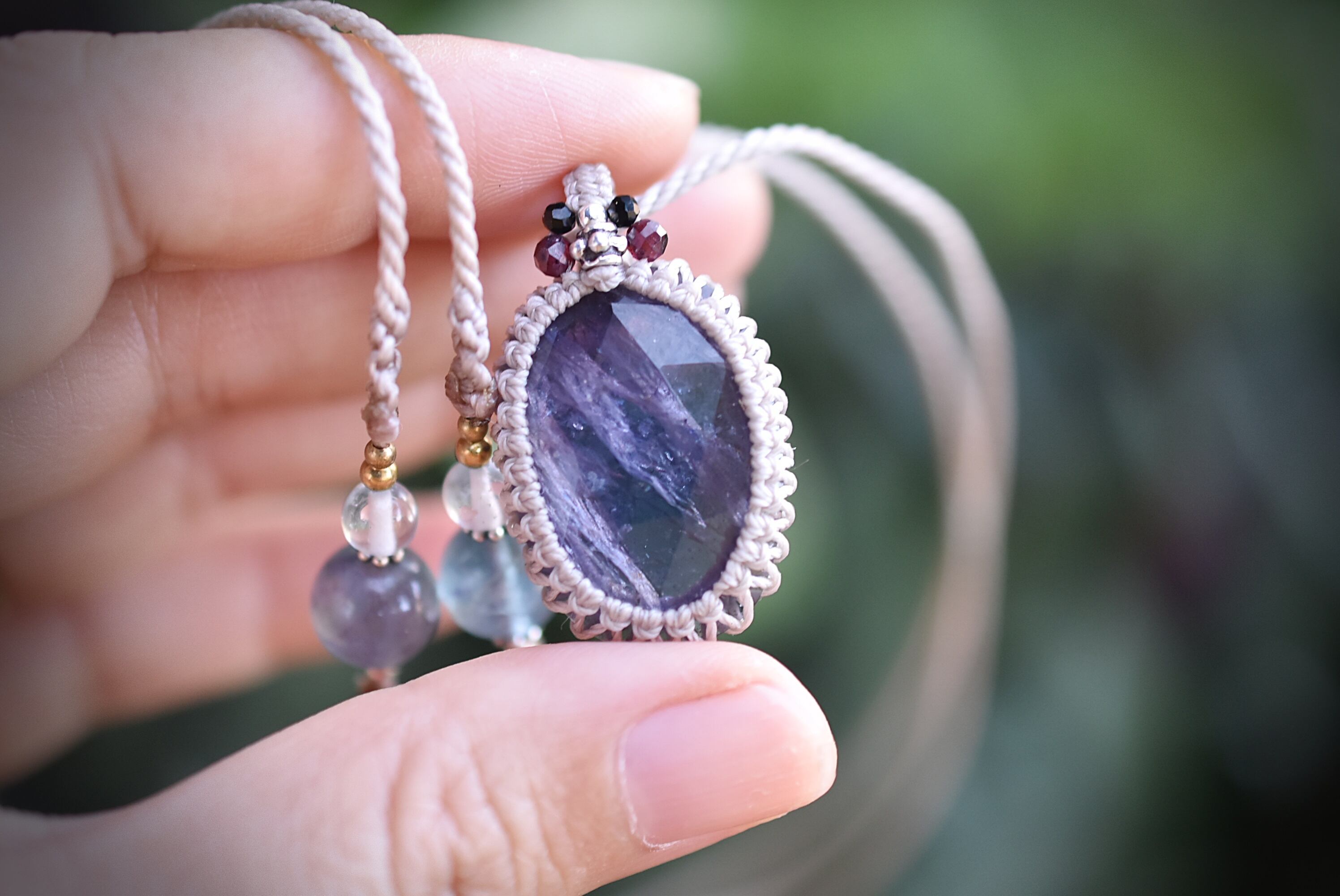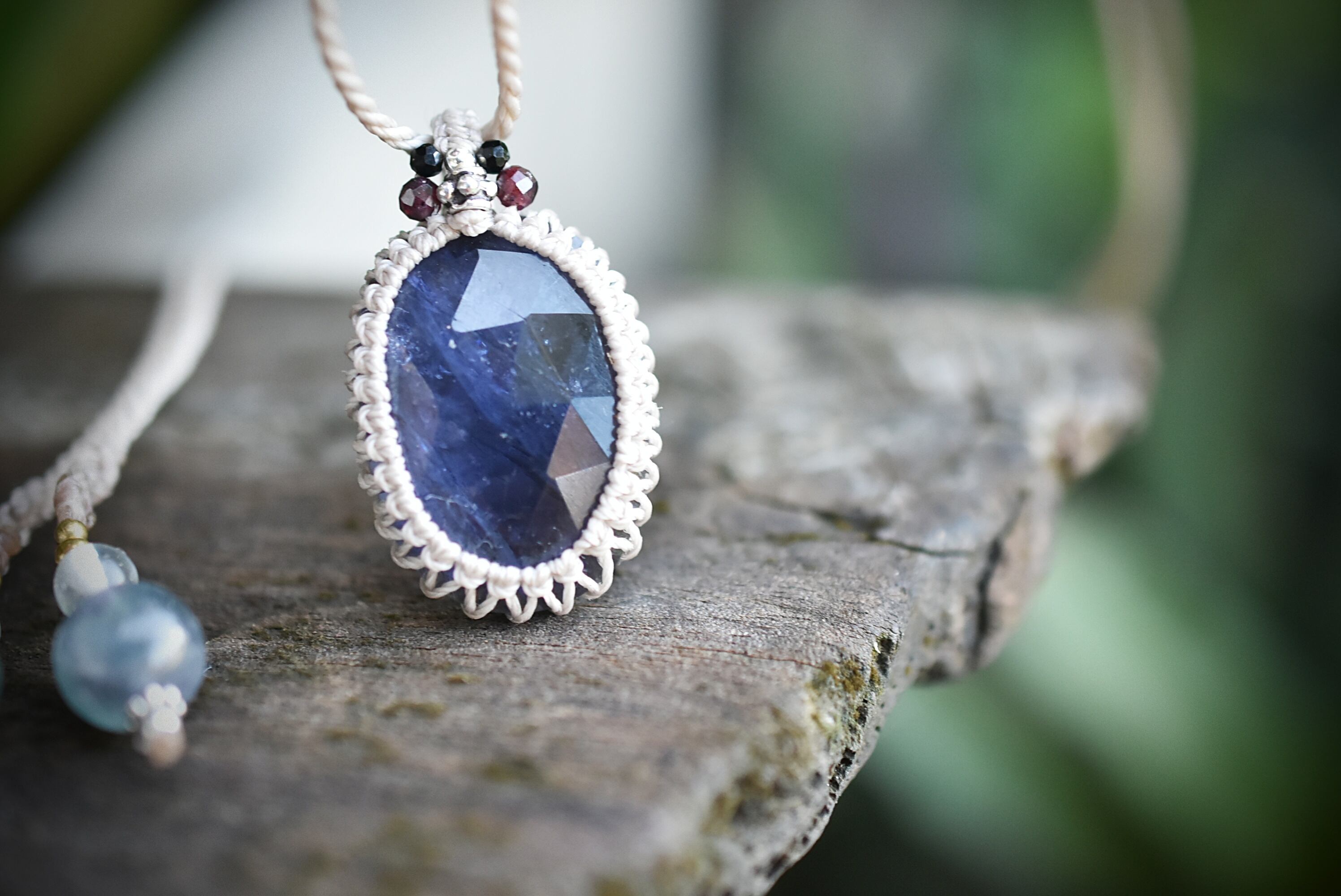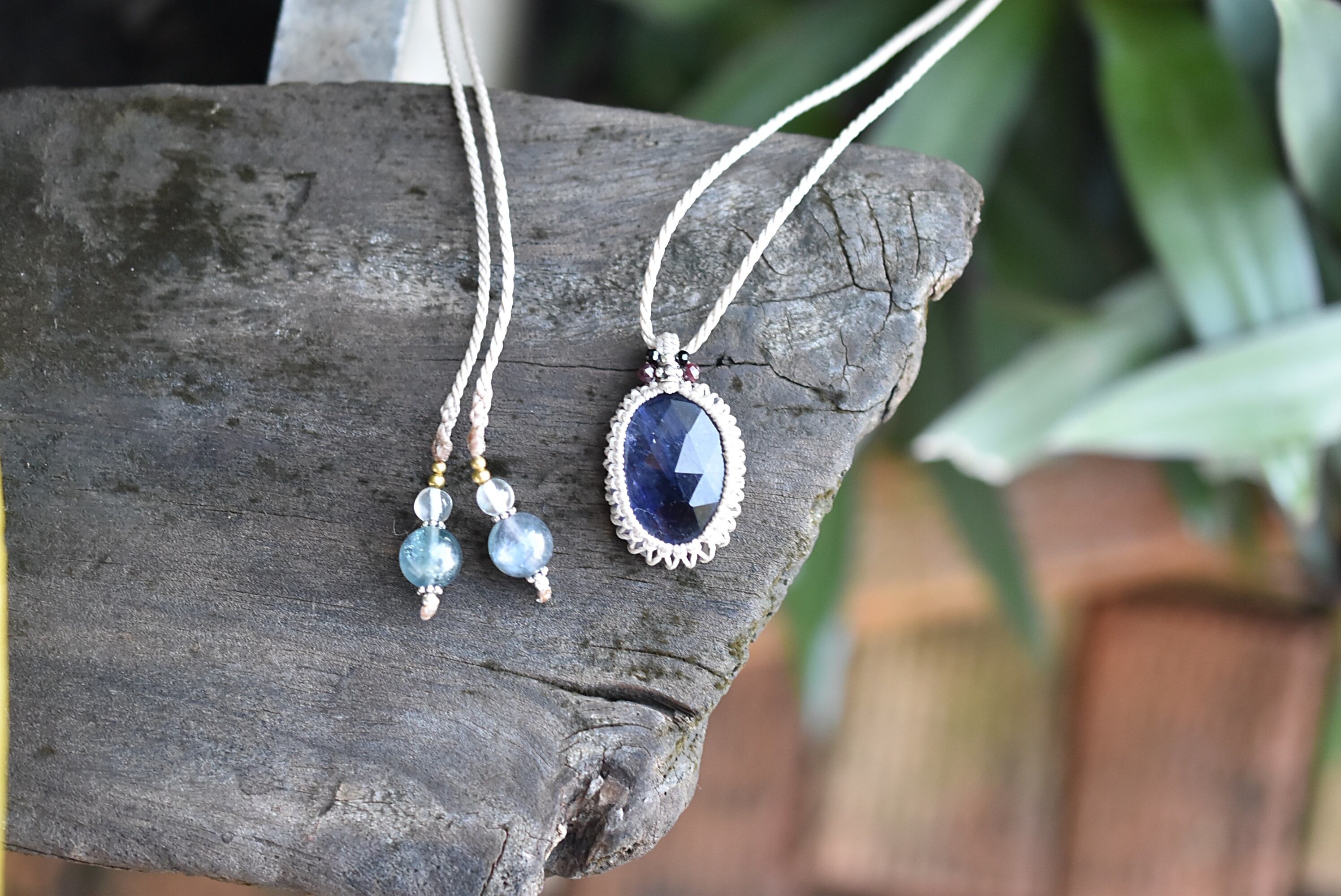 透明なのにカット入り★アイオライト マクラメネックレス1193