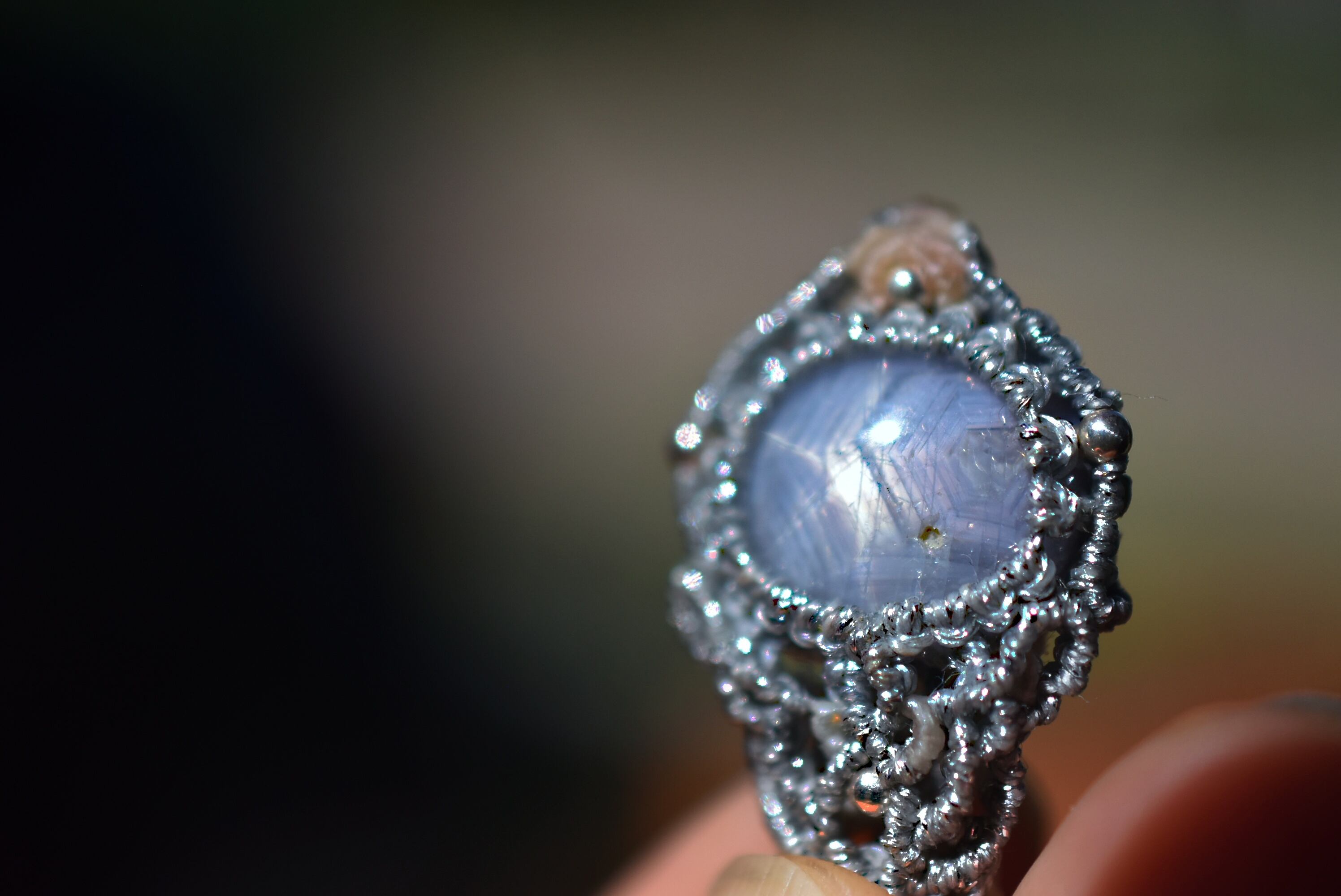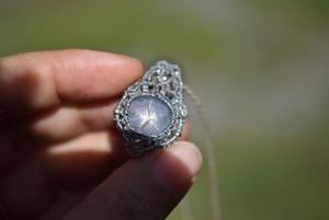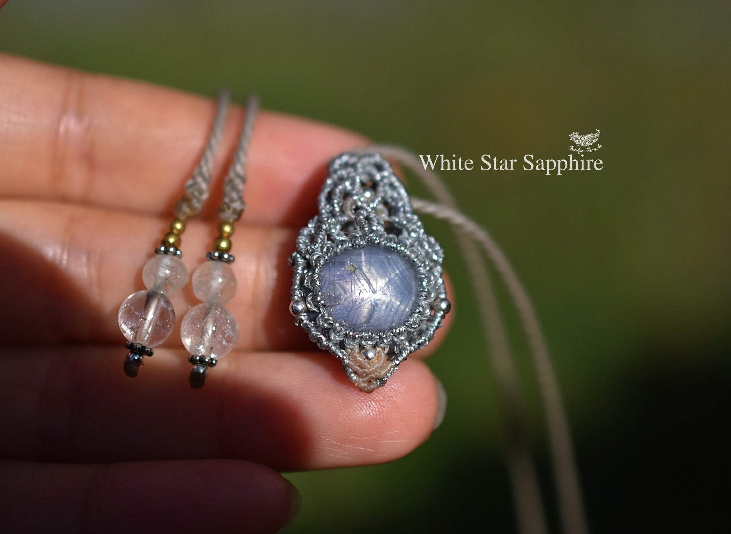 自由の星★ホワイトサファイア★マクラメネックレス1214