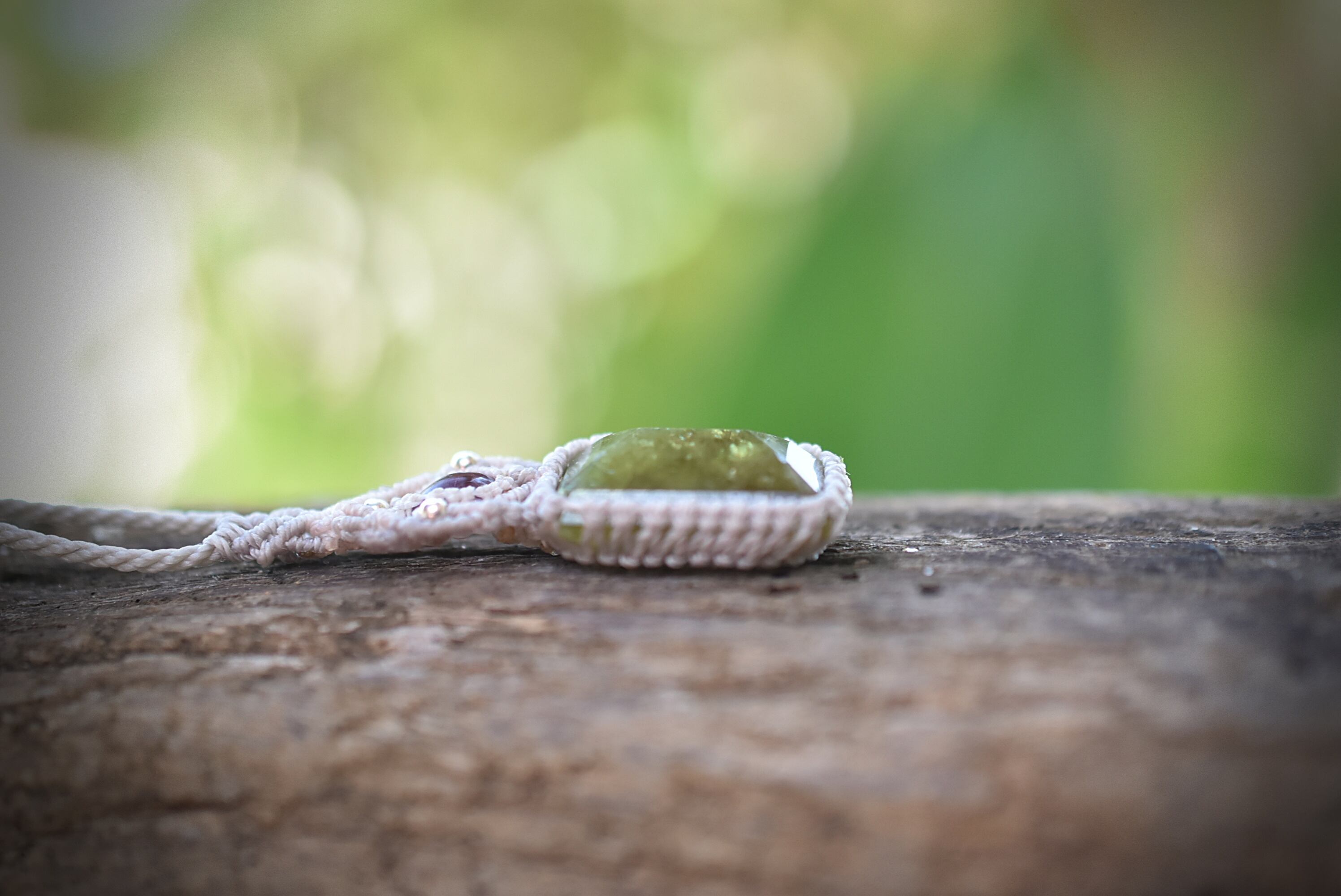 ◆このたびはヘンプ・ナチュラルホワイト、カフェオレ色の蝋引き糸を使用しマクラメ編み装飾を施しました