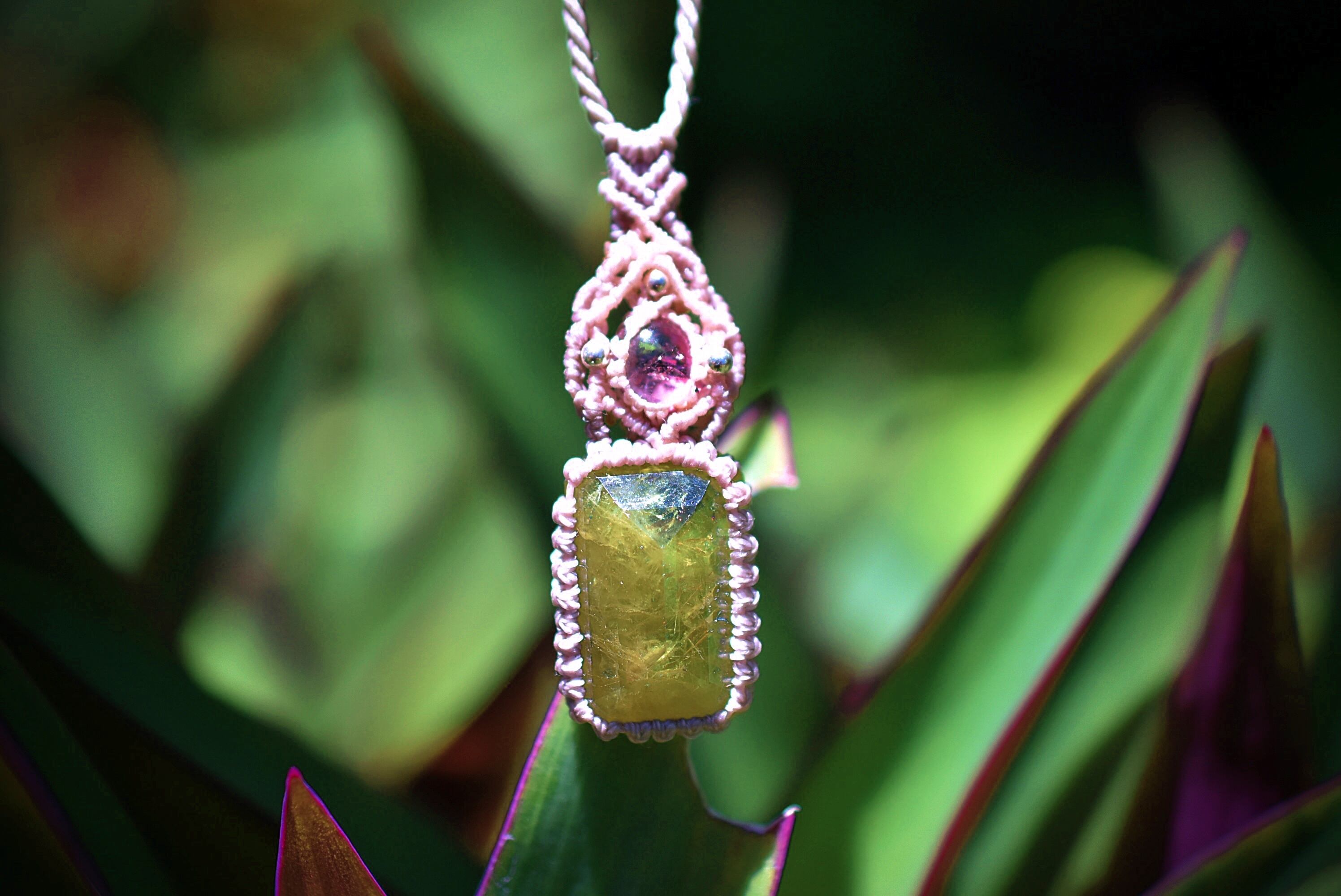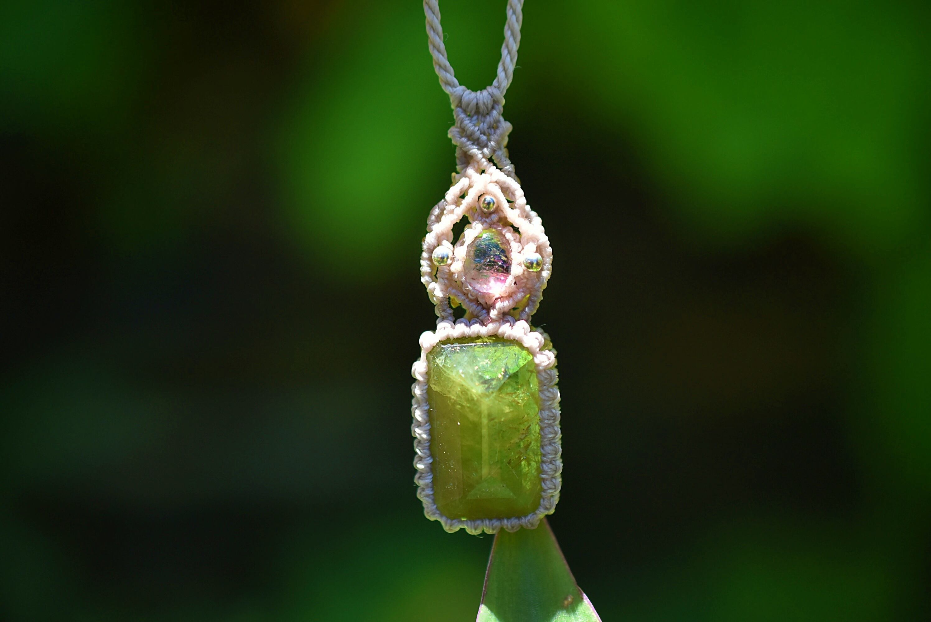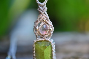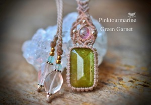★バイカラーピンクトルマリン★グリーンガーネット マクラメネックレス1213