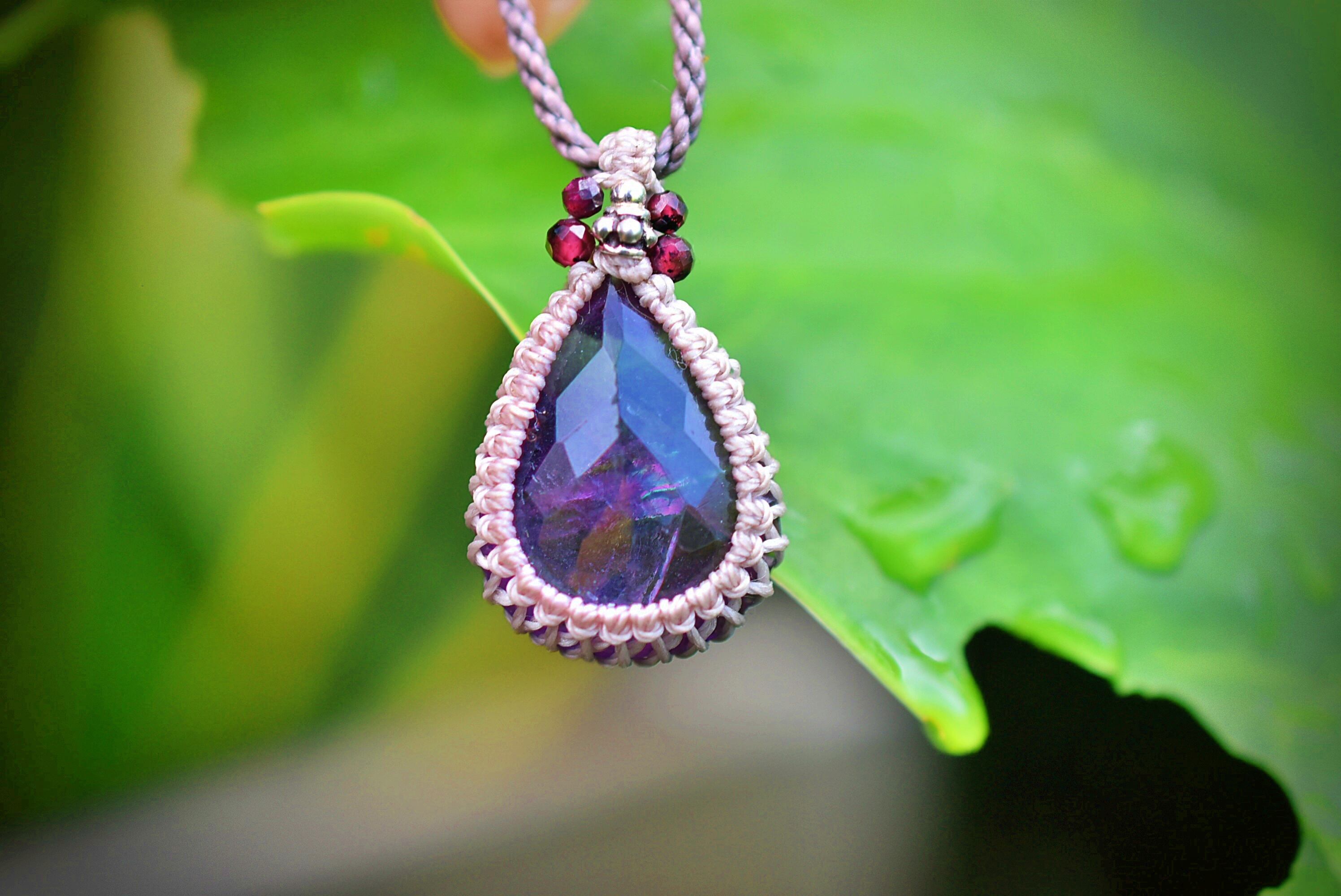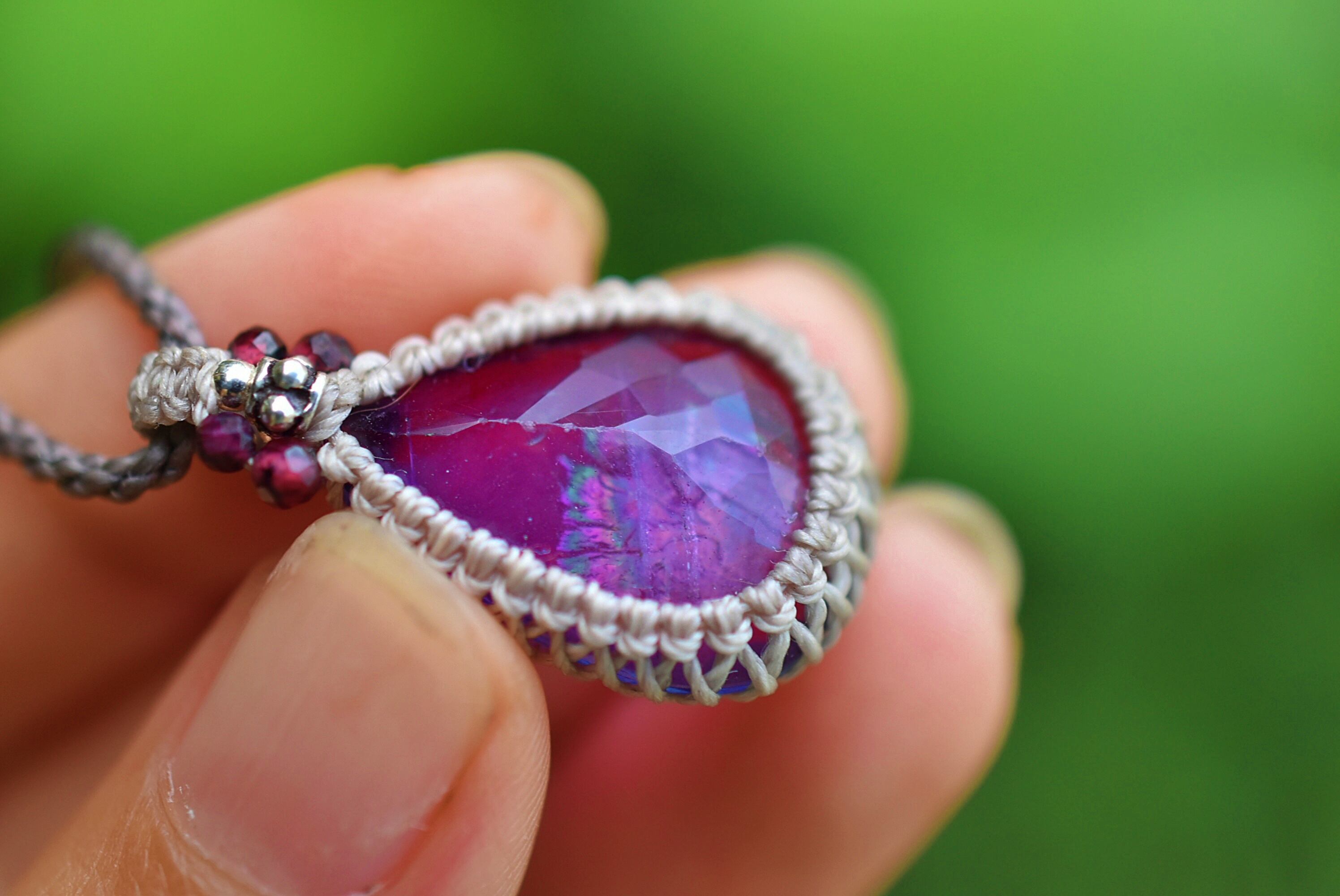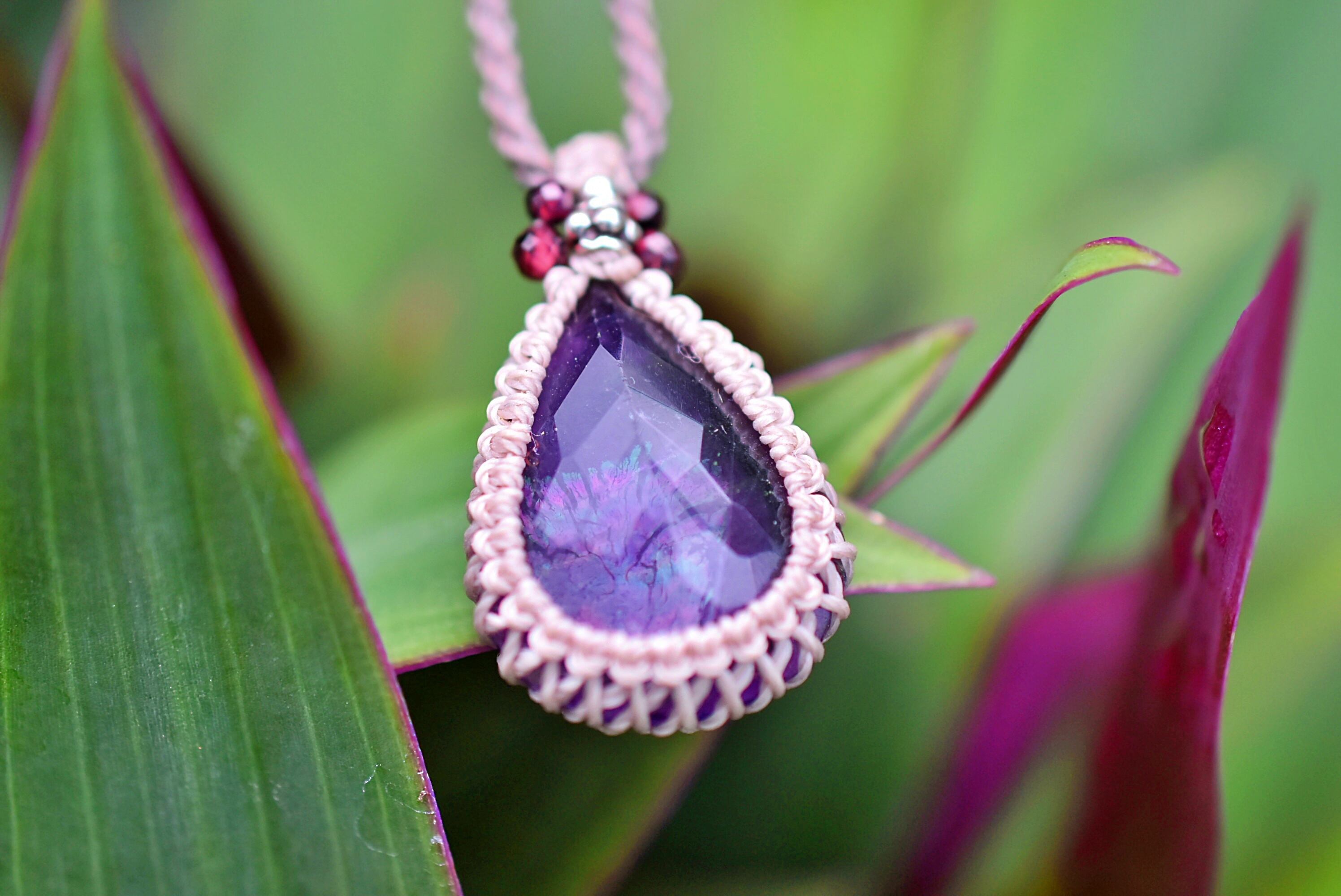ファセットカット★虹入り★アメジスト マクラメネックレス1219