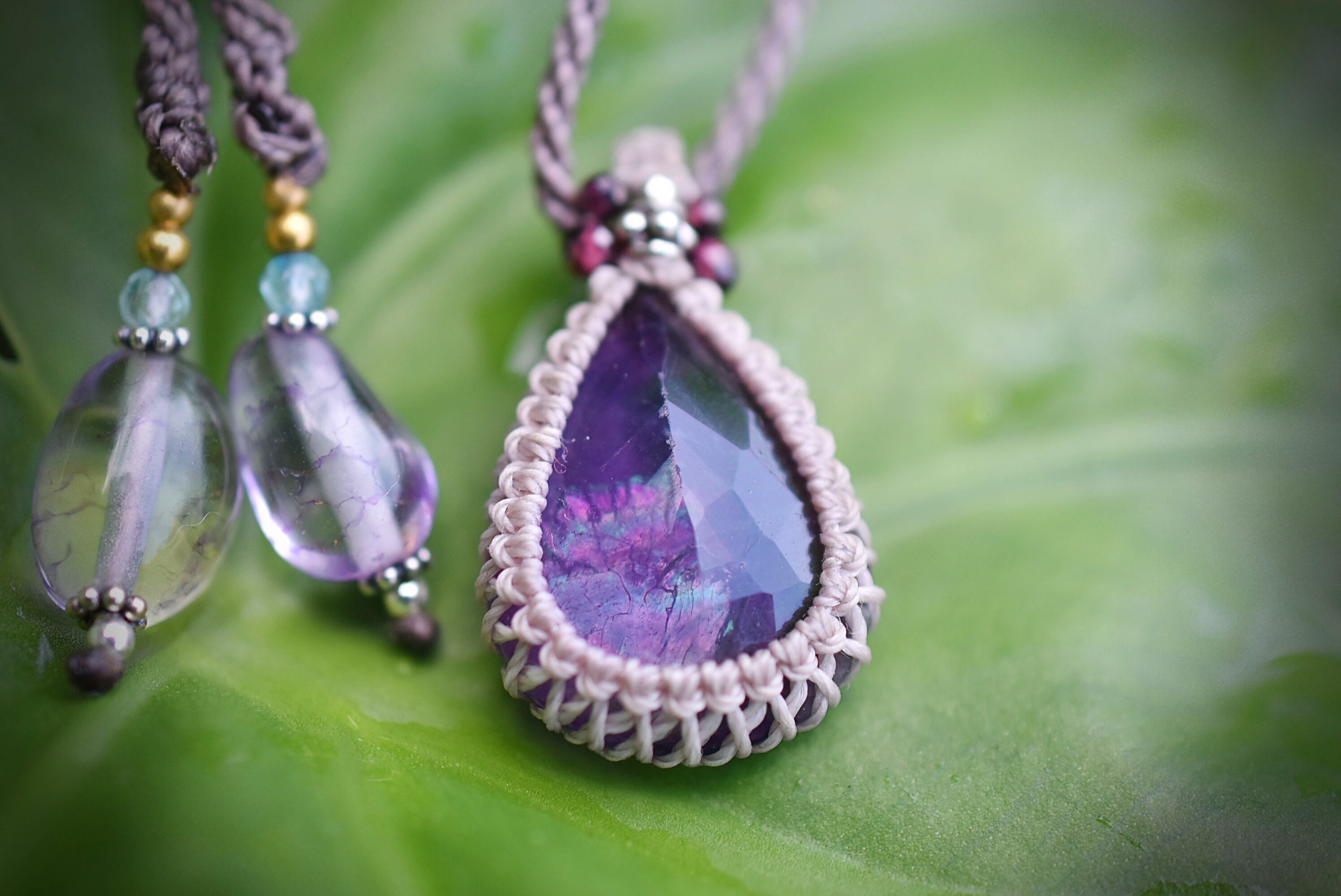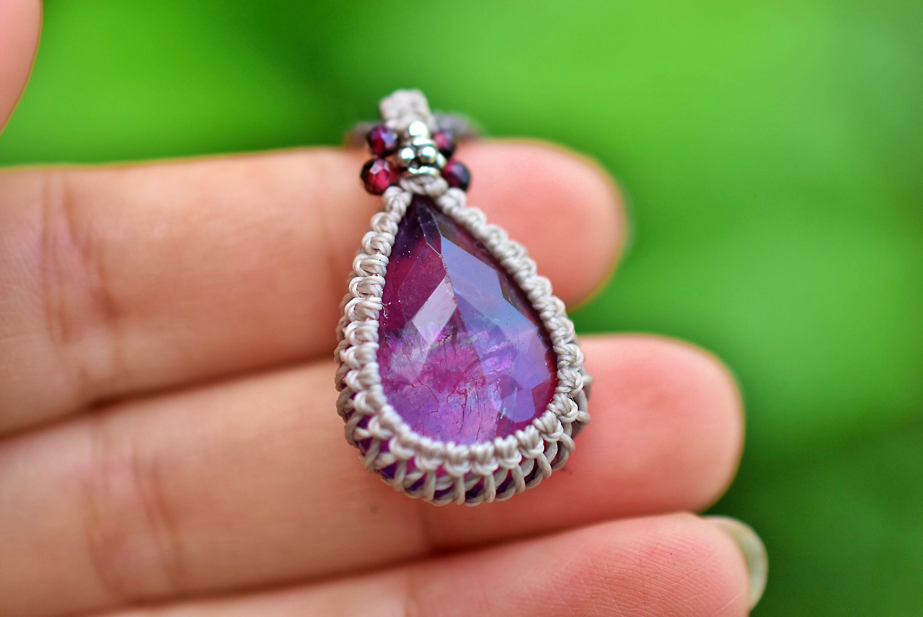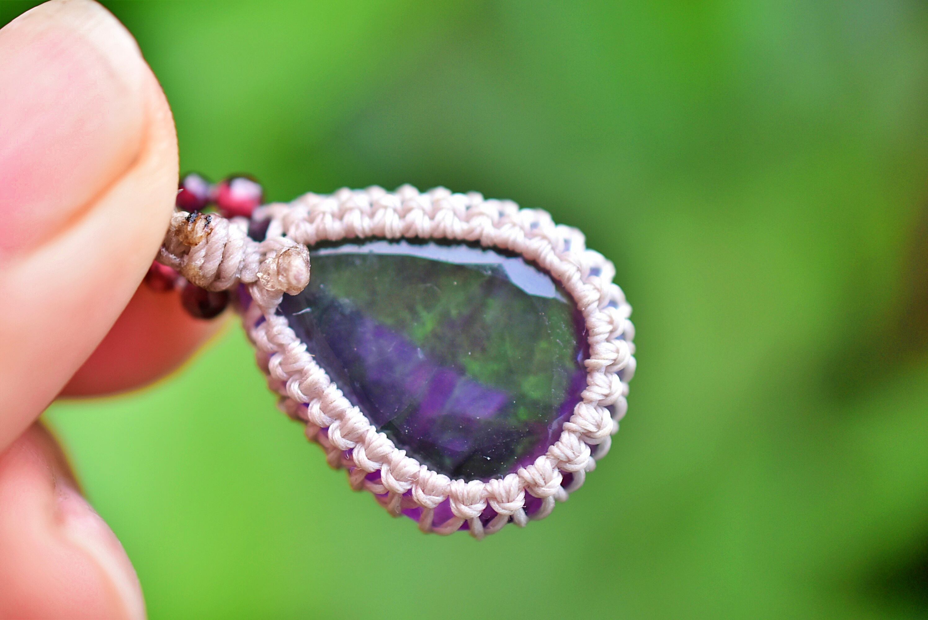 ファセットカット★虹入り★アメジスト マクラメネックレス1219