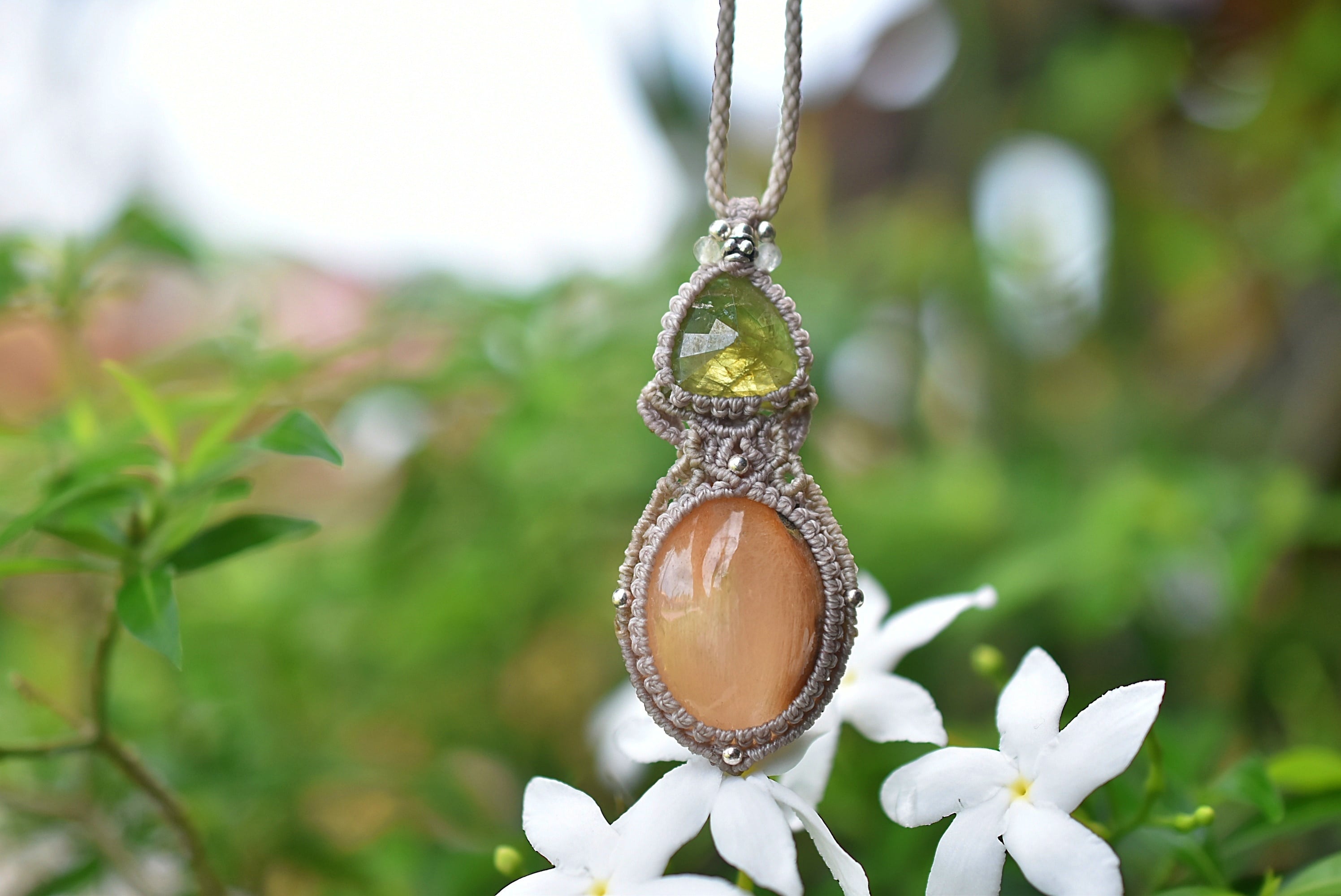 優しい果実★アンフィボール★グリーンガーネット マクラメネックレス1223
