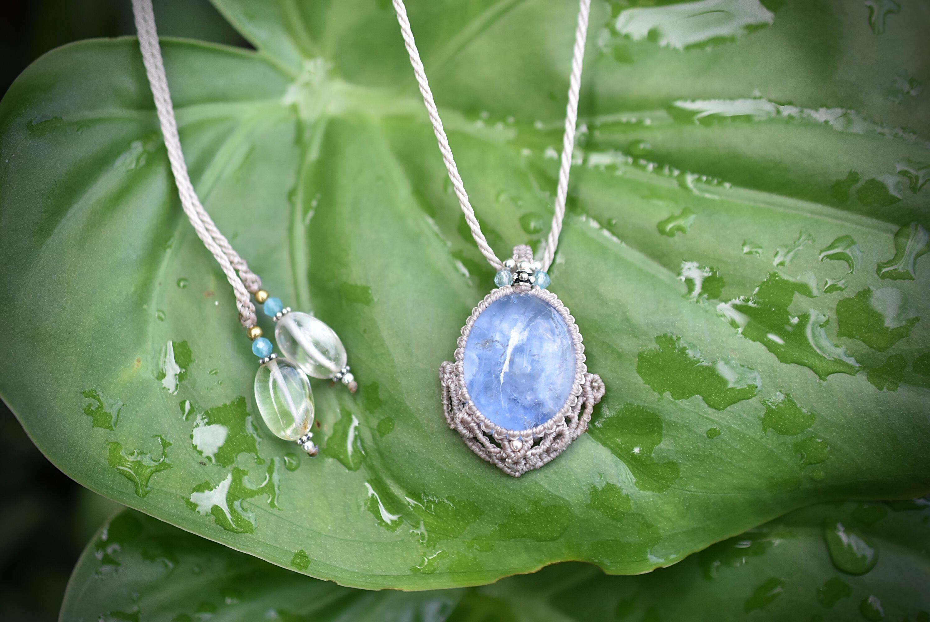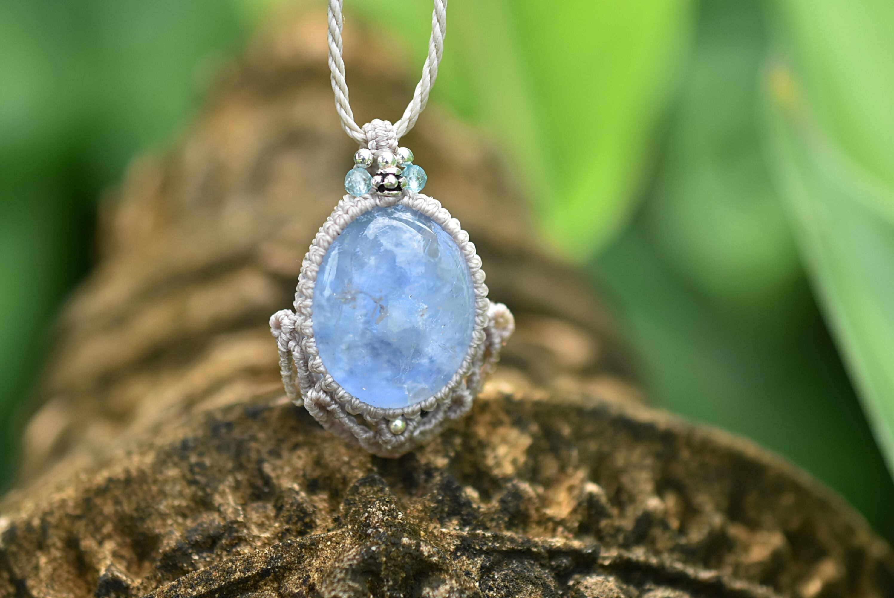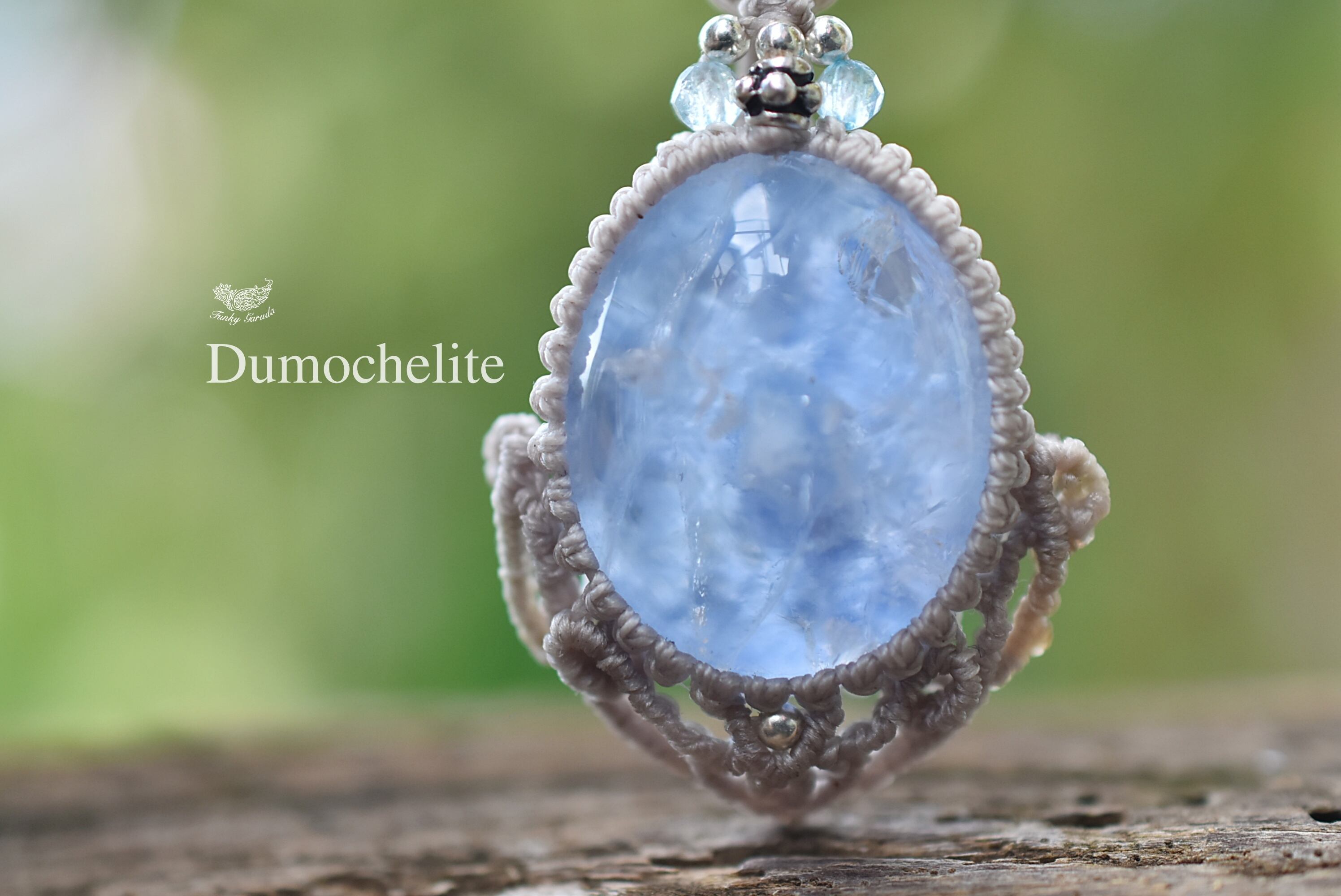 蒼い雲★貫入★デュモルチェライトインクォーツ マクラメネックレス1226