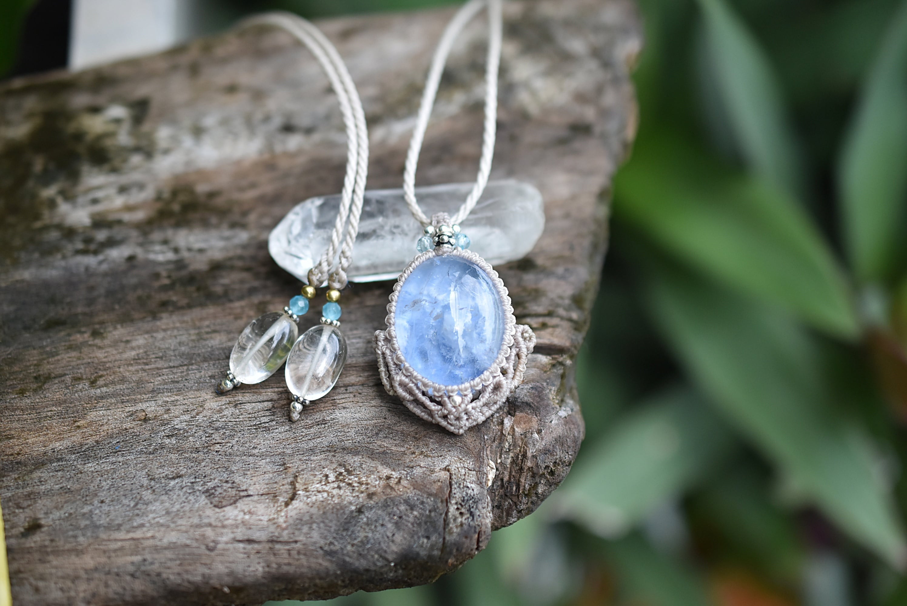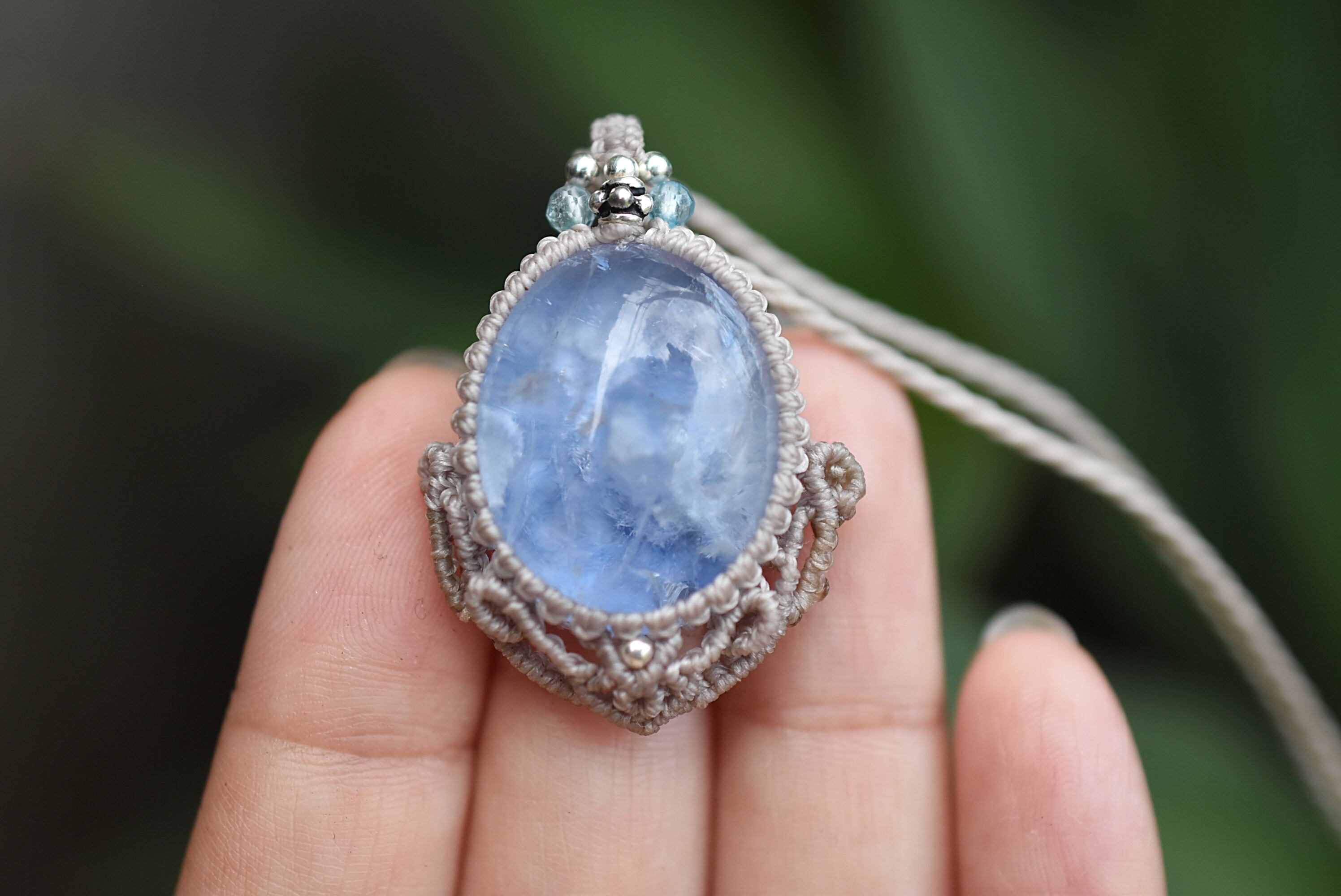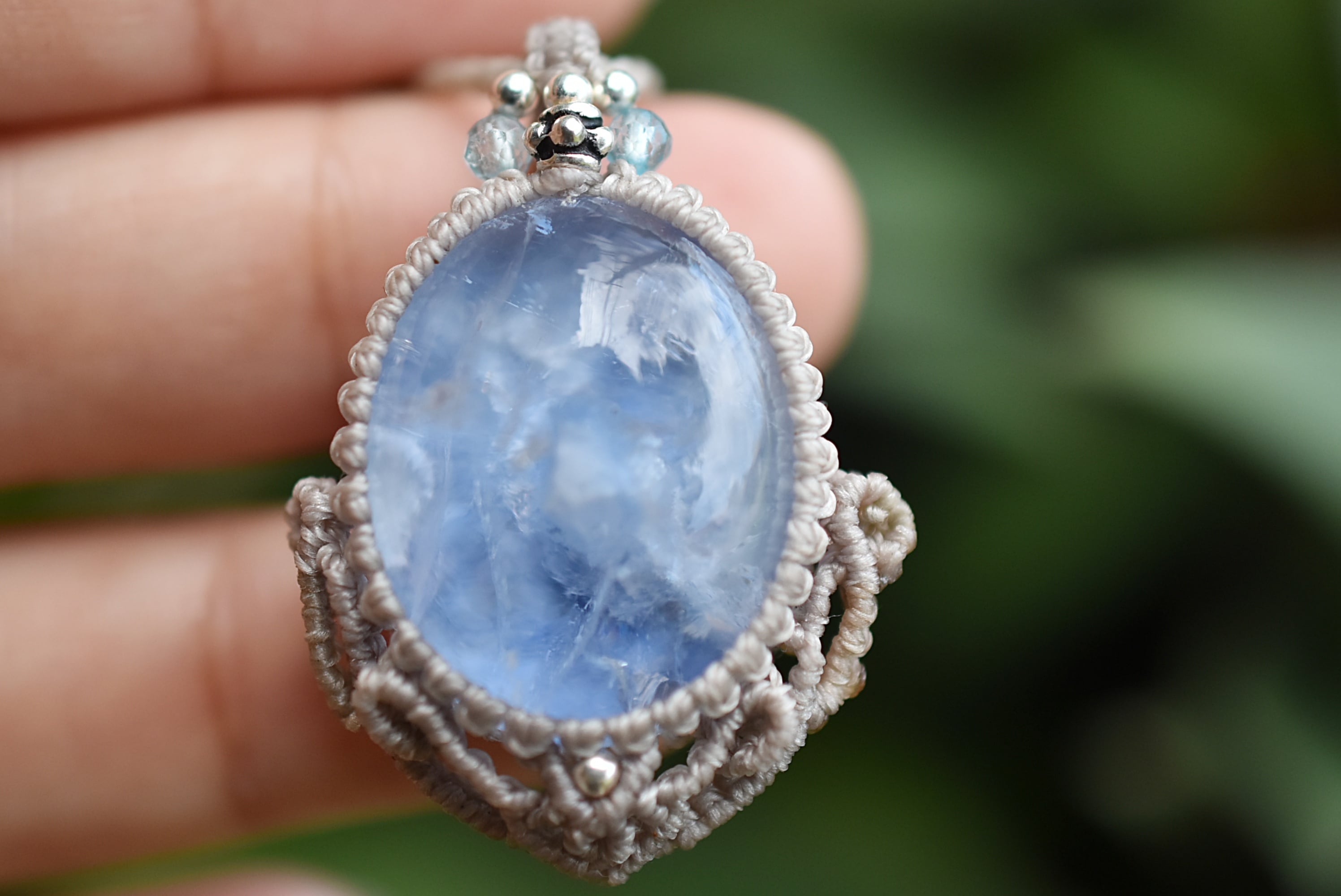 蒼い雲★貫入★デュモルチェライトインクォーツ マクラメネックレス1226