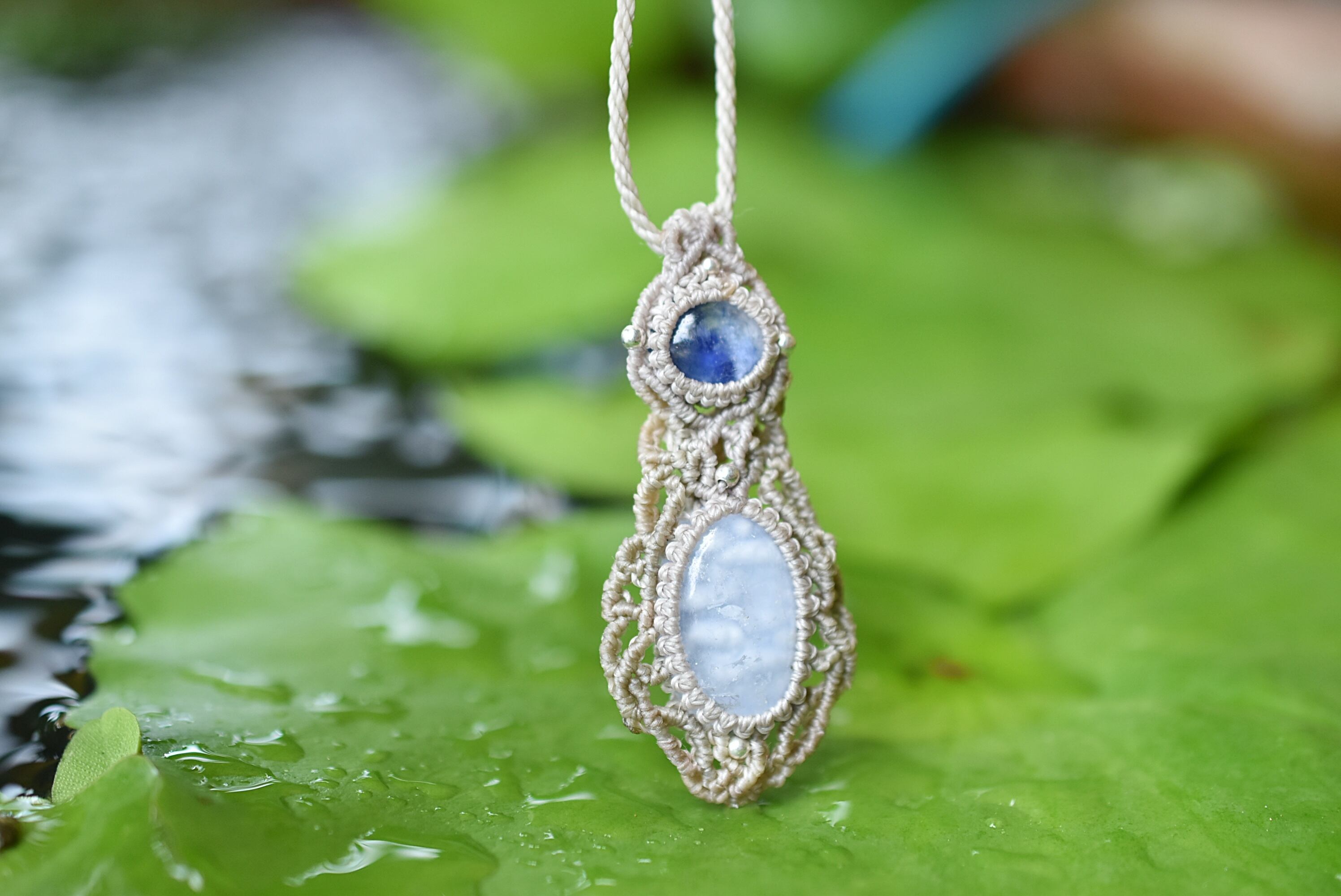 2つのデュモ★デュモルチェライトインインクォーツ マクラメネックレス1227