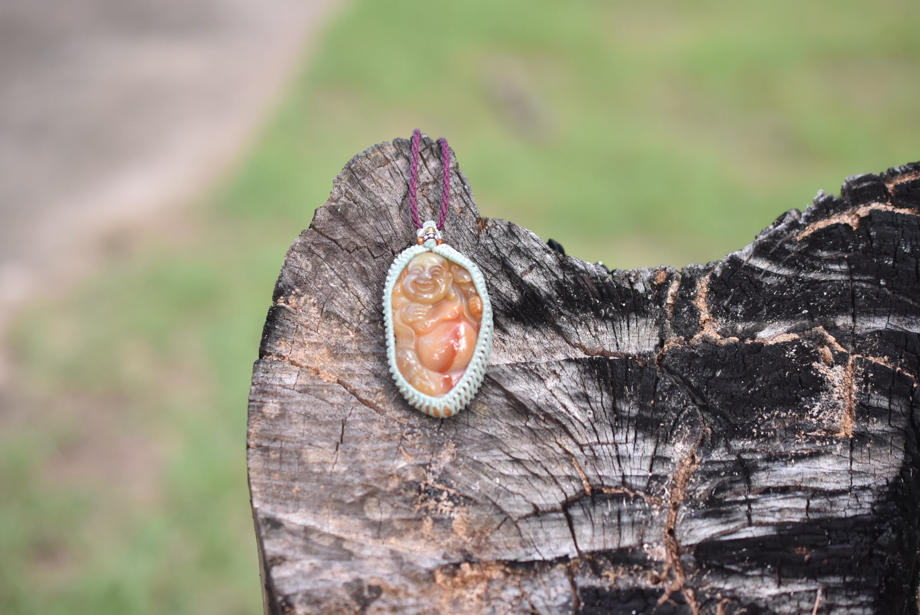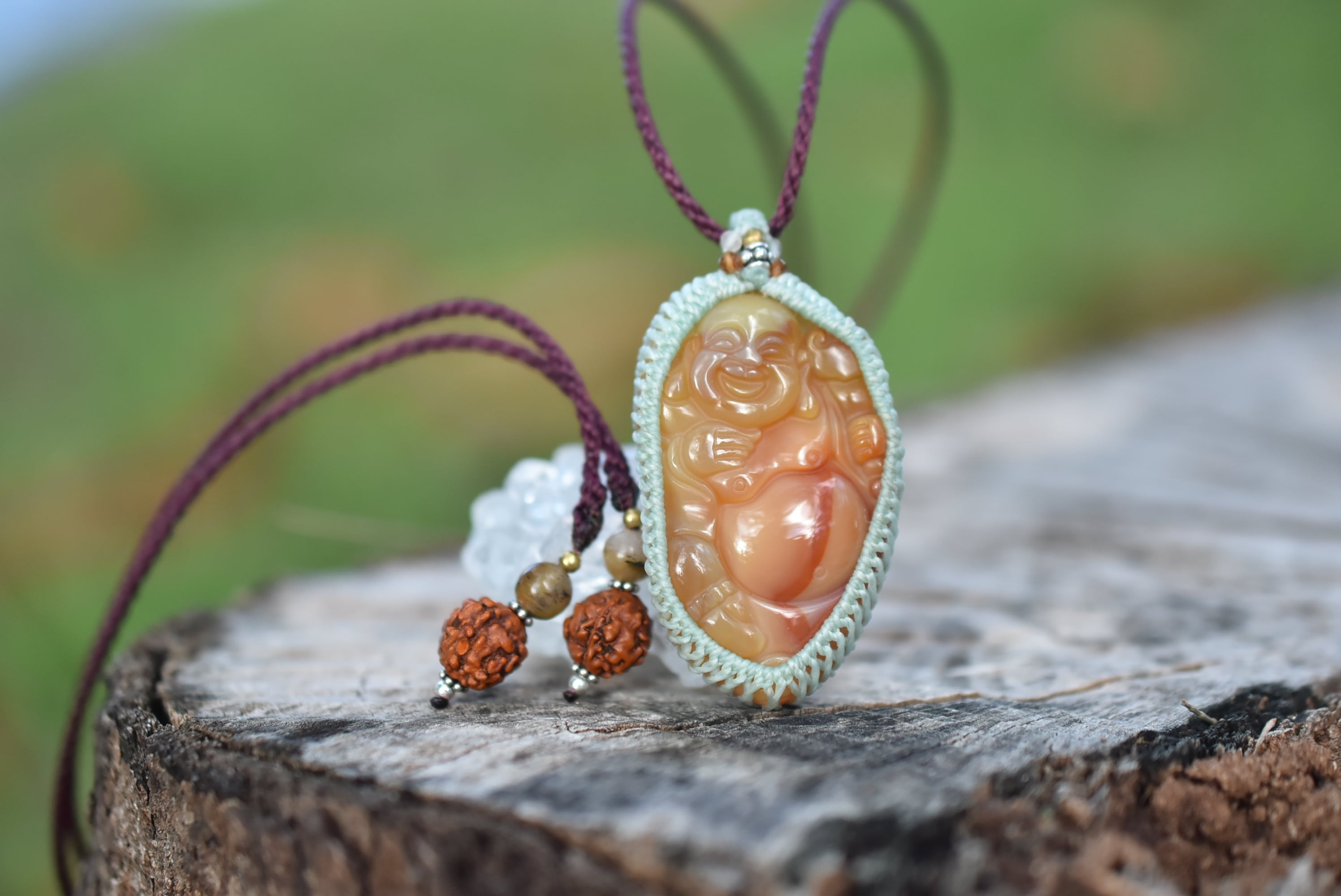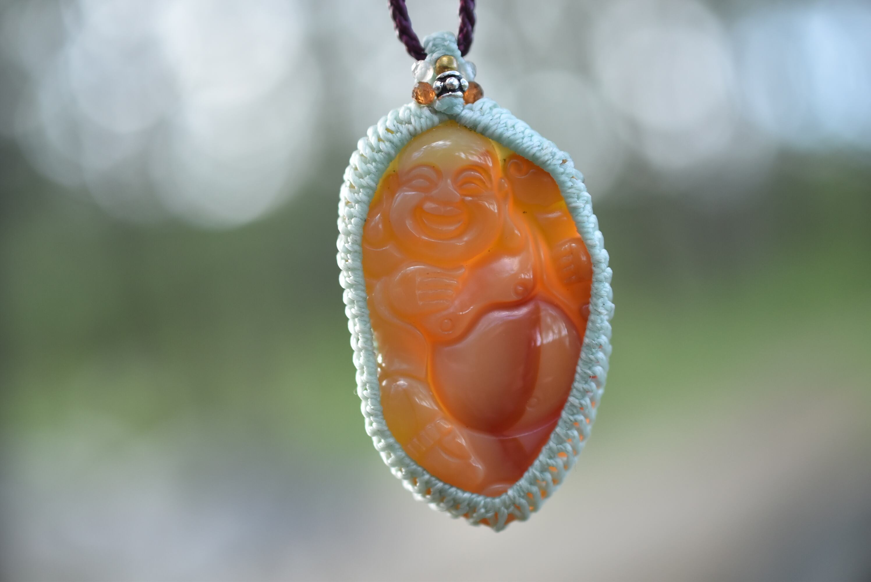 カービング★オレンジアゲート 仏陀さま★マクラメネックレス1229