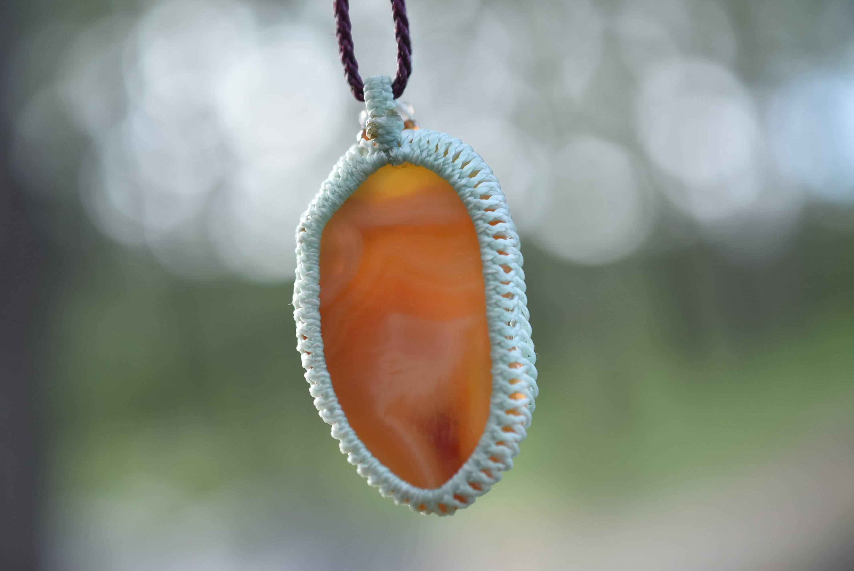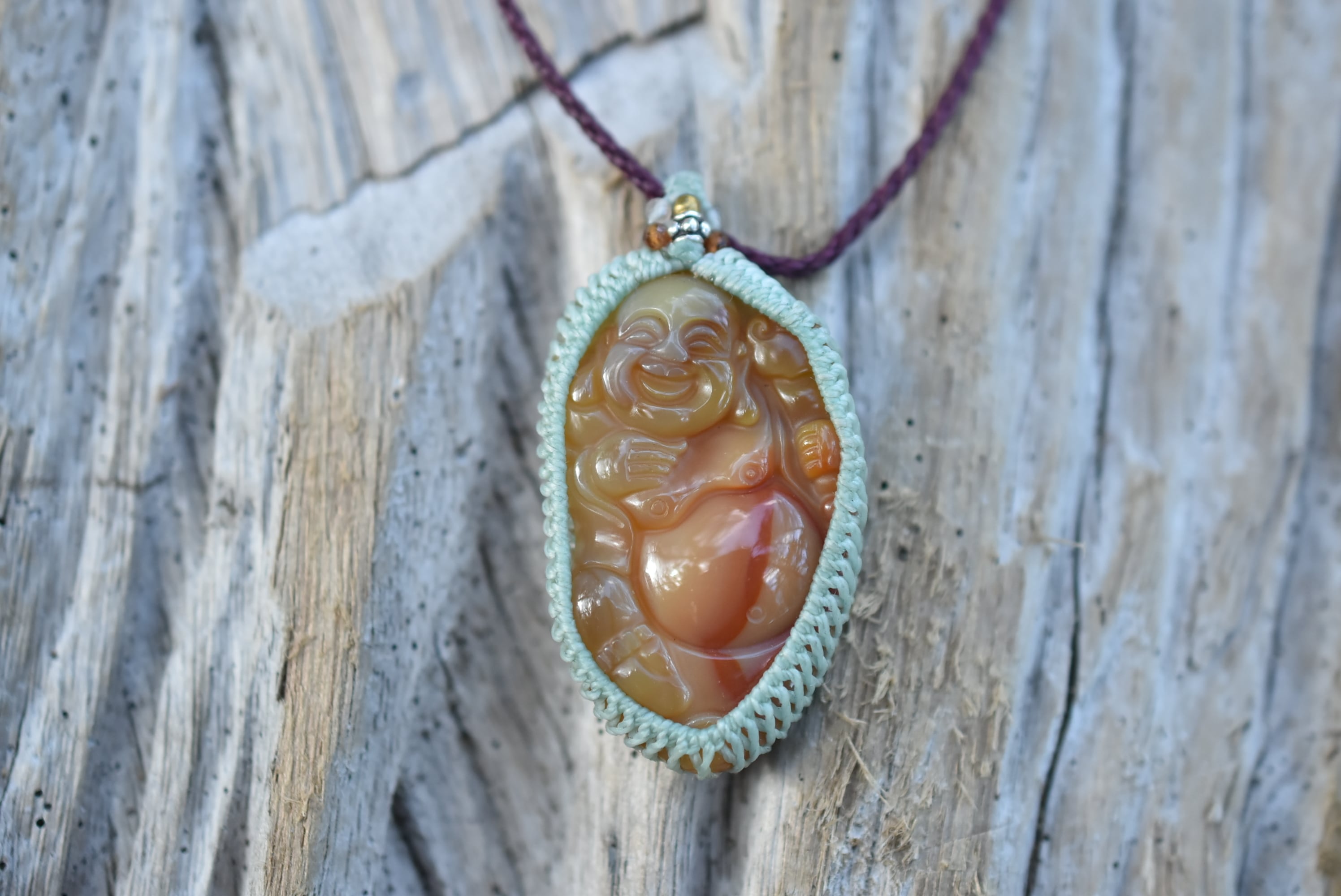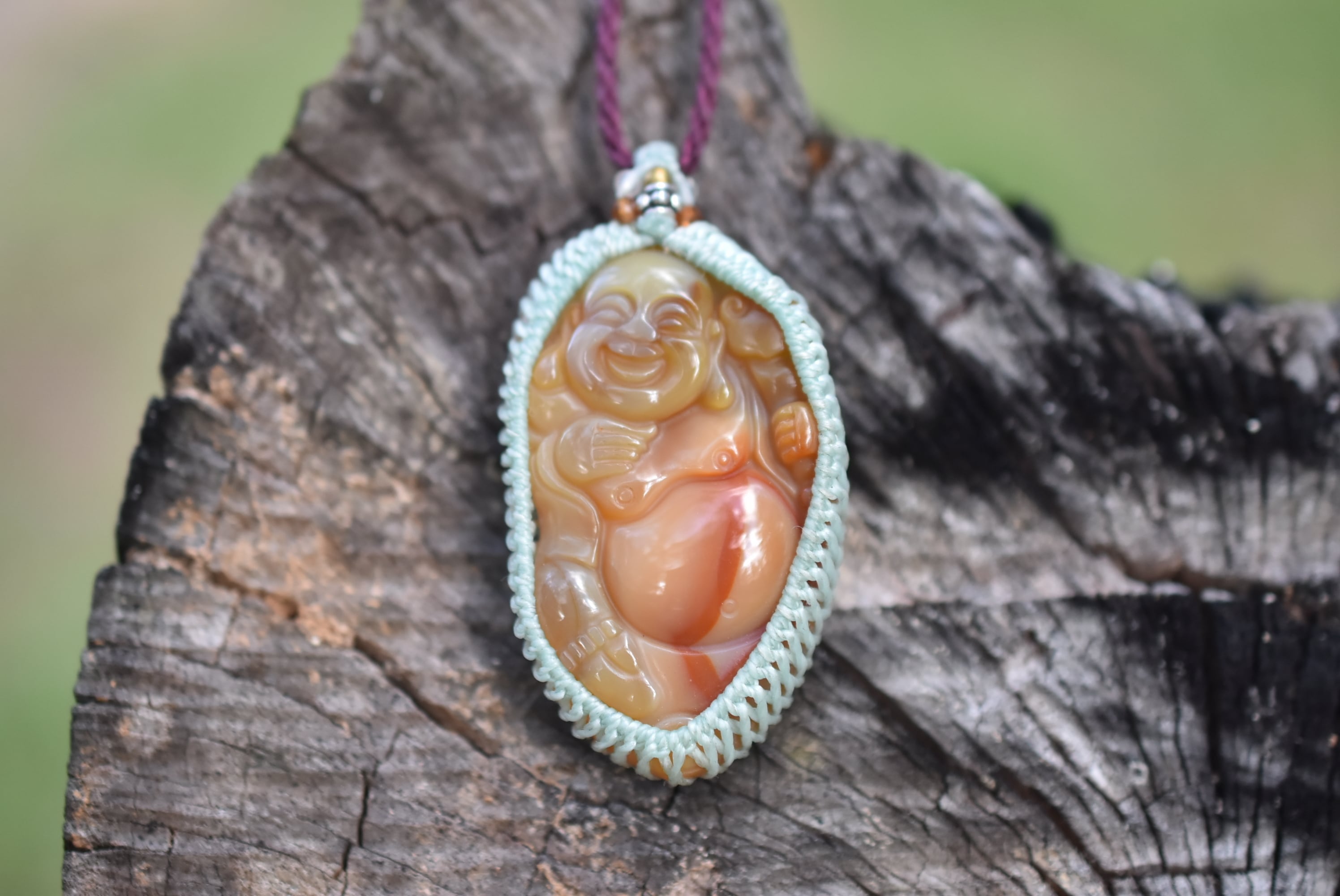 カービング★オレンジアゲート 仏陀さま★マクラメネックレス1229