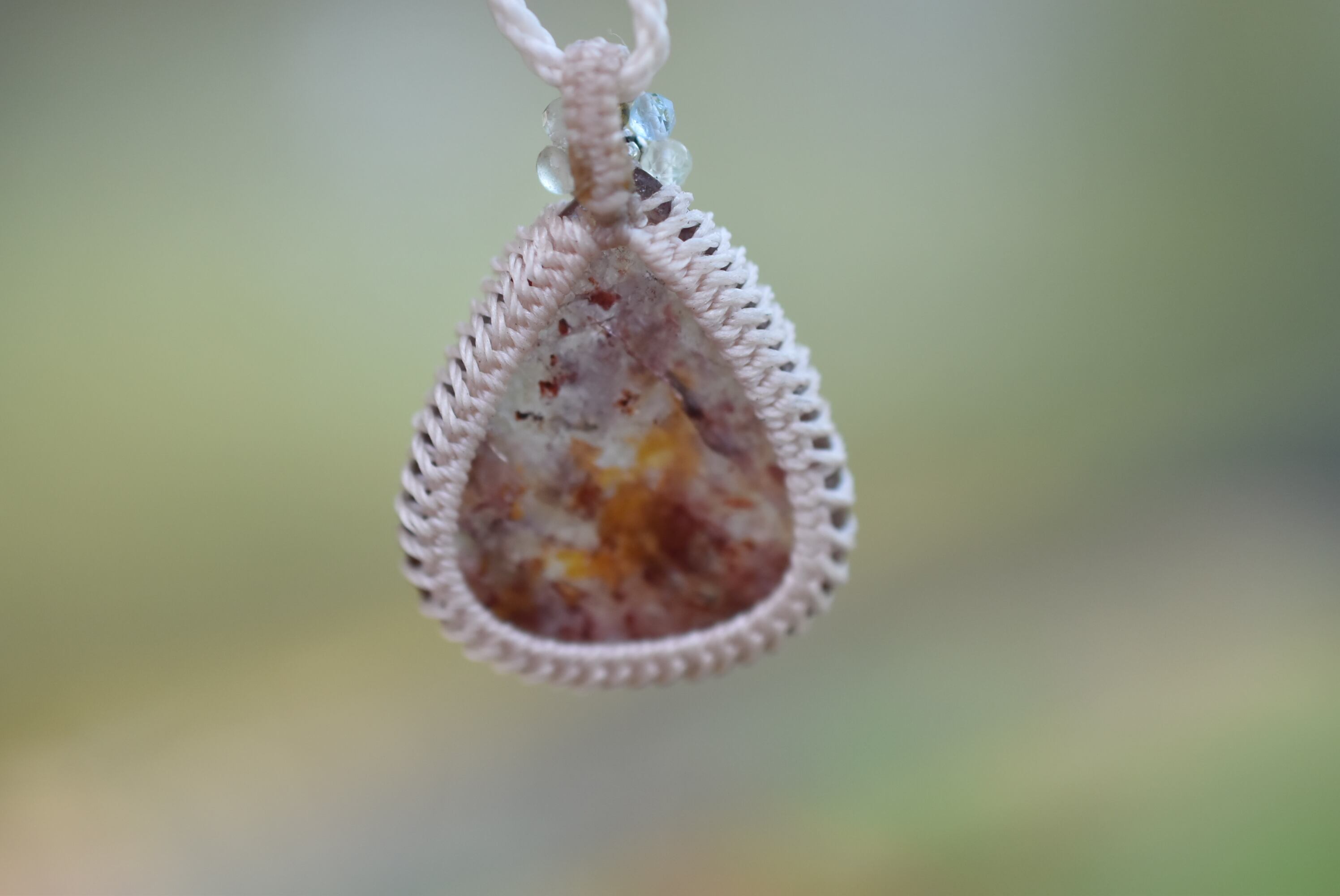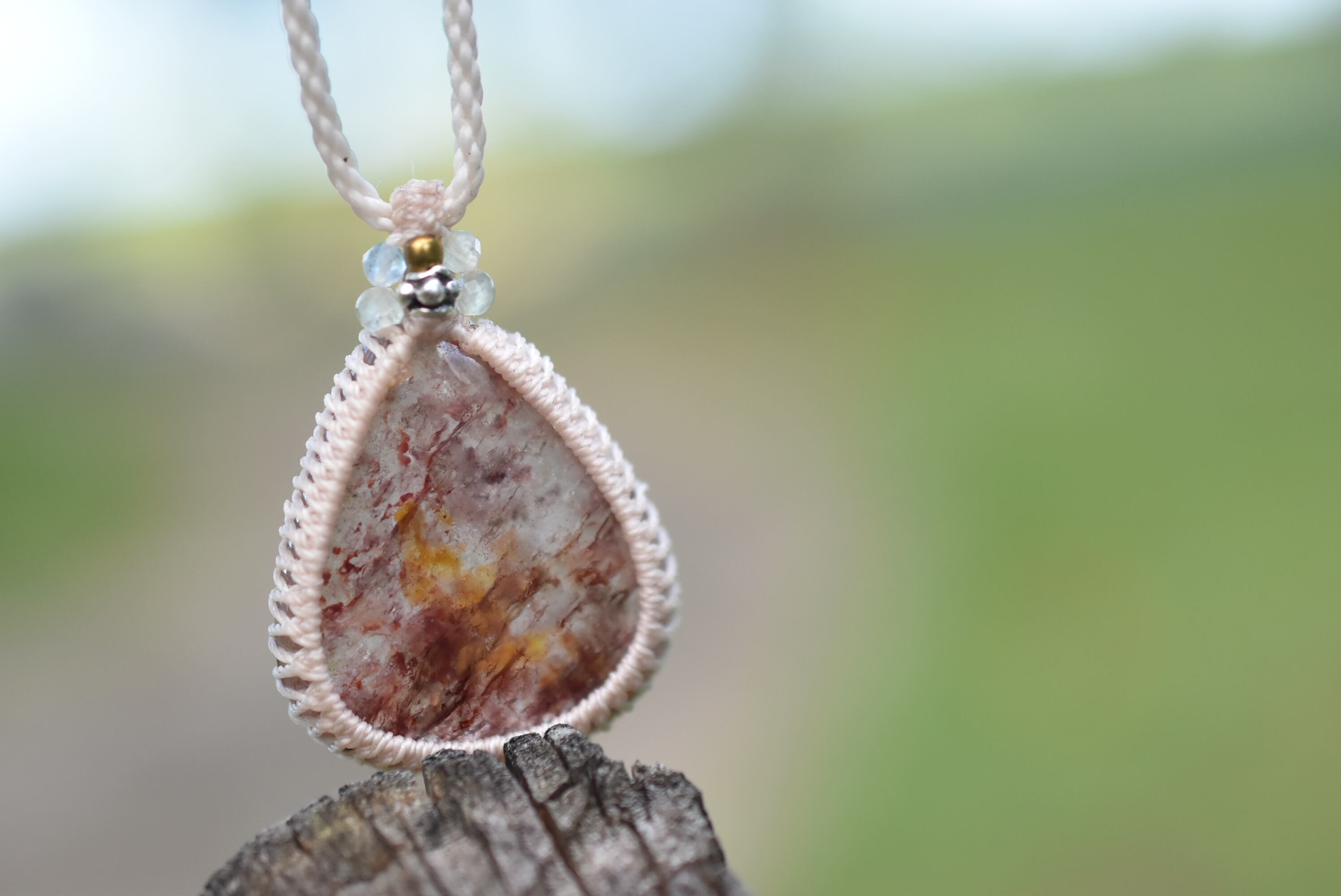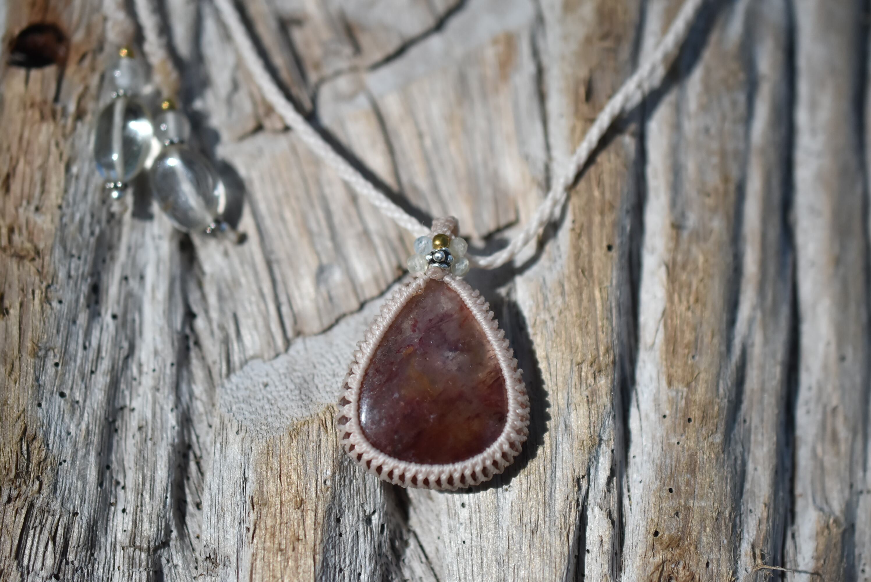 赤いストロベリー内包★オパールカルセドニーインクォーツ マクラメネックレス1233
