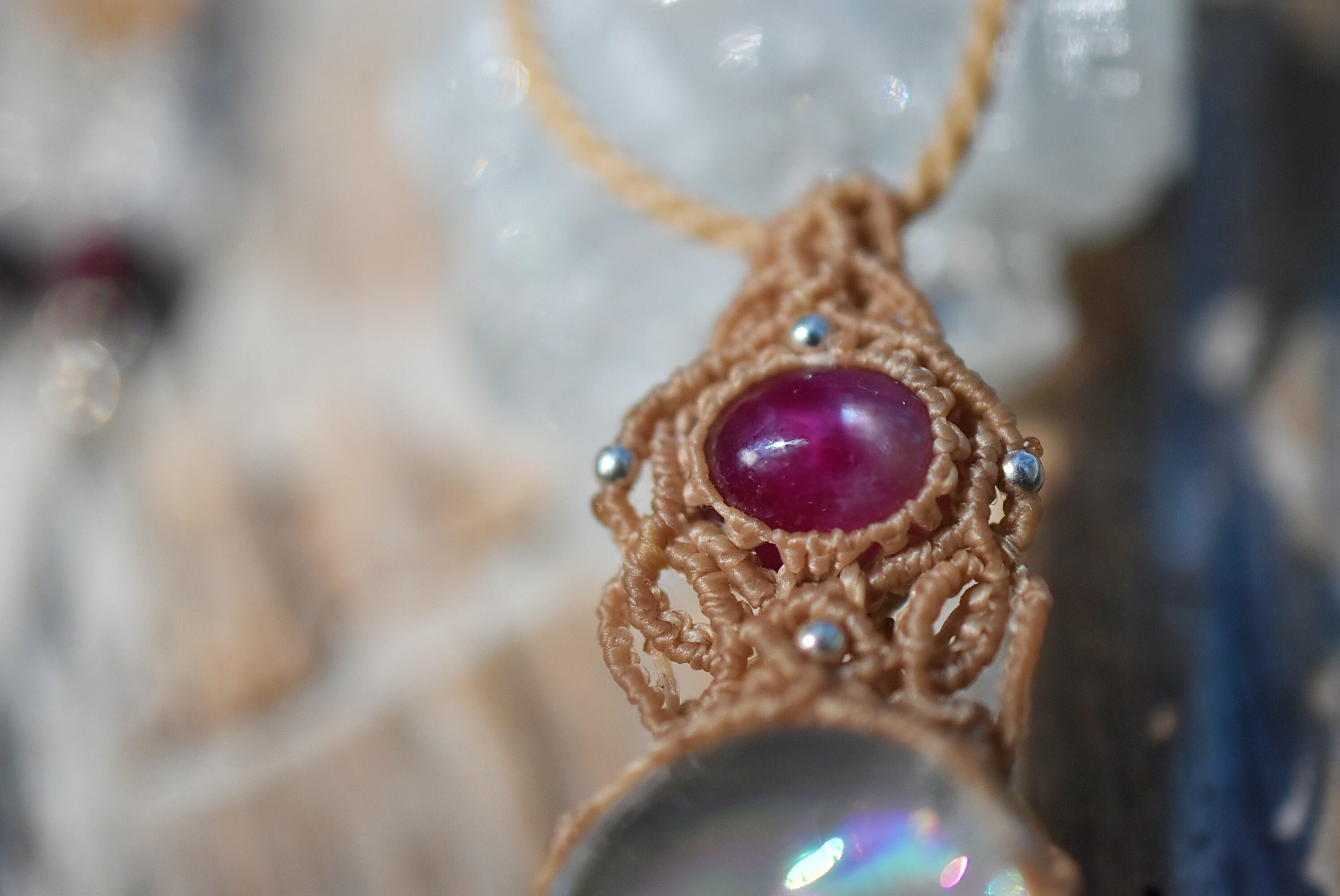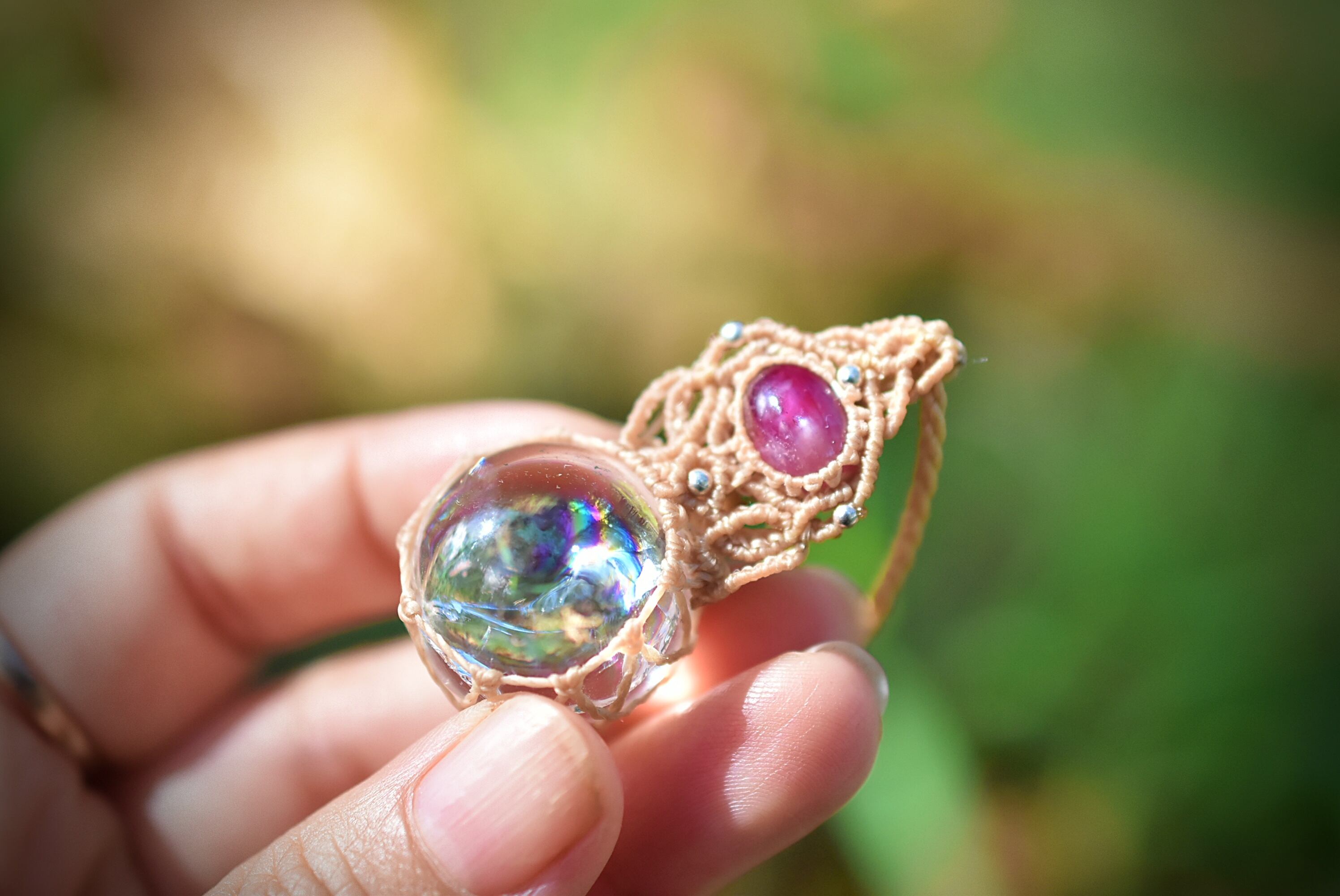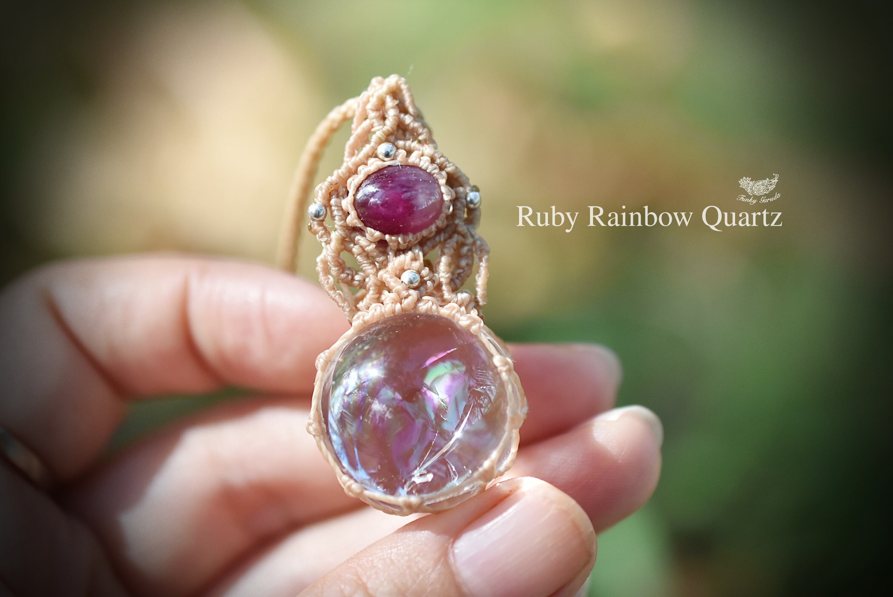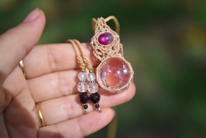 ルビー★虹入り水晶★クリスタルボール マクラメネックレス1241