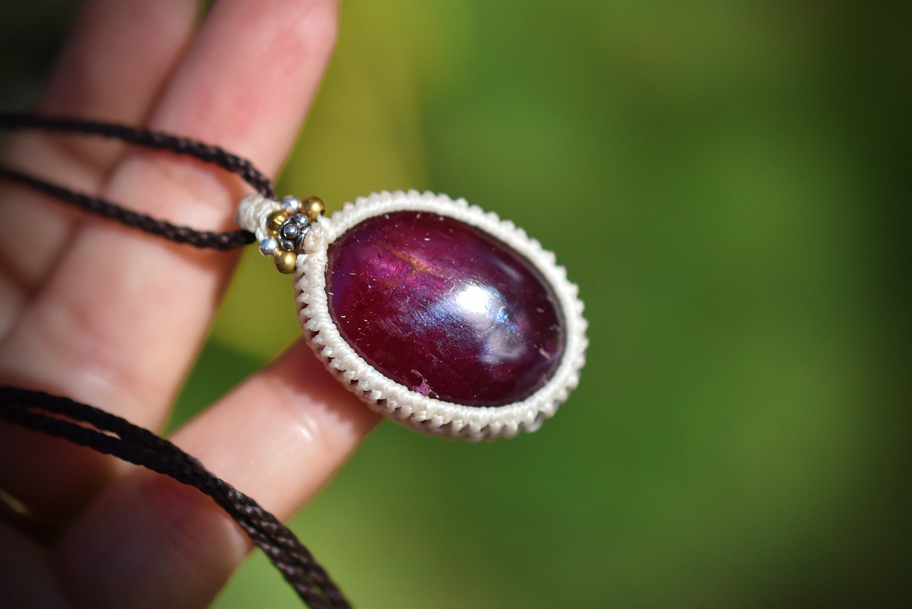 渋ワイン色★69.ct★ルビー マクラメネックレス1242