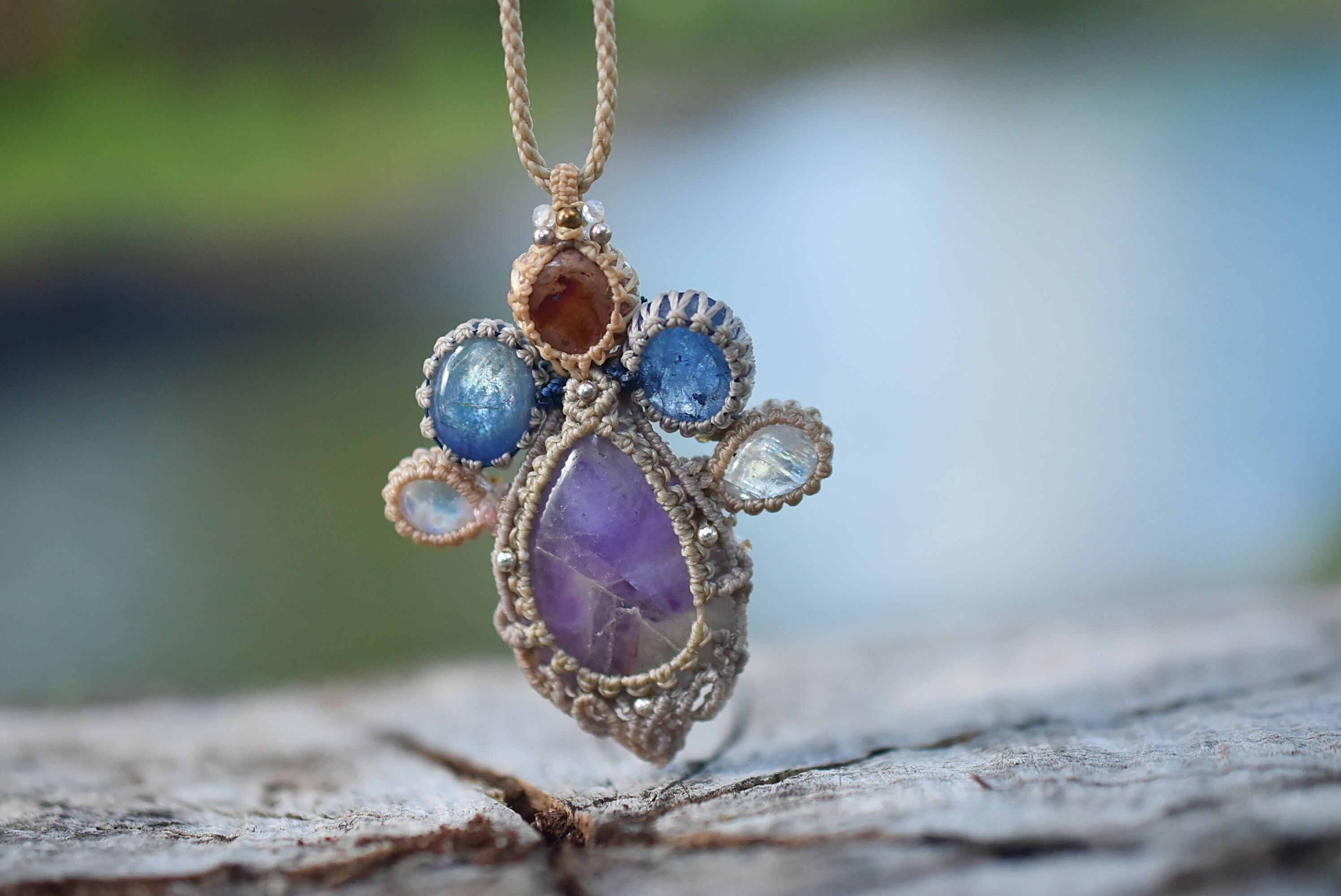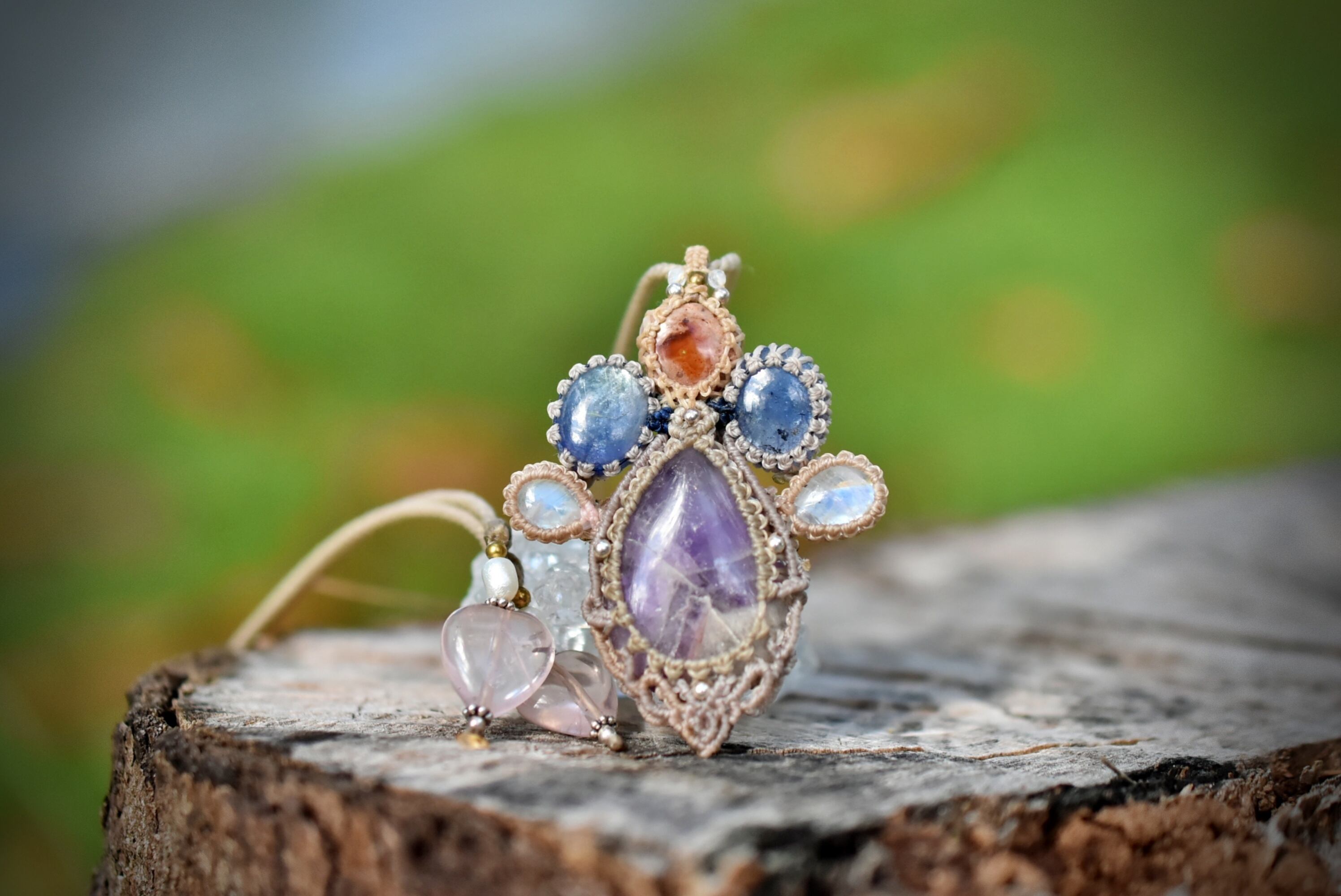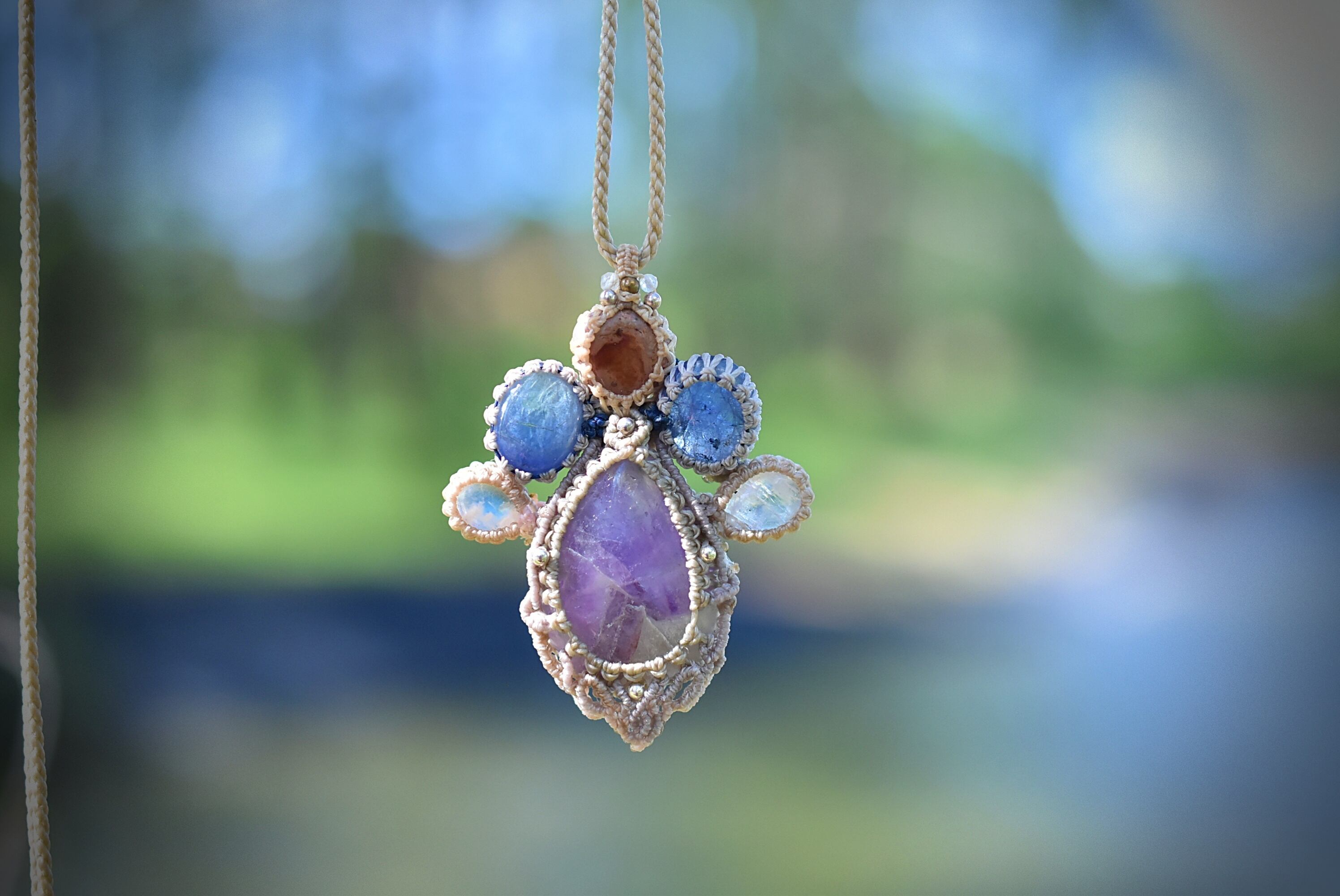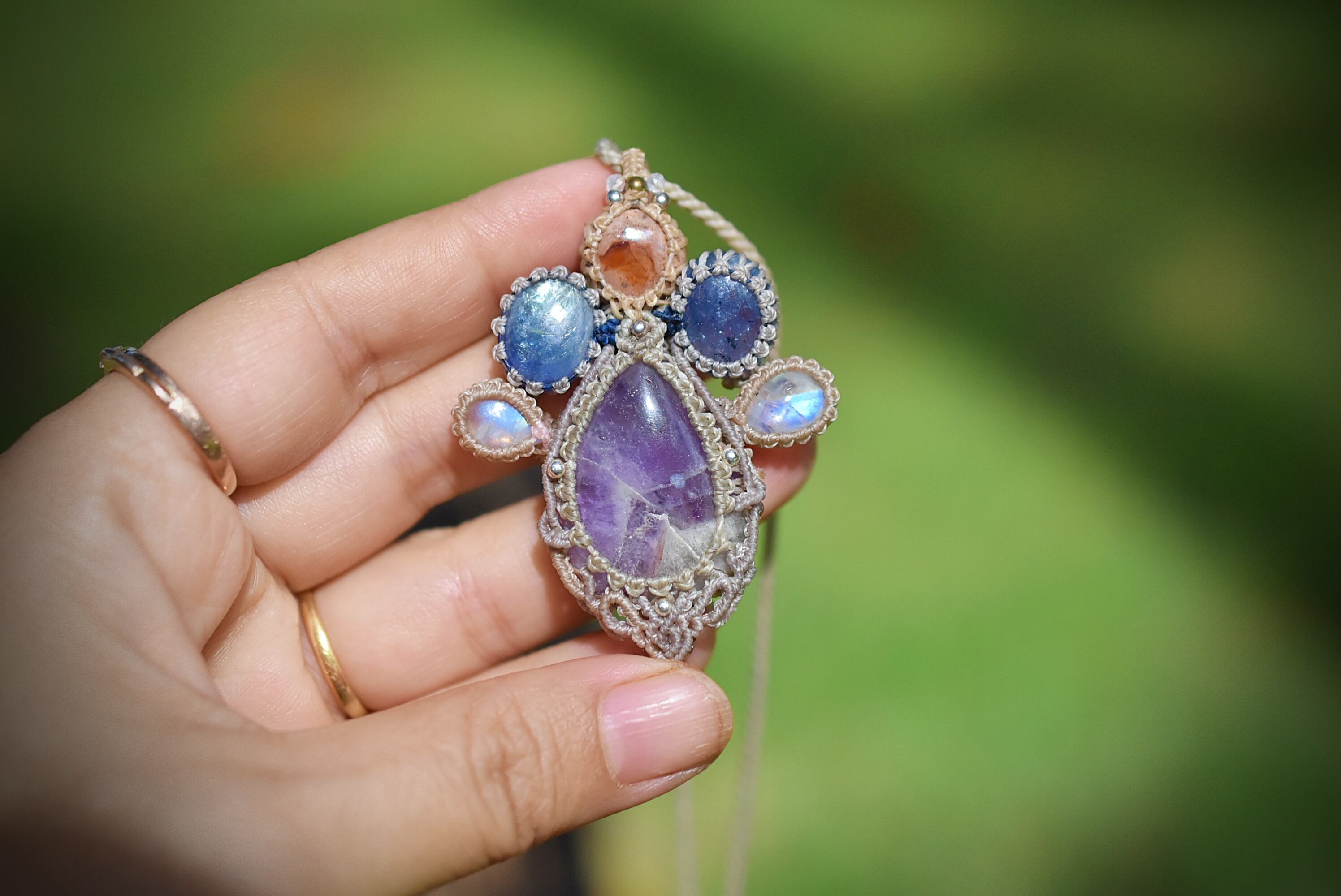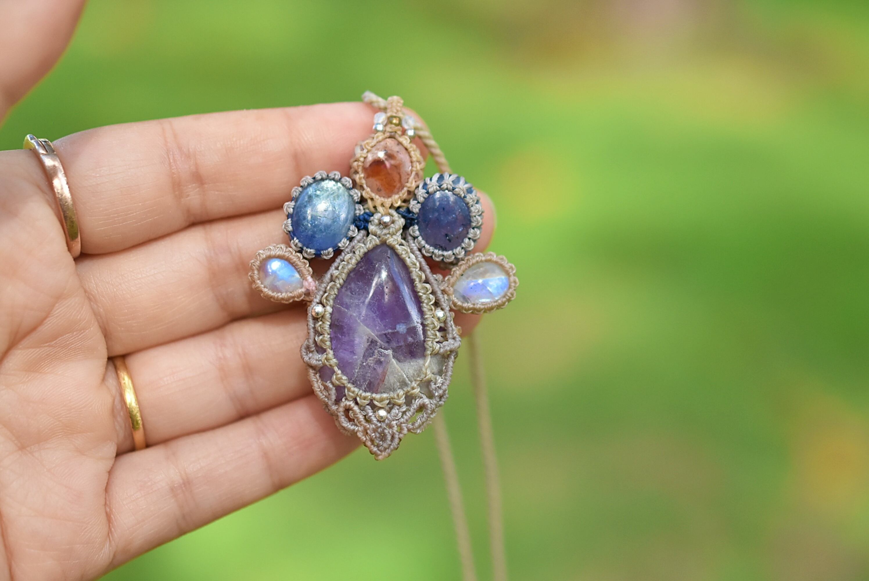 そんなペンダントを意識してマクラメ編み装飾を施しました。