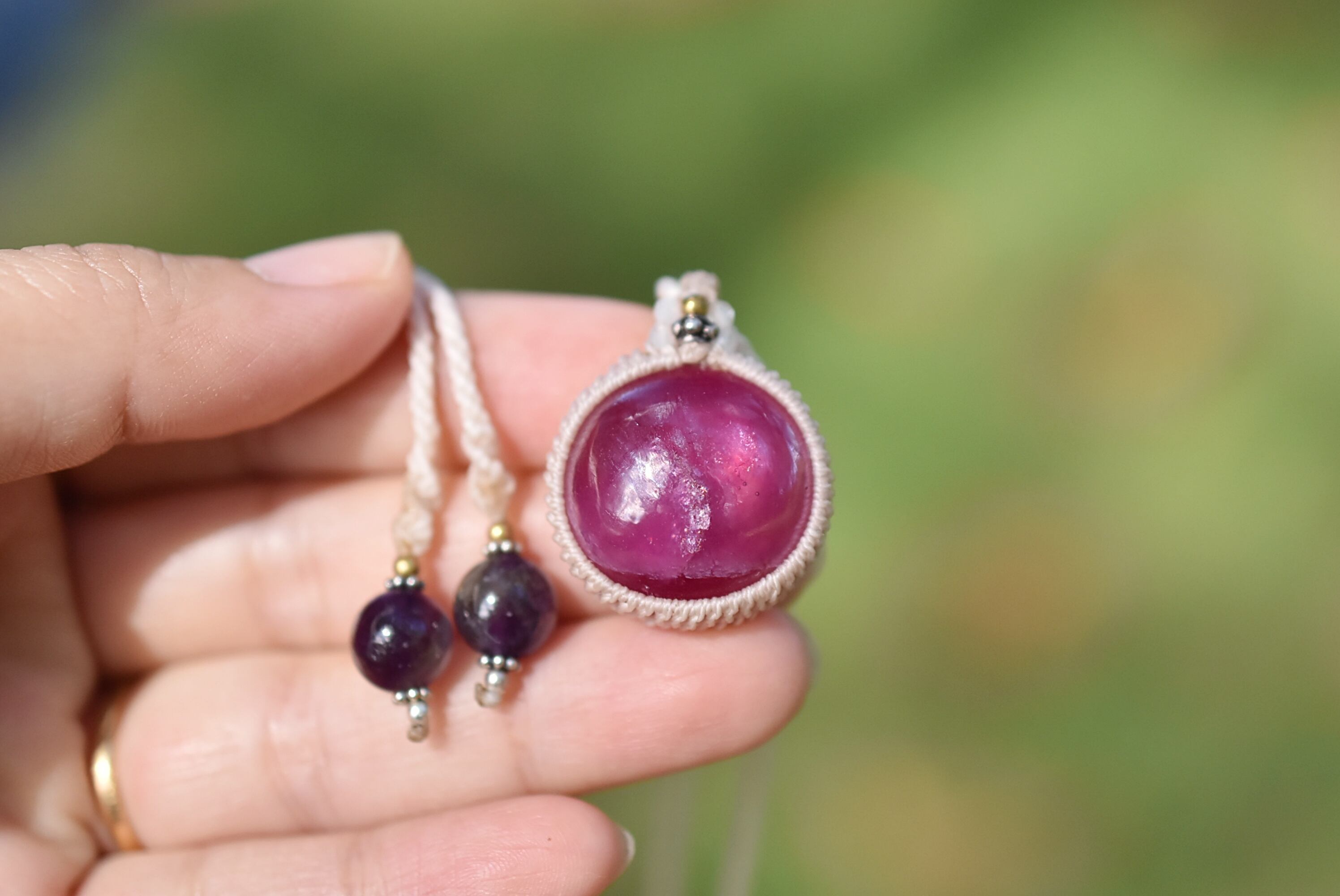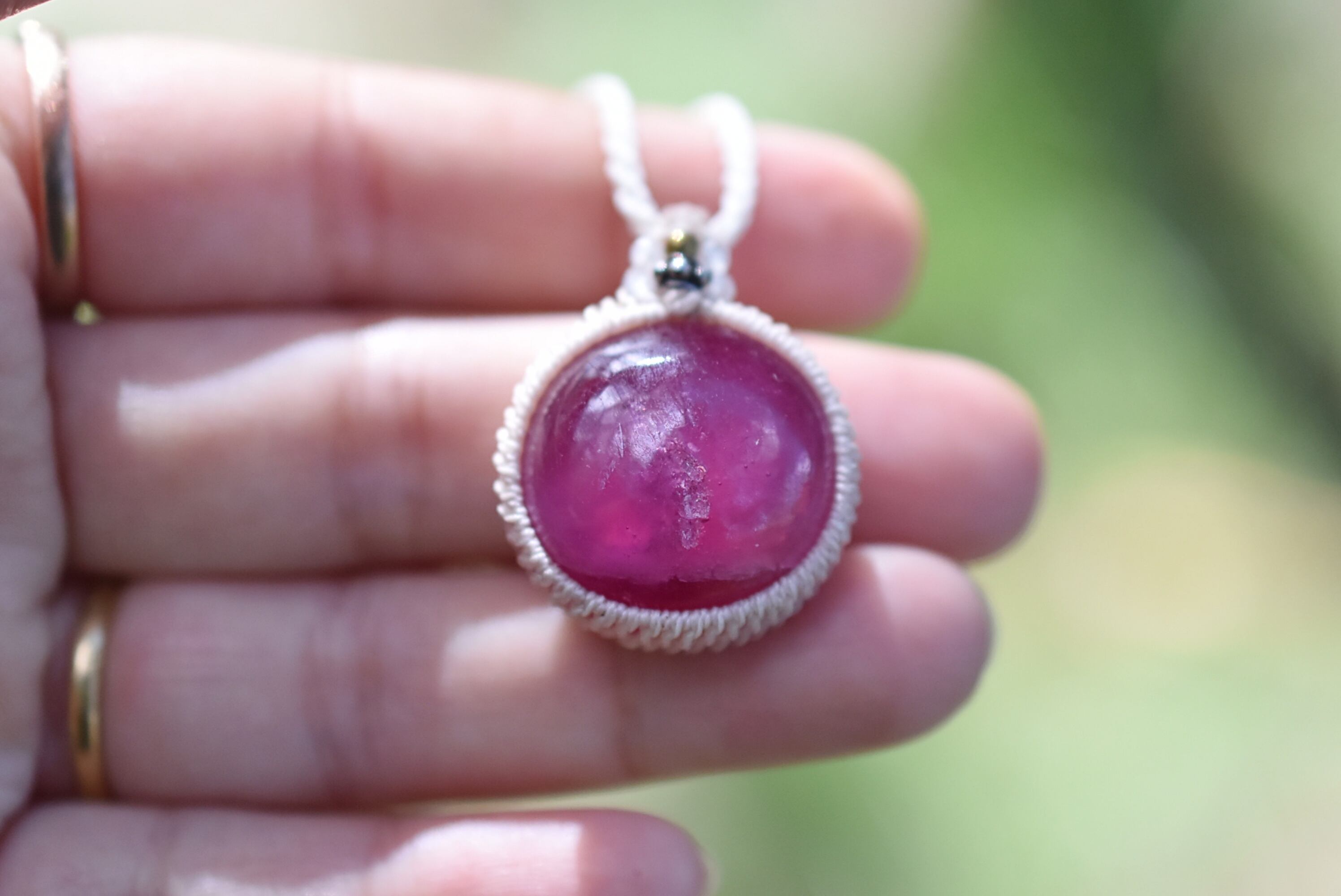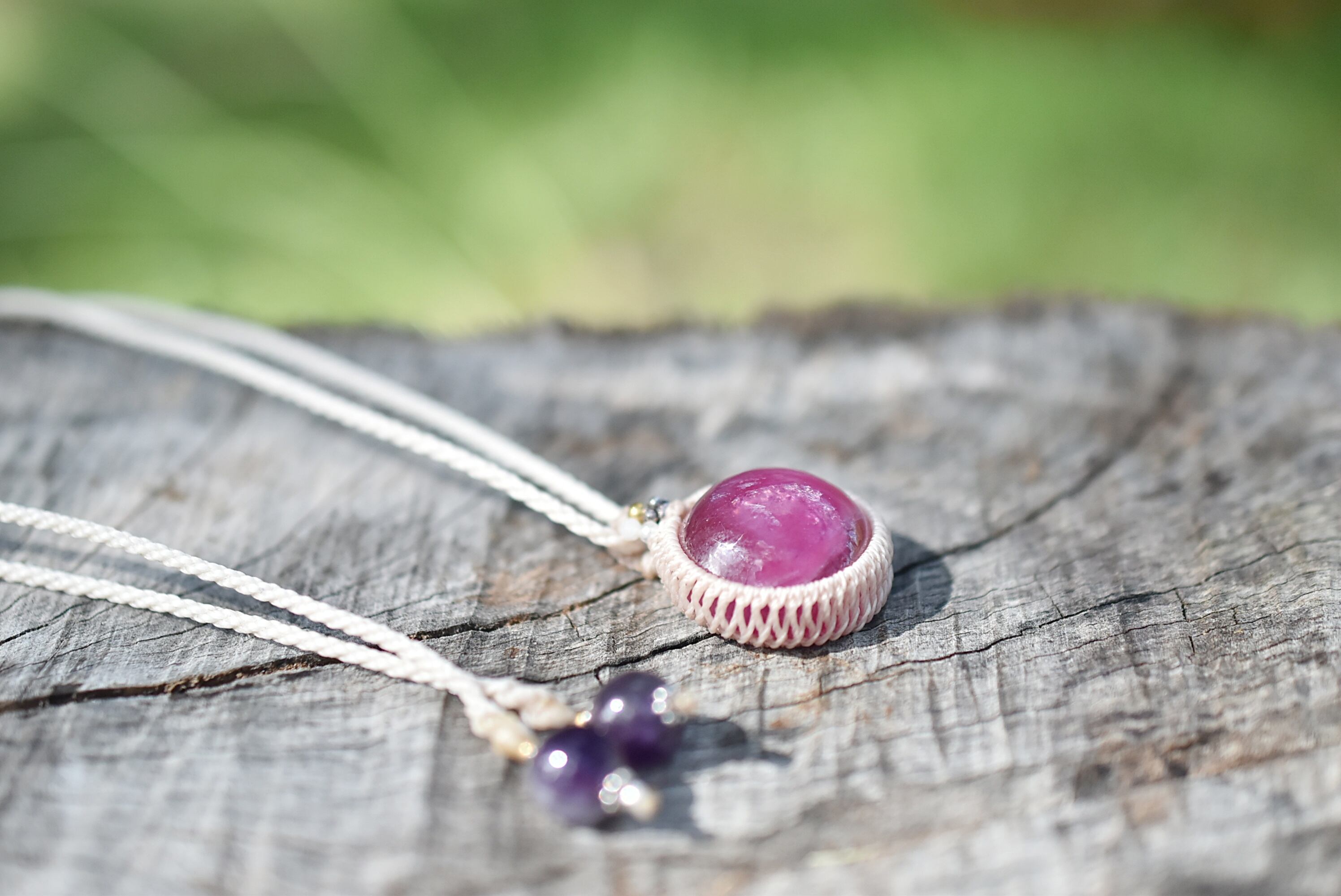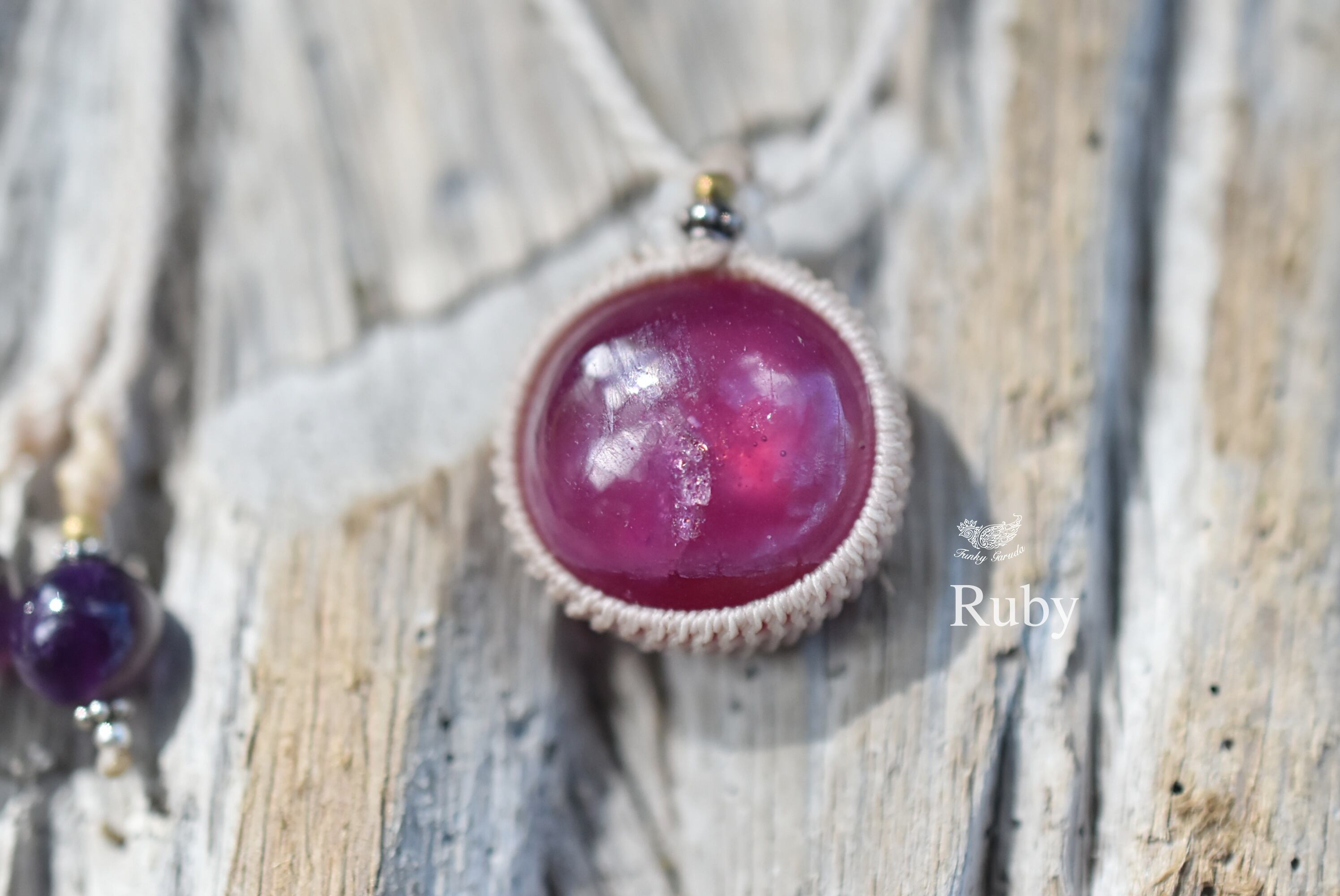 厚みちゃんピンク★ルビーマクラメネックレス 1247