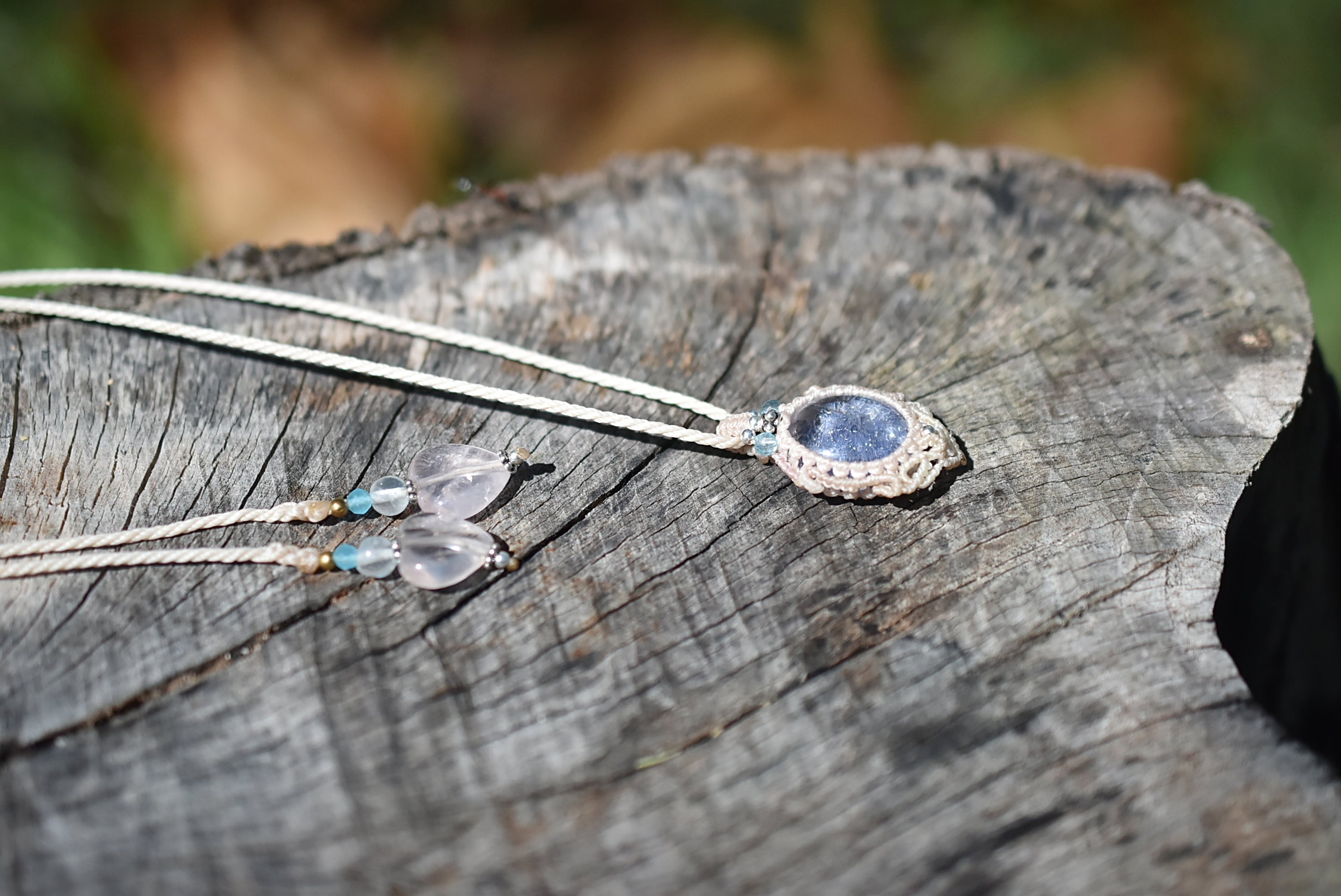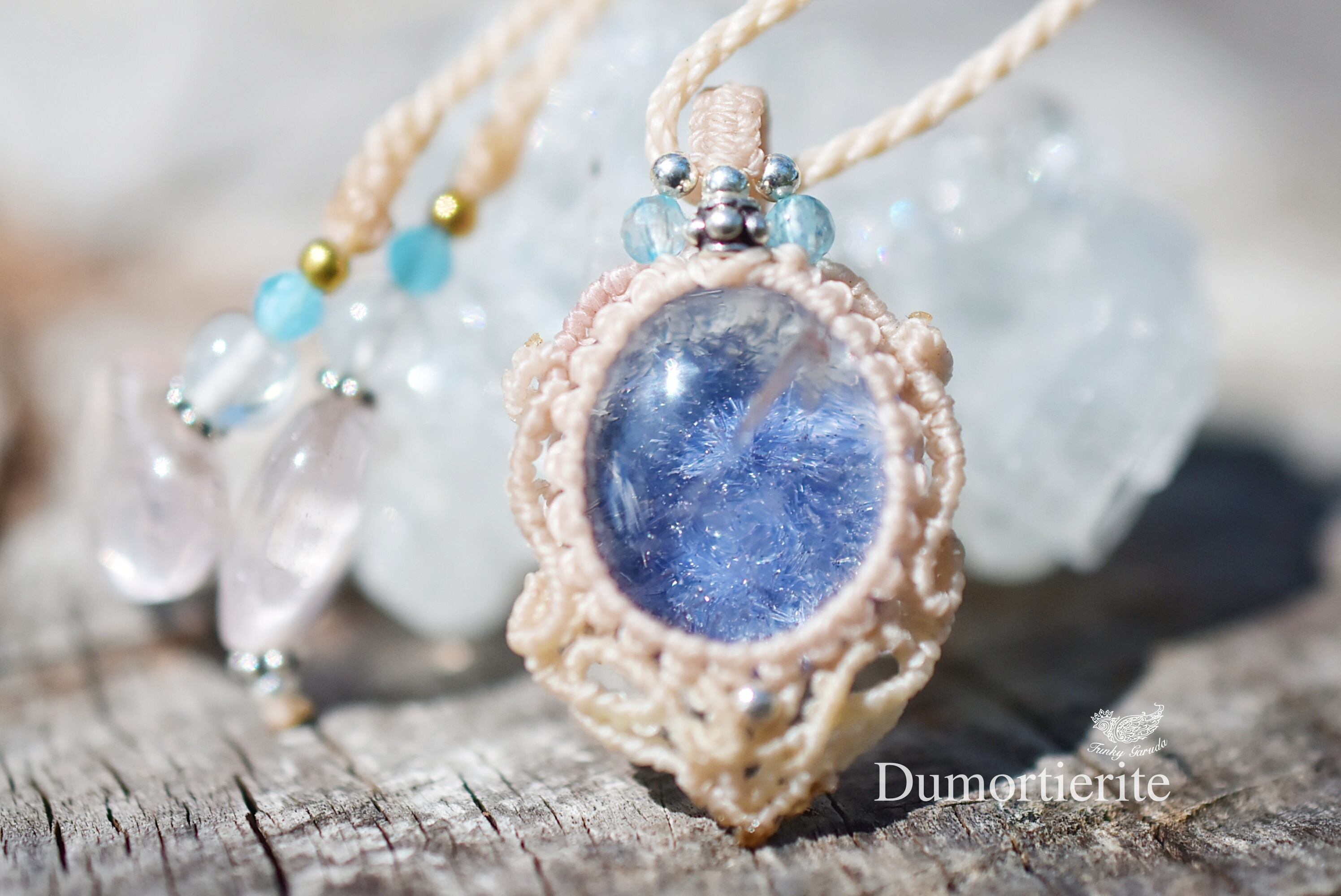 蒼い紋章★デュモルチェライトインクォーツ マクラメネックレス1251
