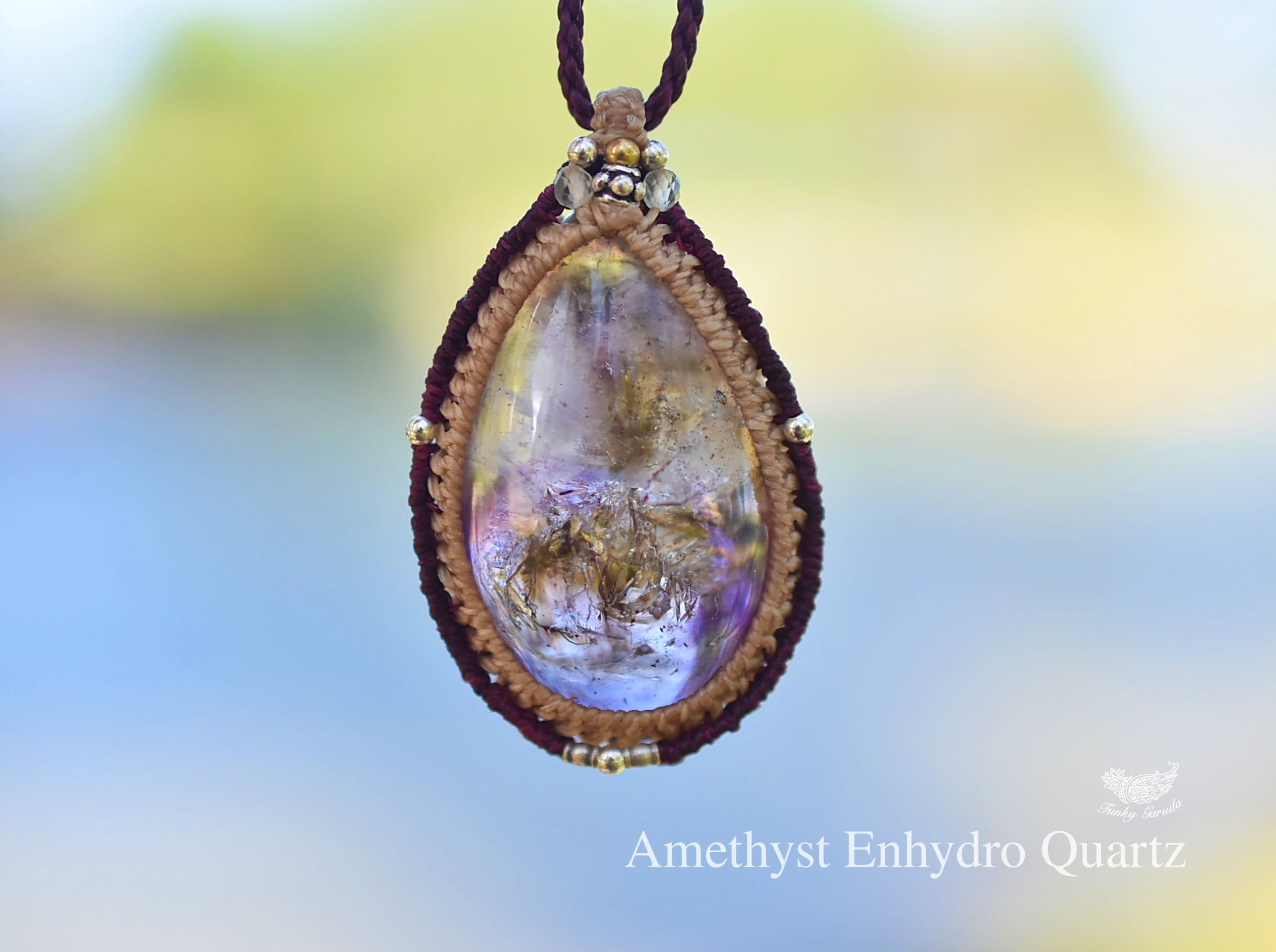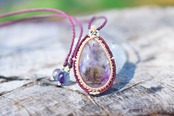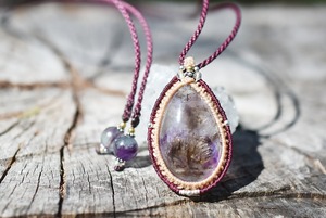 2箇所★古代の水入り★アメシスト水晶 マクラメネックレス1253