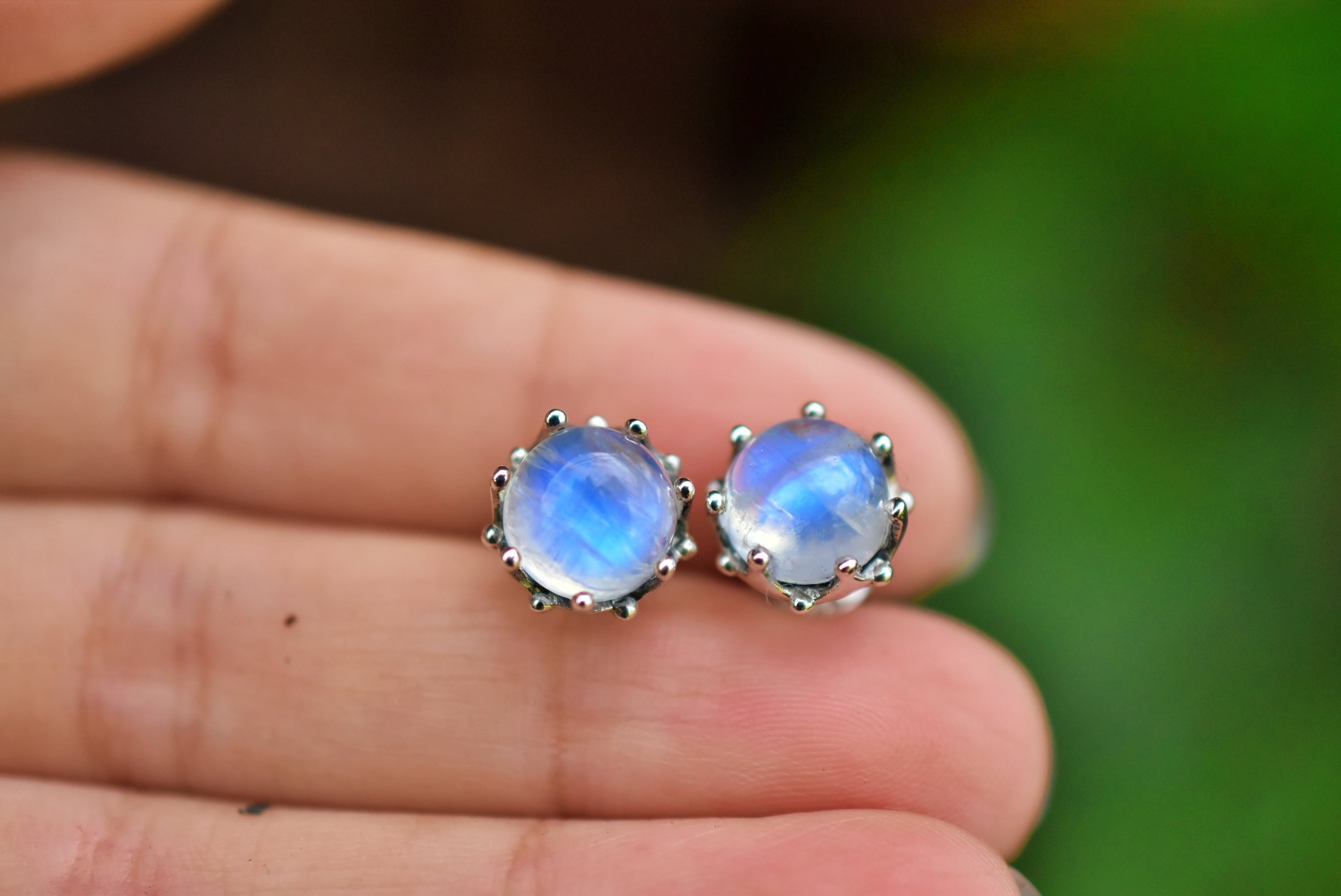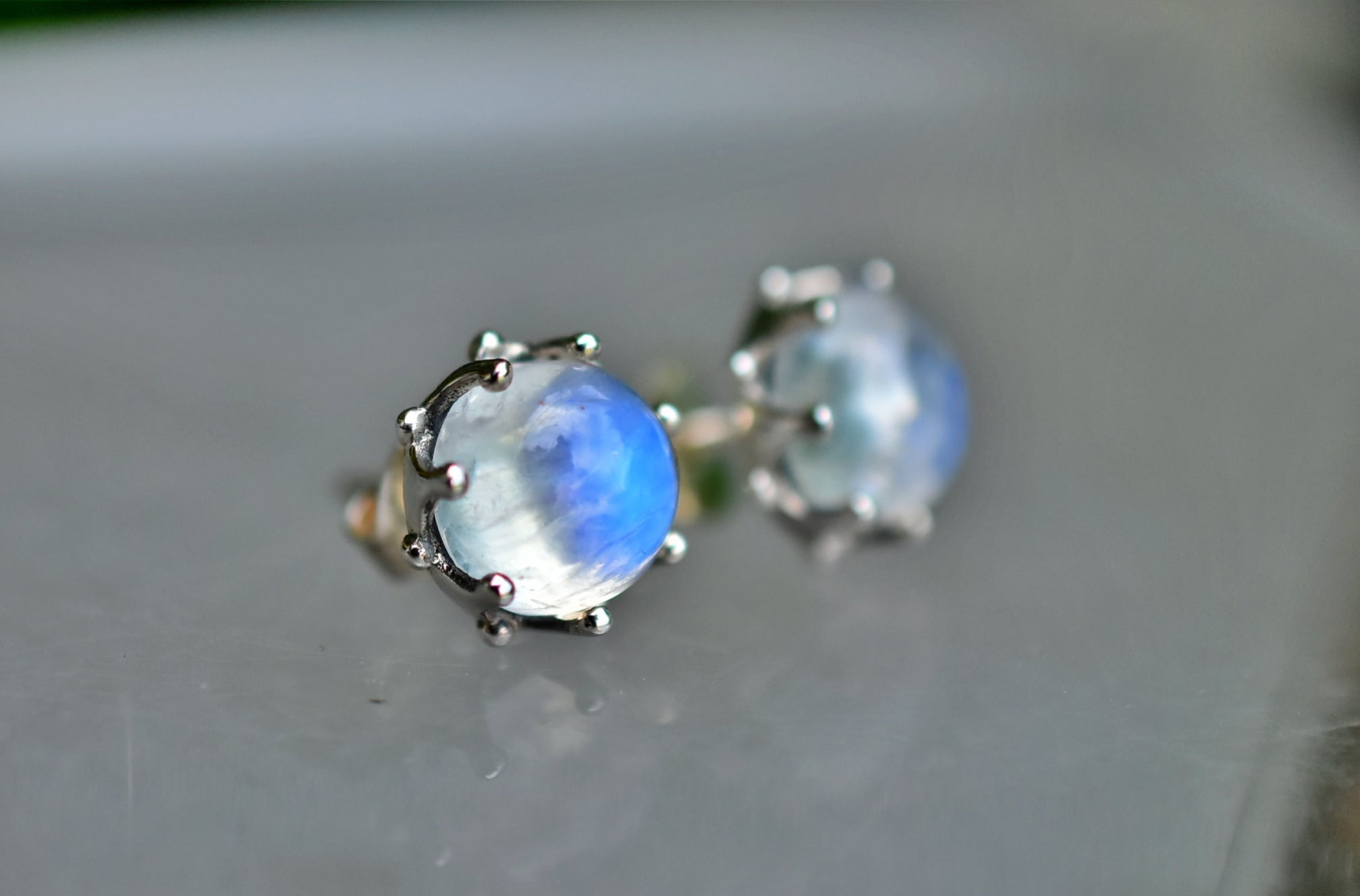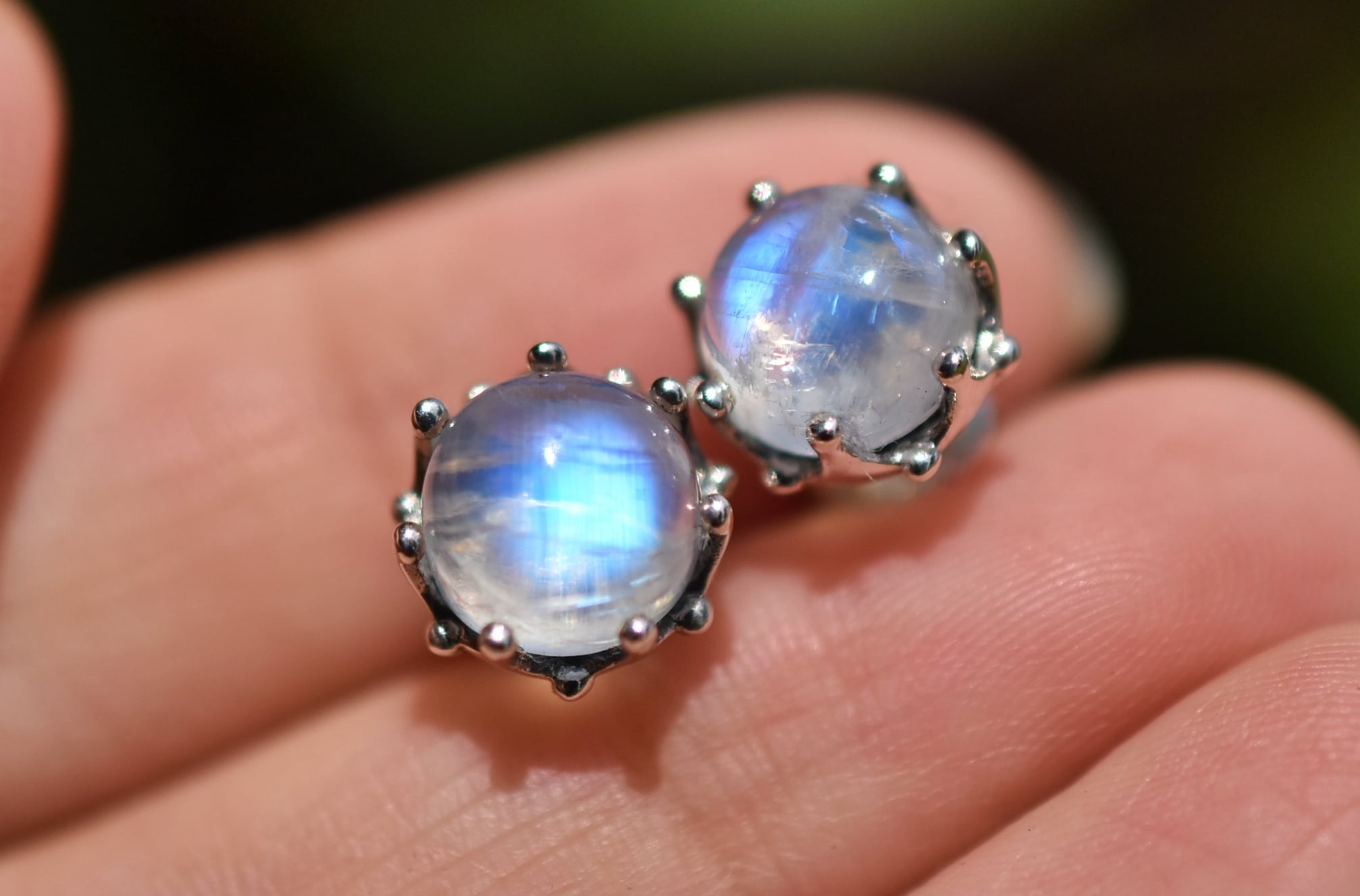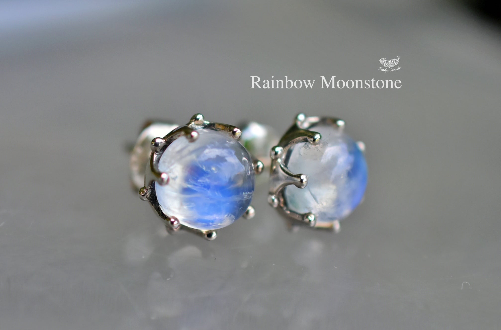 高品質★blueレインボームーンストーン シルバーピアス1257