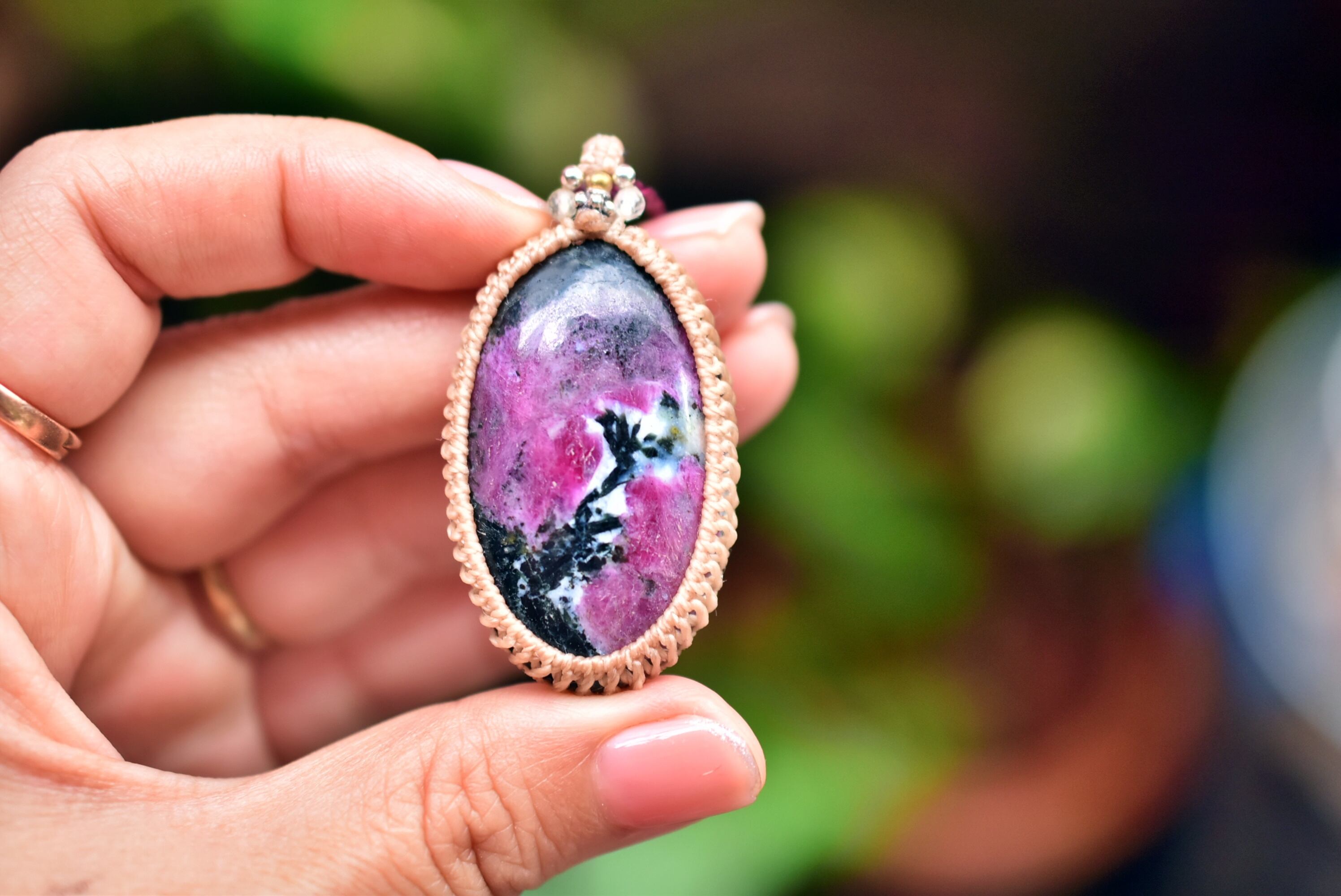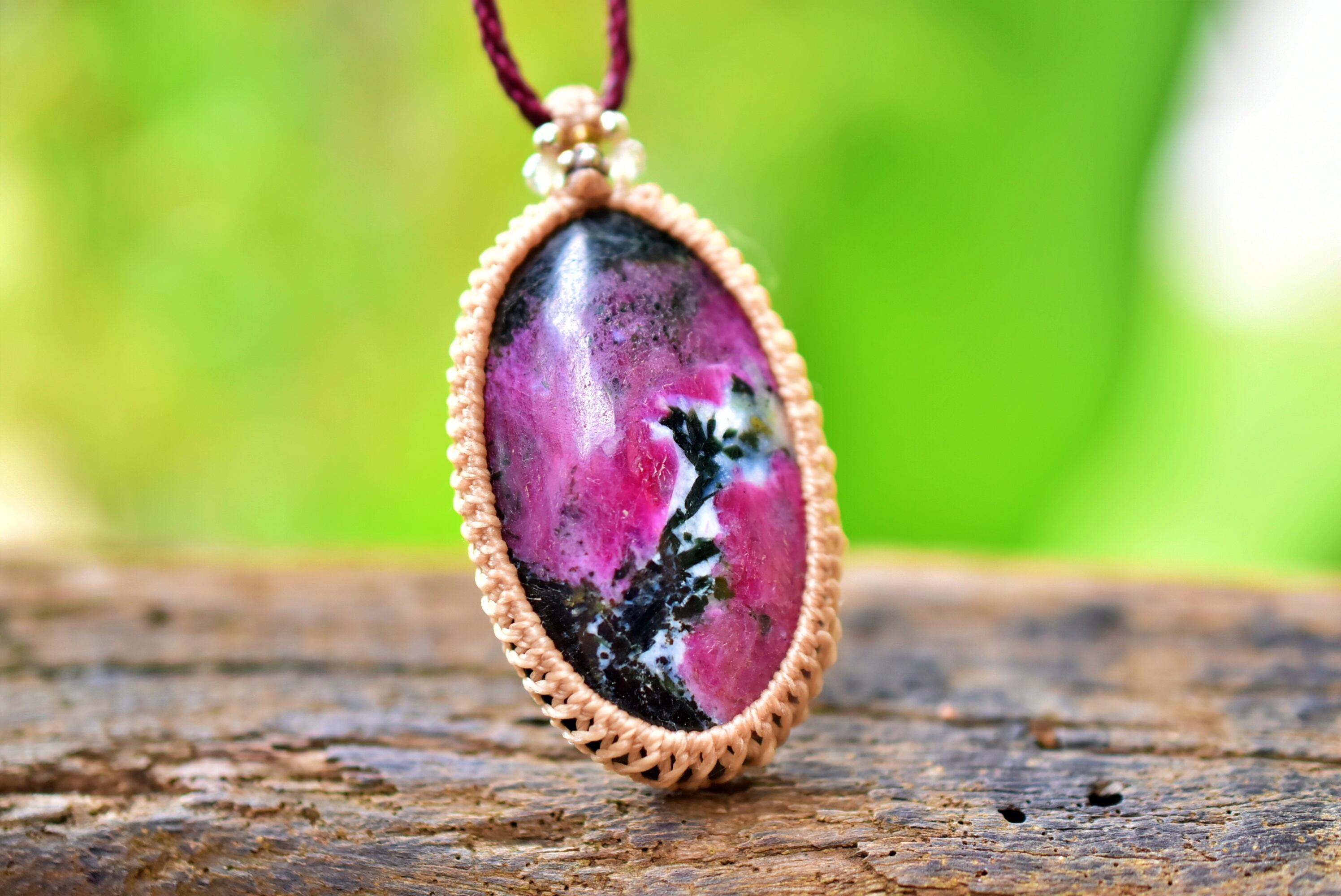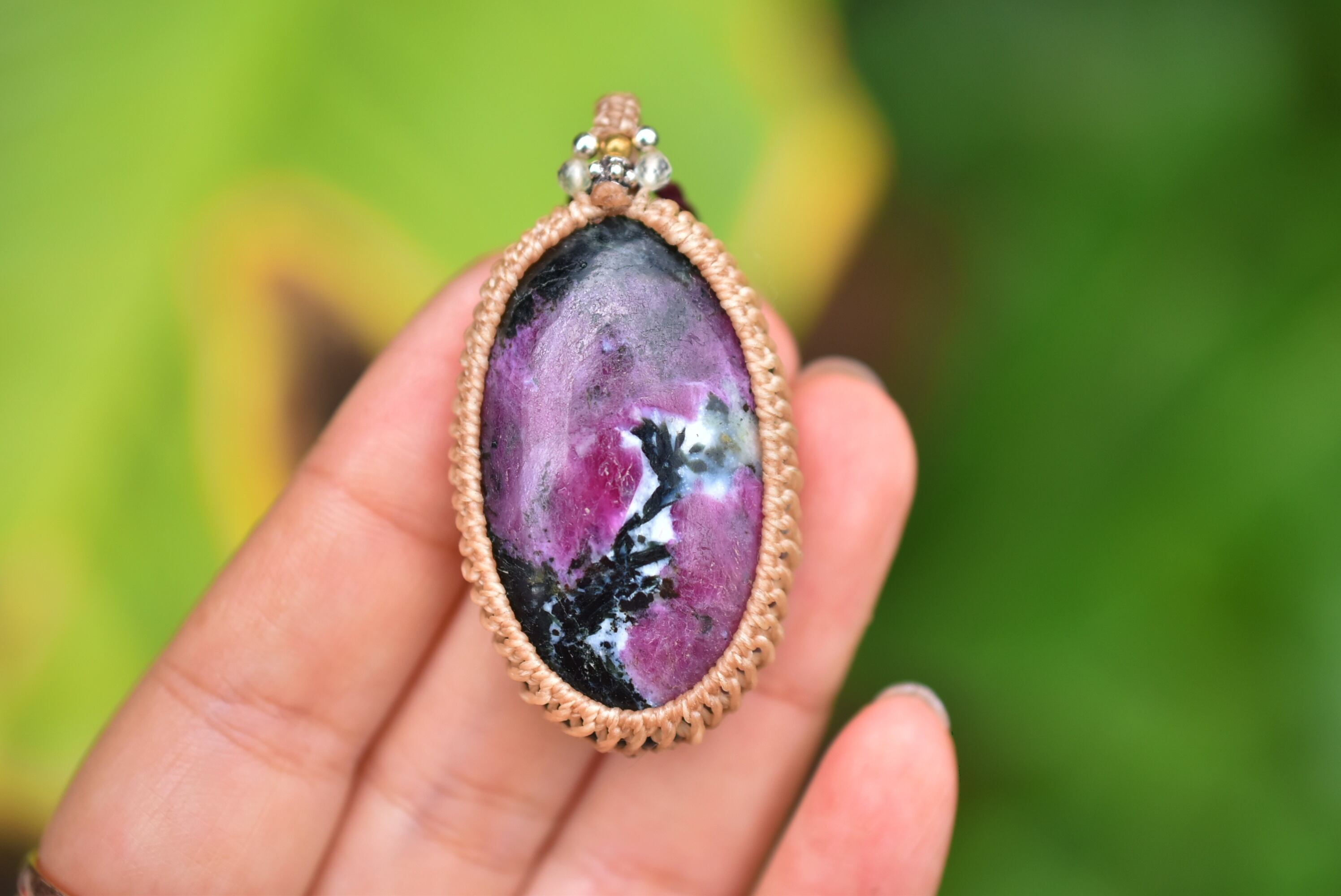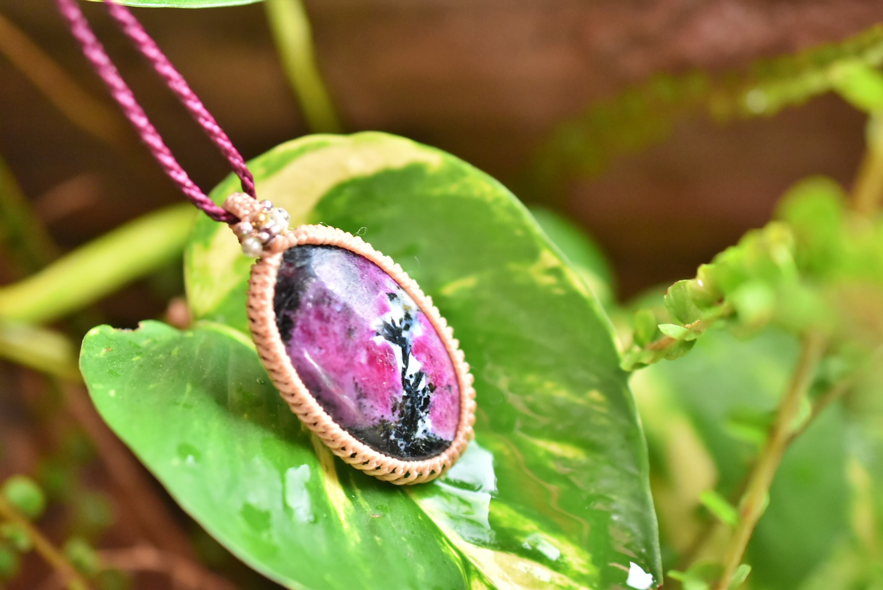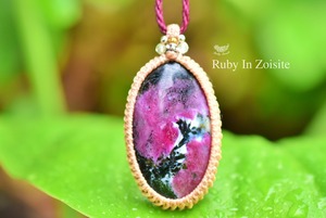 稲妻模様★大粒★ルビーインゾイサイト マクラメネックレス1259