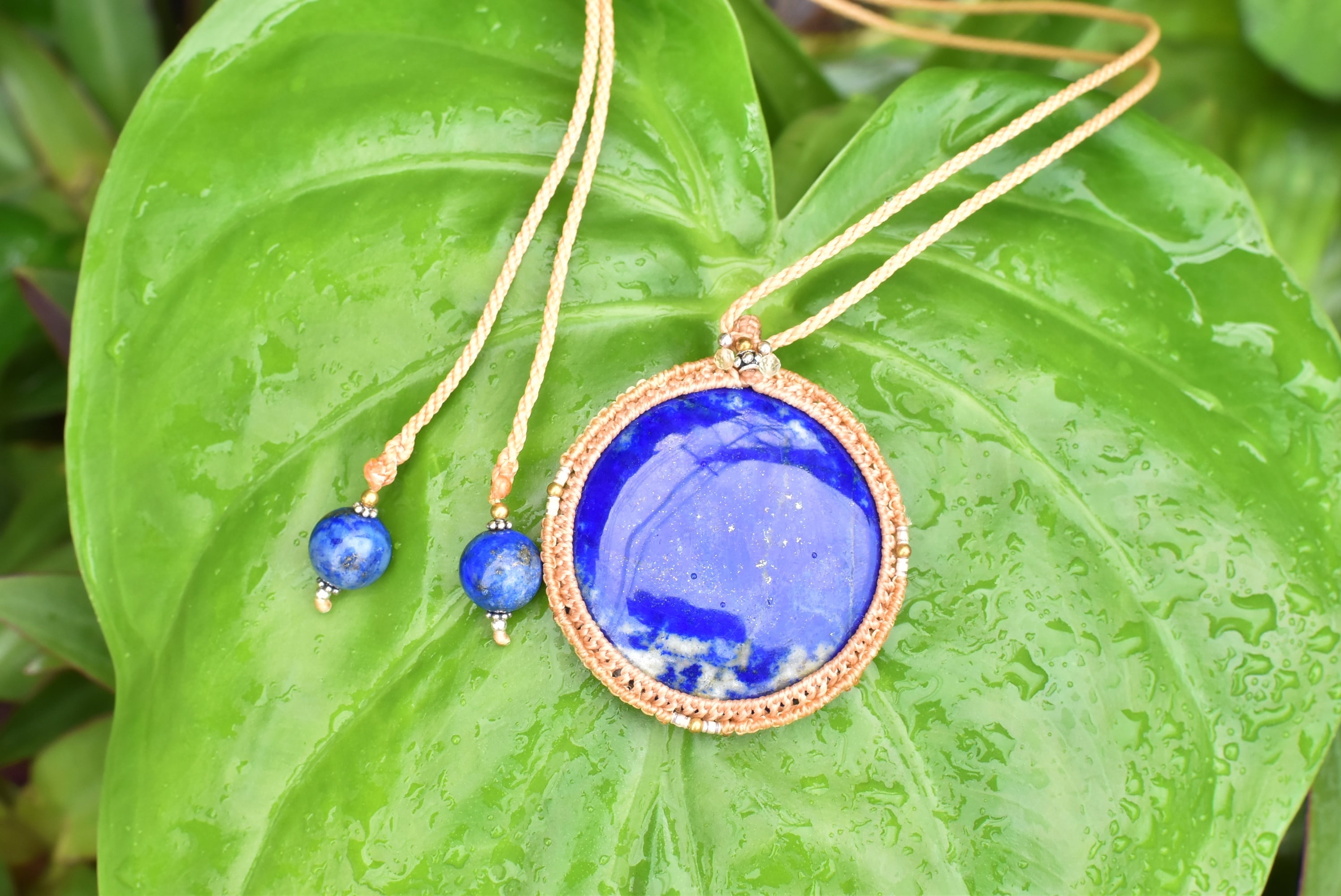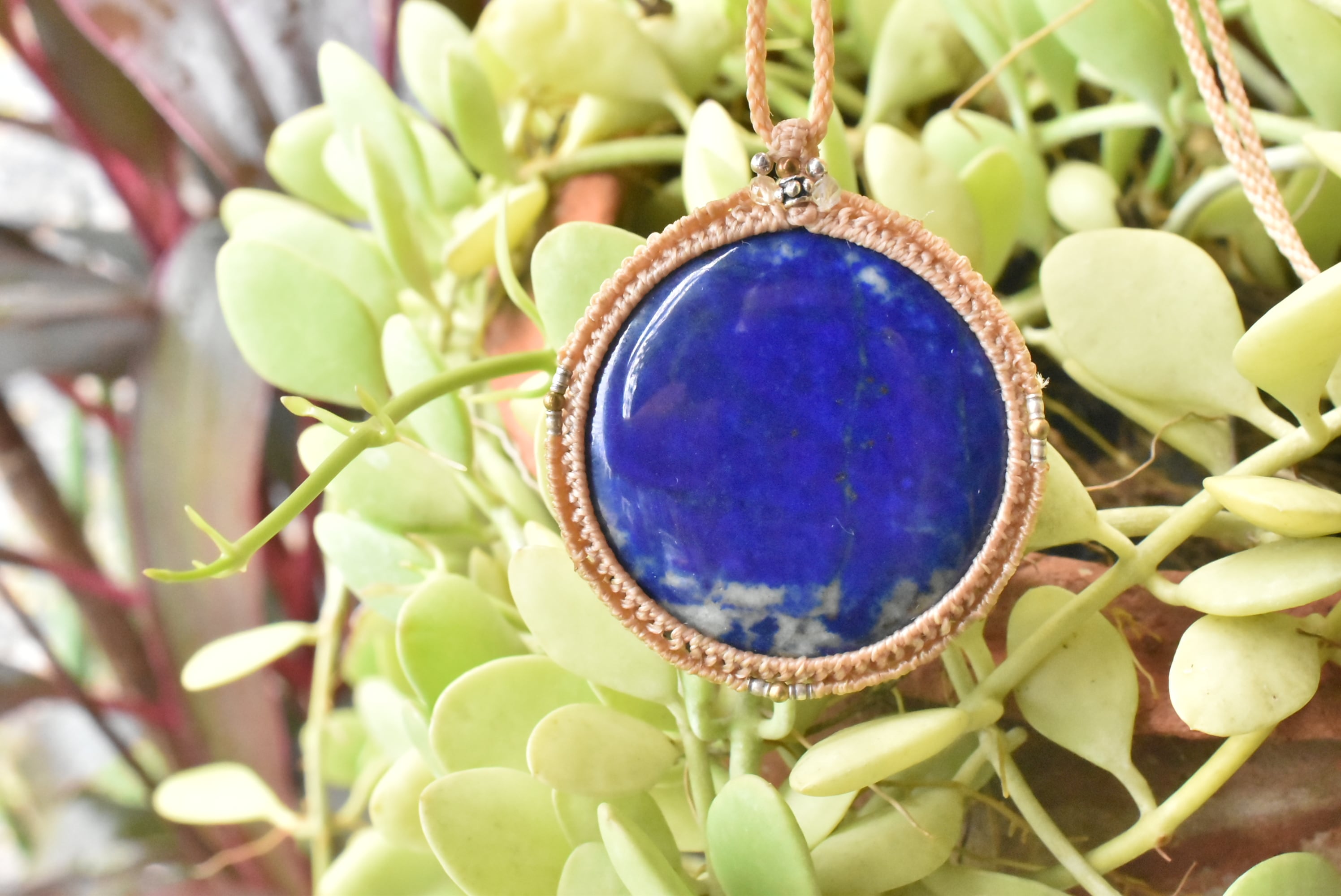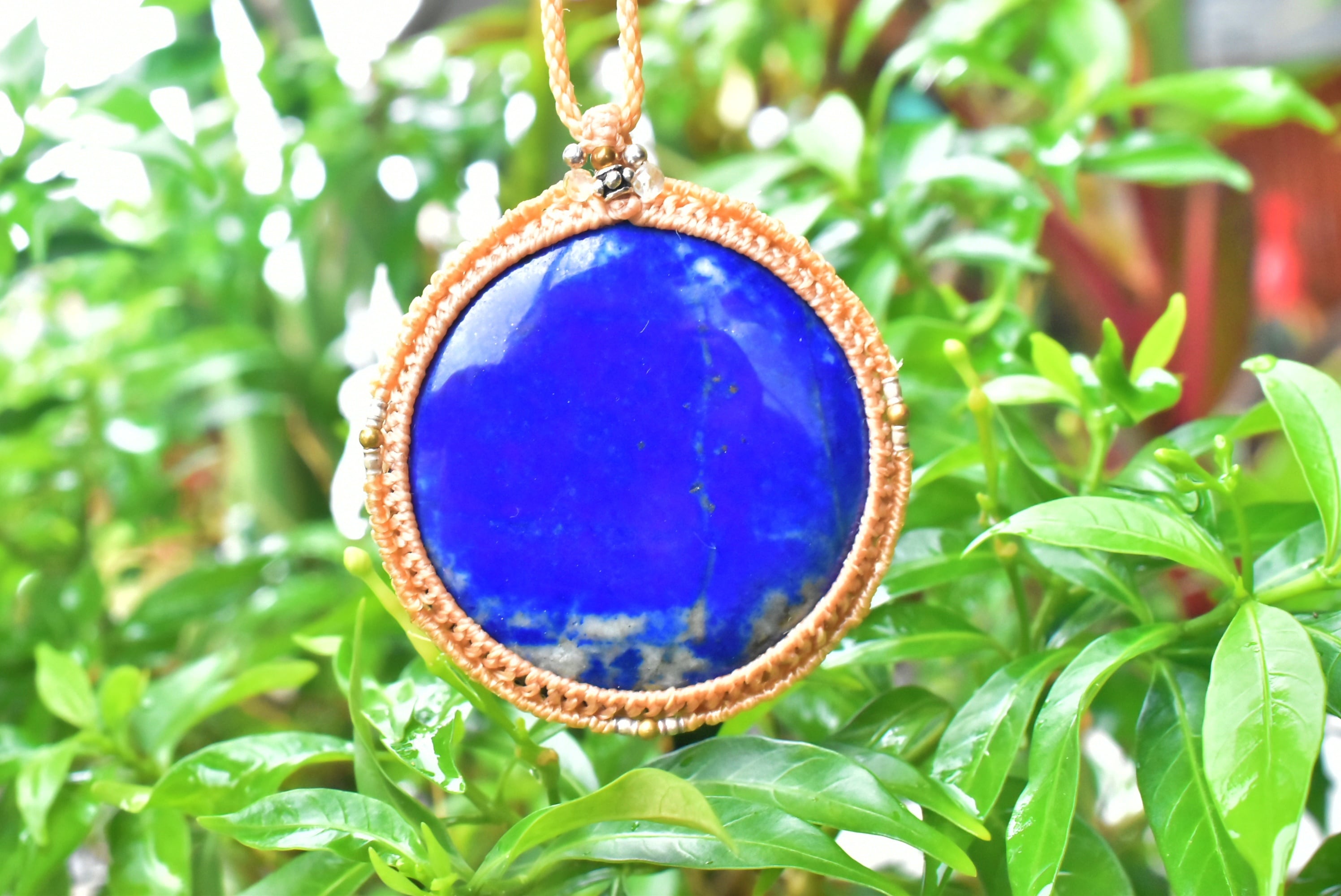 特大★チリ産★ラピスラズリ マクラメペンダントネックレス1265