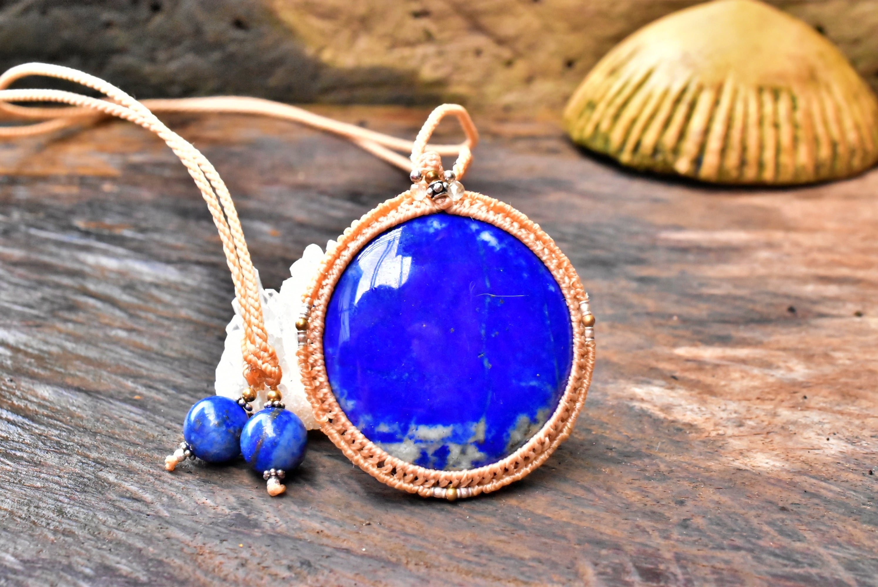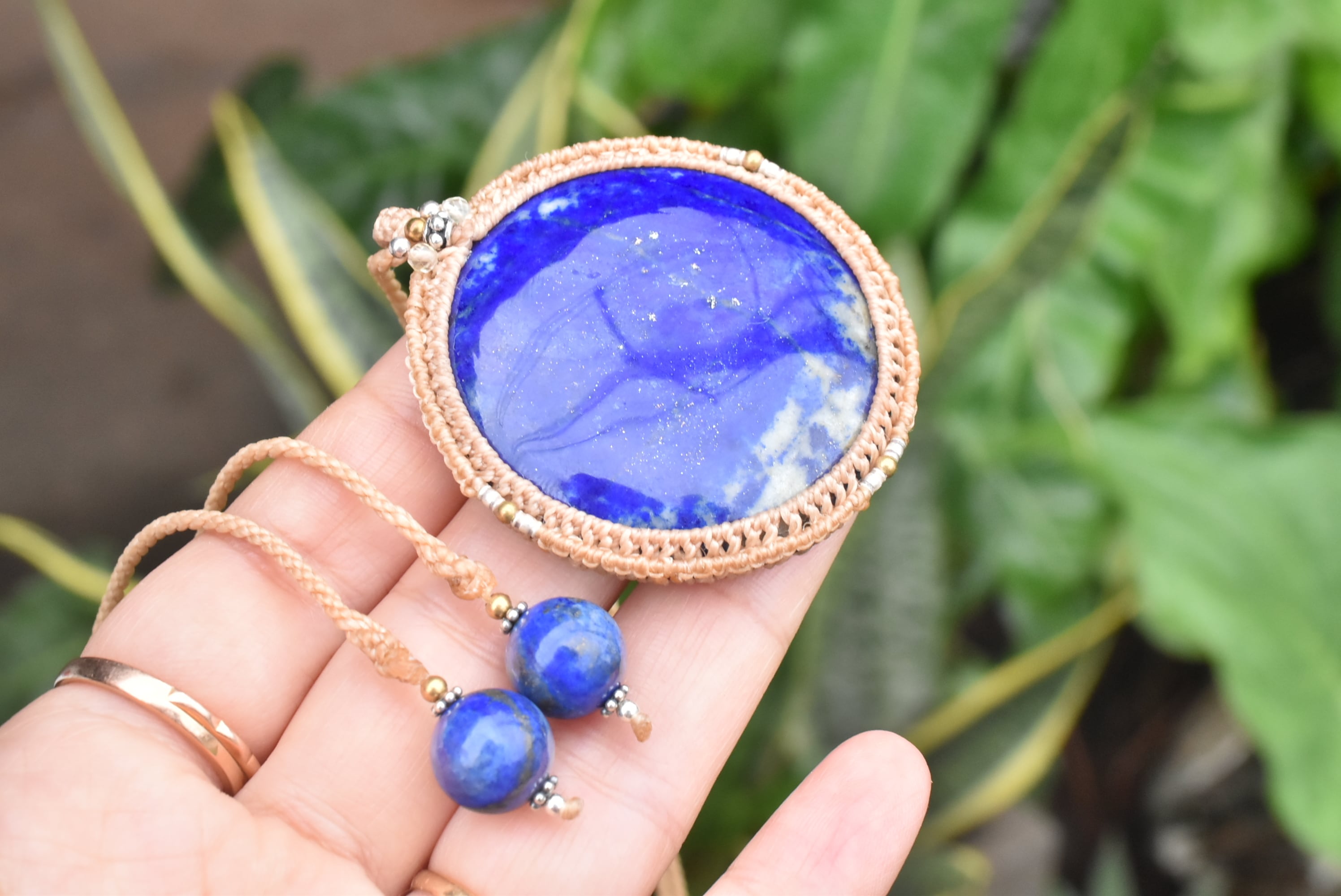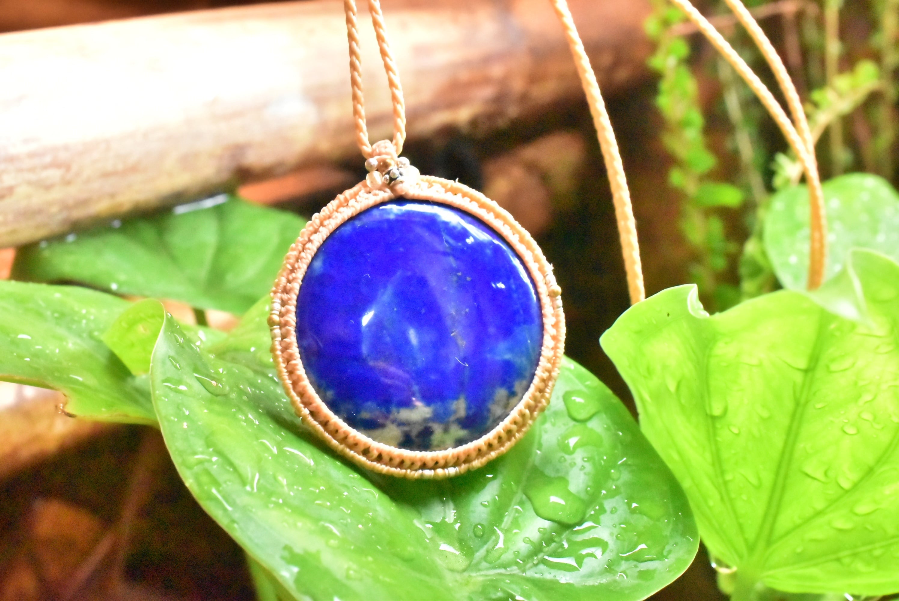 特大★チリ産★ラピスラズリ マクラメペンダントネックレス1265