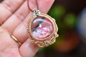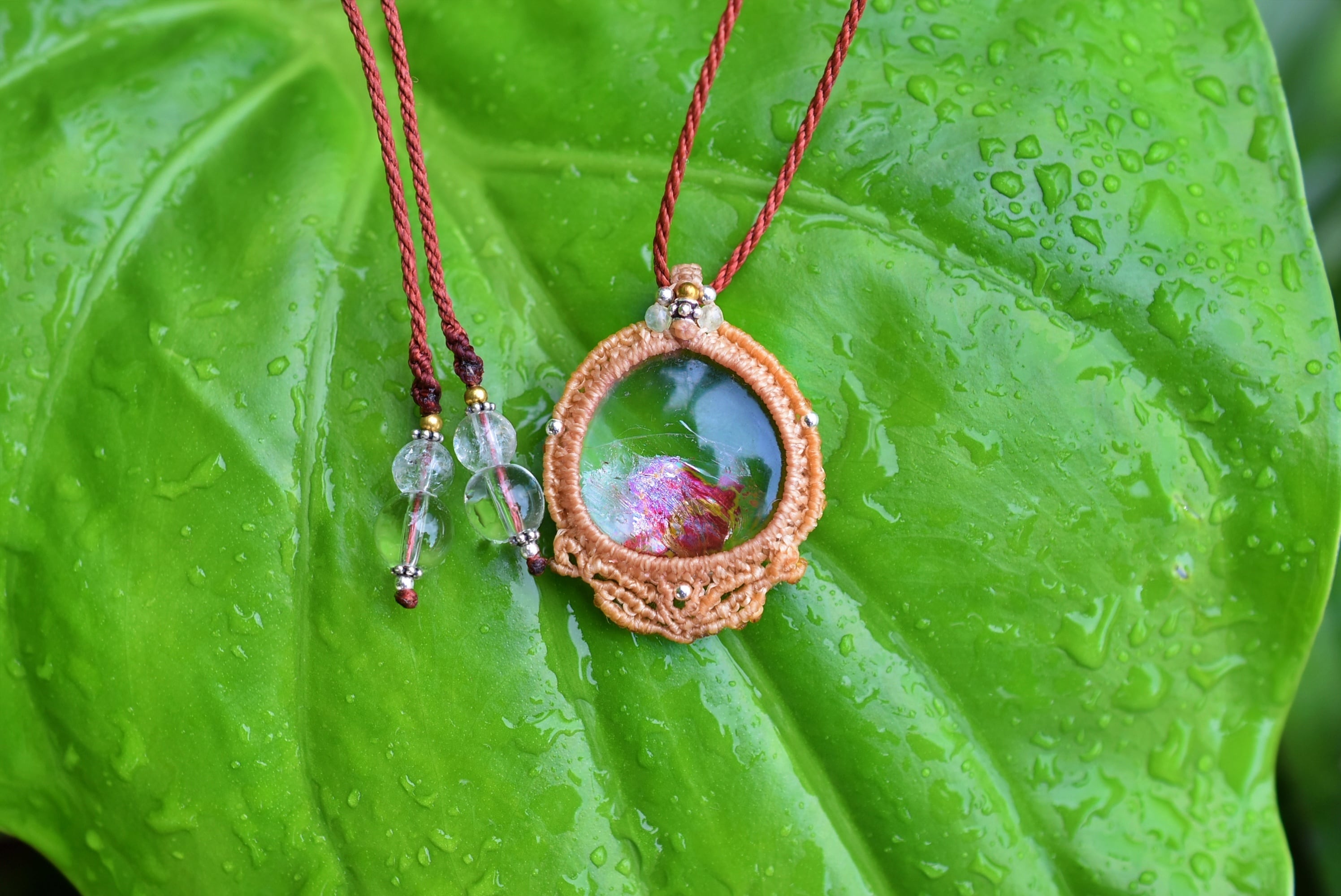 真っ赤な夕日★虹入り★ライモナイトインクォーツ マクラメネックレス1267