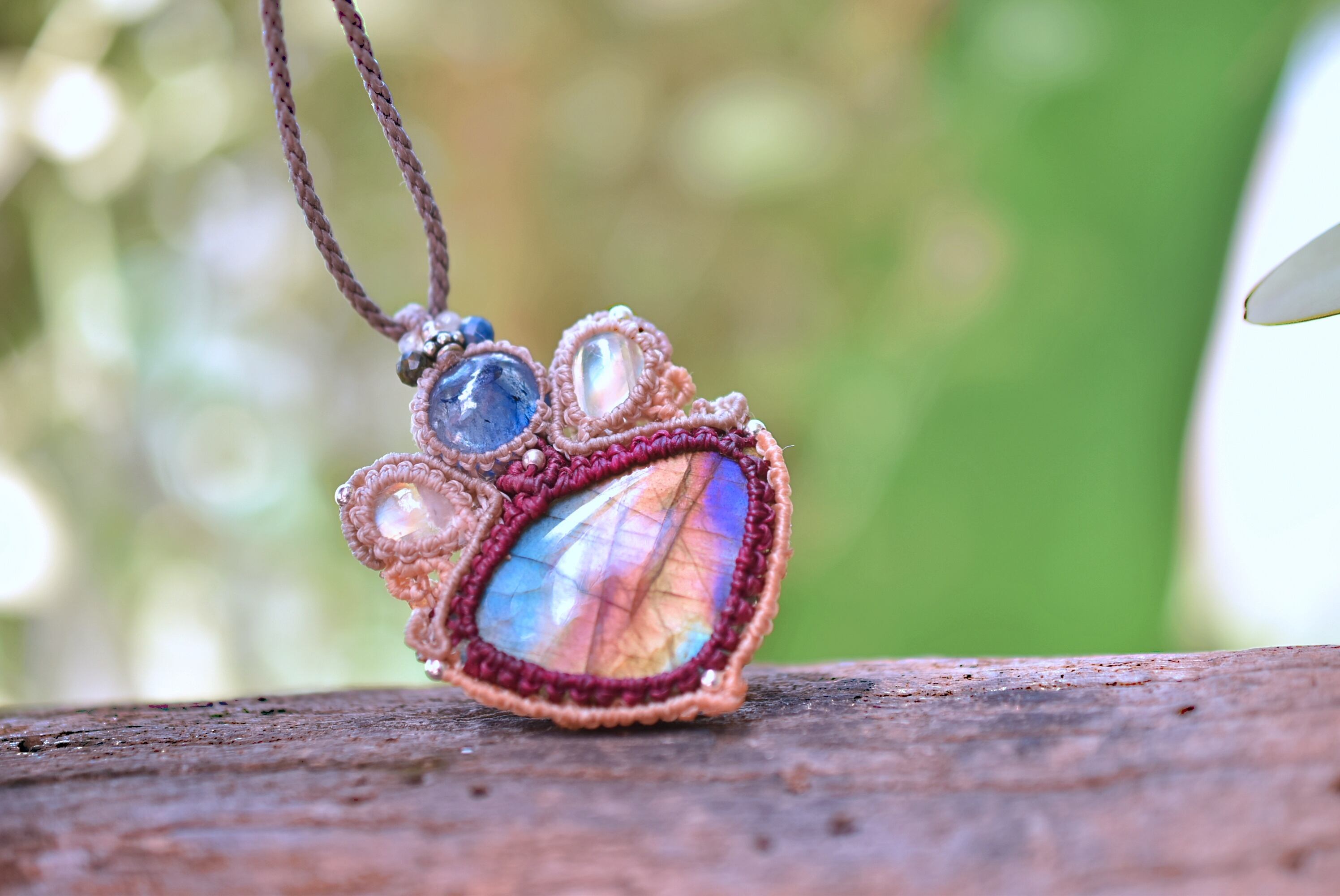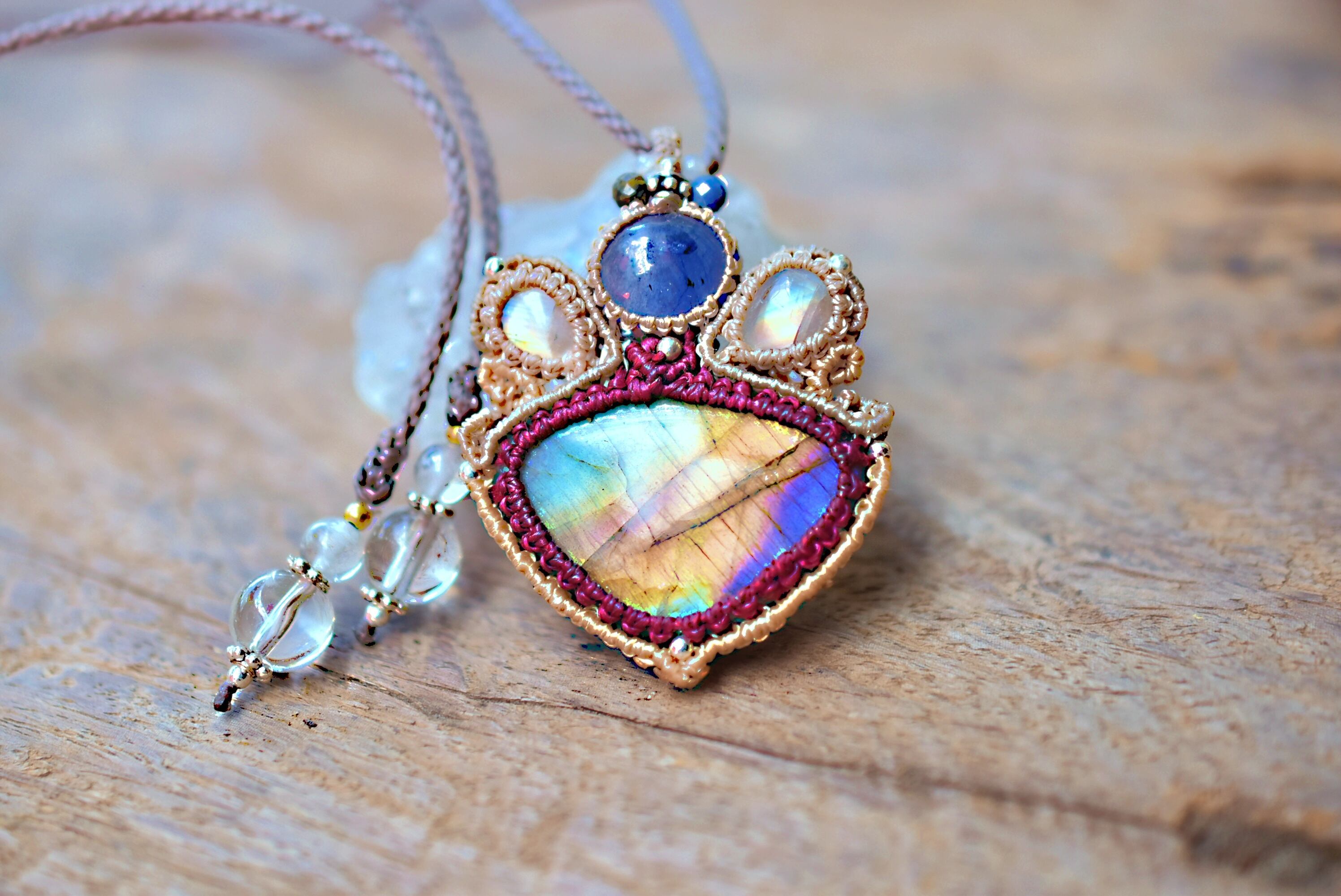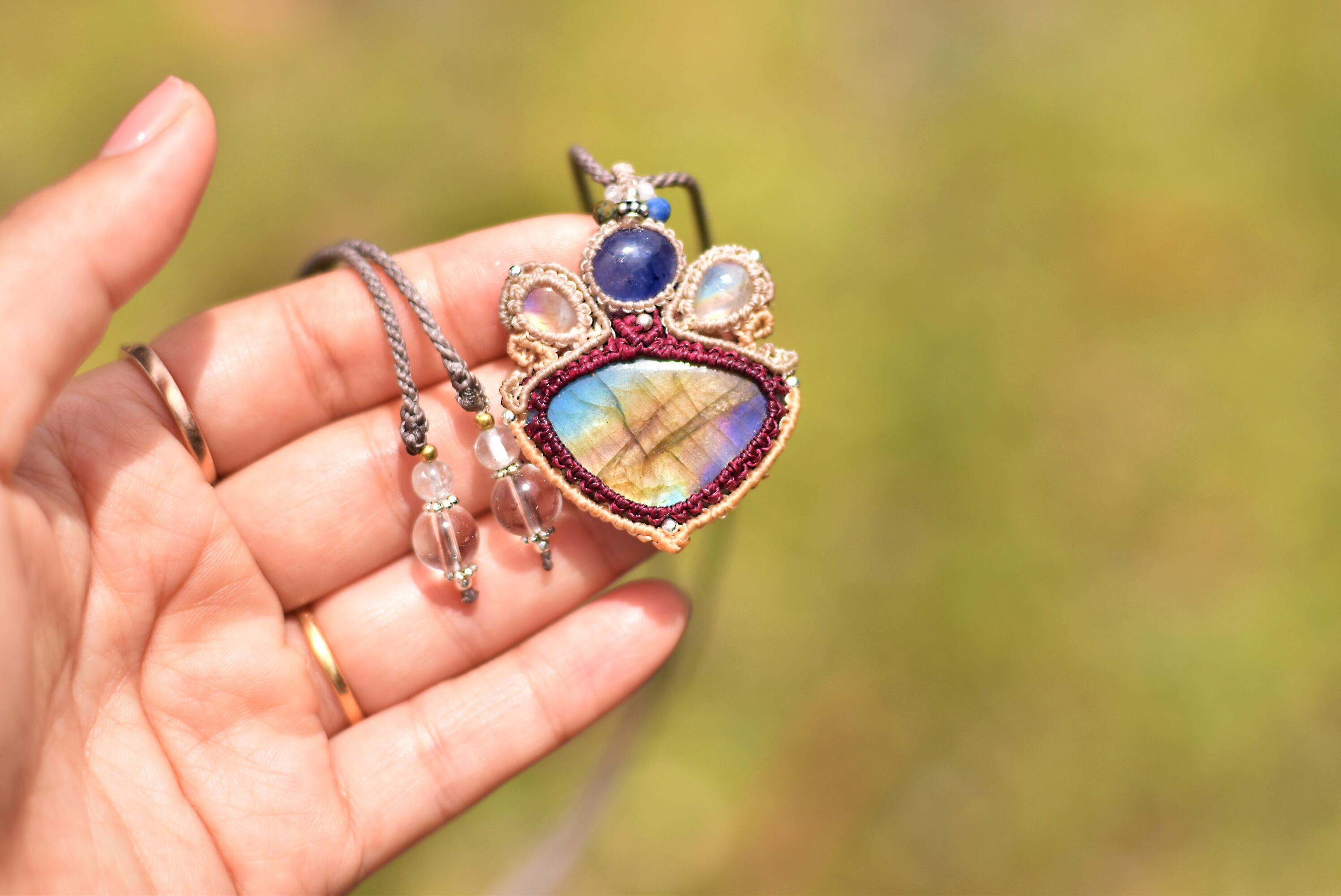 虹太陽★サファイア ラブラドライトマクラメネックレス1272