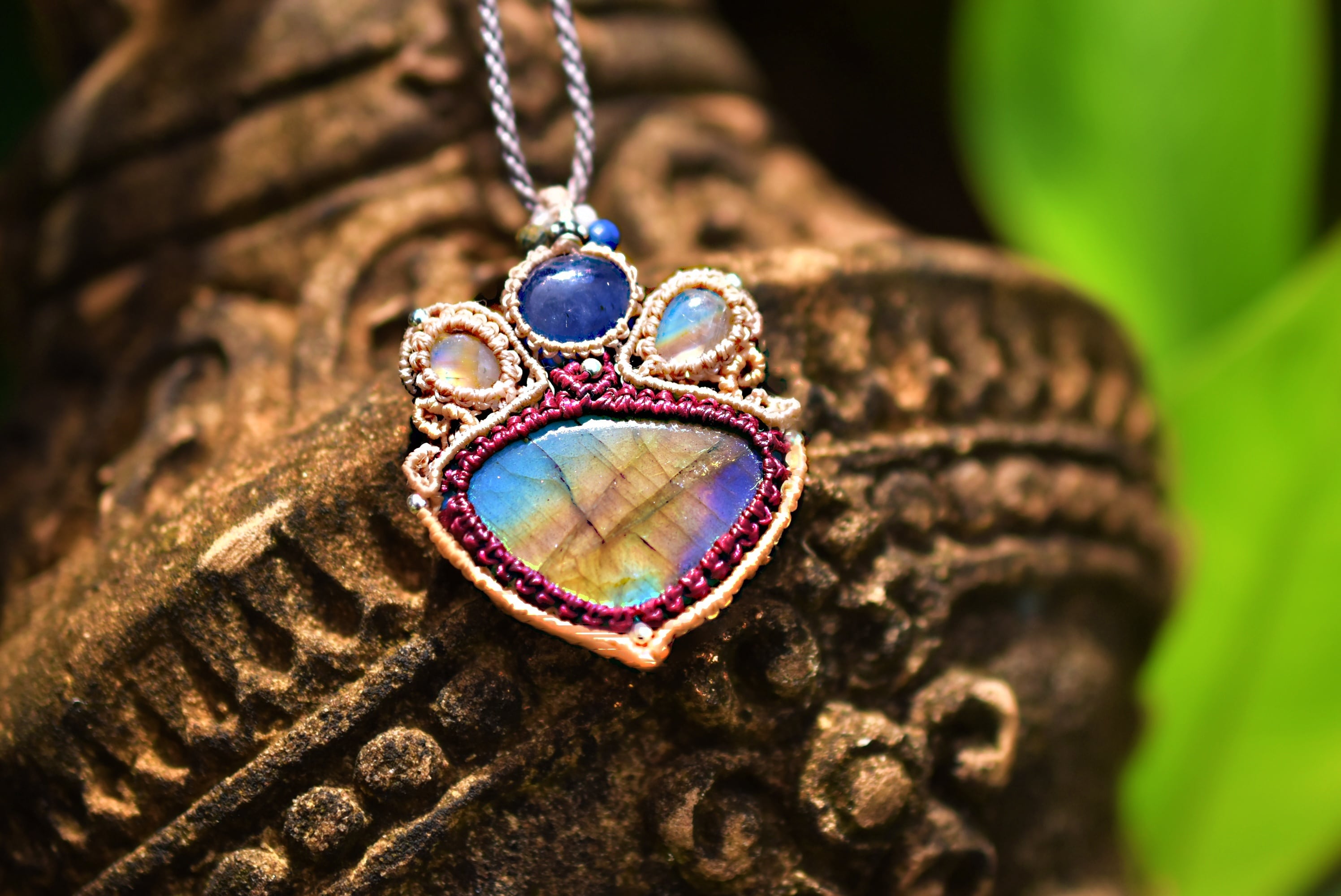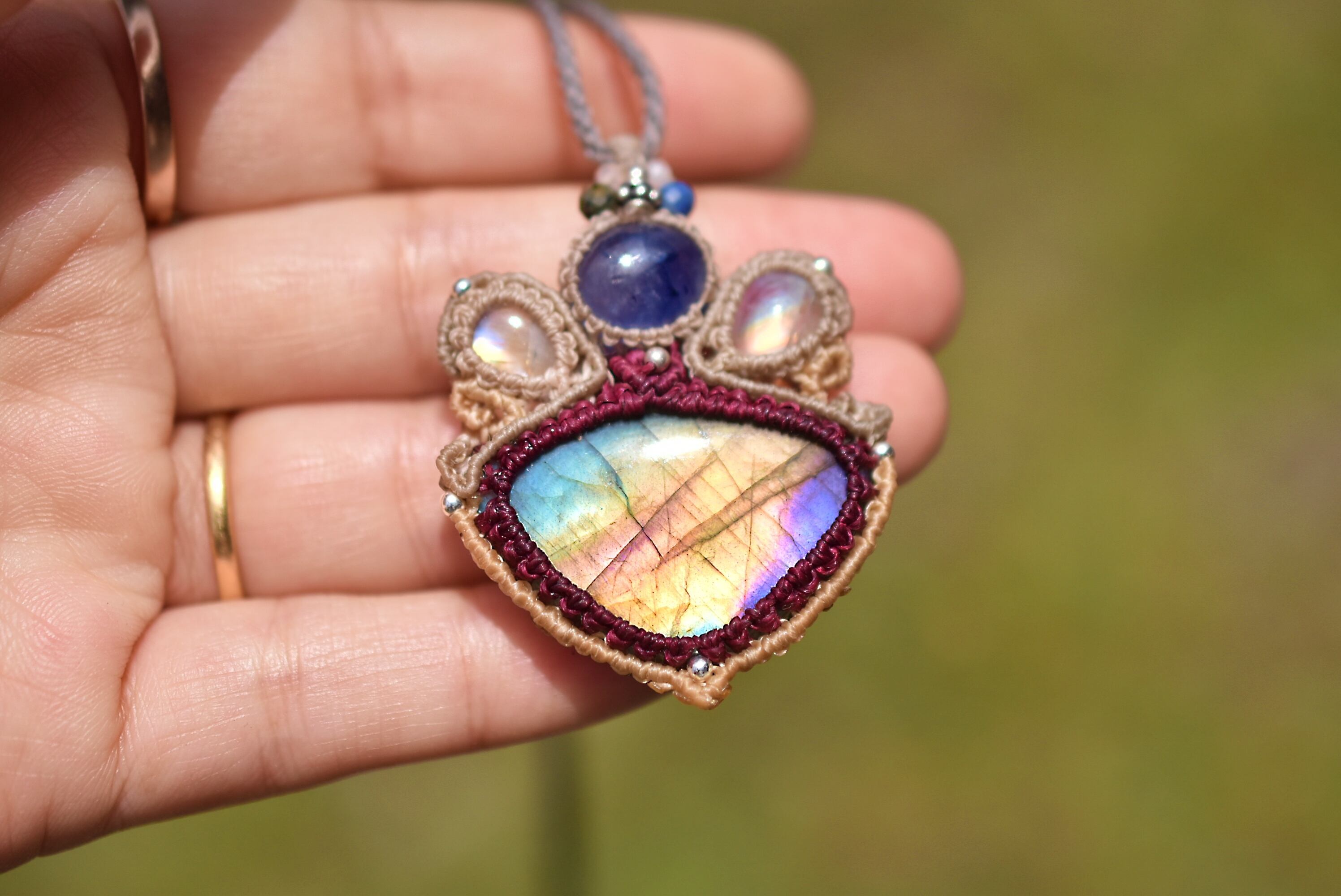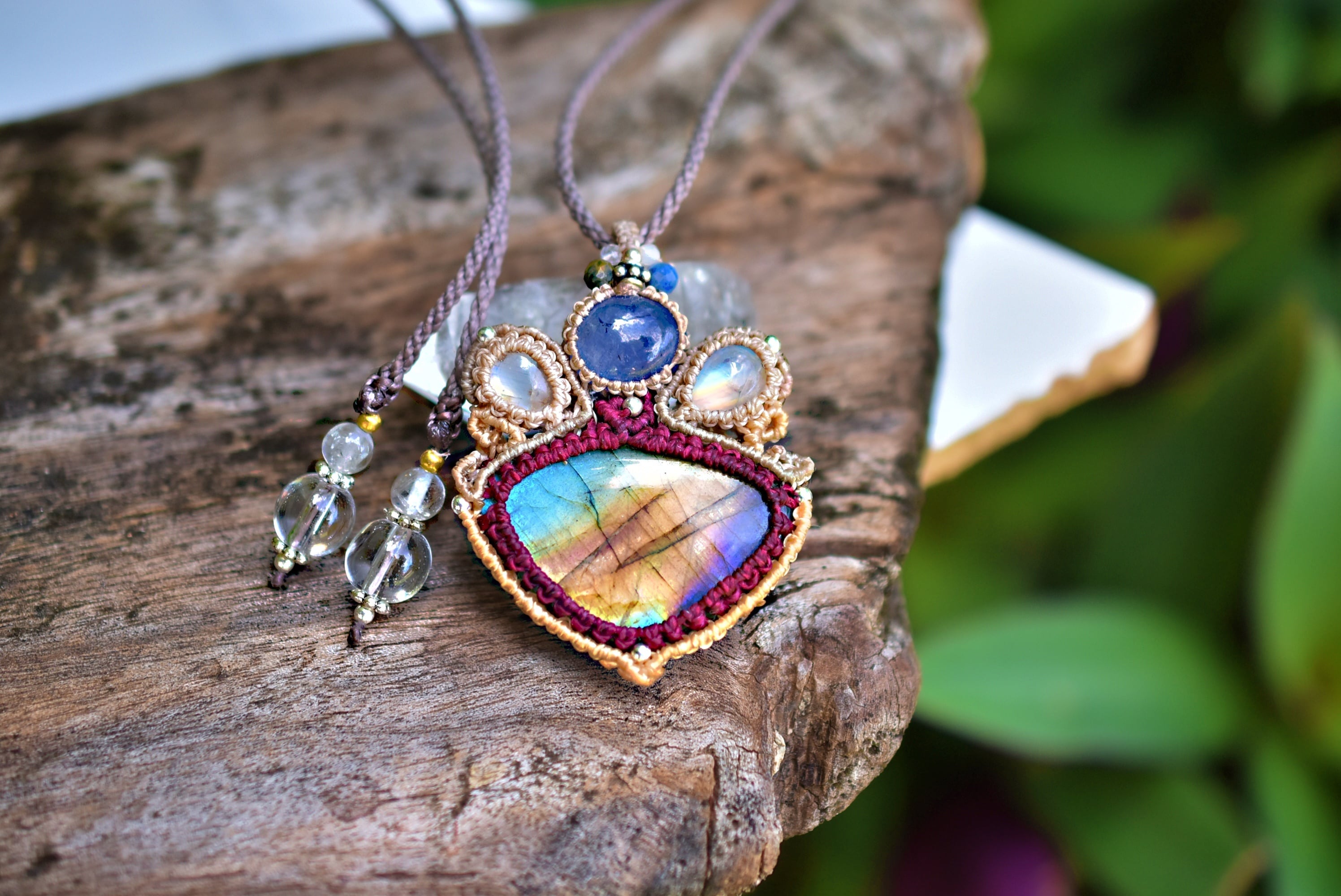虹太陽★サファイア ラブラドライトマクラメネックレス1272