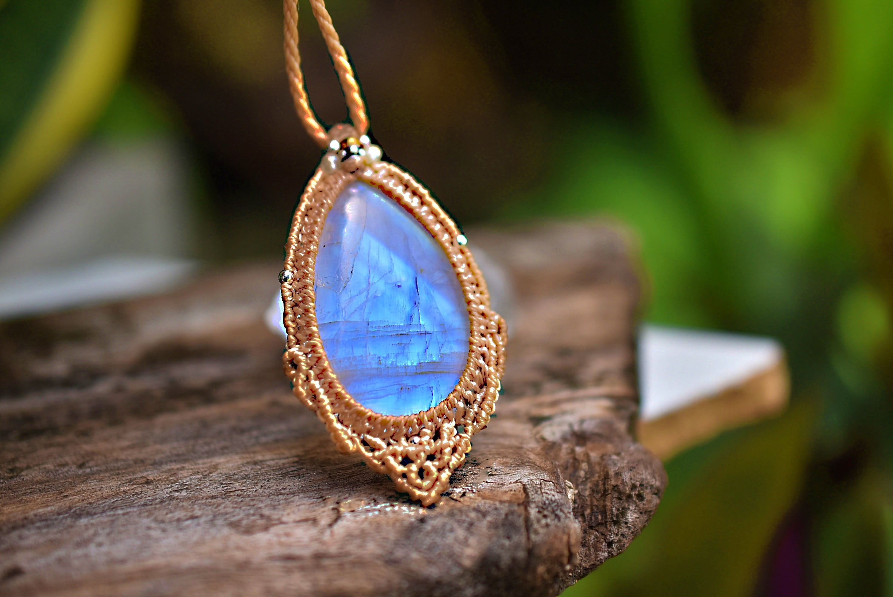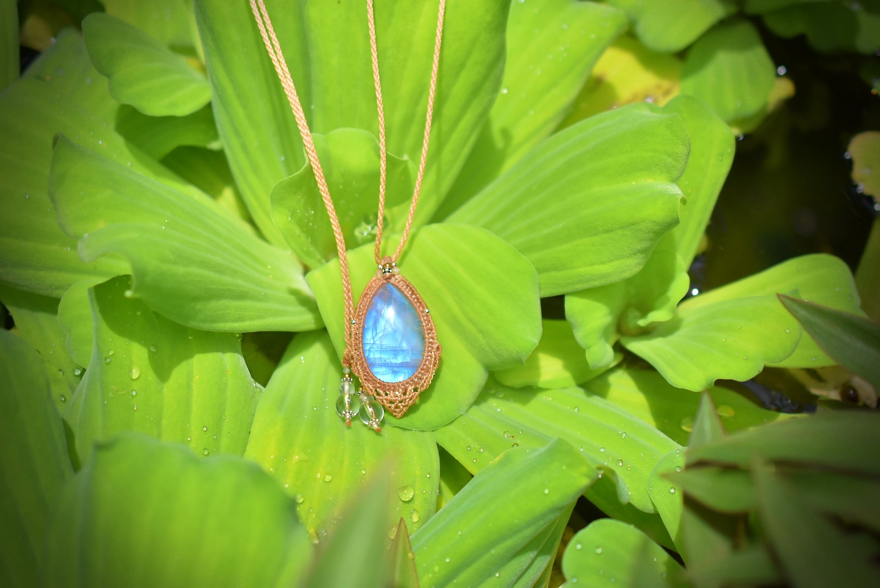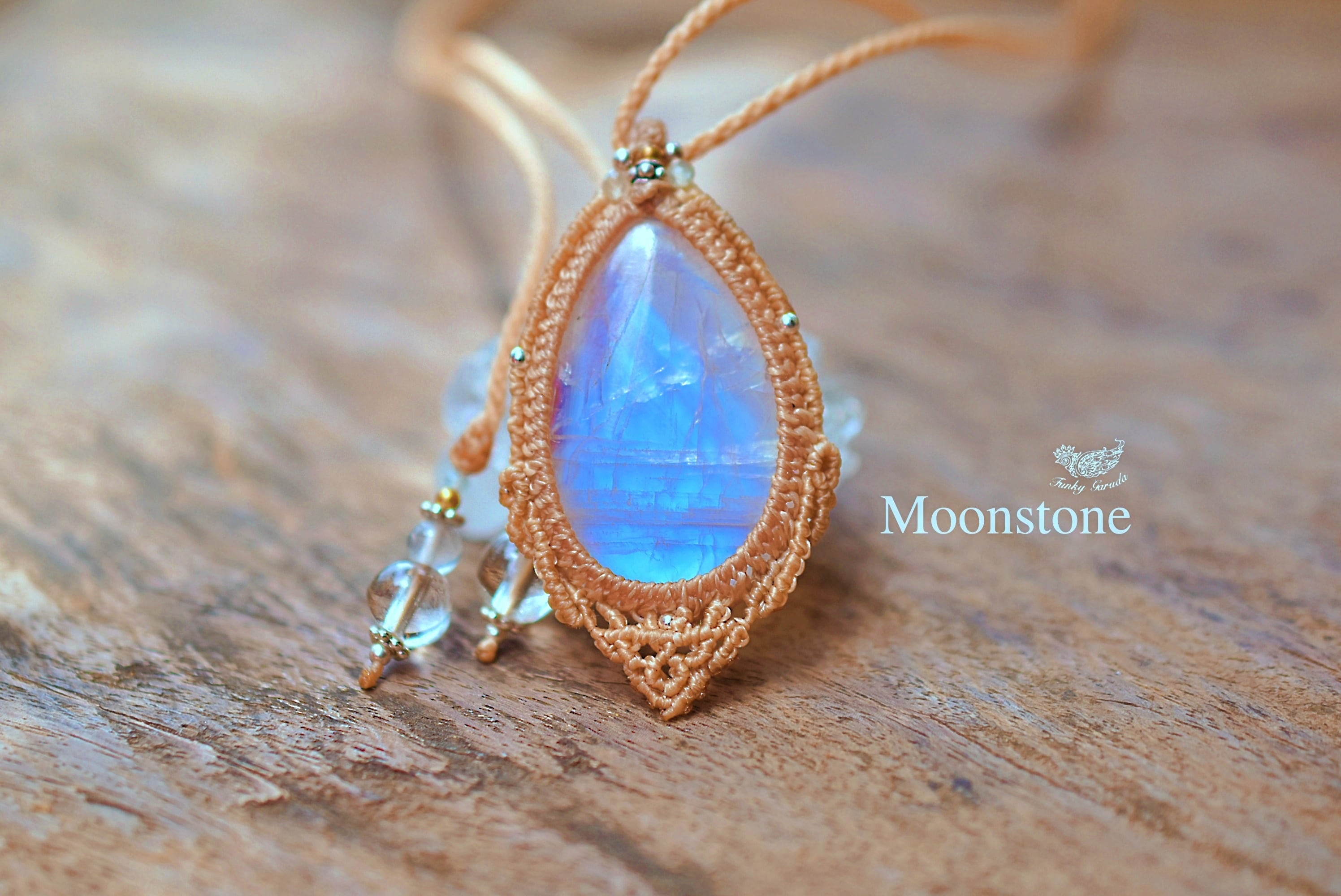 虹のしずく★大粒★高品質レインボームーンストーン マクラメネックレス1274