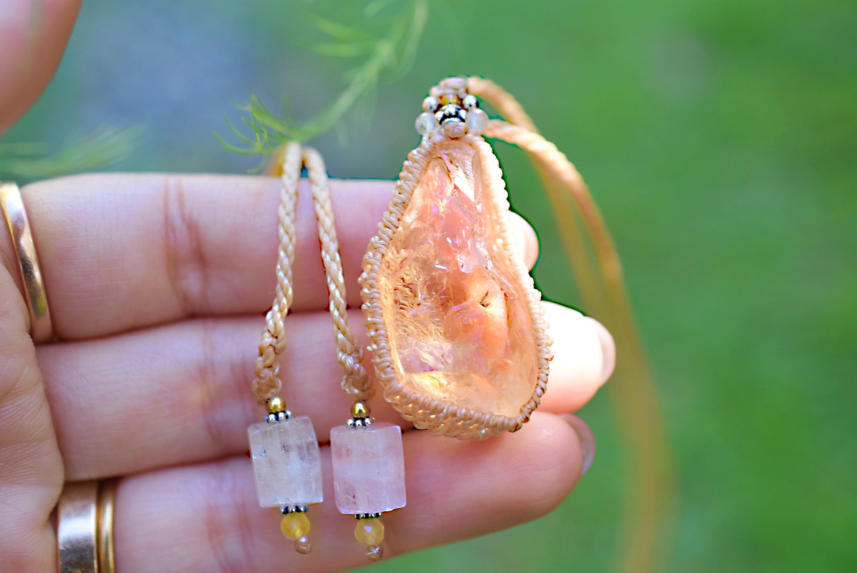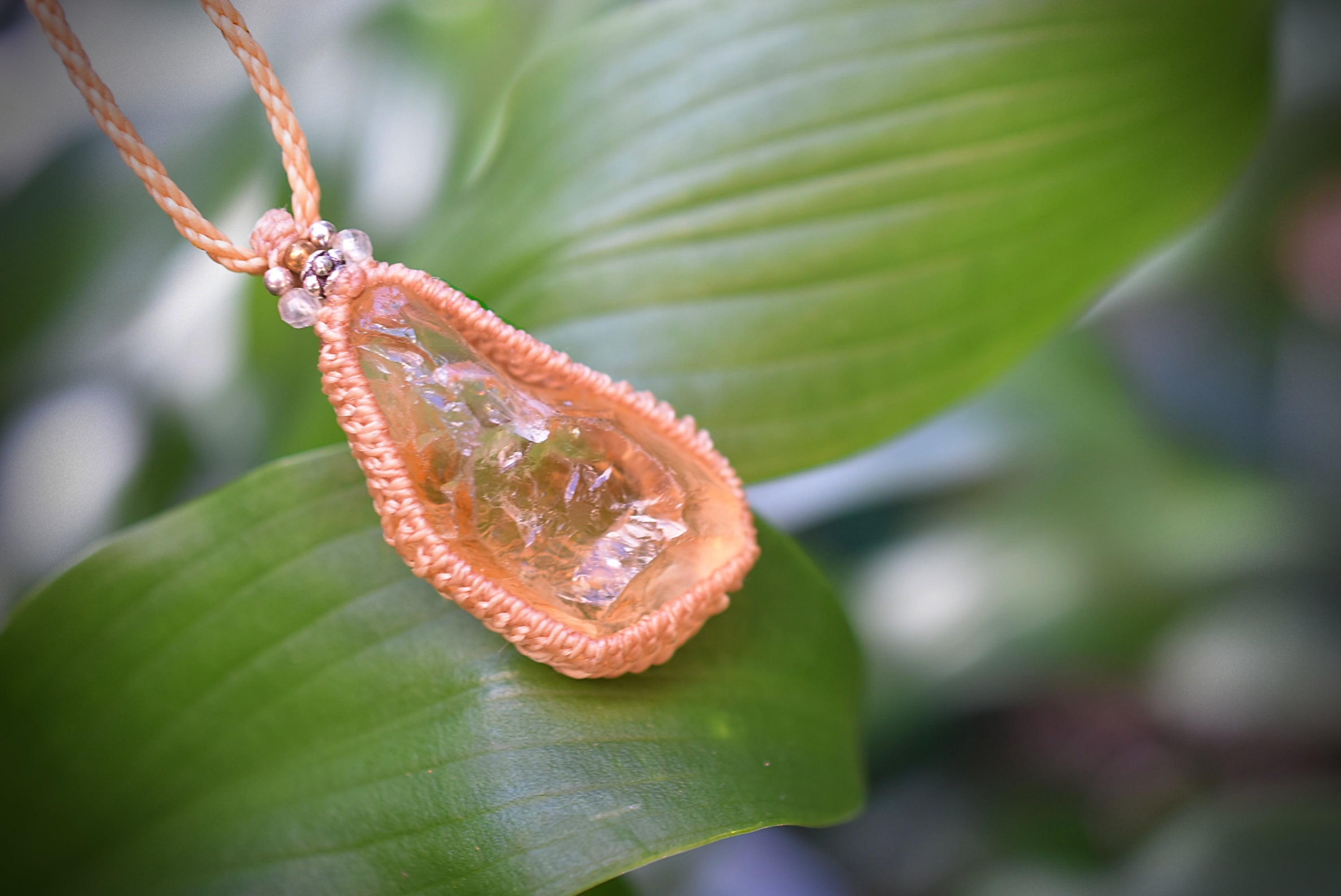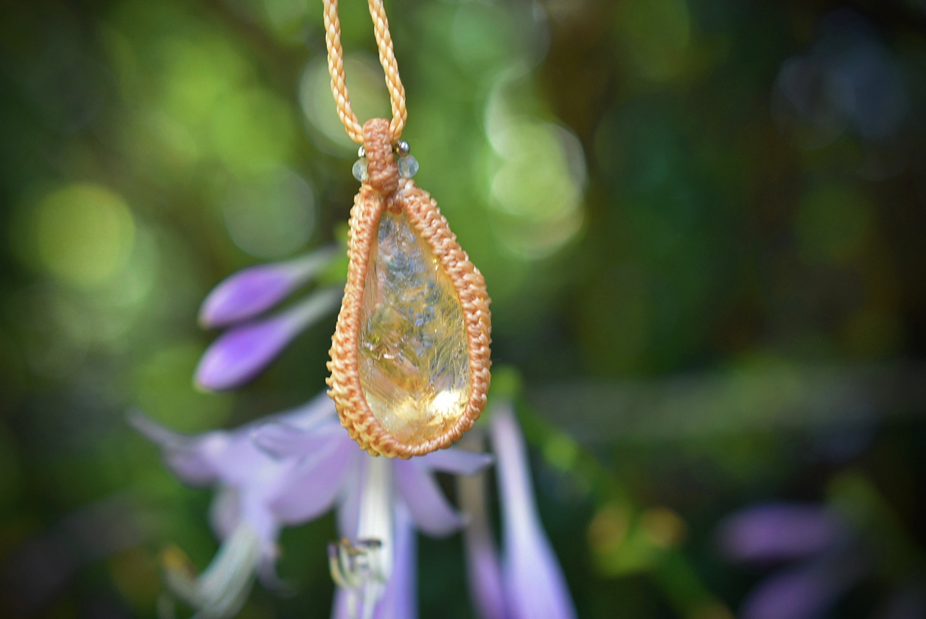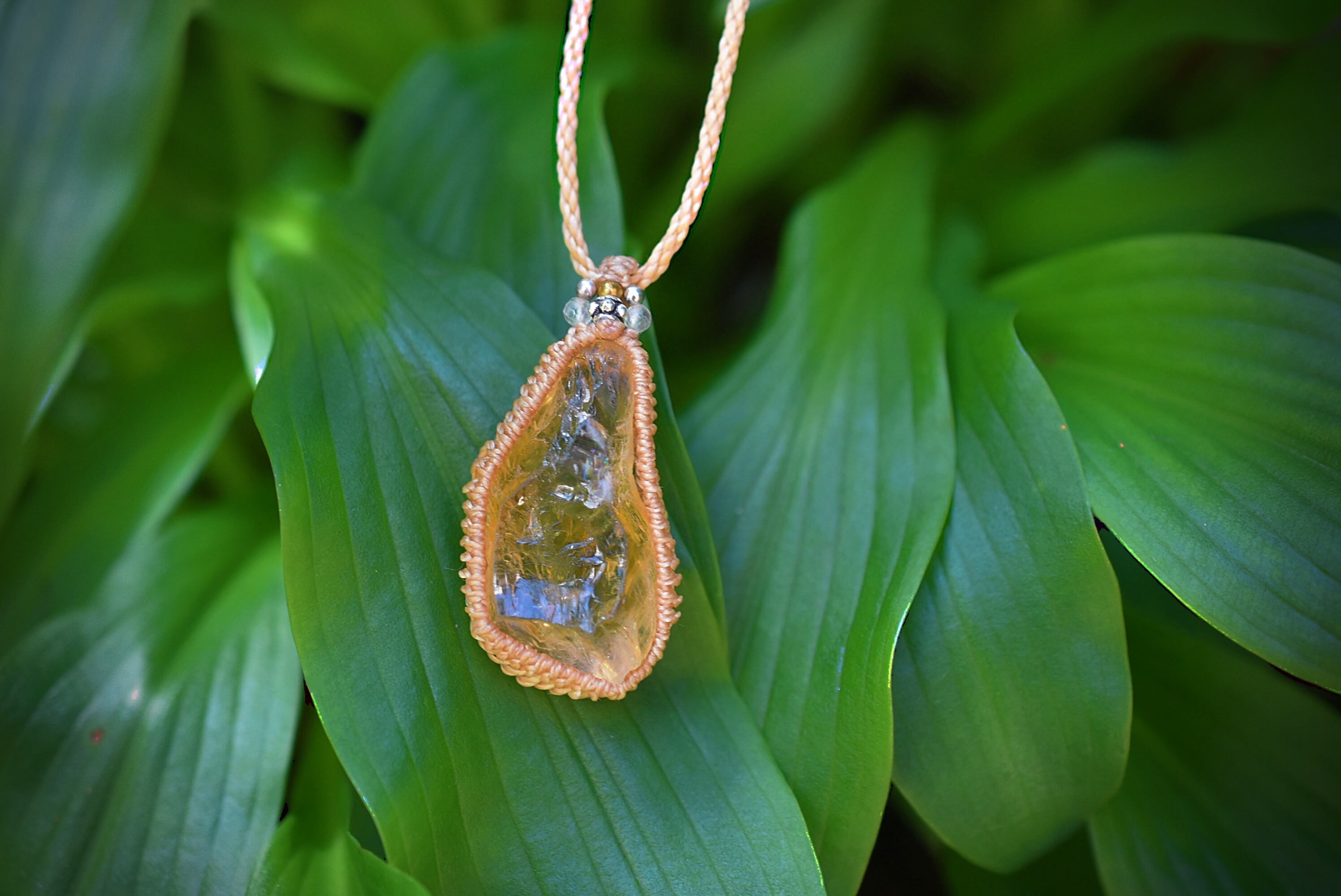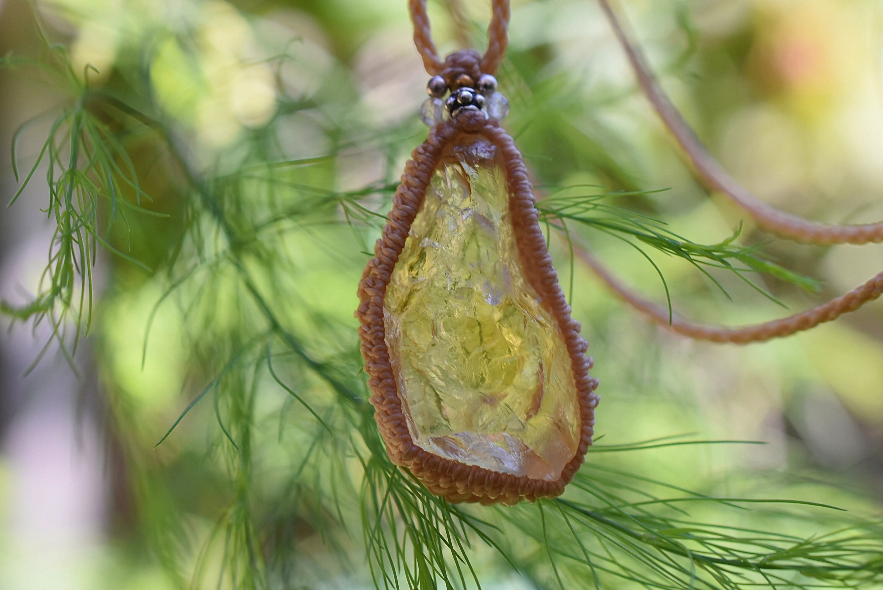 艶やかな黄金★シトリン原石 マクラメネックレス1277
