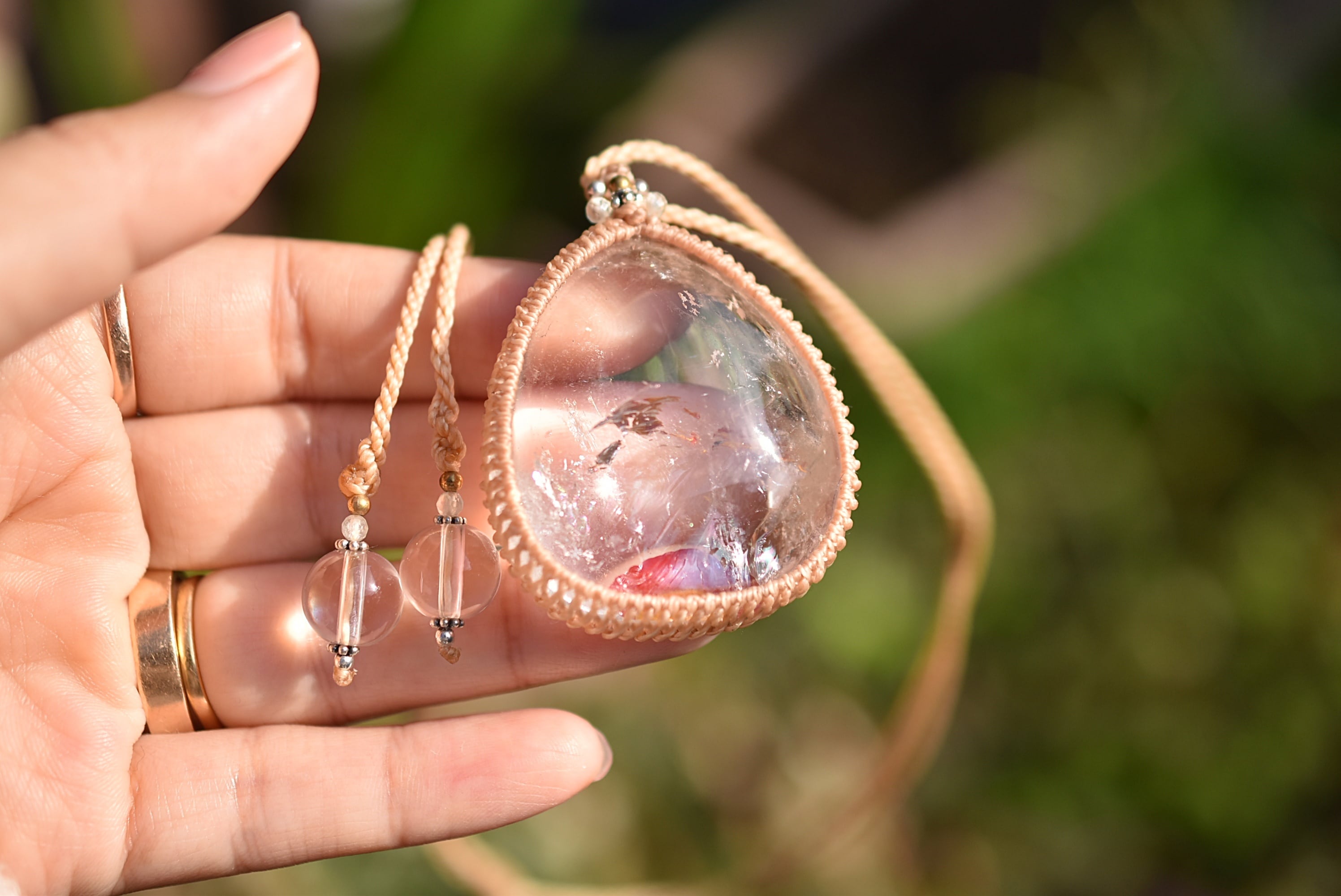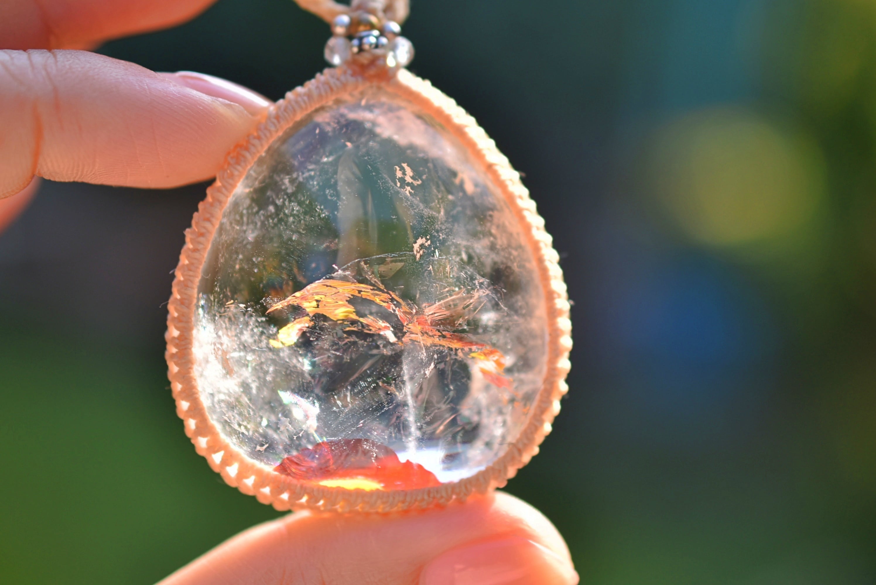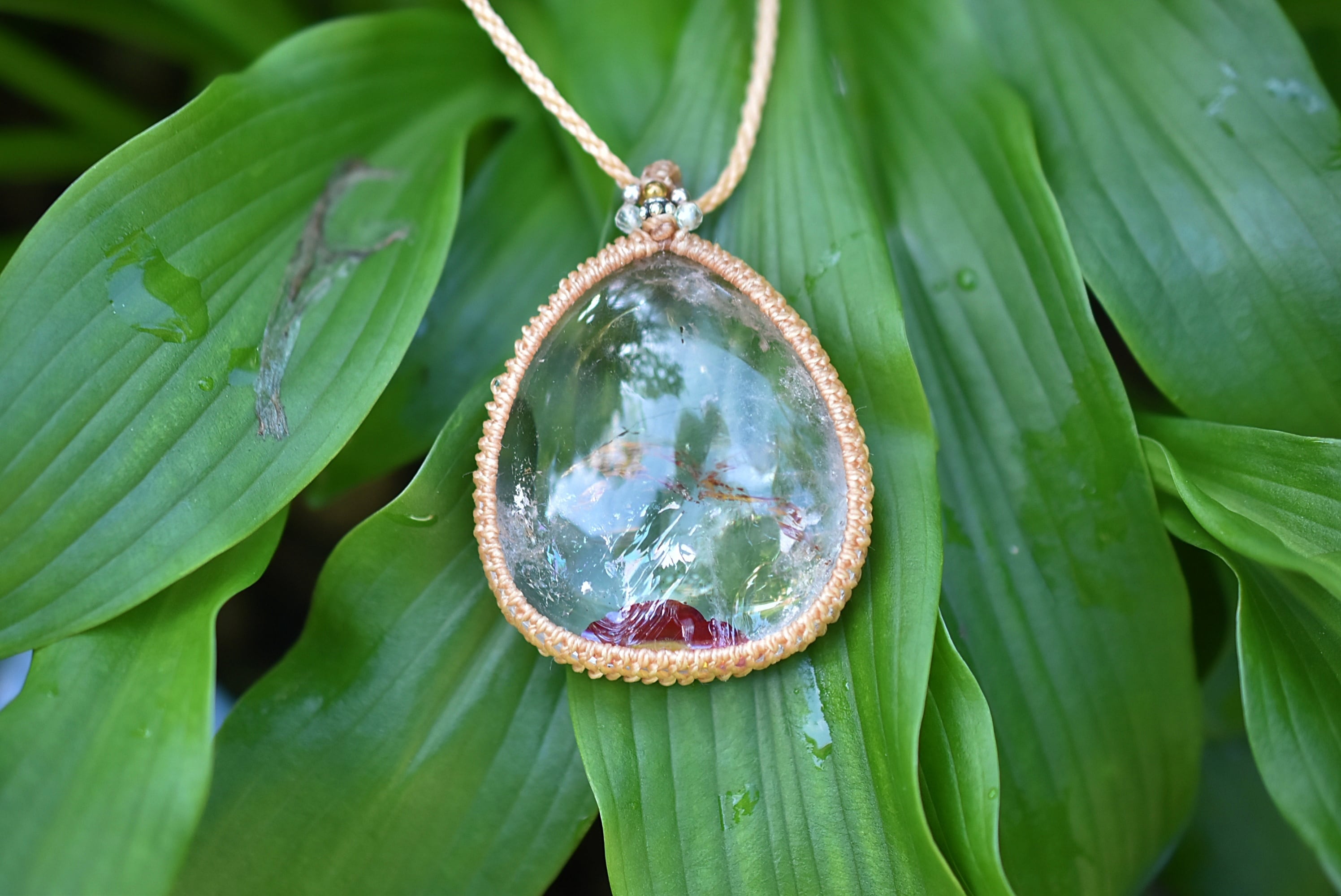 夕日と虹★特大★虹入り★ライモナイトインクォーツ マクラメネックレス1287