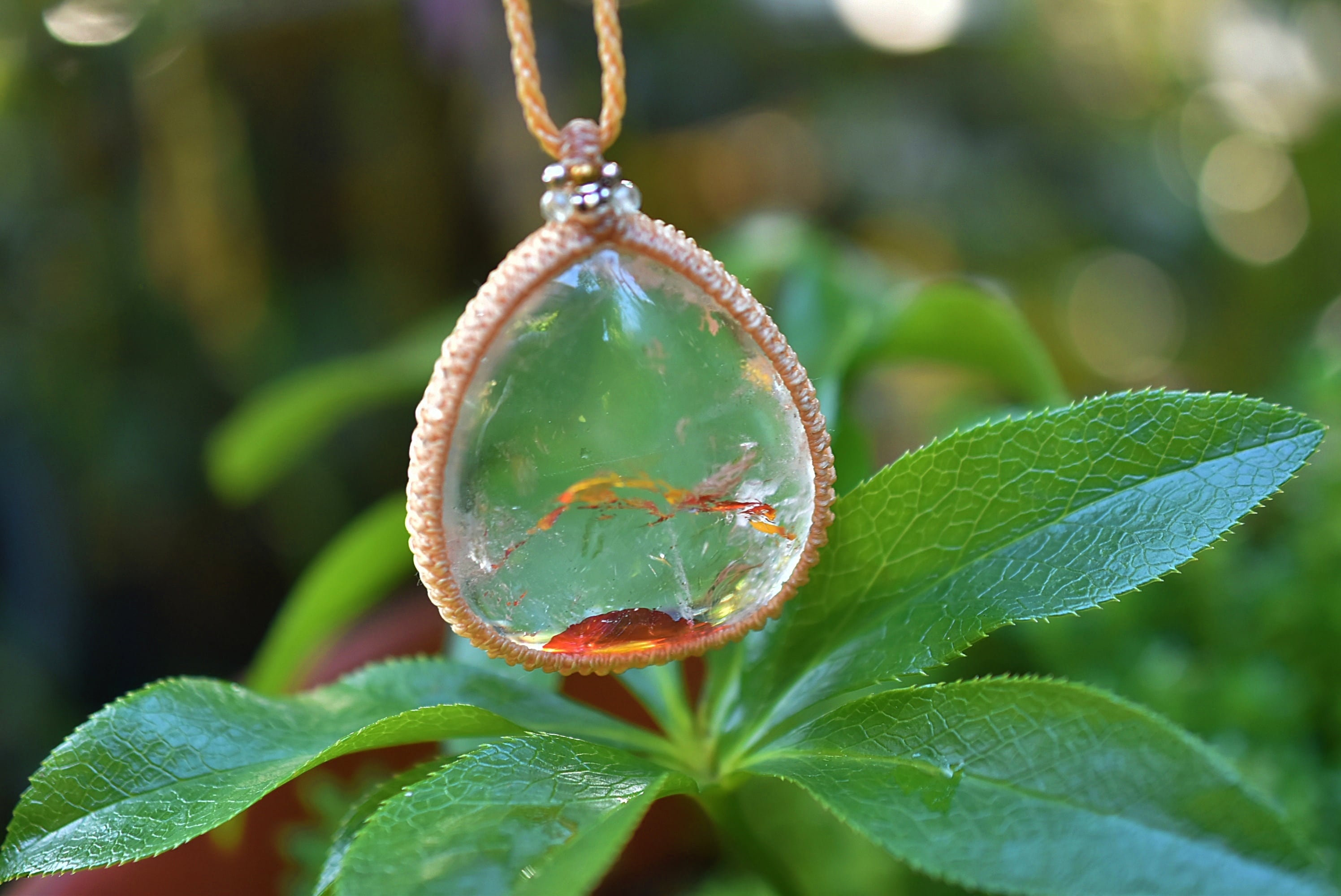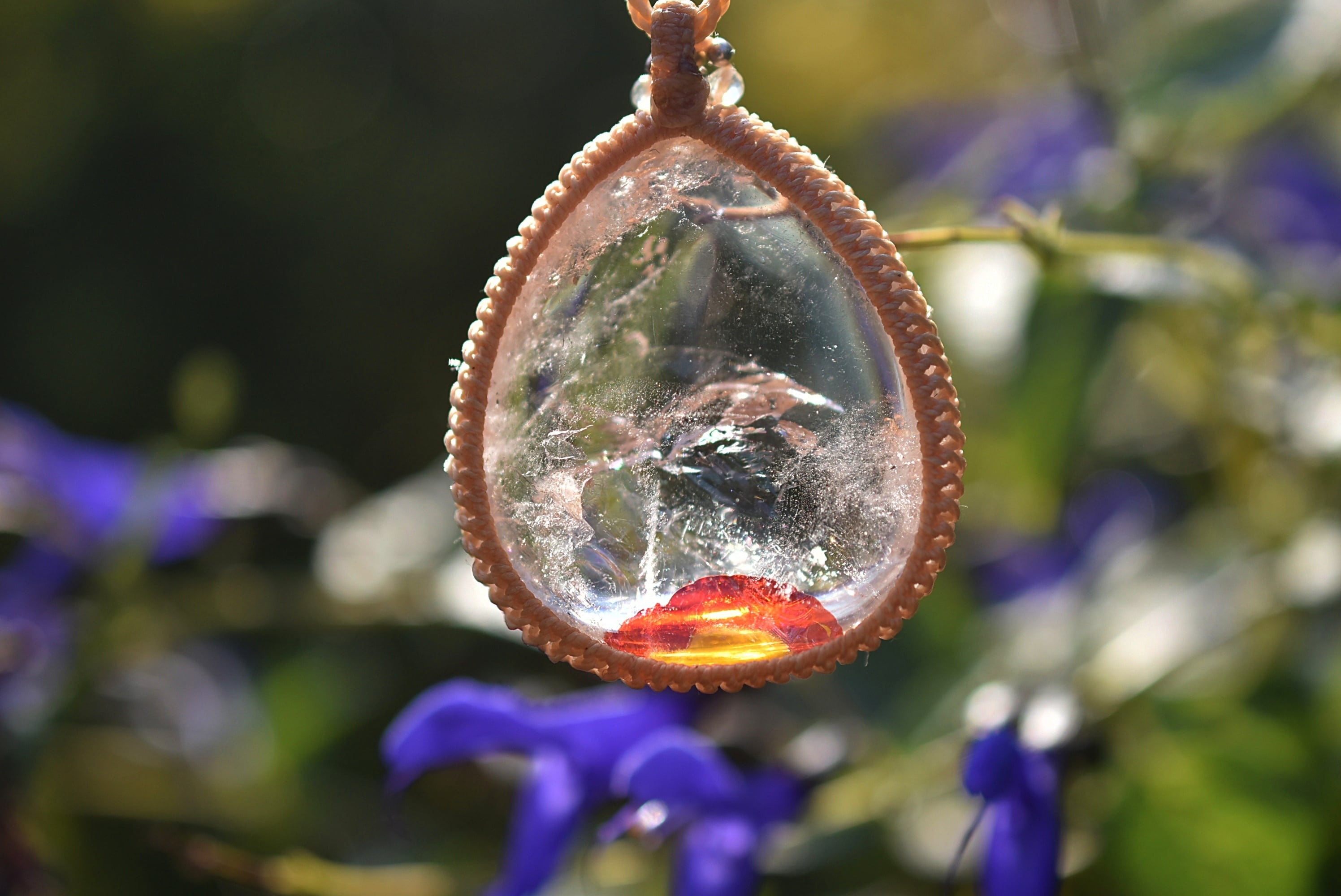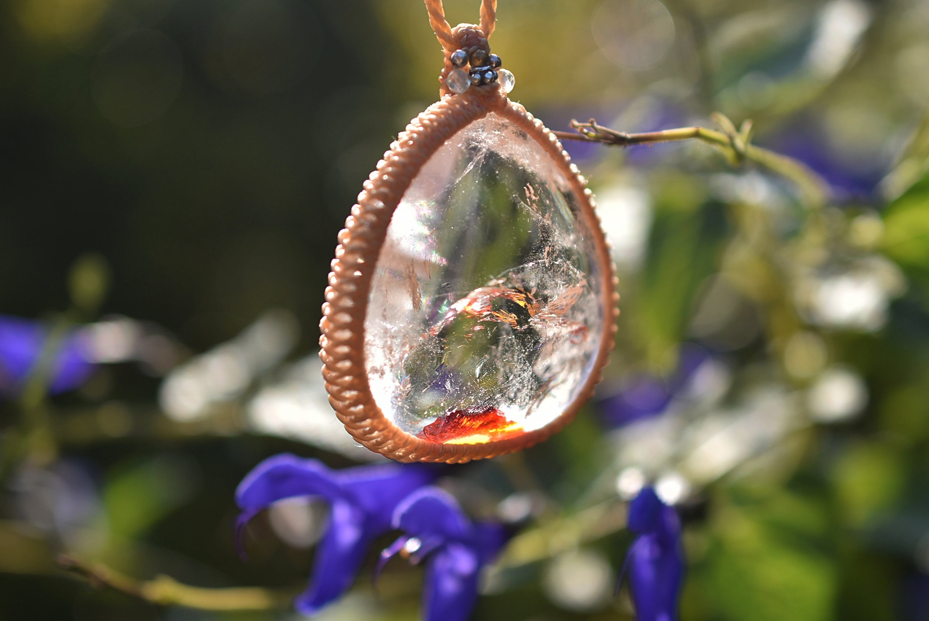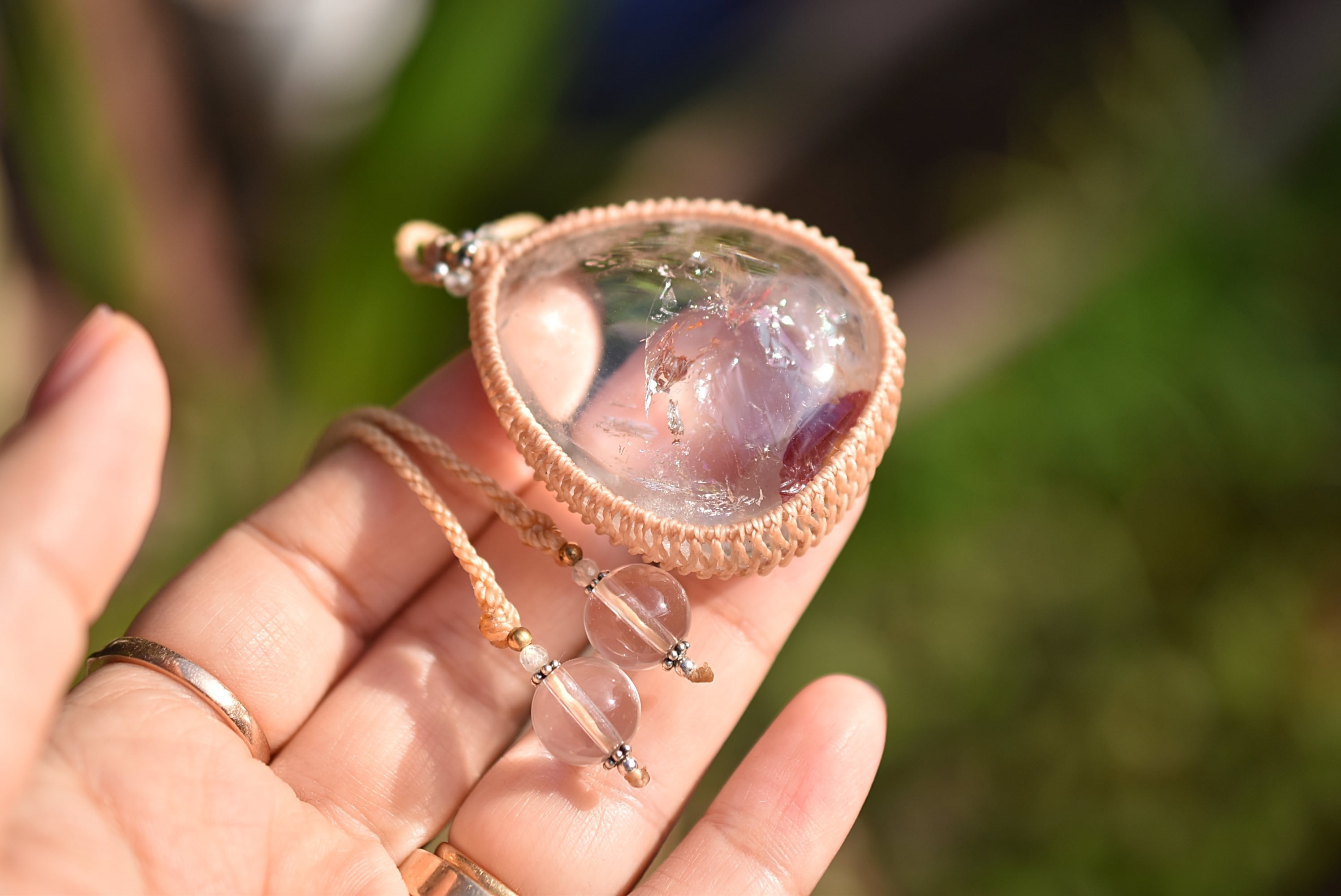 夕日と虹★特大★虹入り★ライモナイトインクォーツ マクラメネックレス1287
