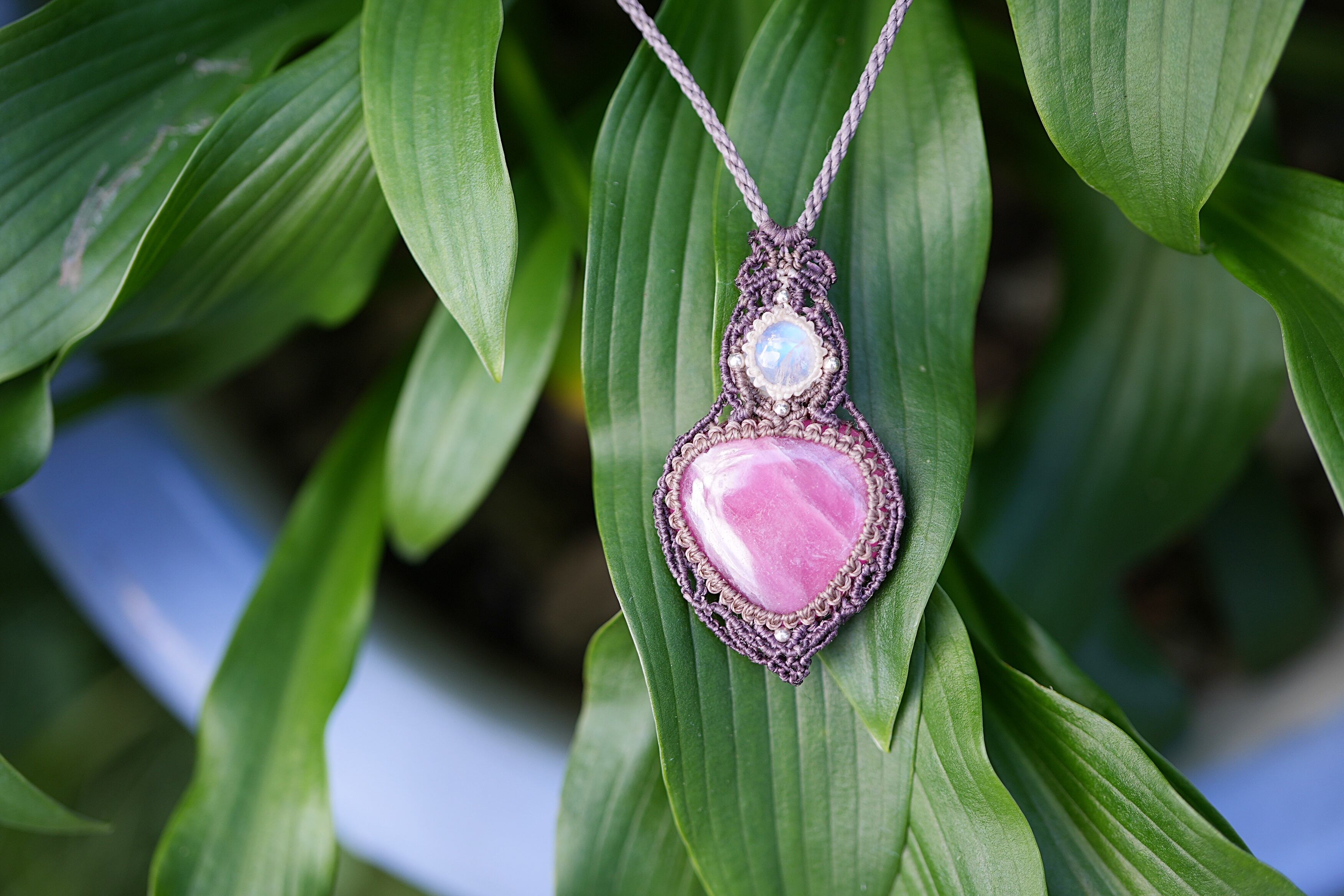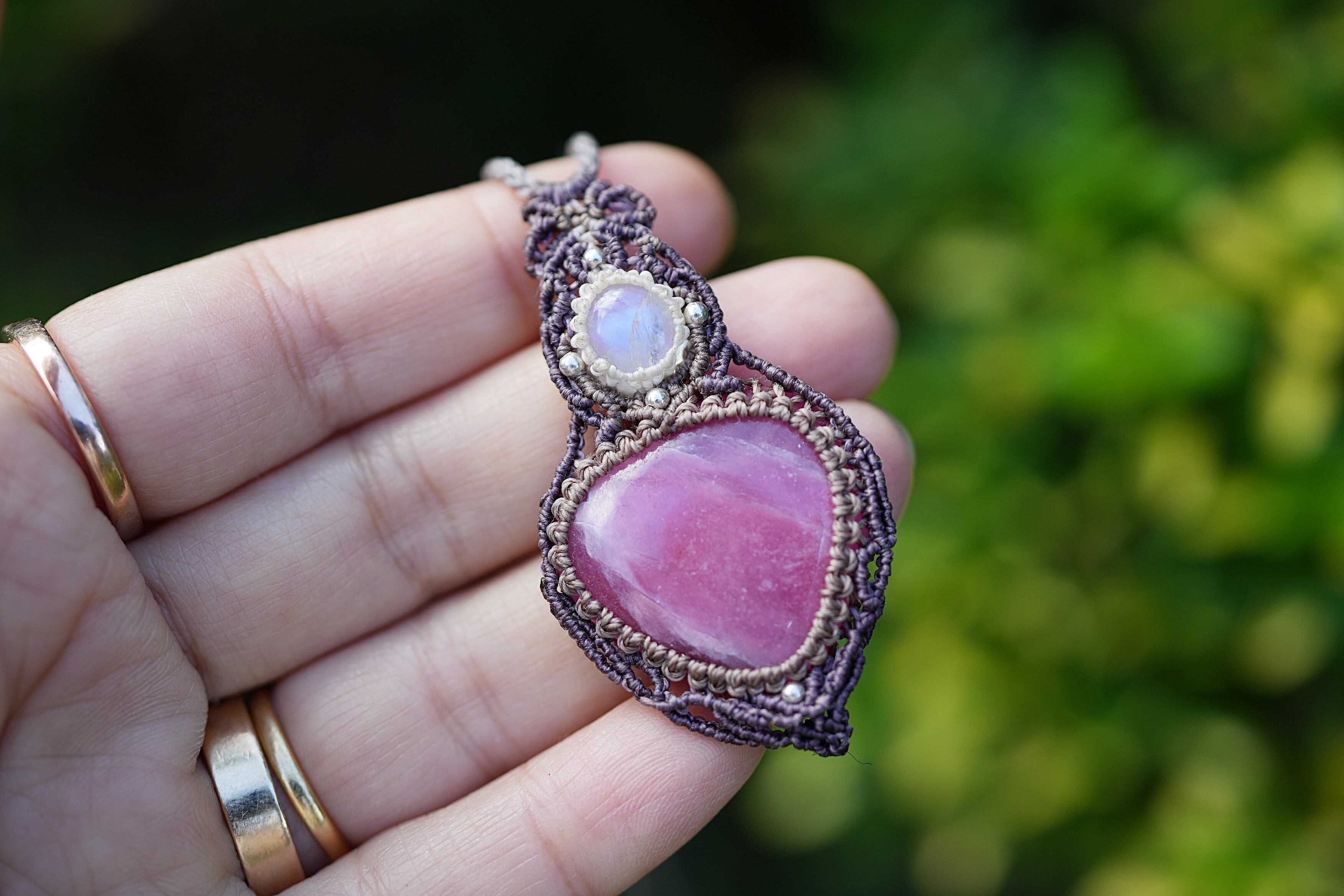 2つの石を大切にマクラメ編み装飾