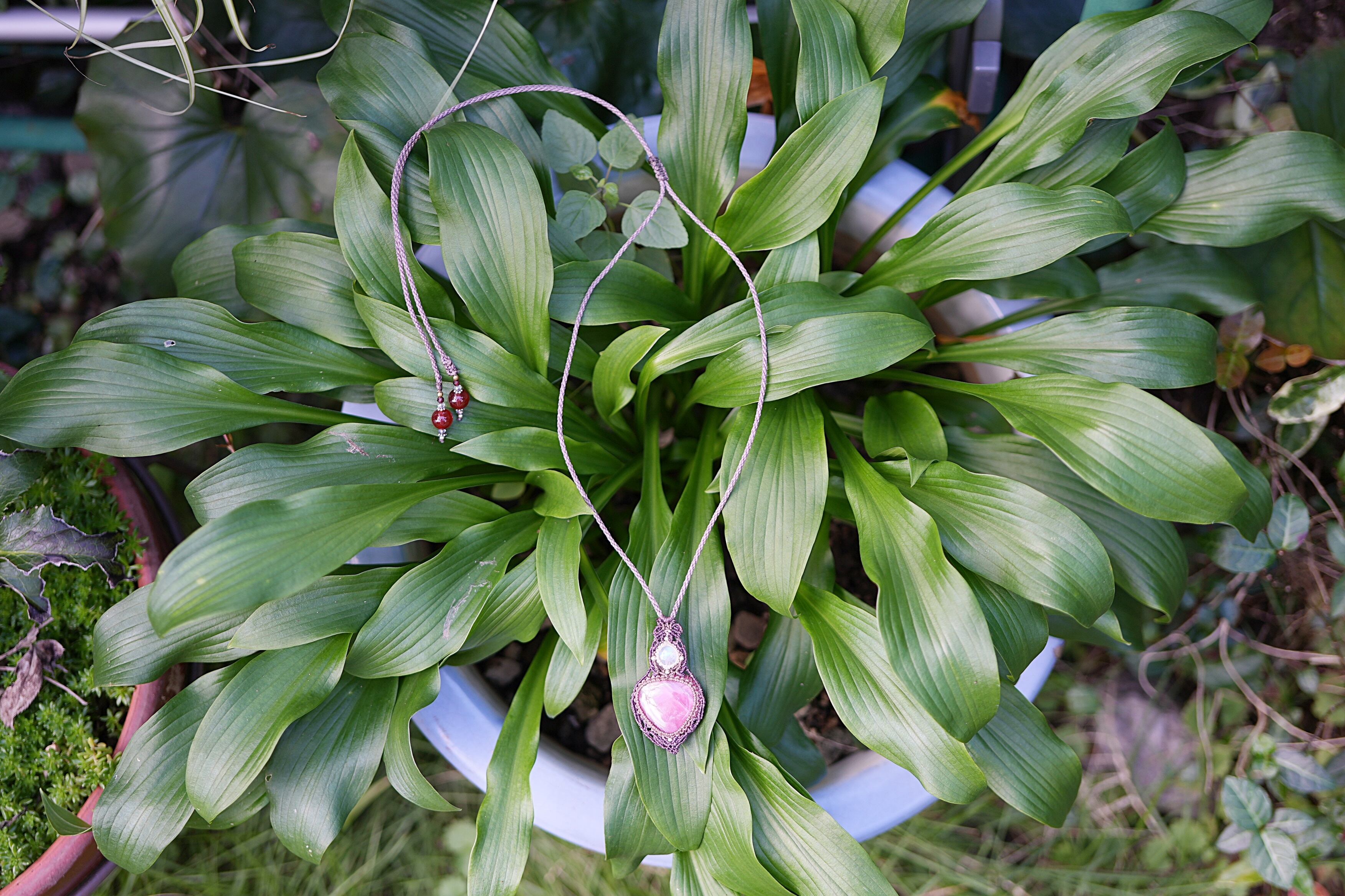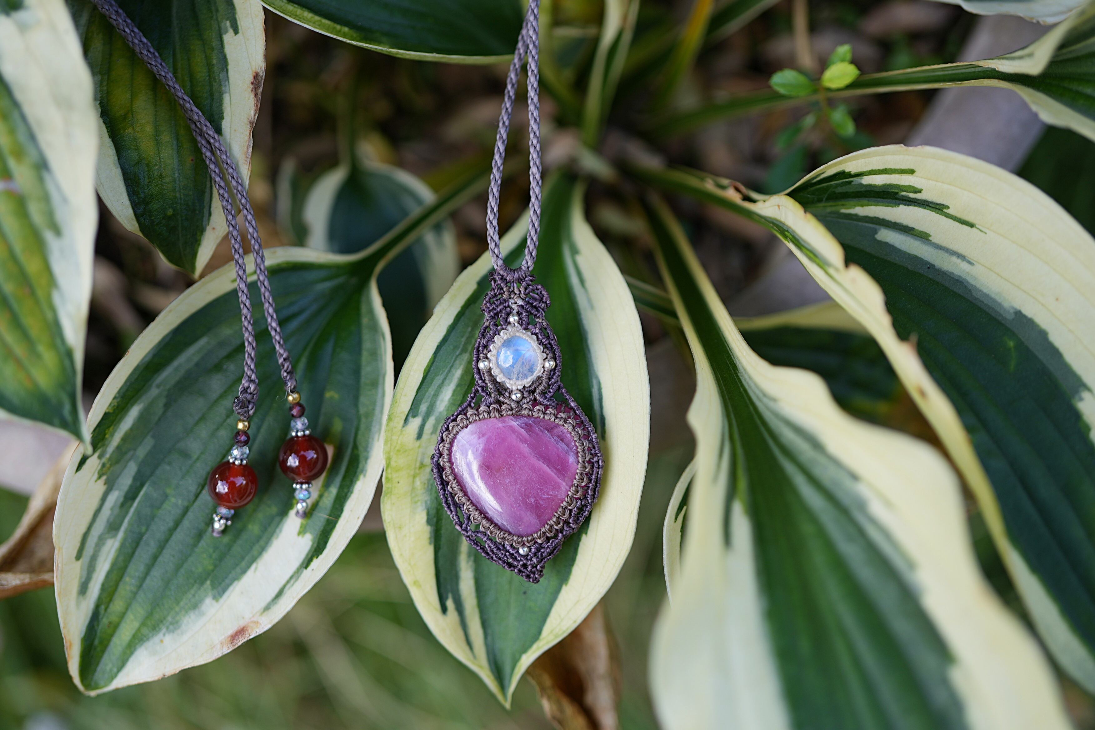 やわらかハート★ムーンストーン ルビー マクラメネックレス1295