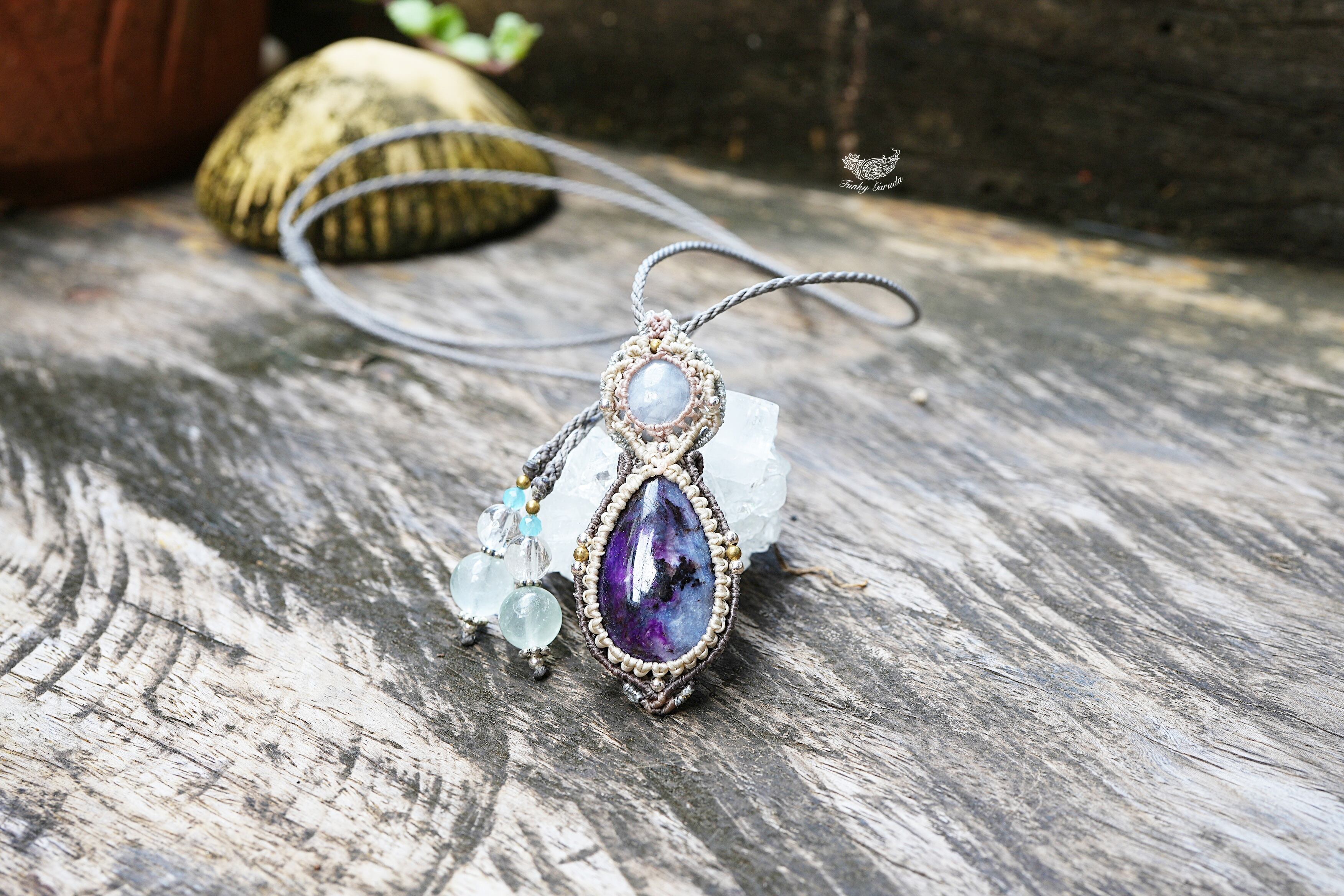 紫の情景★White sappire スギライト マクラメペンダント1307