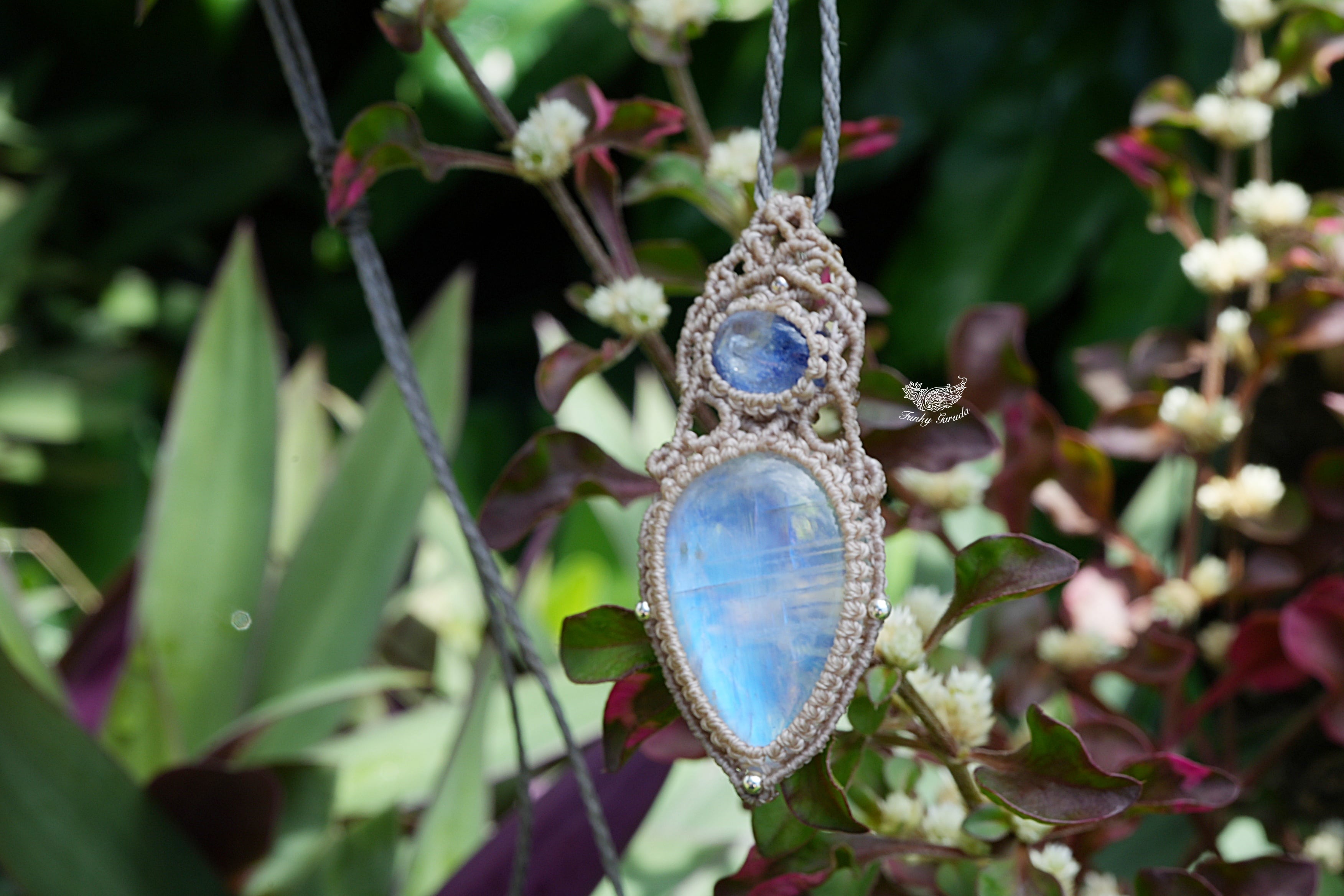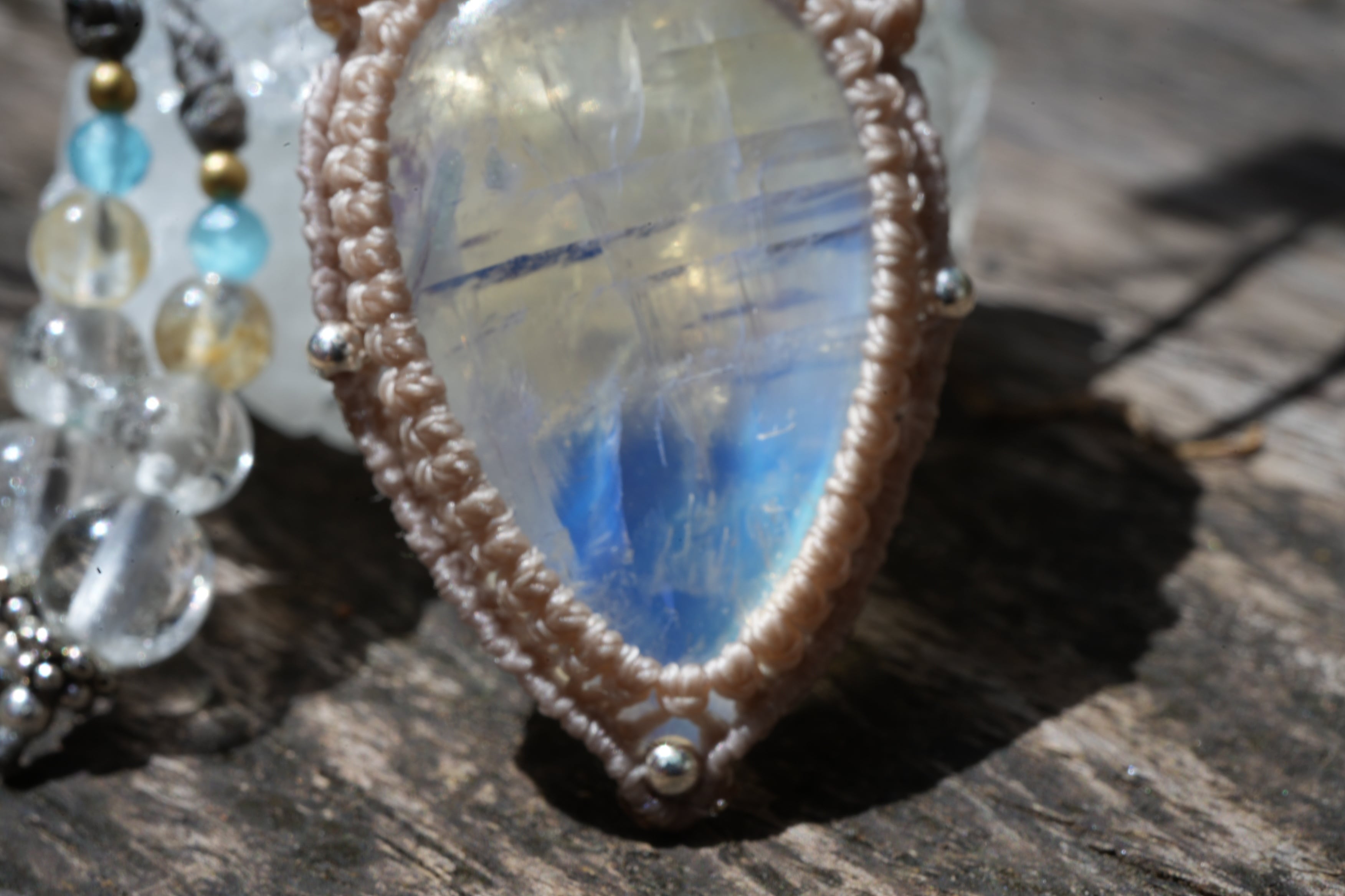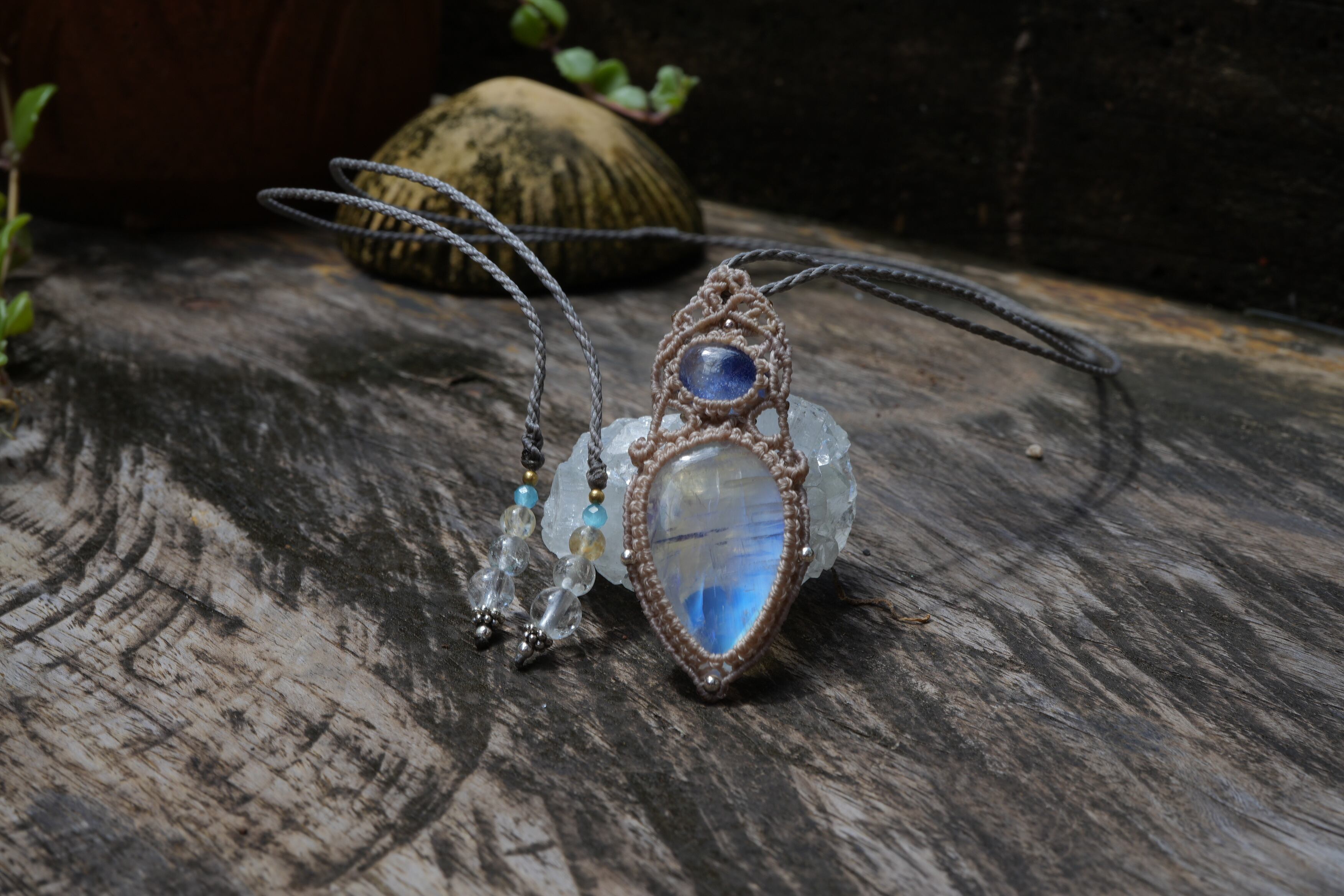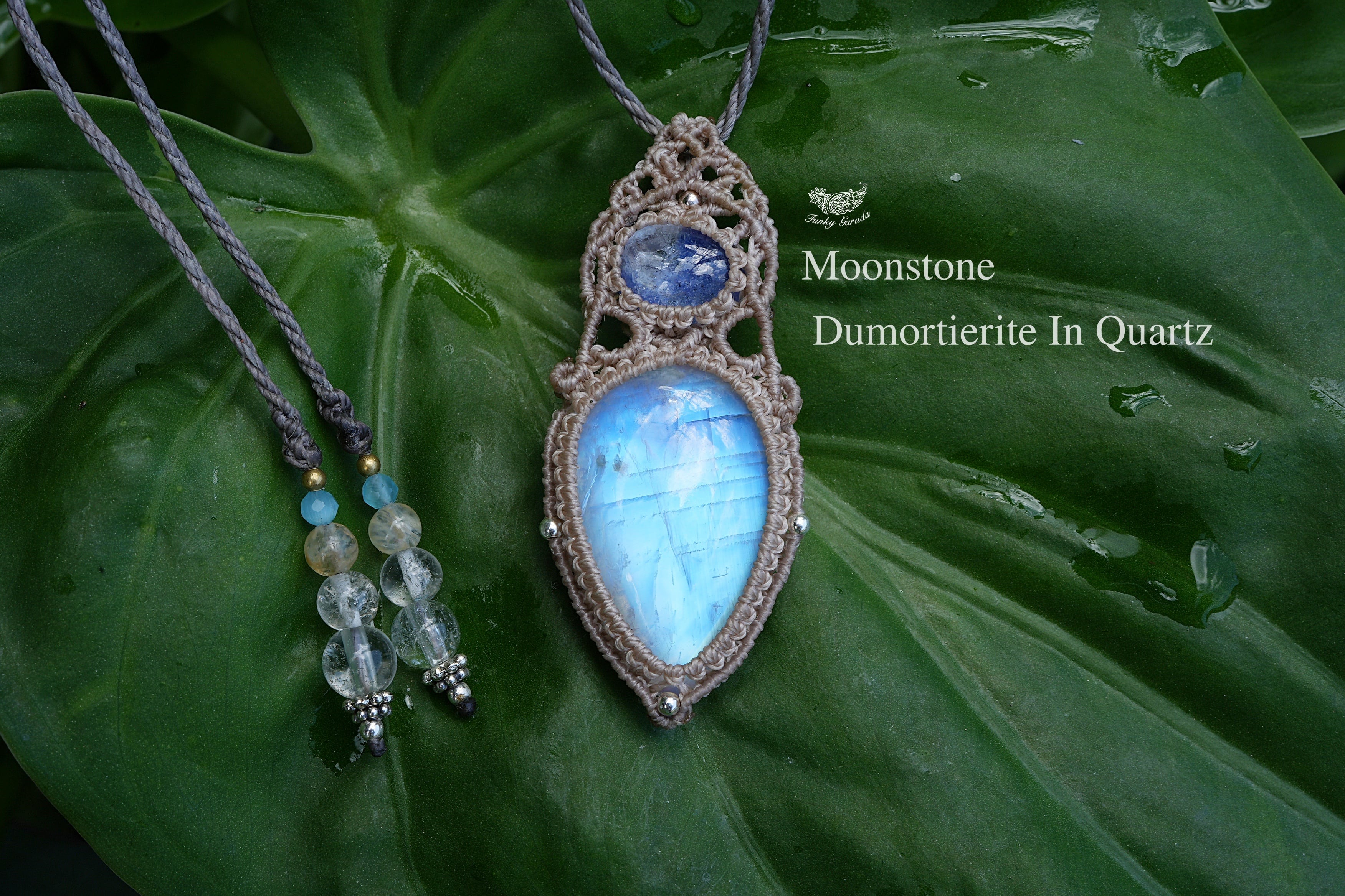 デュモルチェライト★高品質ムーンストーン マクラメネックレス1274