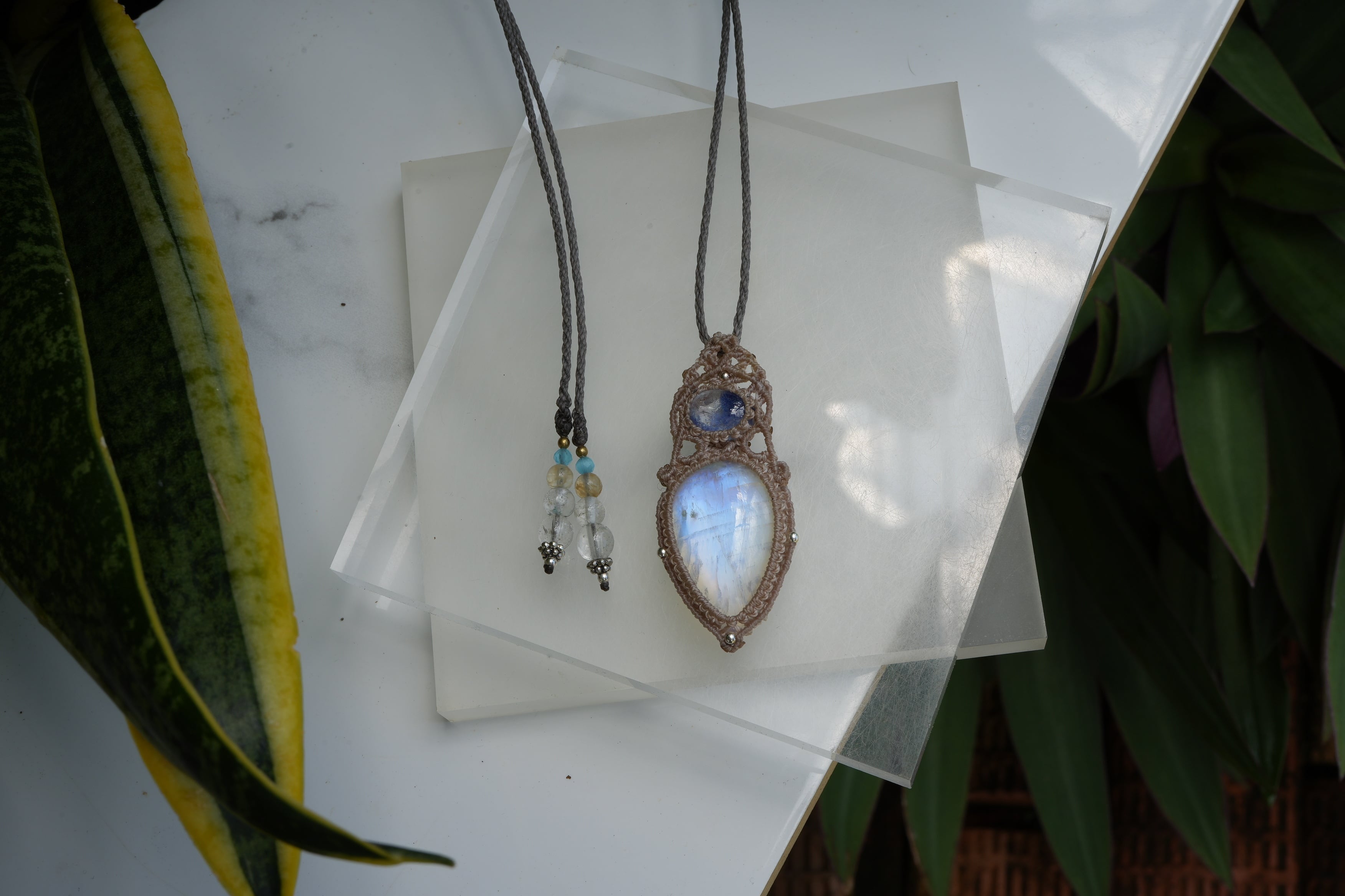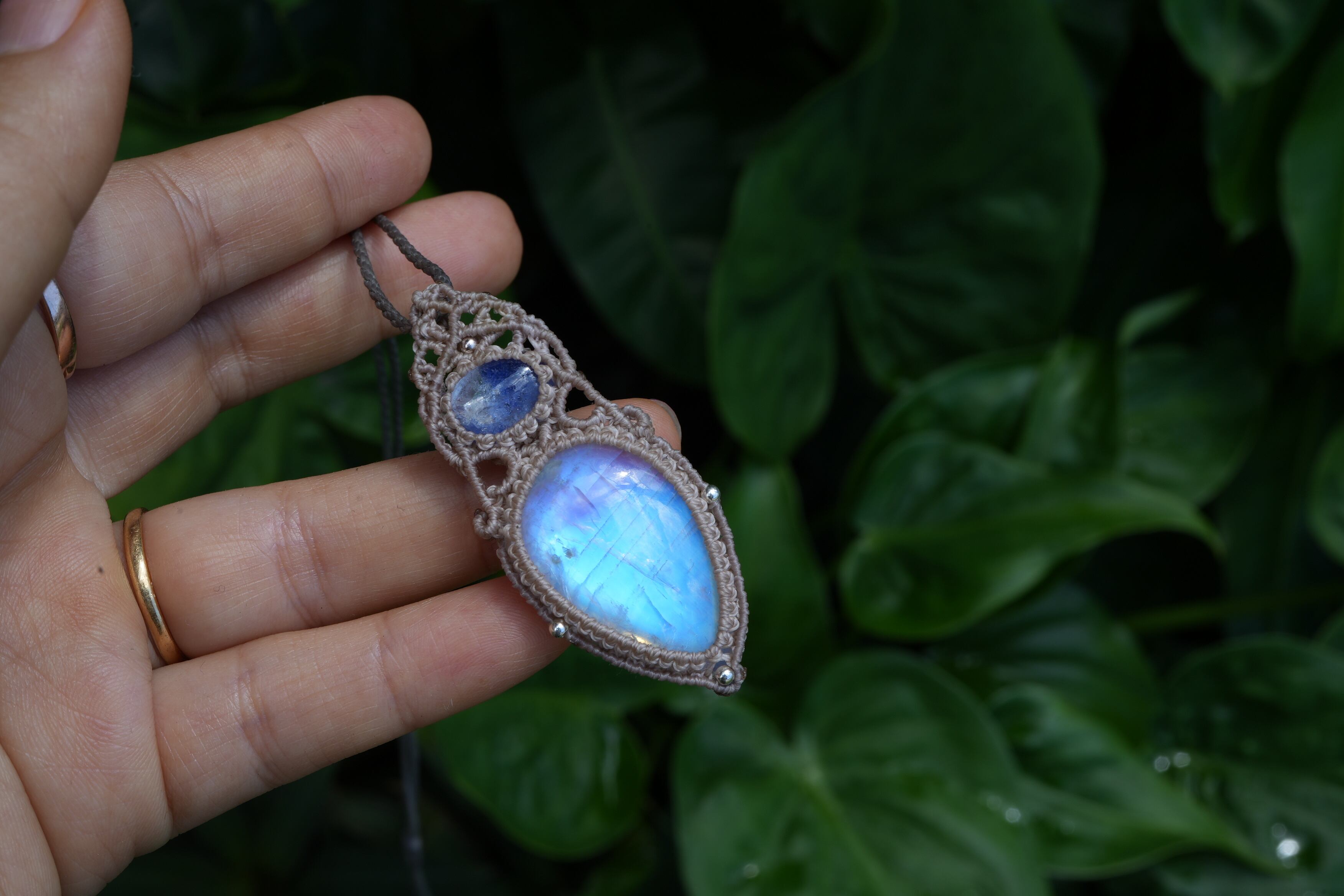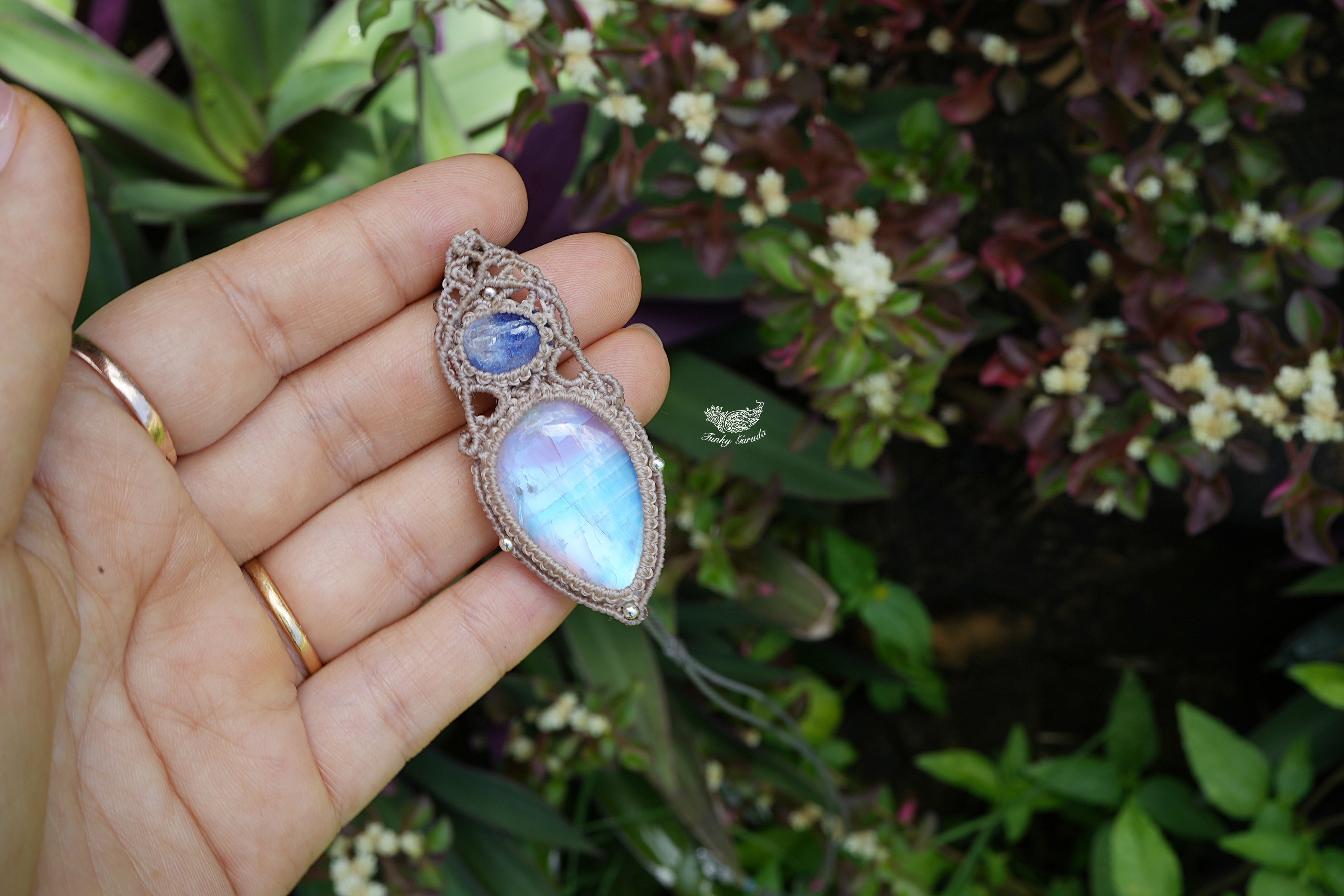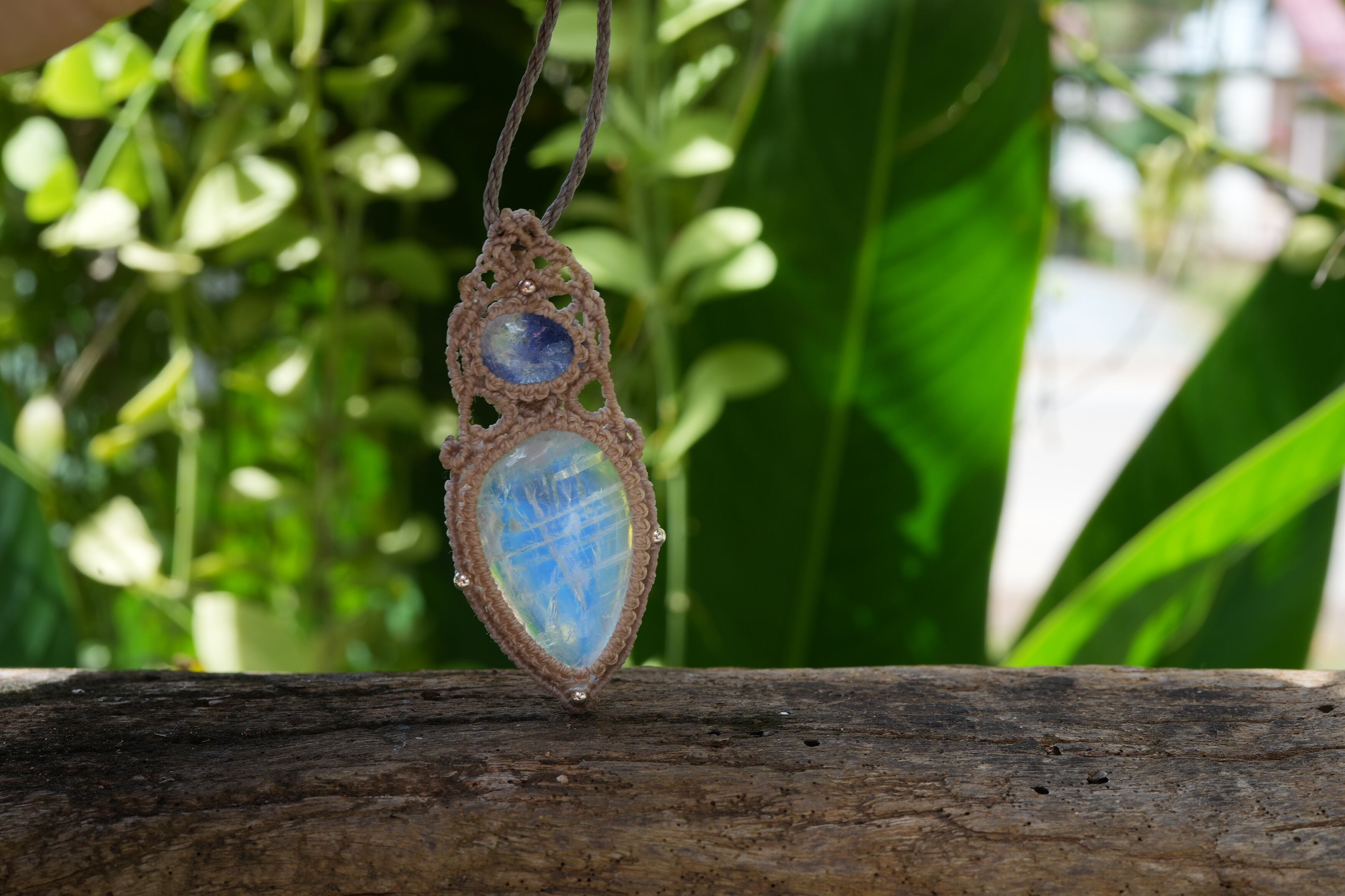 デュモルチェライト★高品質ムーンストーン マクラメネックレス1274