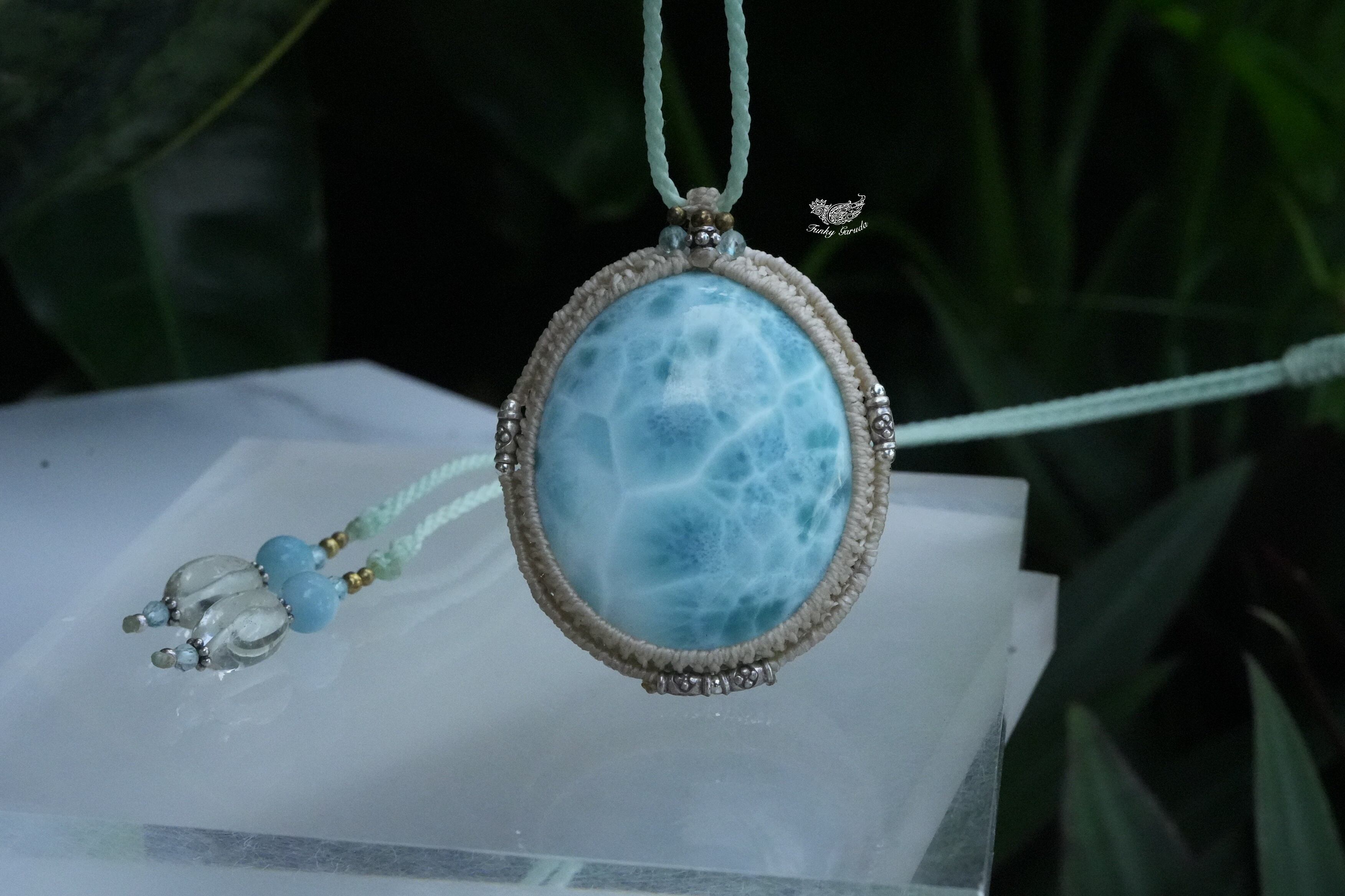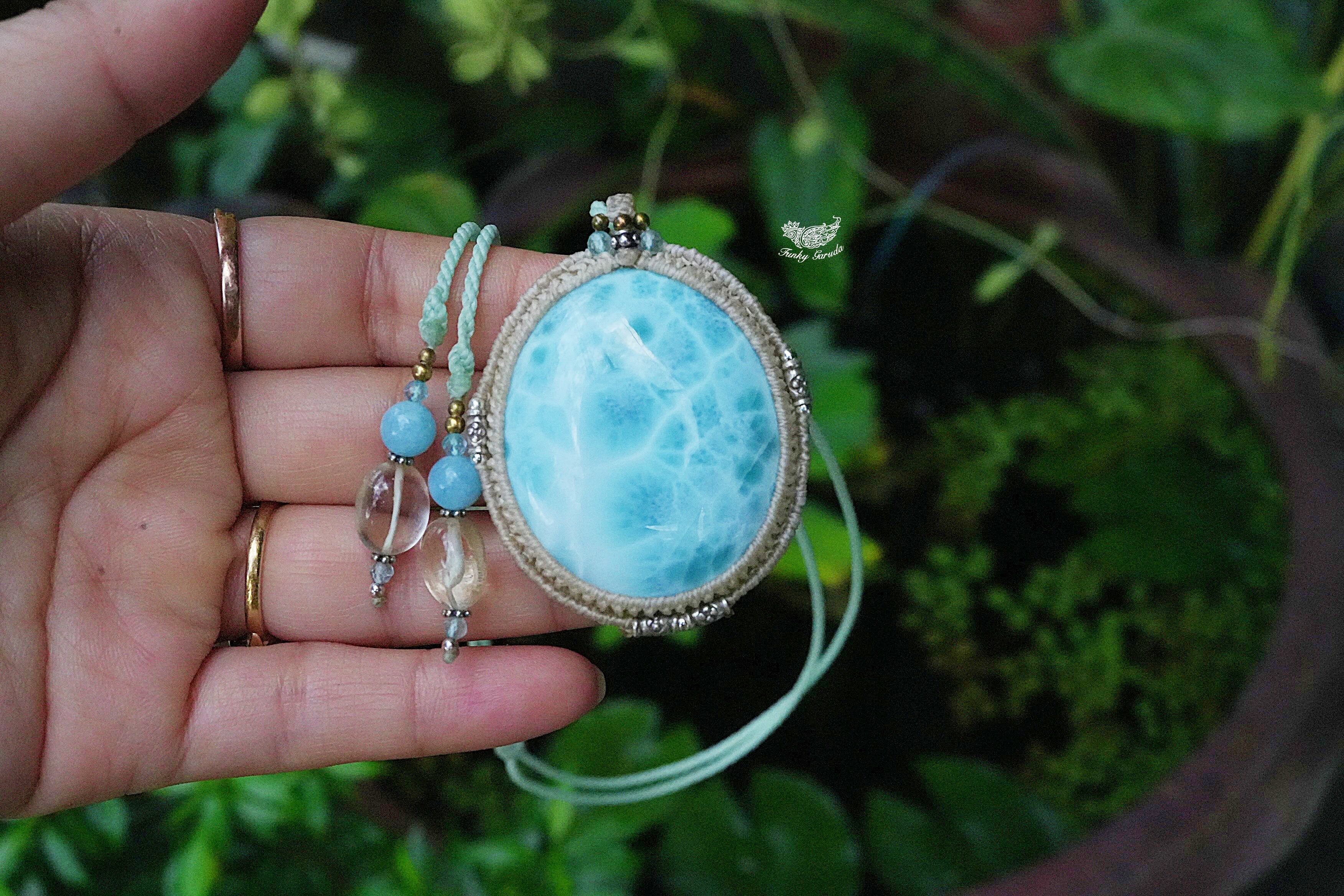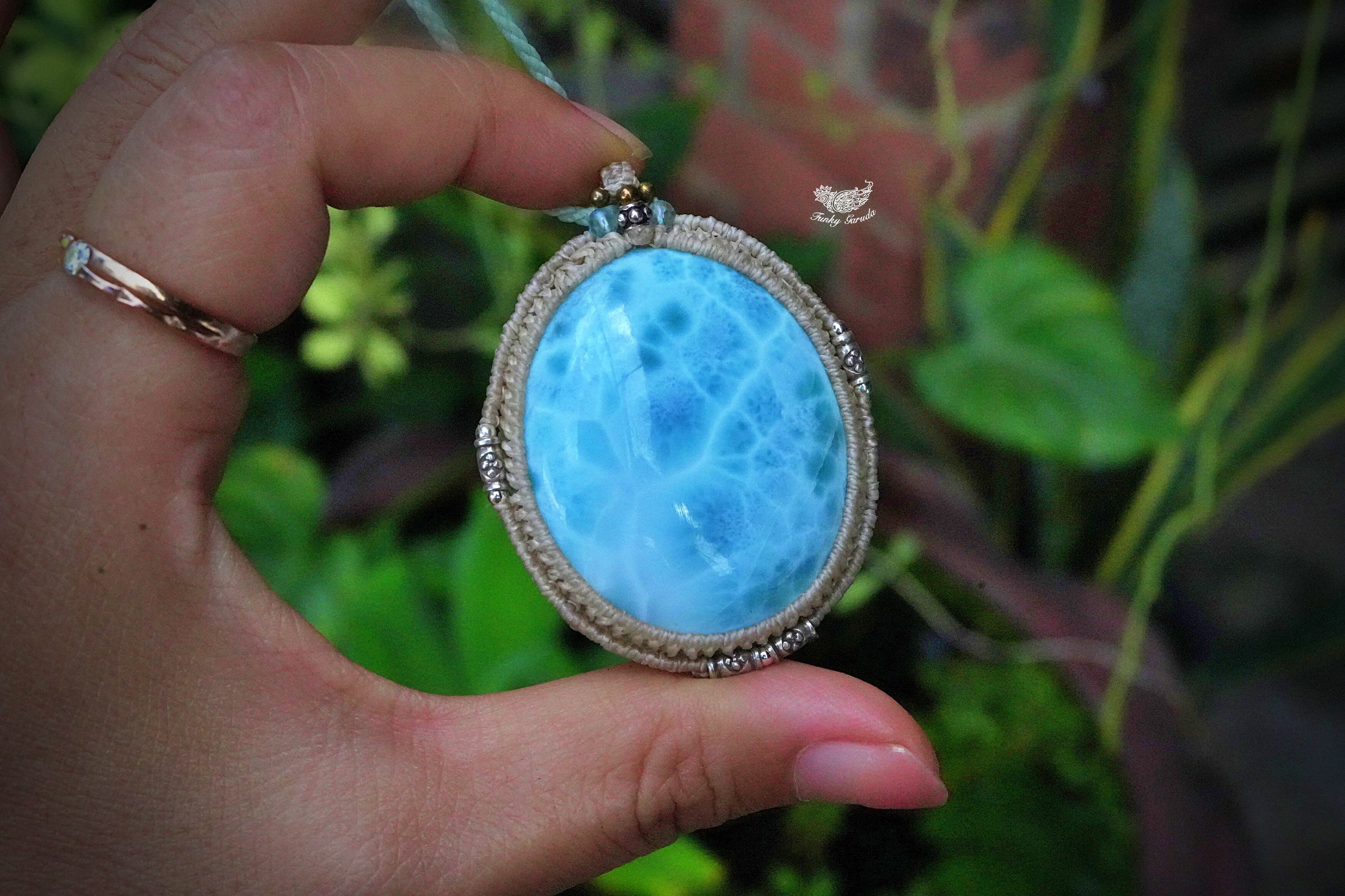◆このたびはキャラメル色の蝋引き糸を使用しマクラメ編み装飾を施しました。