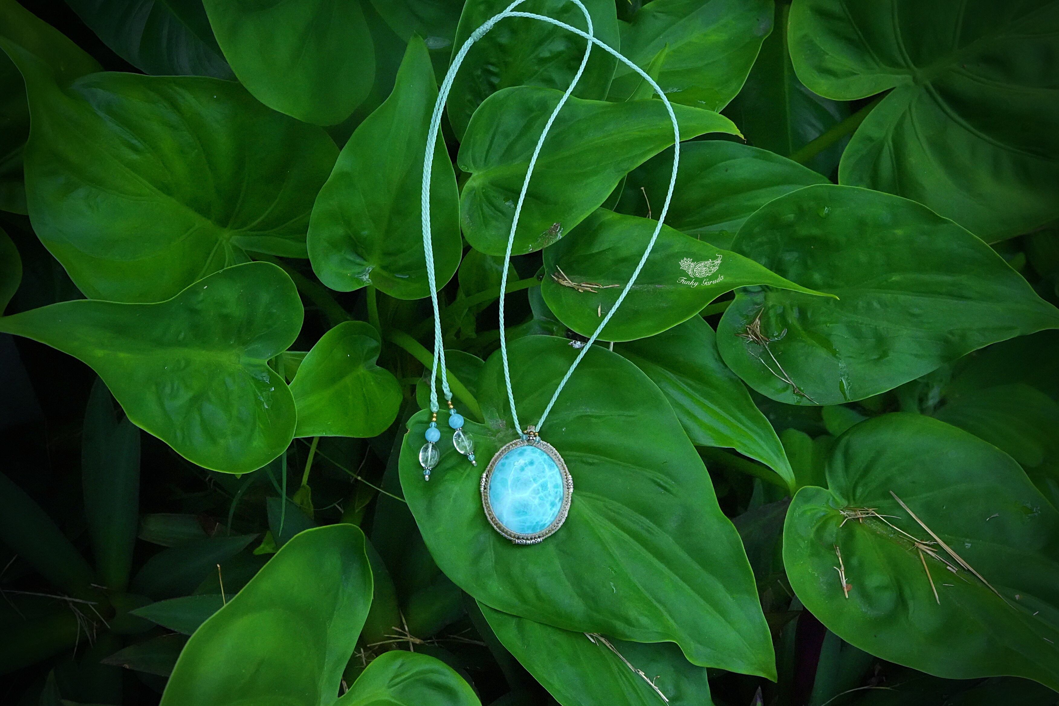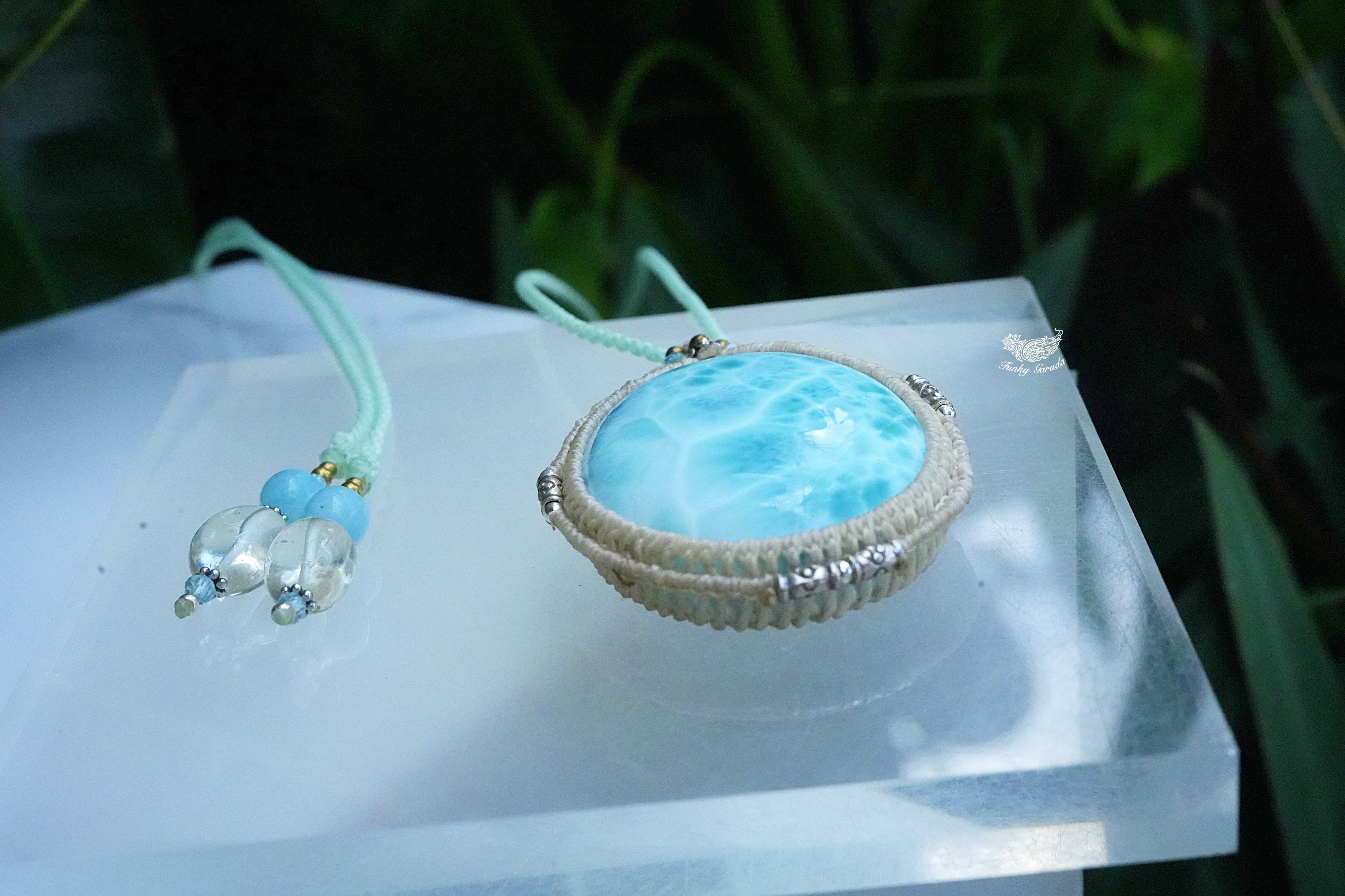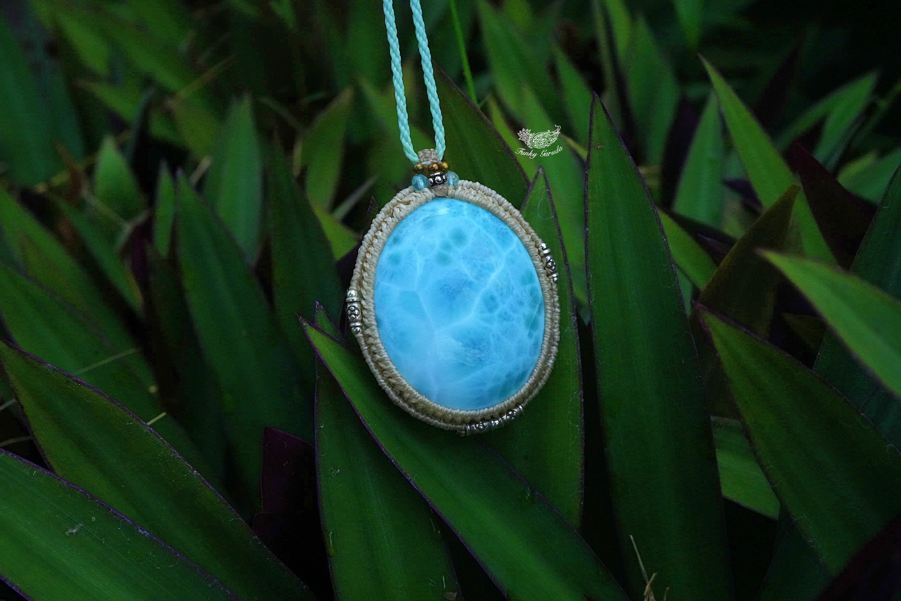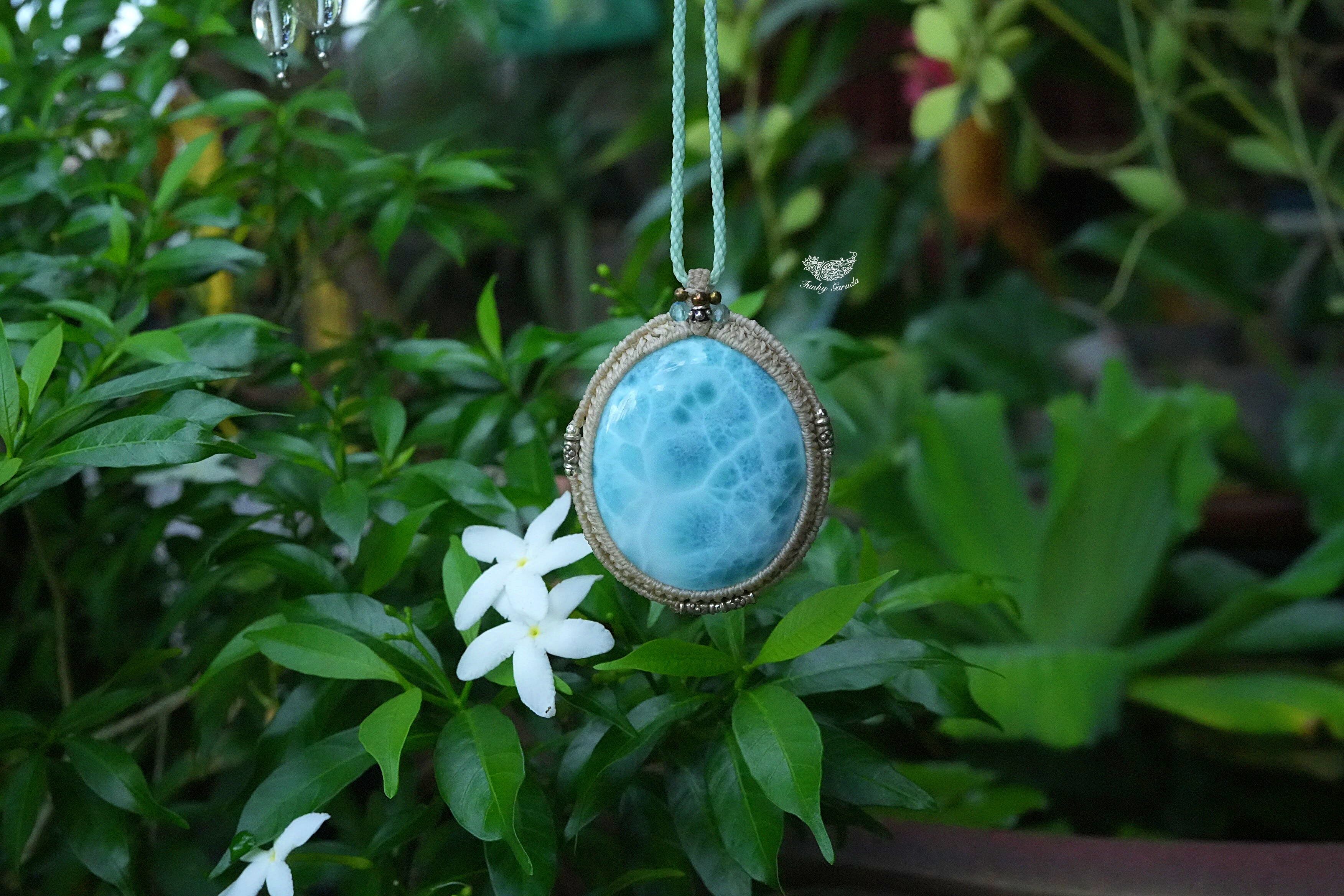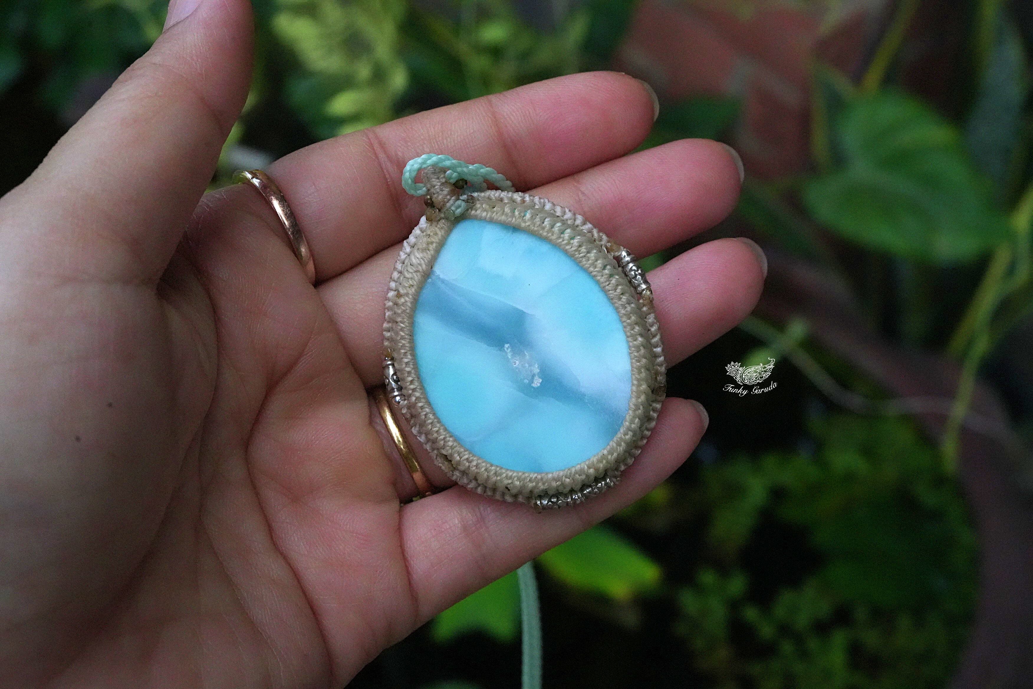 大きな波の世界★高品質★Larimar マクラメペンダント1307