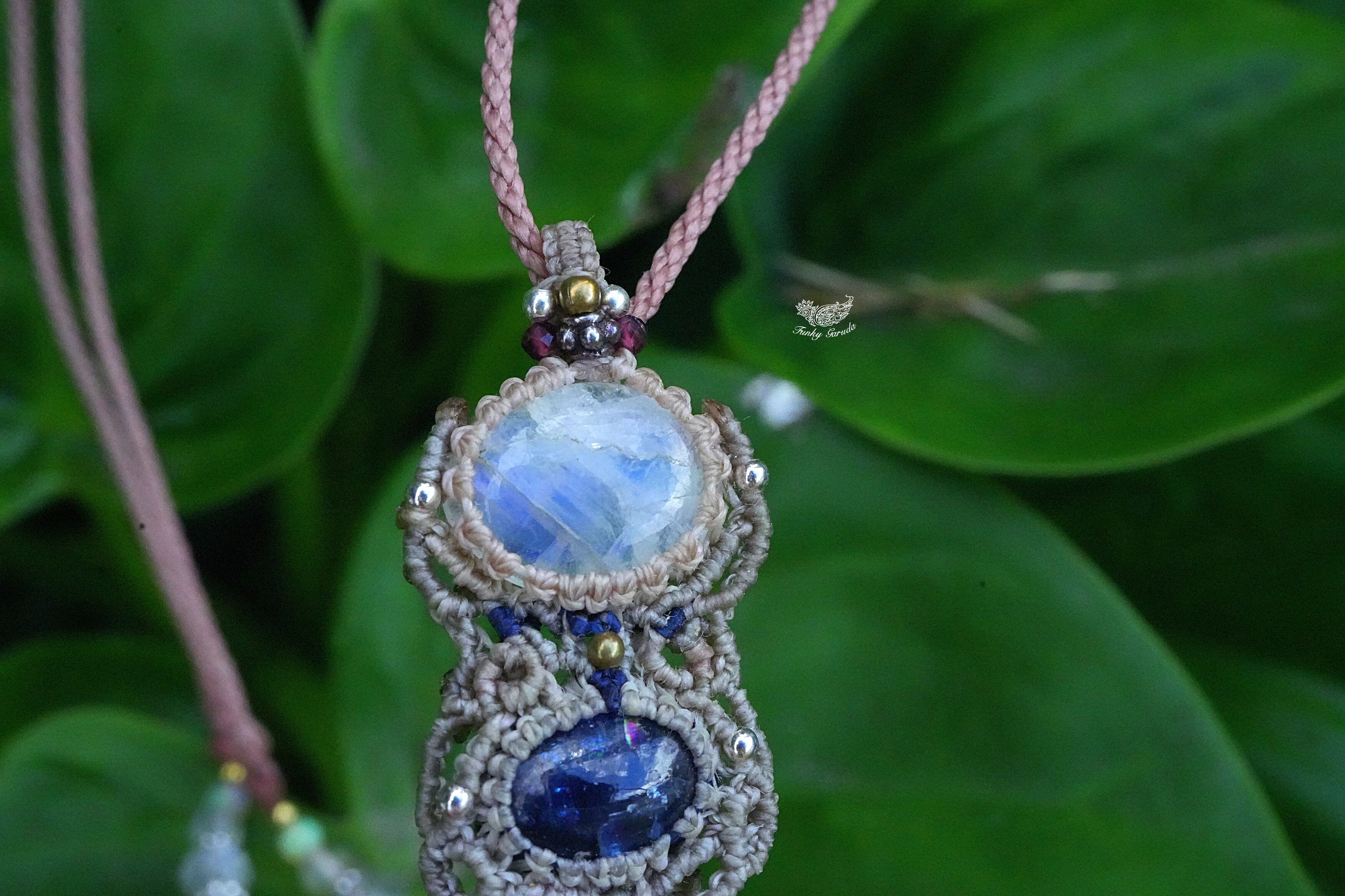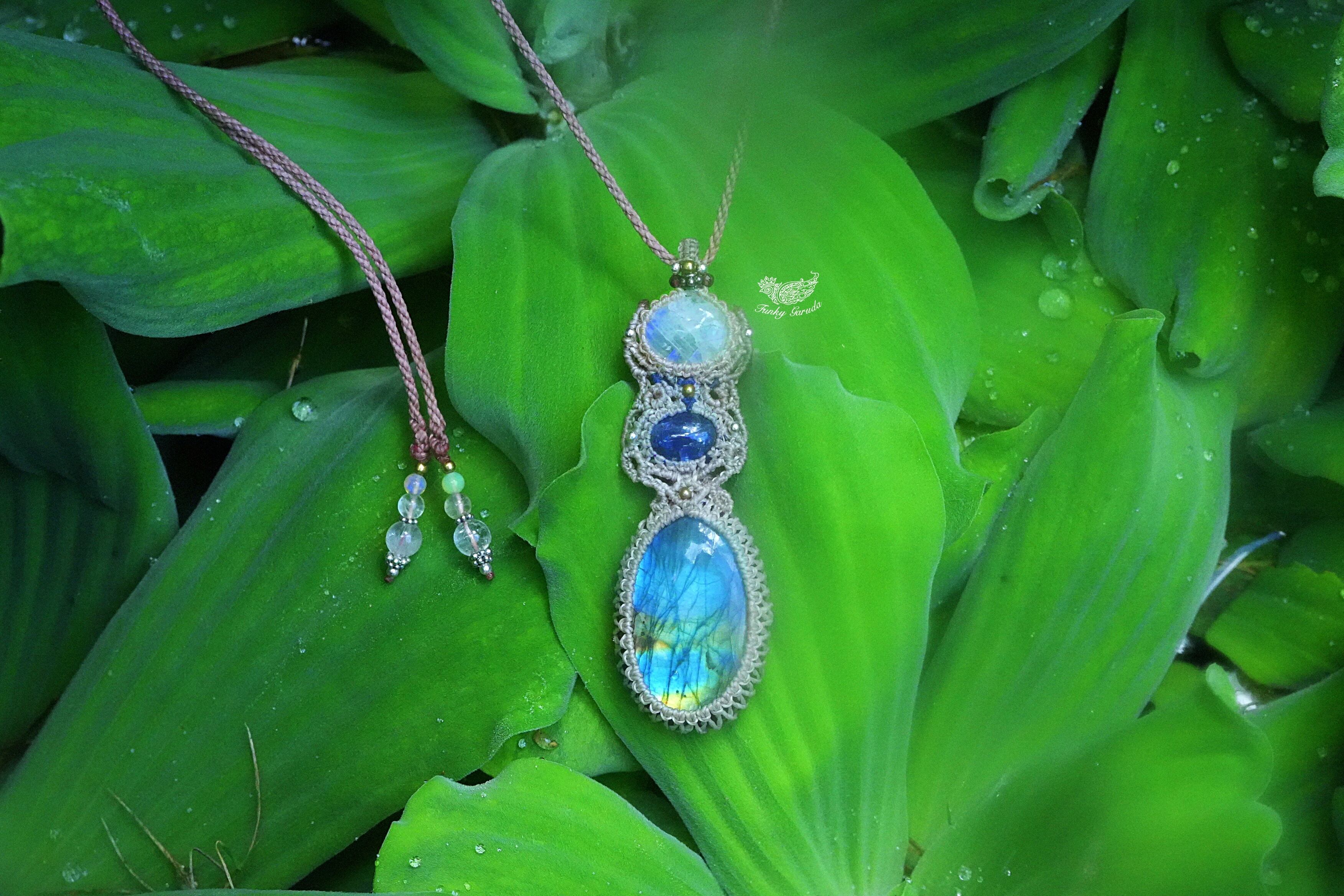 夢の宇宙船★moonstone kyanite★ラブラドライド マクラメネックレス1308