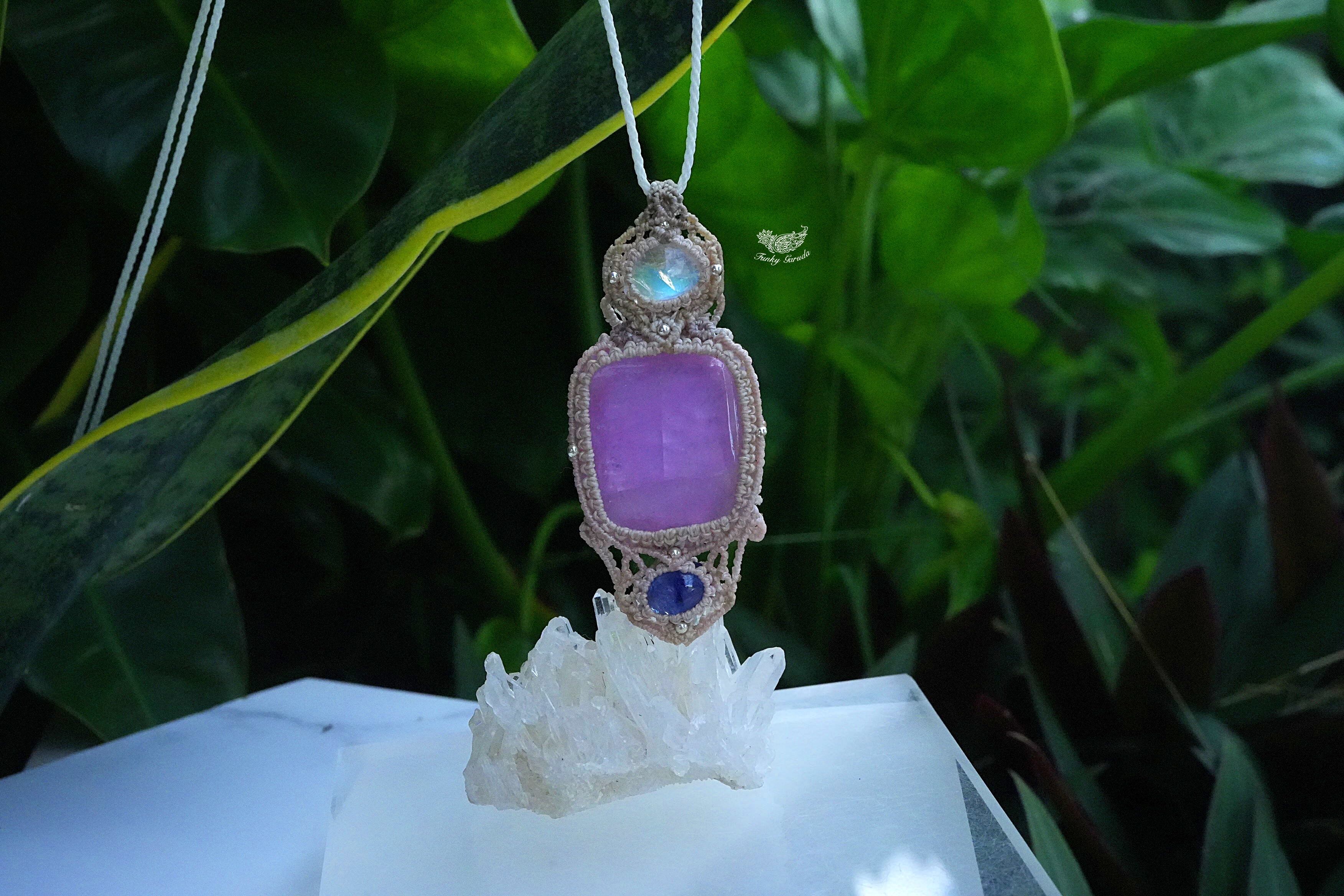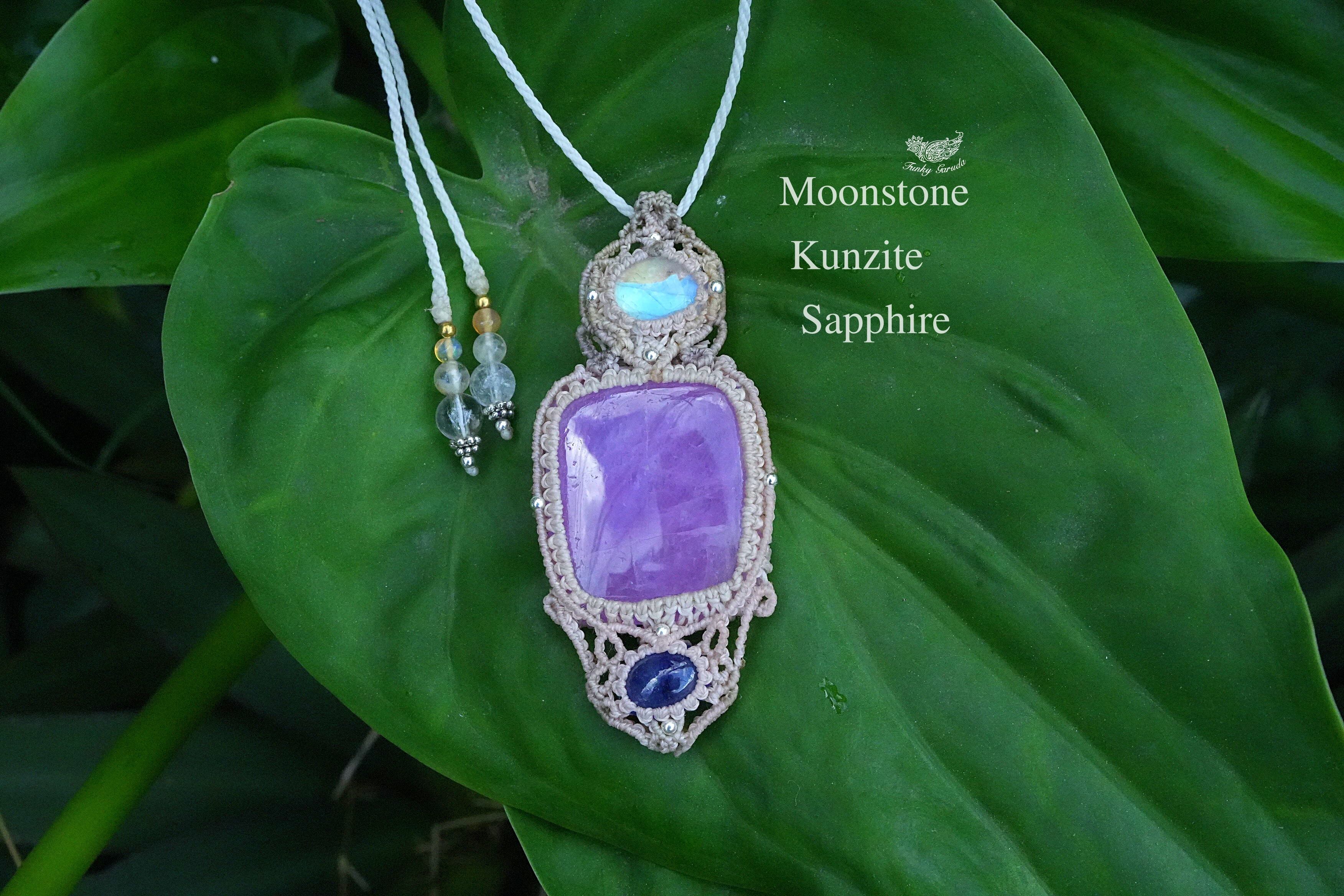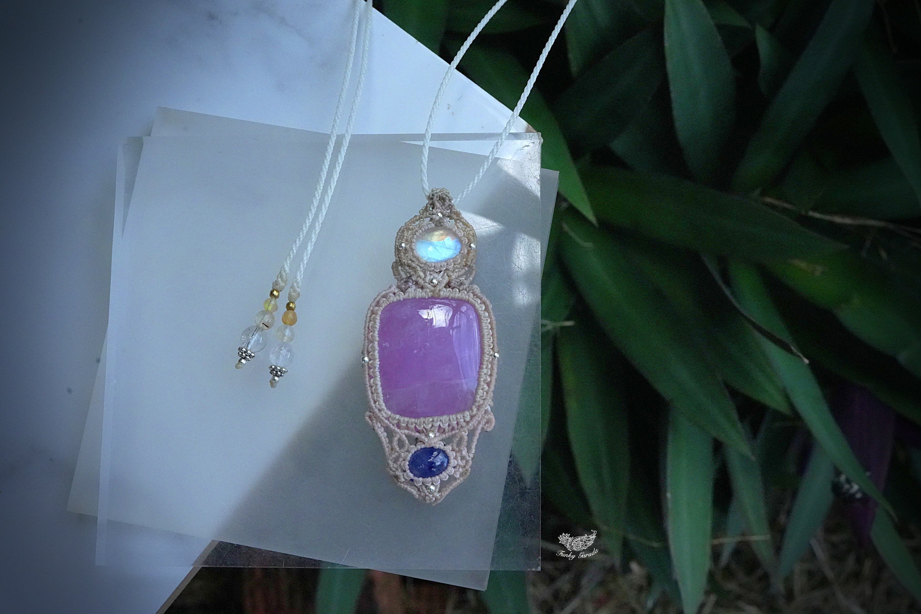 虹とピンクの奇跡★Kunzite moonstoneマクラメネックレス1310