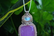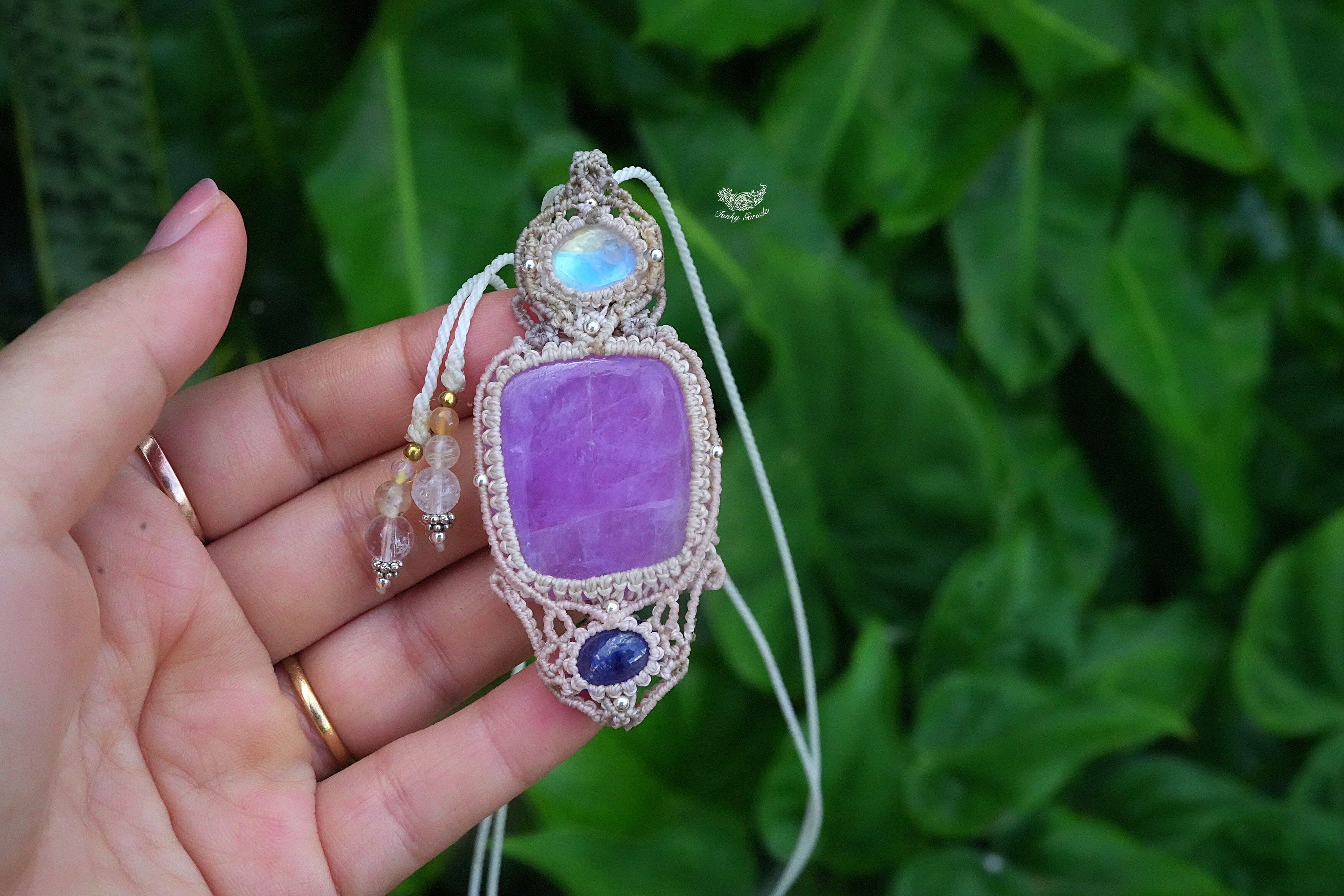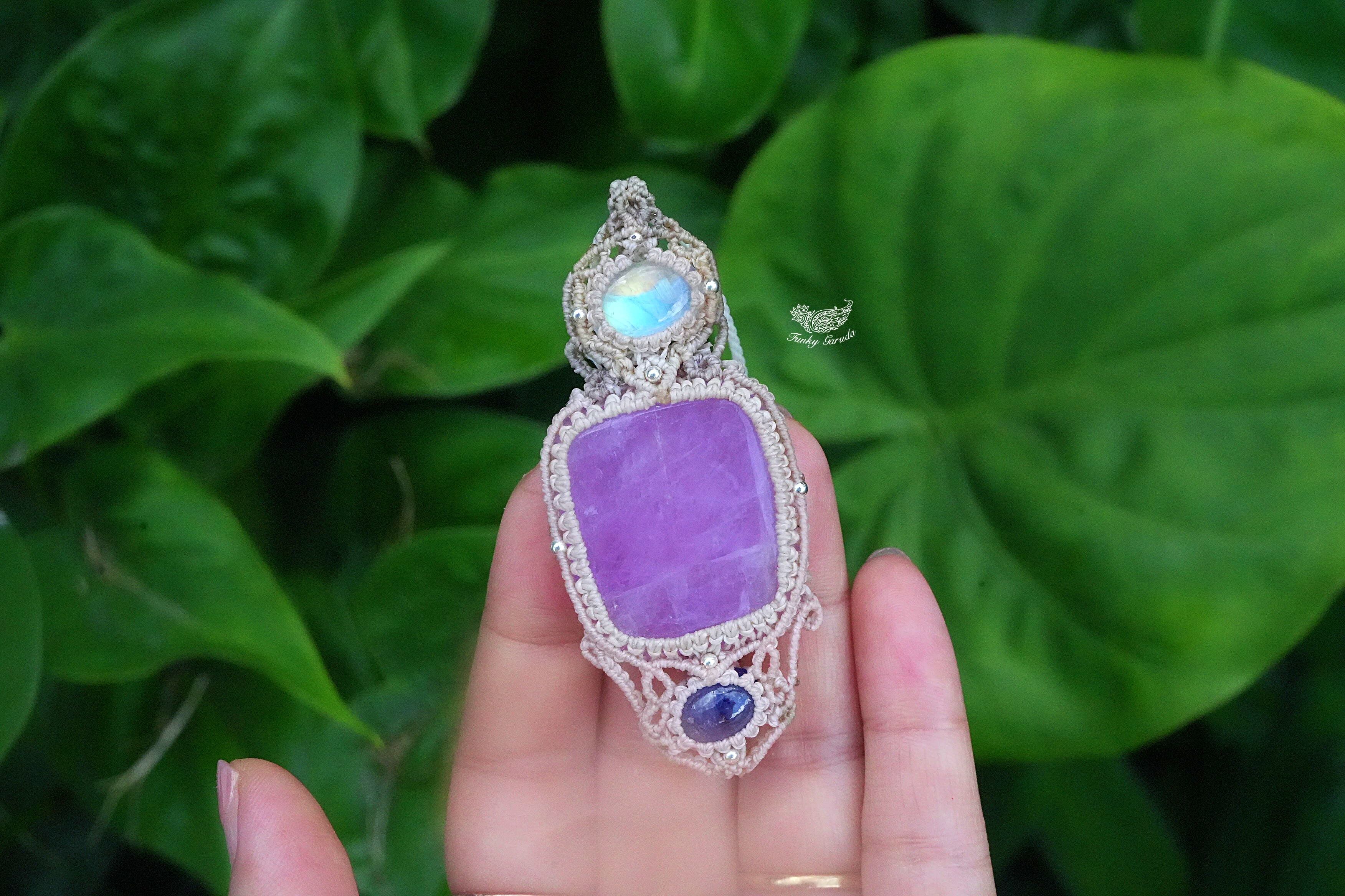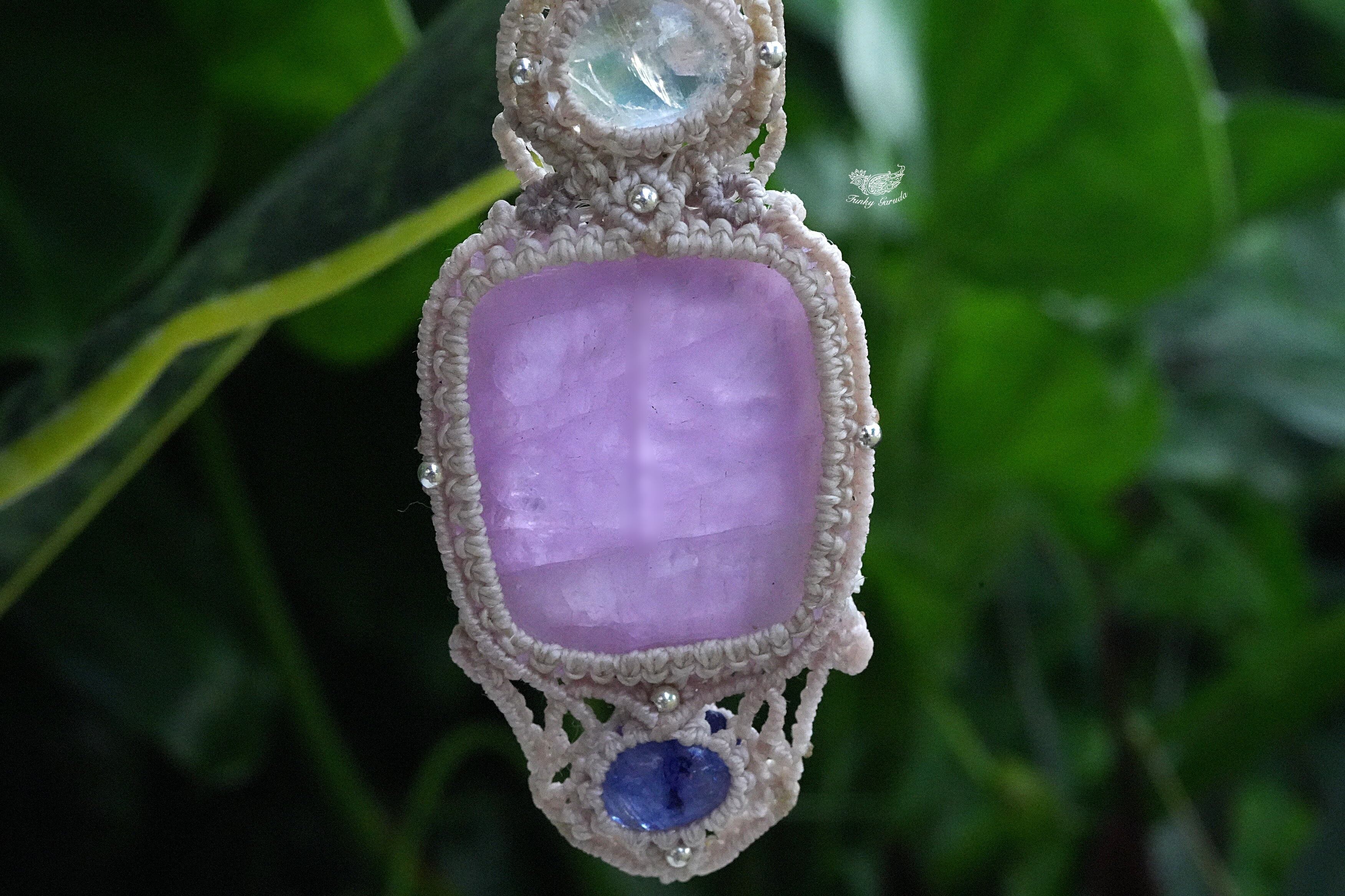 虹とピンクの奇跡★Kunzite moonstoneマクラメネックレス1310