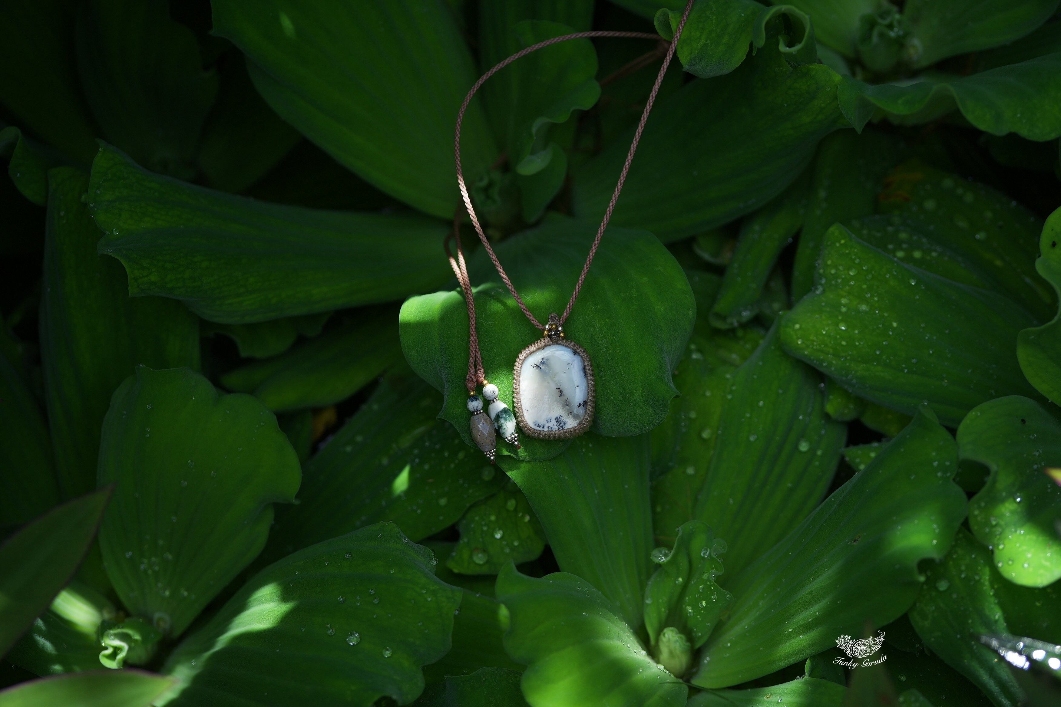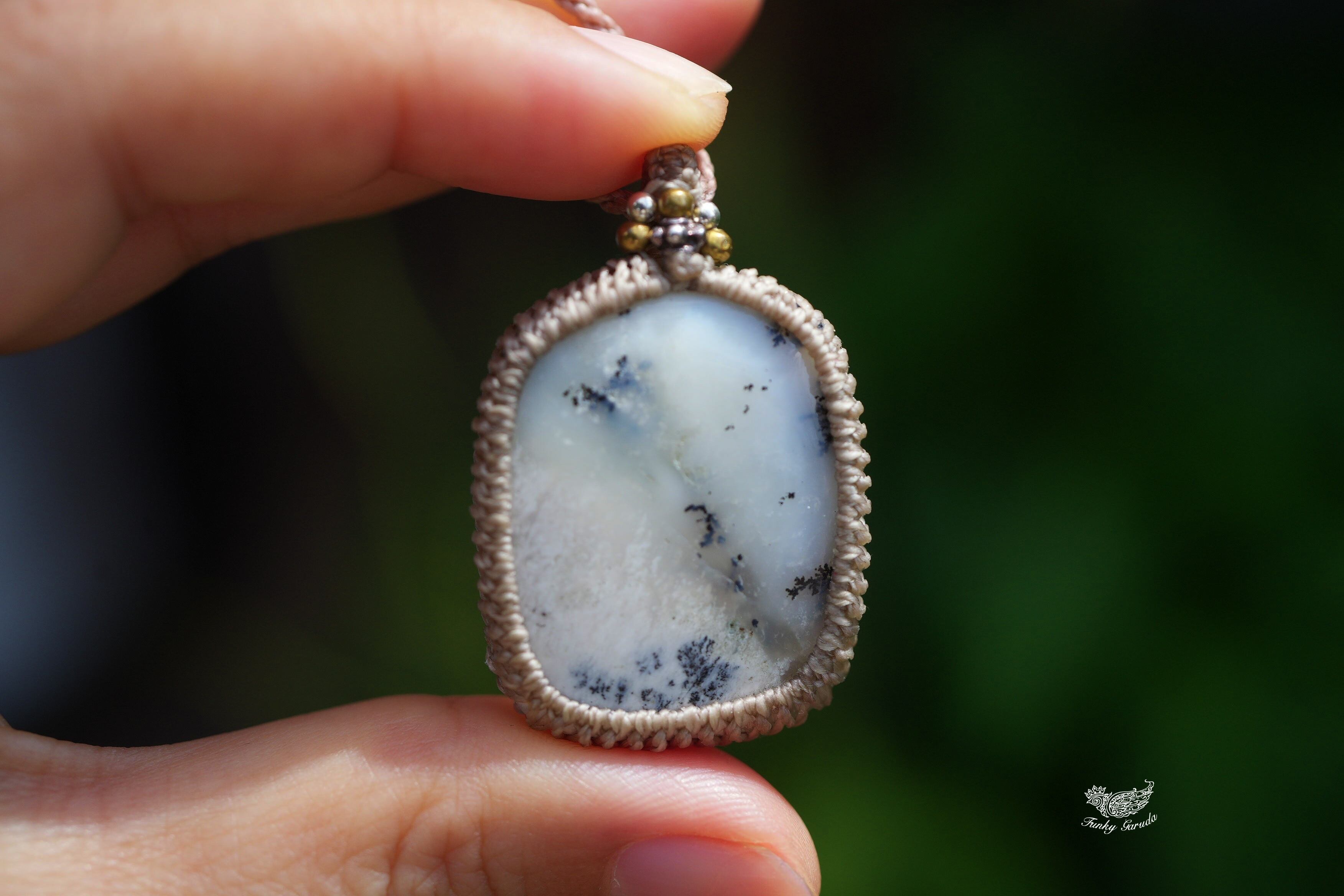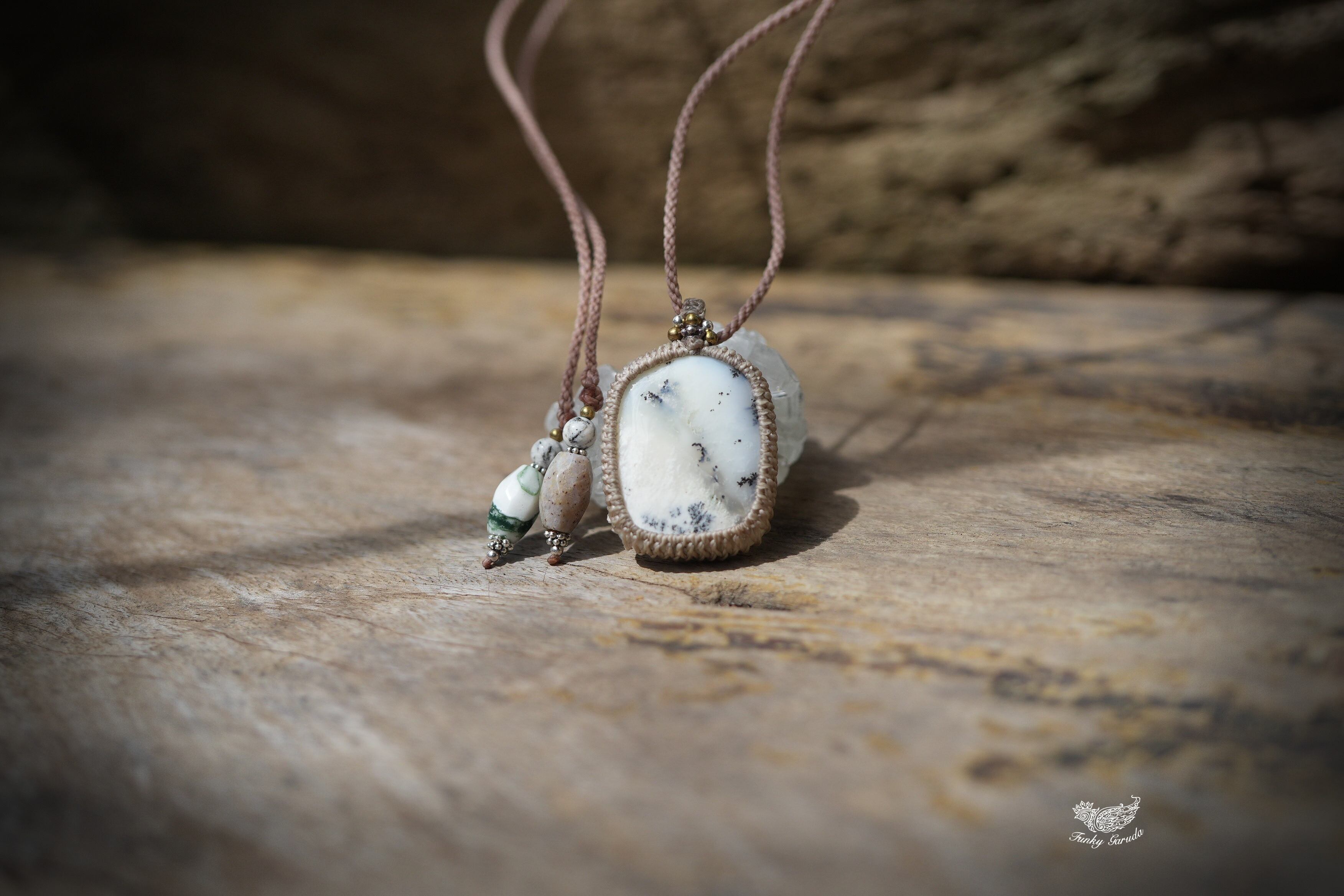 雪と自然の枝模様★デンドライトオパール マクラメネックレス1318