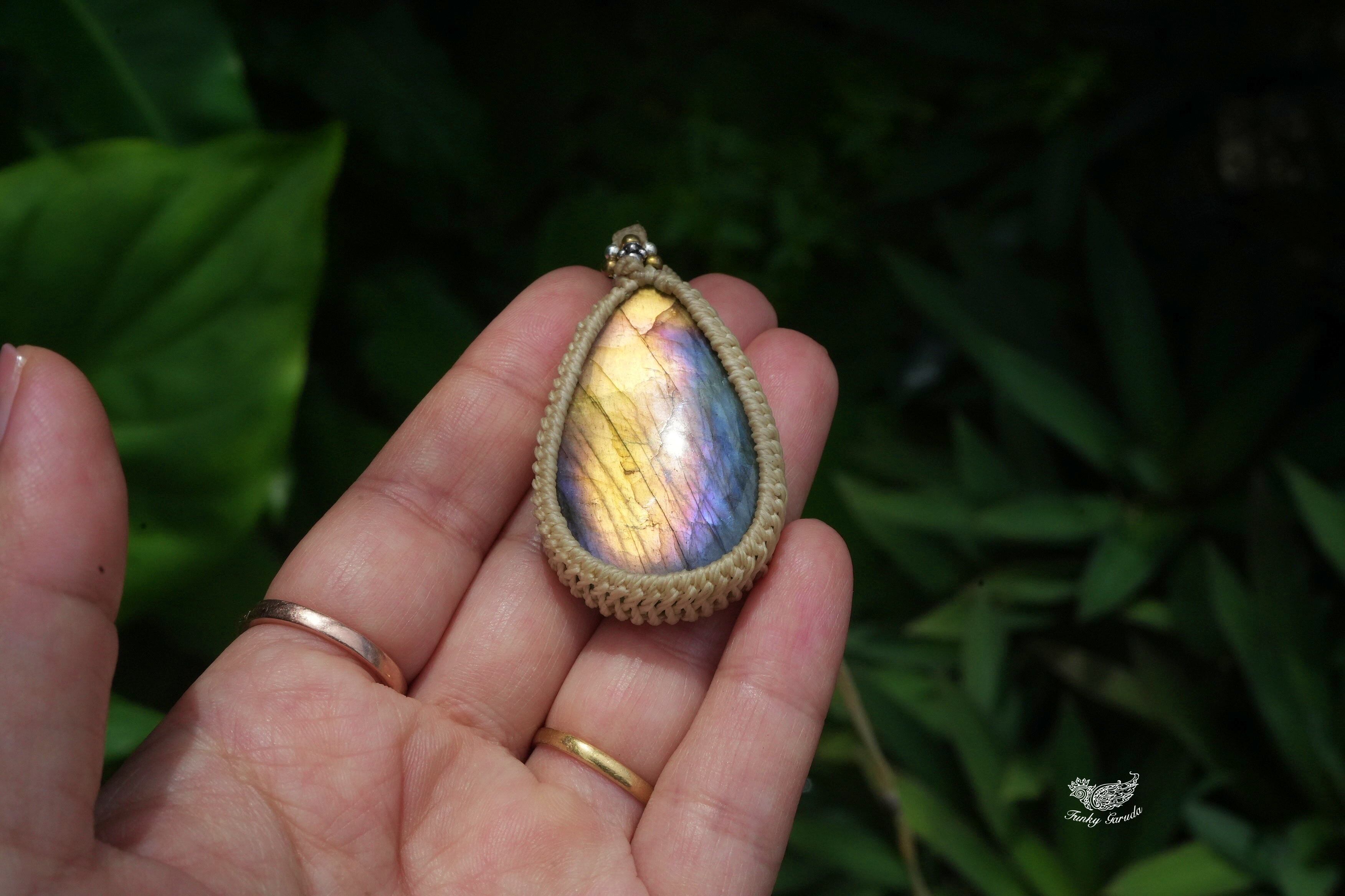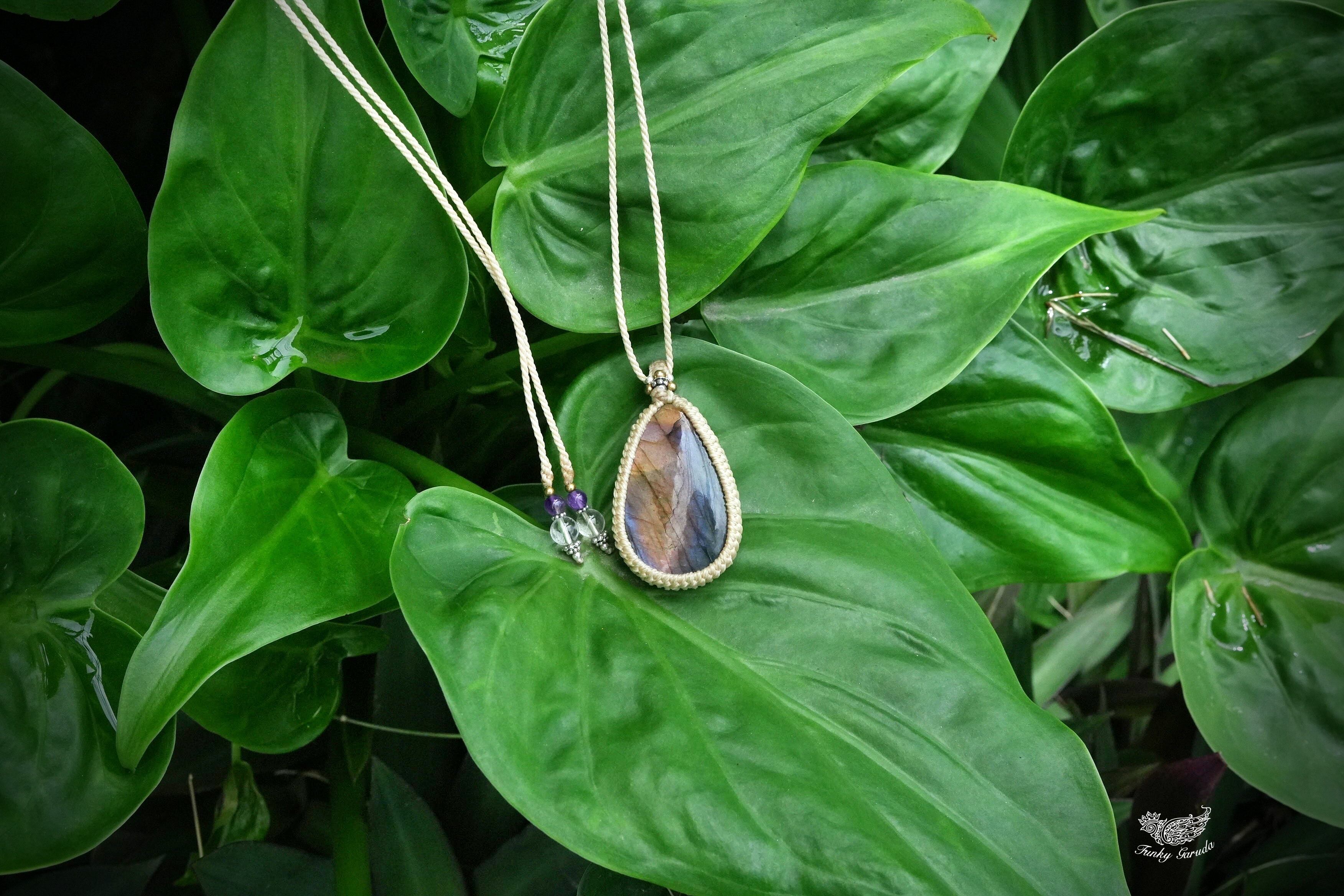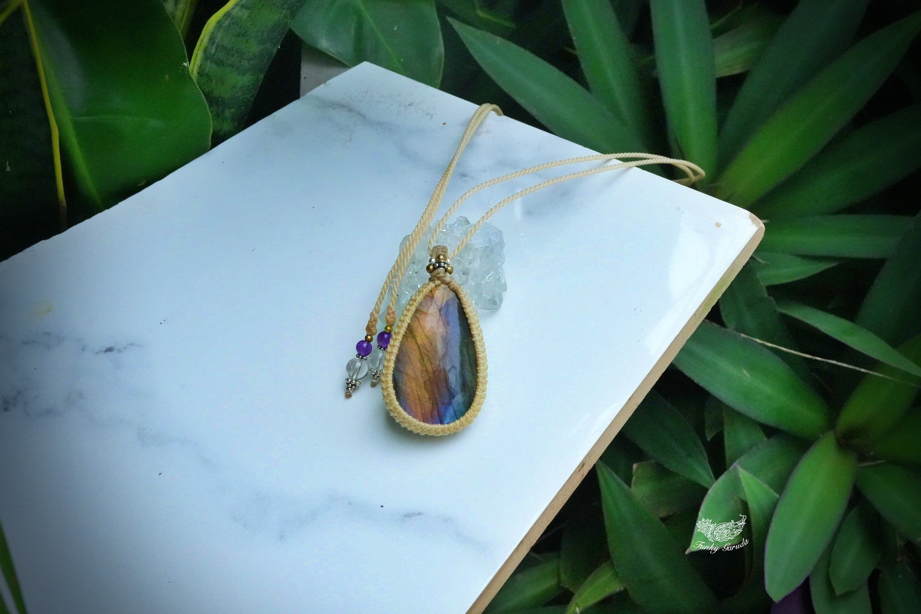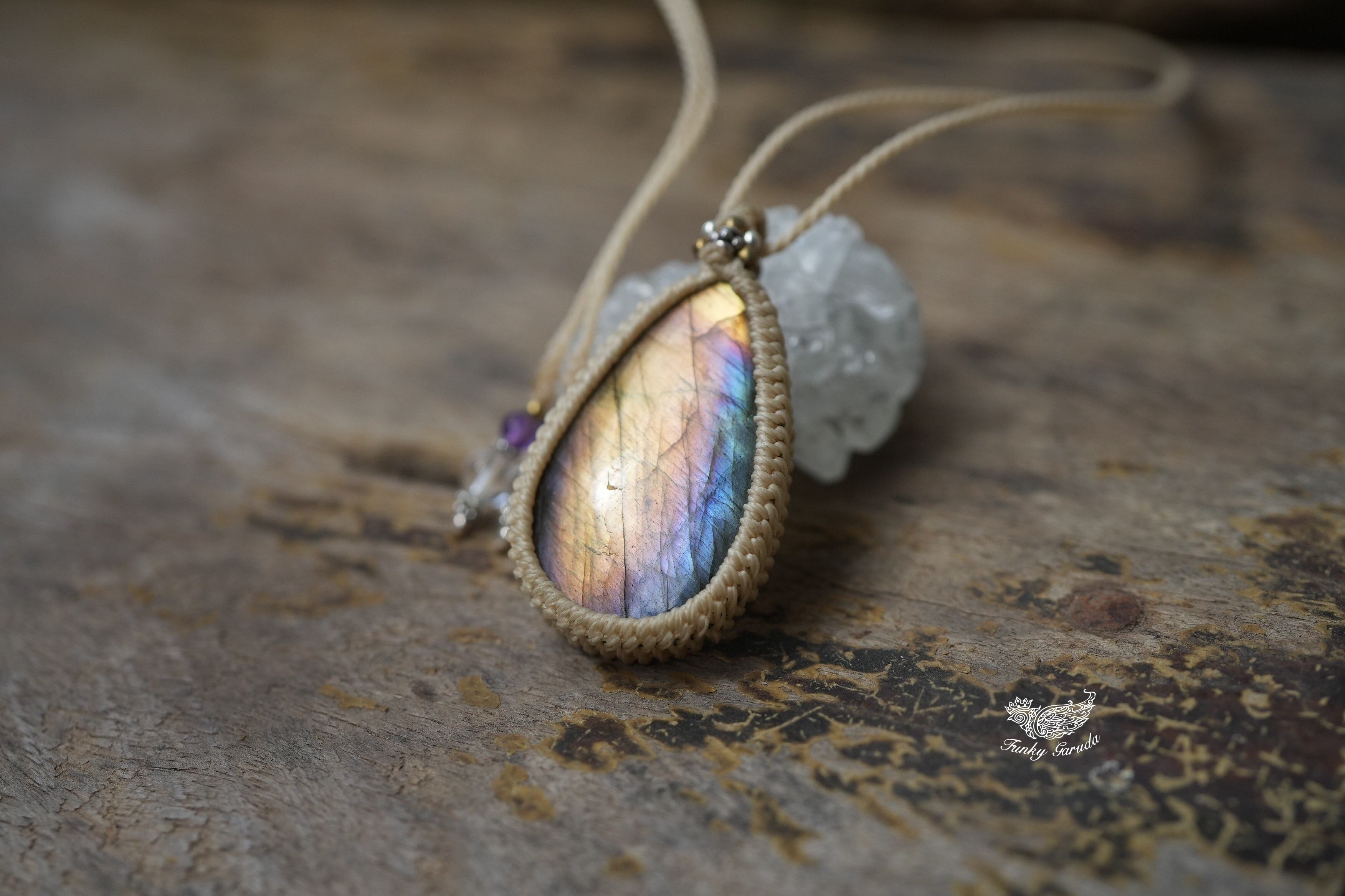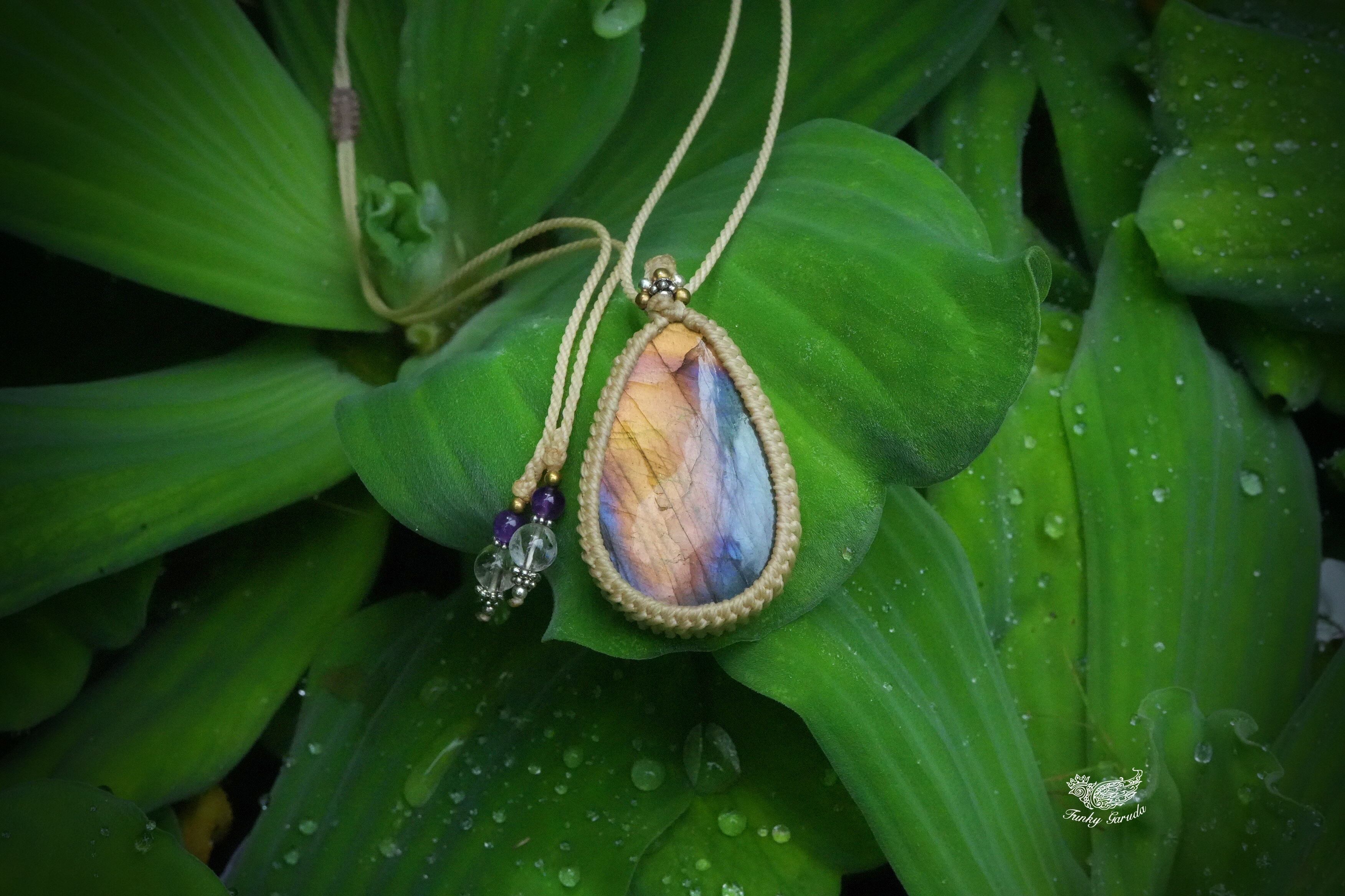 紫柿色★パープルラブラドライト マクラメネックレス1319